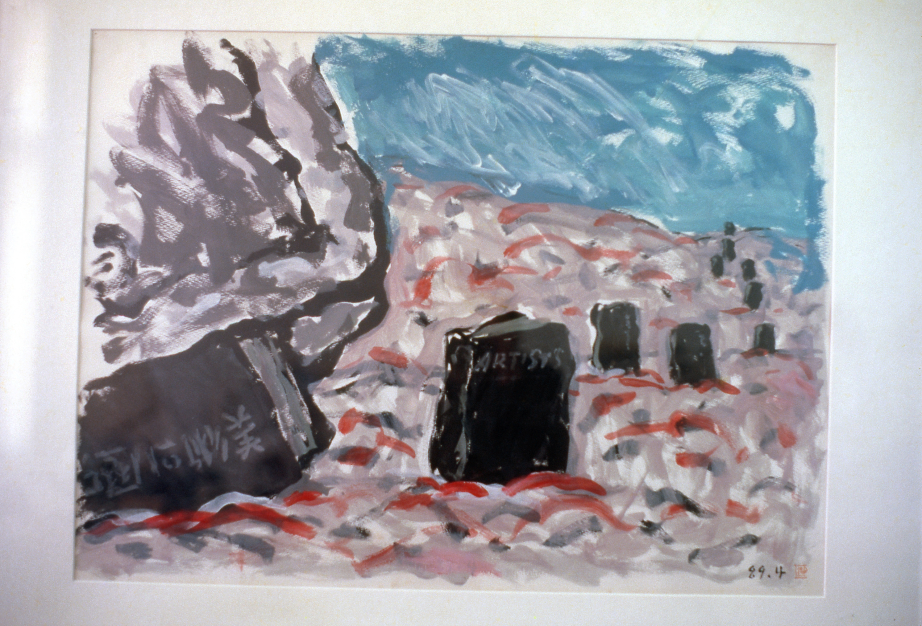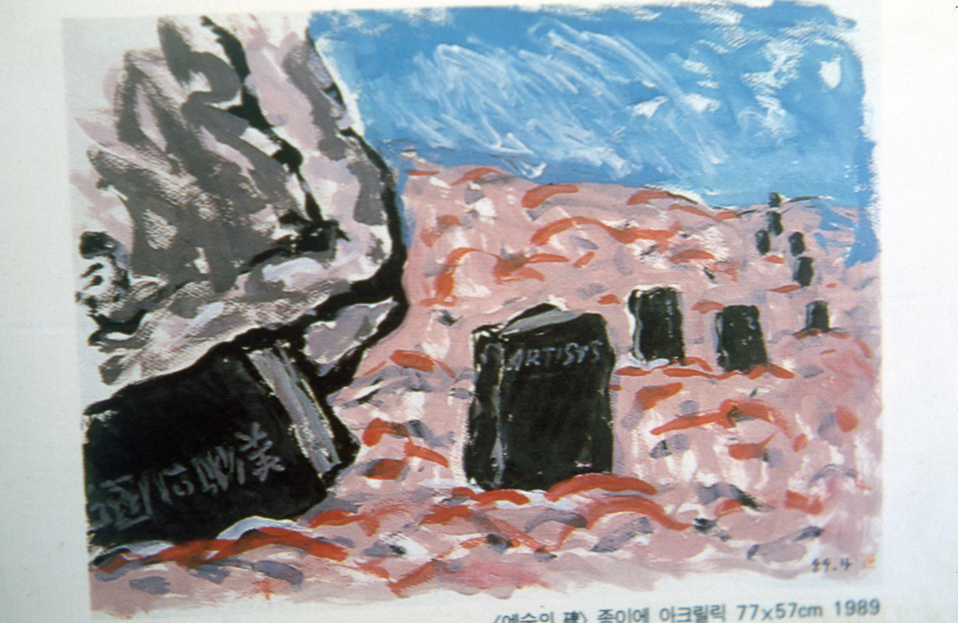 1994년에 제작된 포켓 시리즈의 <예술의 碑(비)>(종이에 아크릴릭, 77X57cm, 1989) 작품의 슬라이드이다.