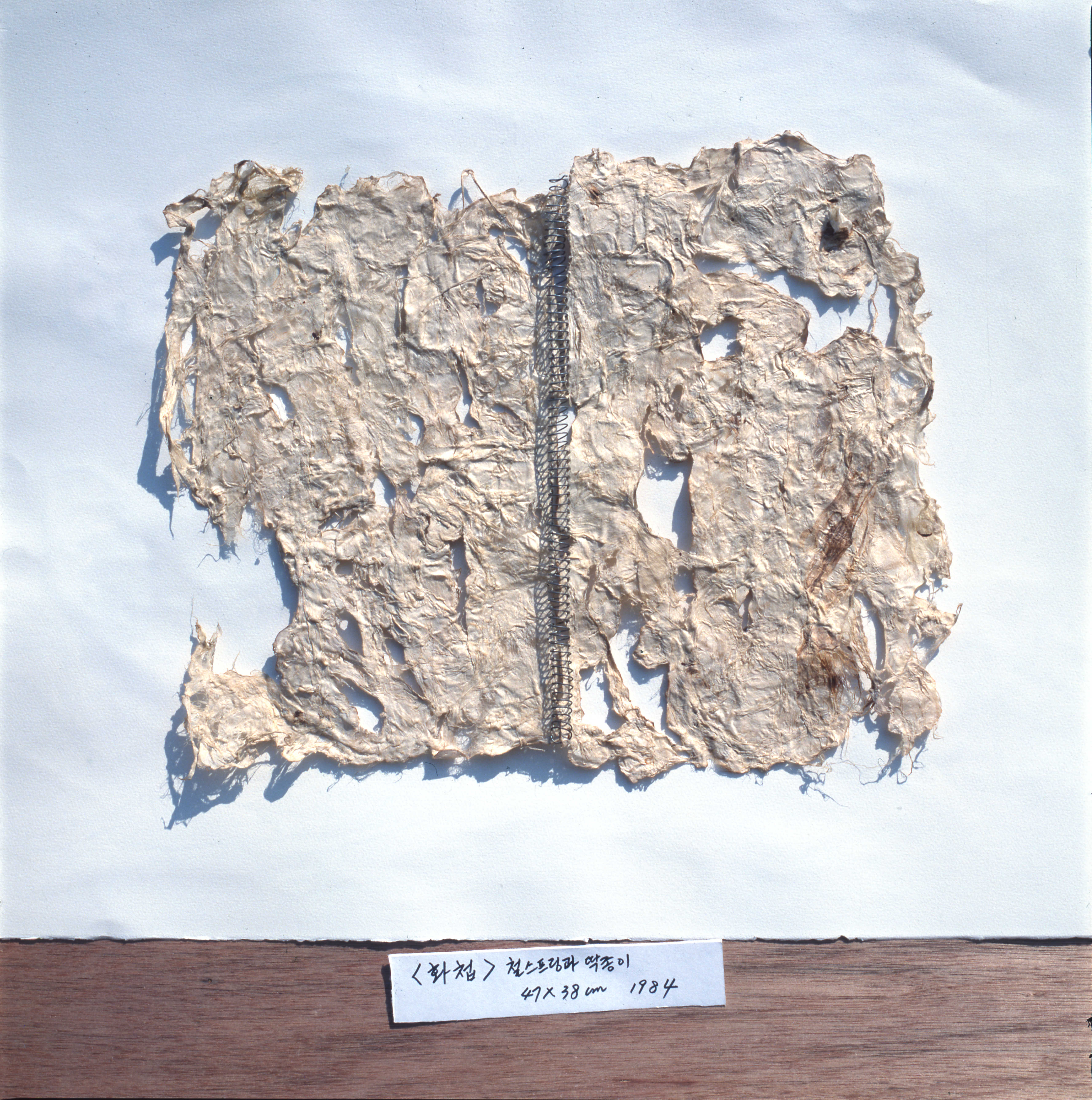 1984년에 제작된 <화첩>(철스프링과 딱종이, 47X38cm, 1984) 작품의 필름이다.