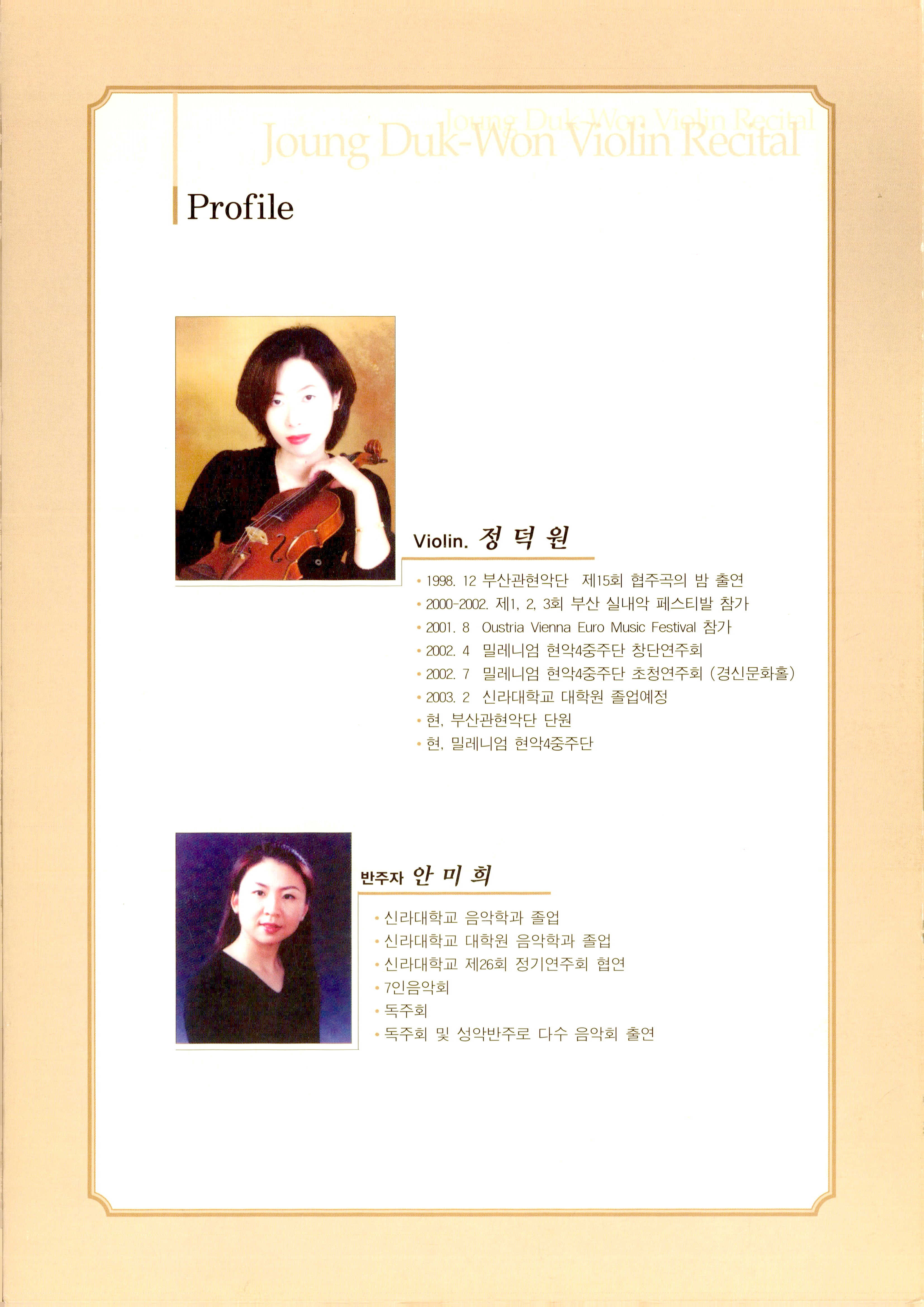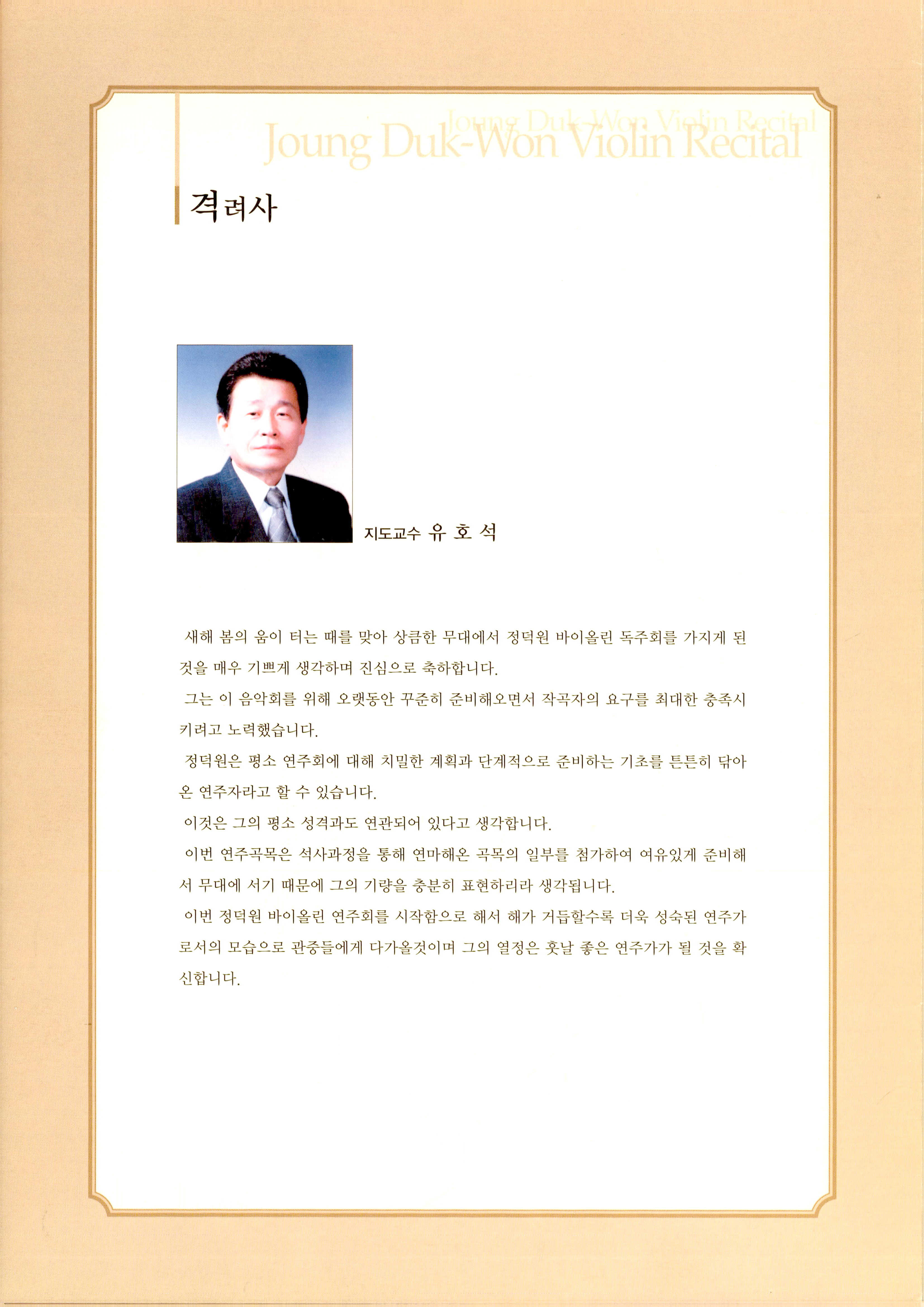 《정덕원 바이올린 독주회 (Joung Duk-Won Violin Recital)》 팜플렛