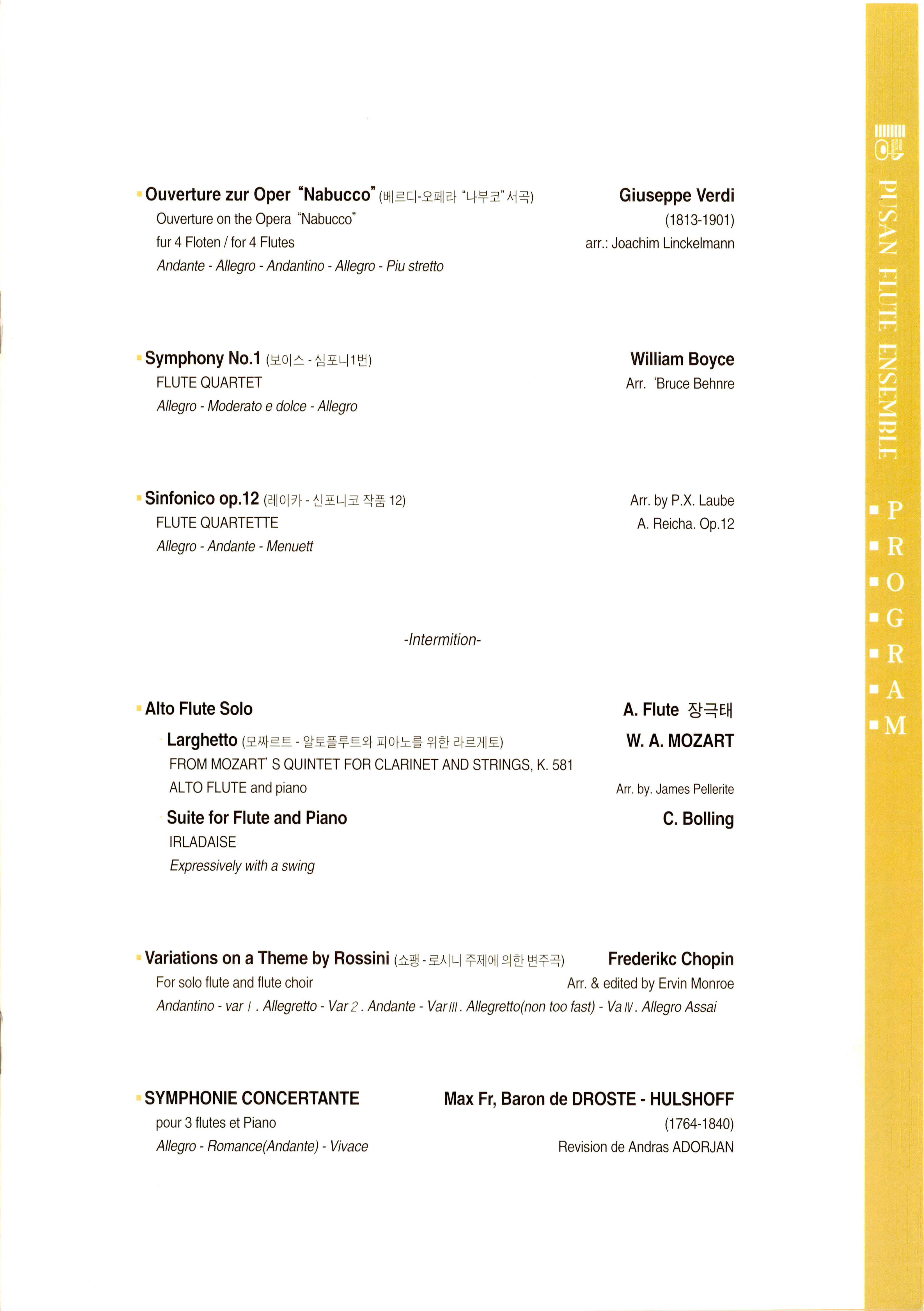《부산플루트앙상블 제11회 정기연주회 (The 11th Reguller Concert by PUSAN FLUTE ENSEMBLE)》 팜플렛