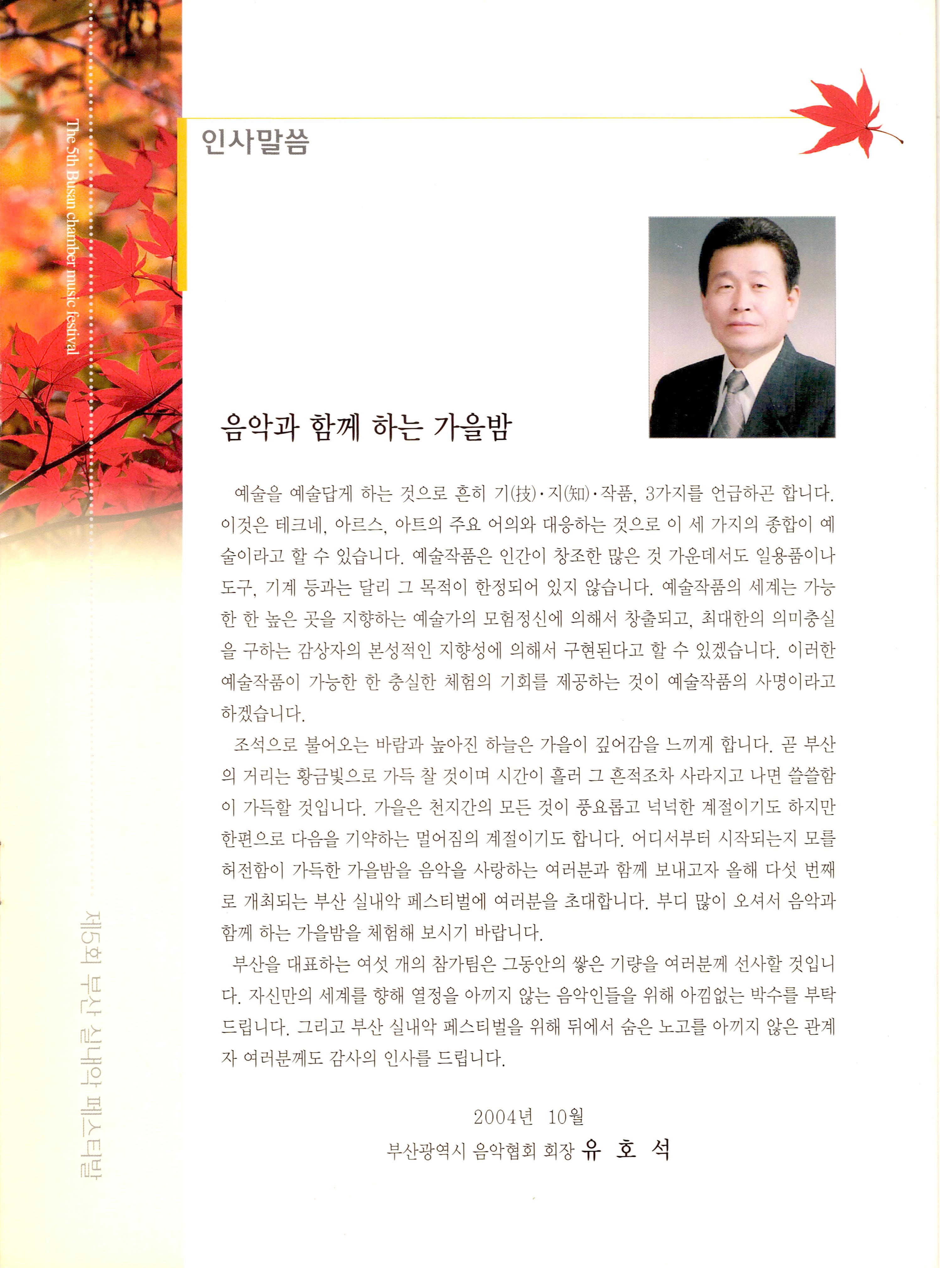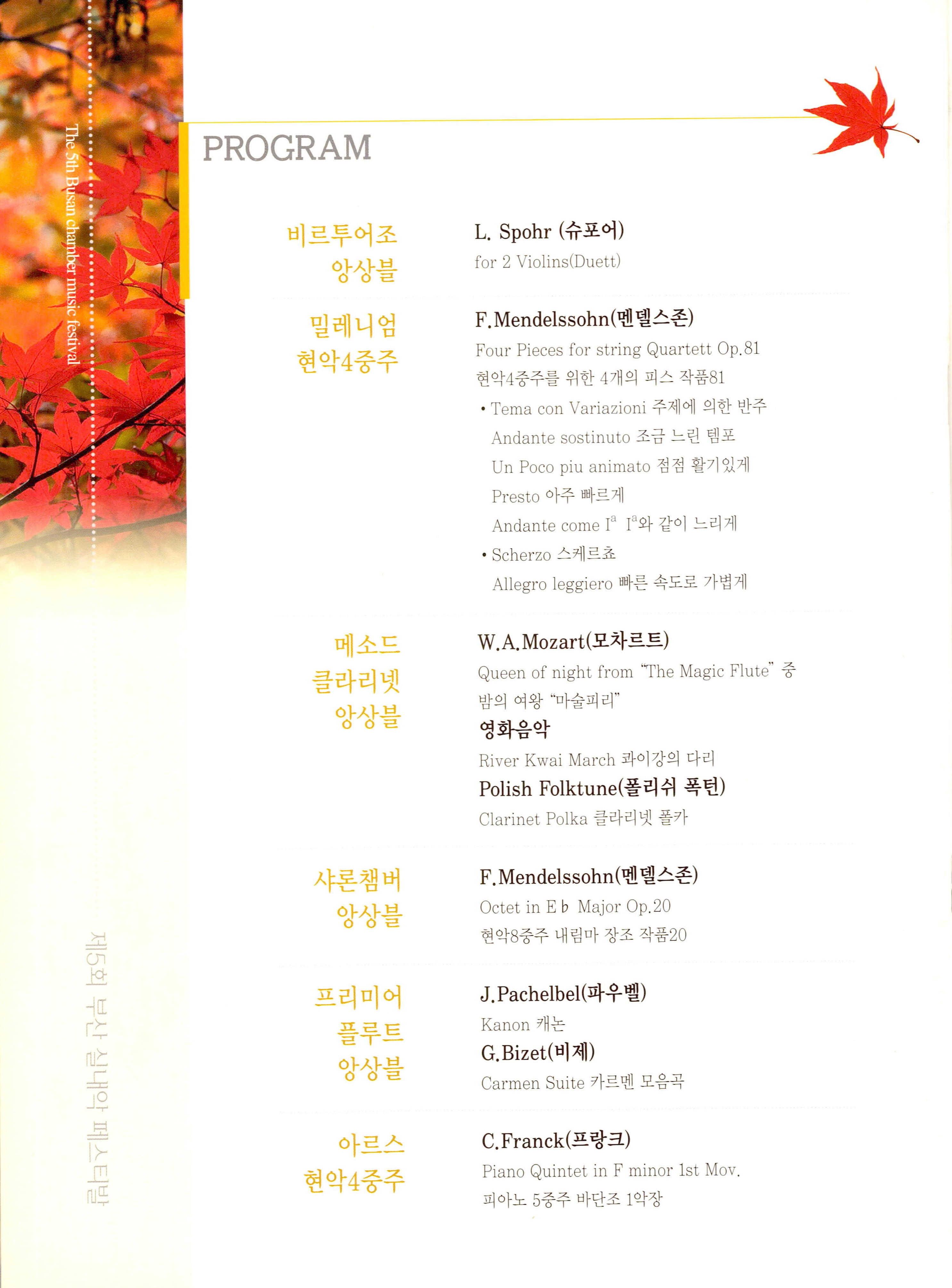 《제5회 부산 실내악 페스티발 (The 5th Busan chamber music festival)》 팜플렛