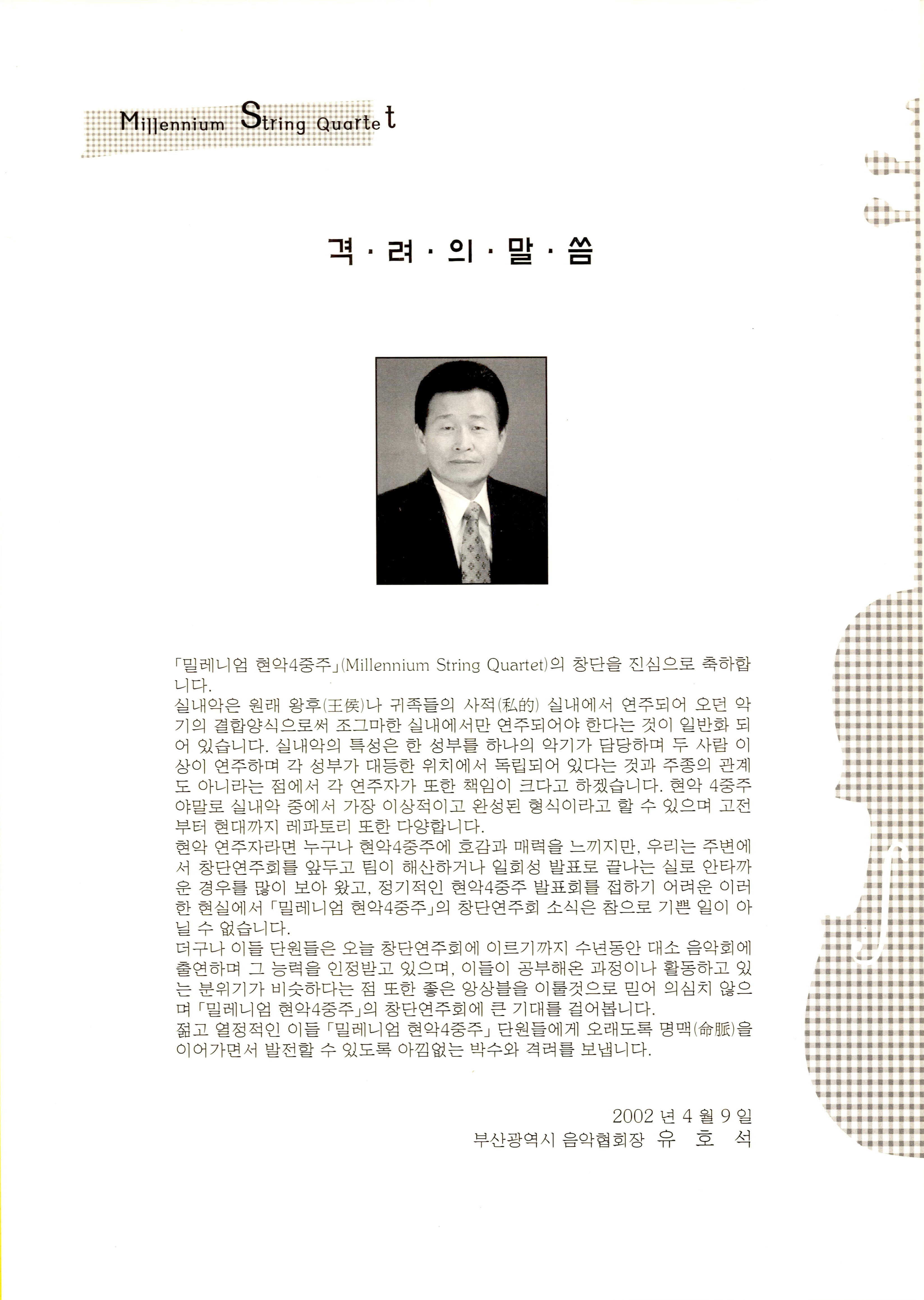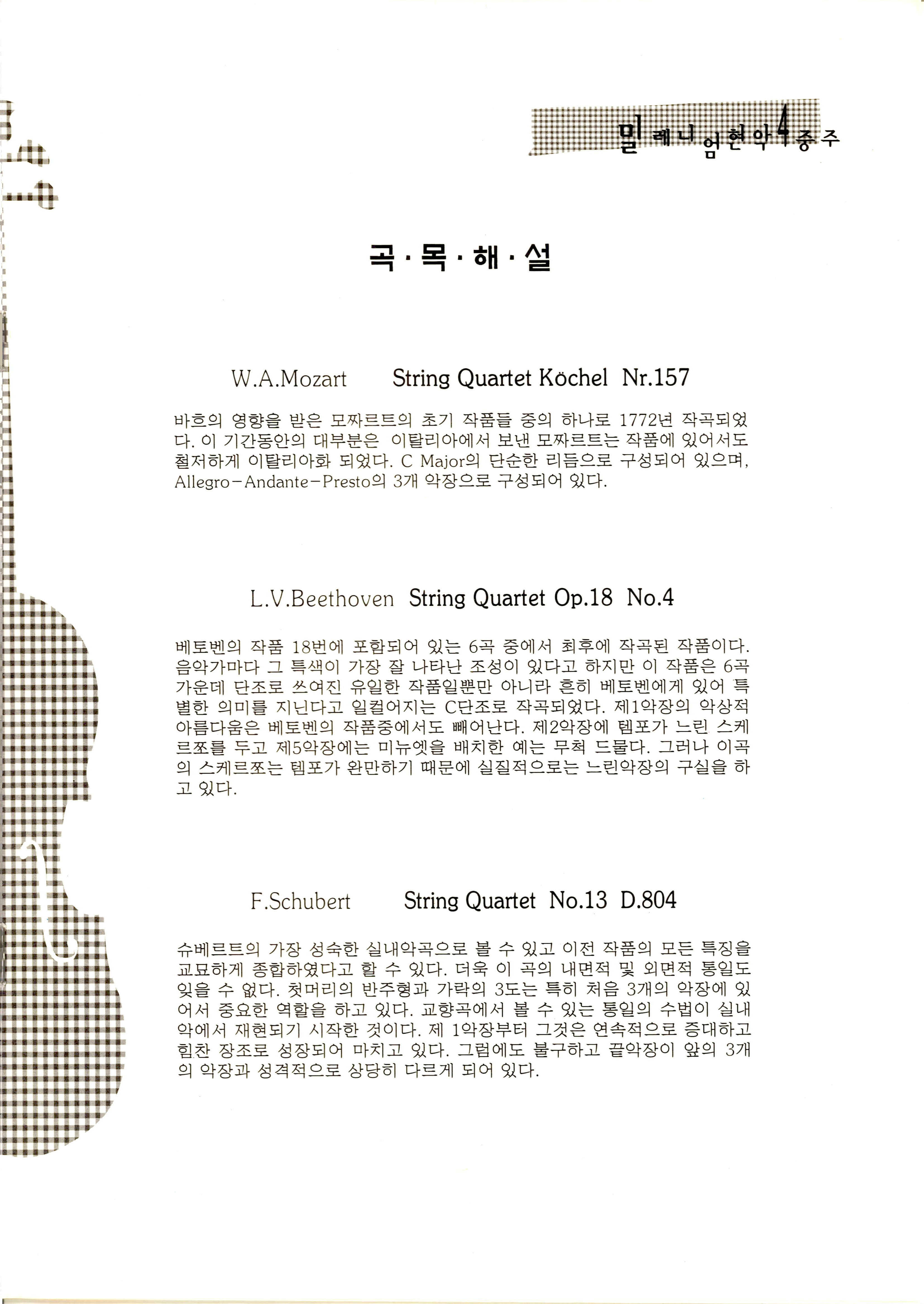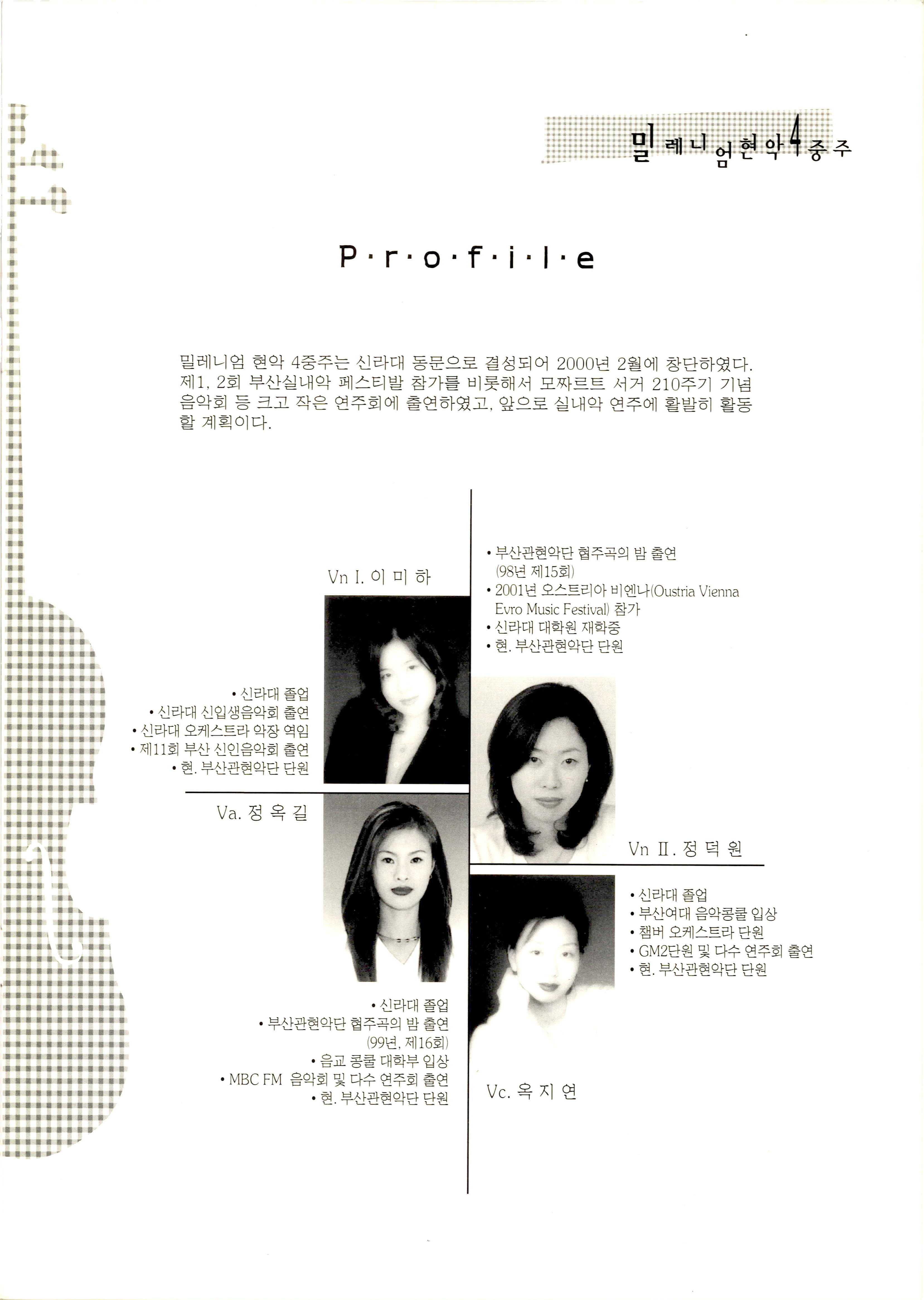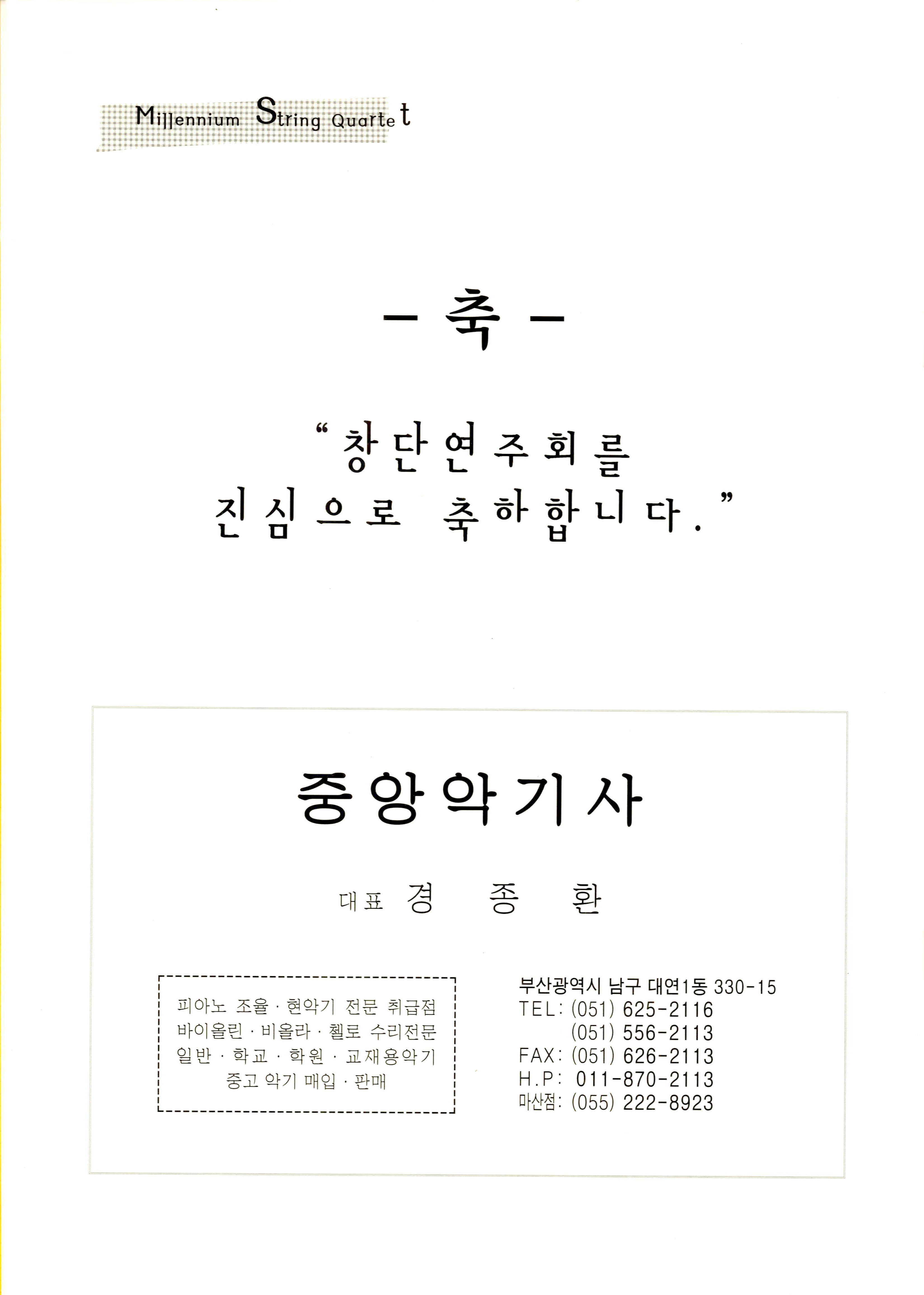 《창단연주회 밀레니엄 현악4중주 (Millennium String Quartet)》 팜플렛