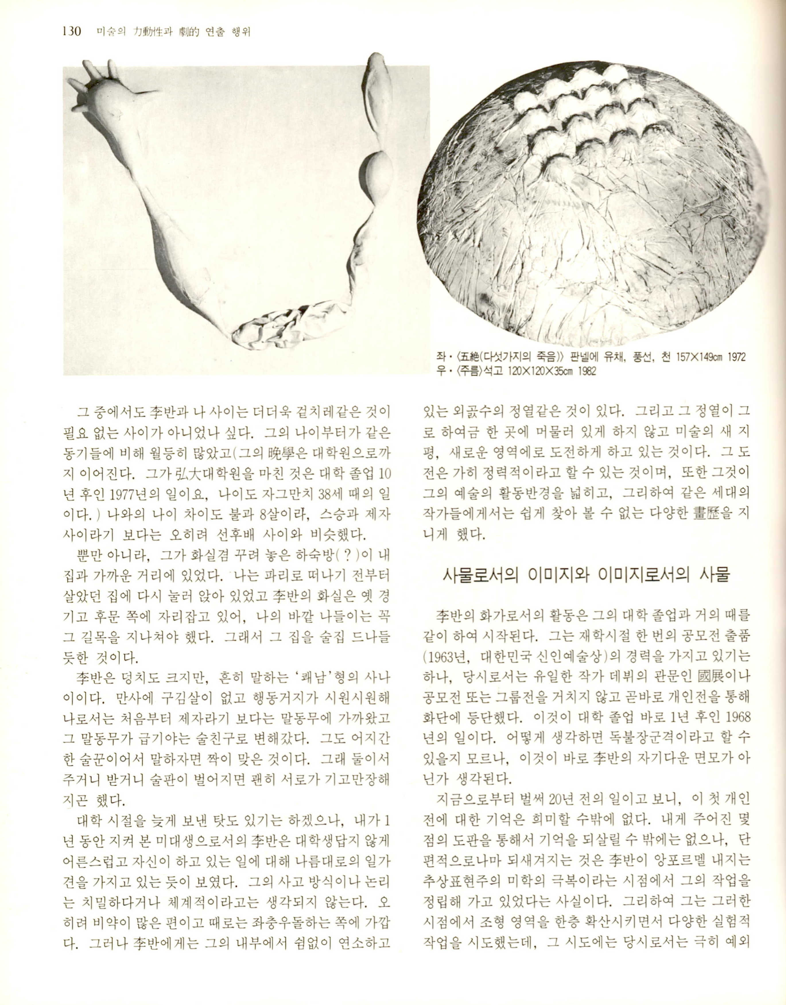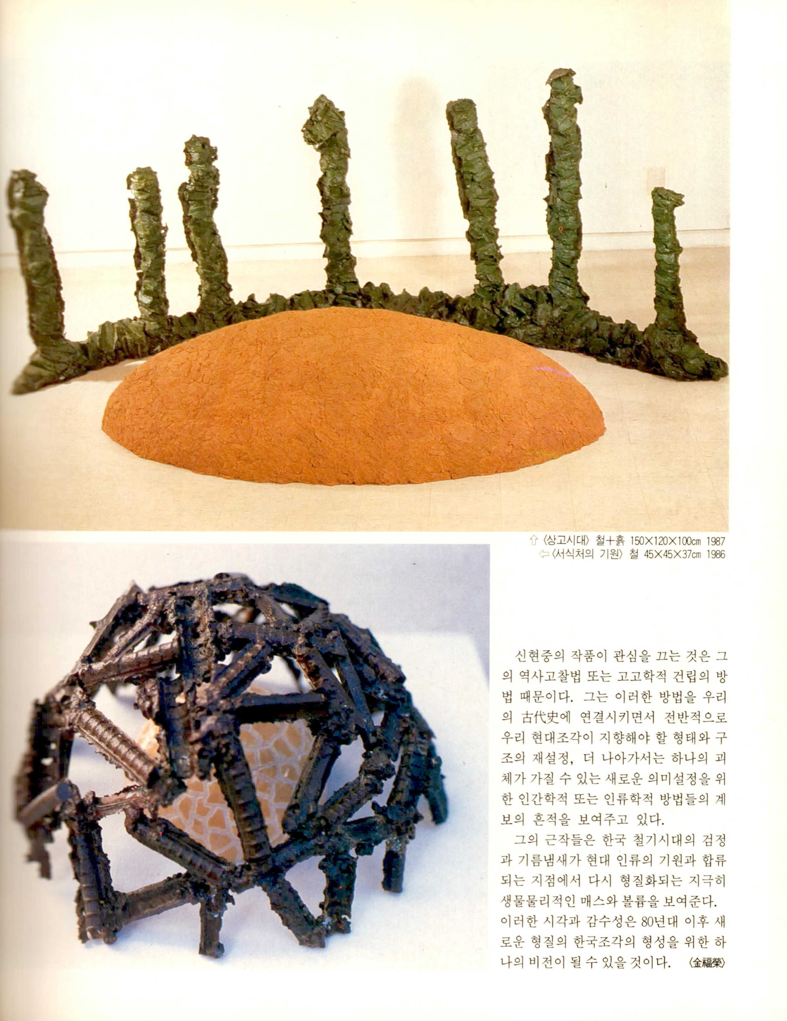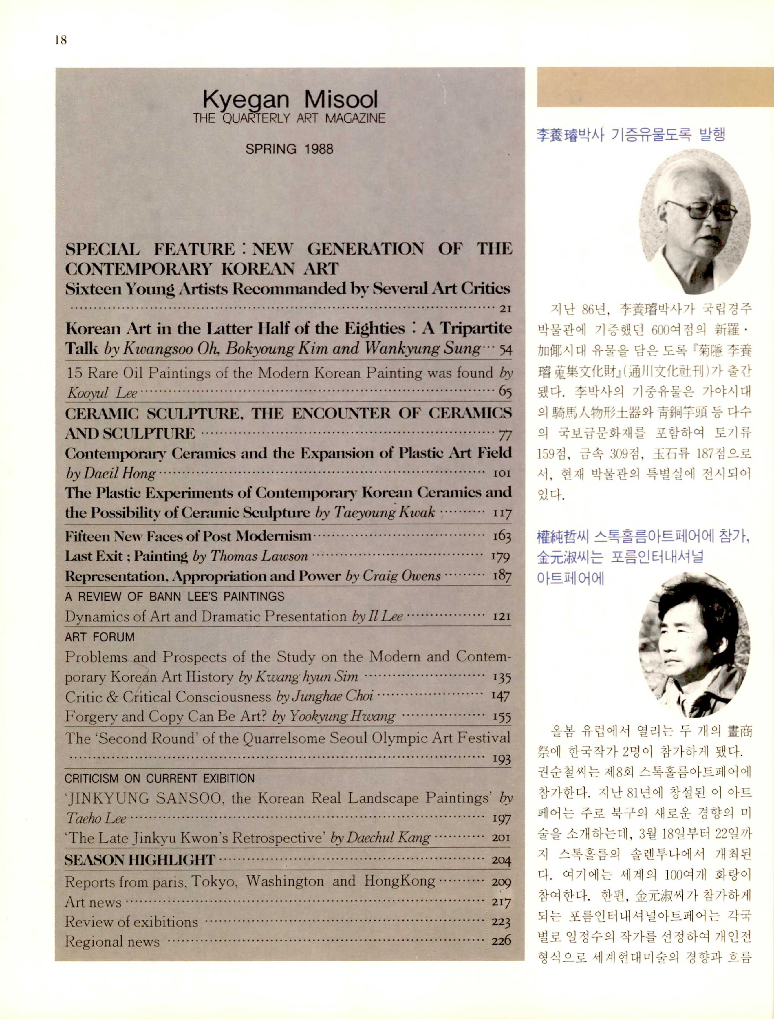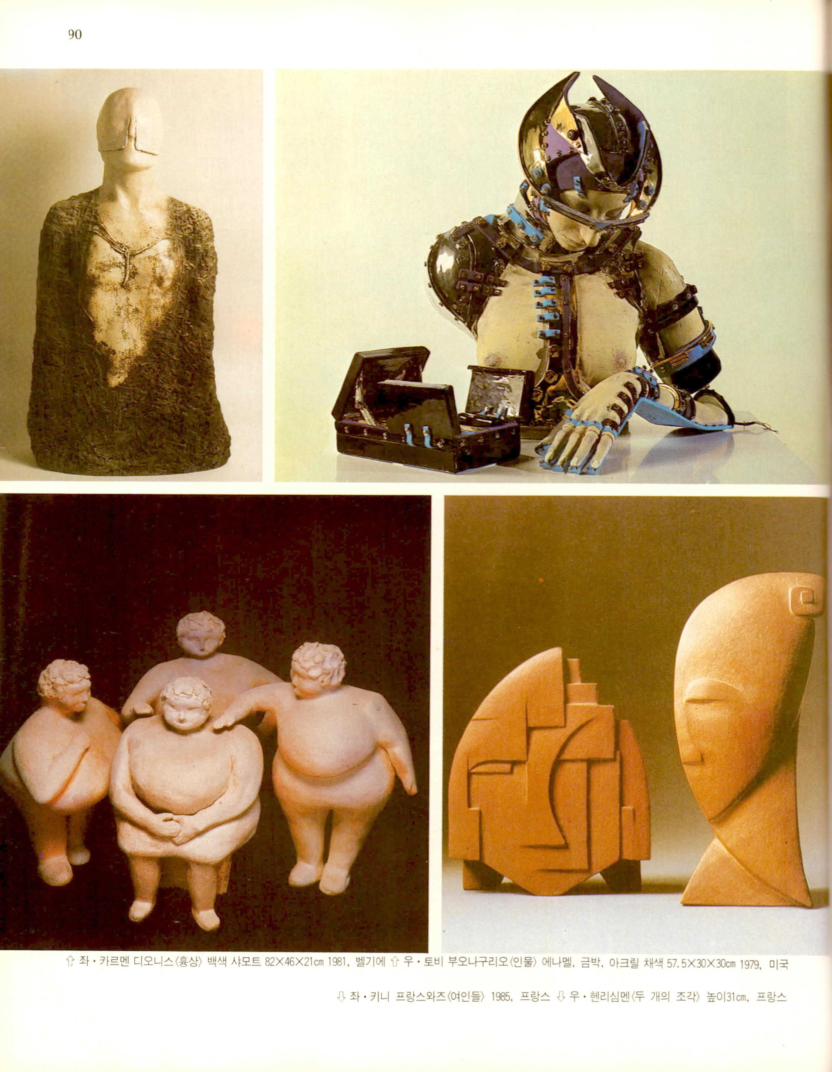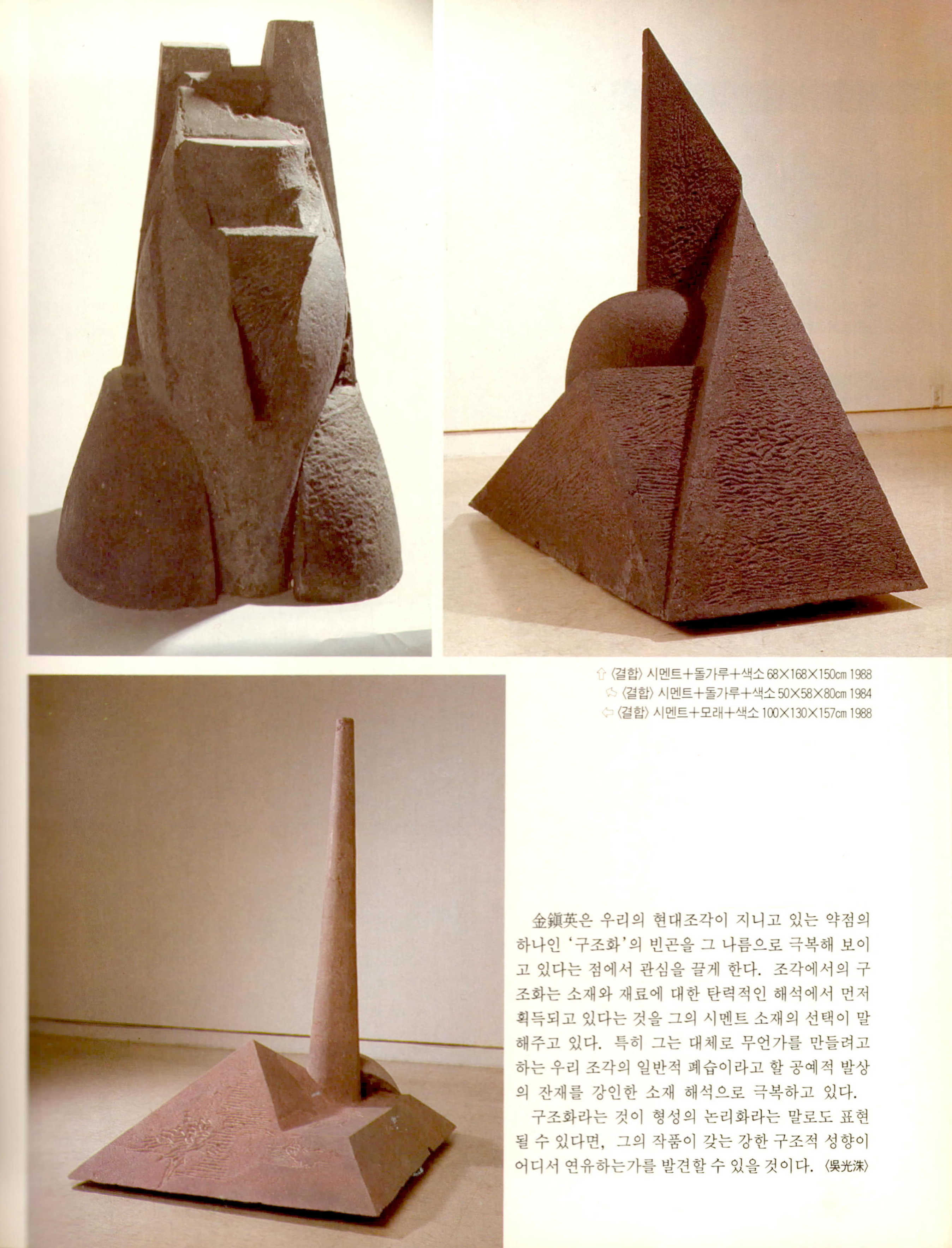1988년 3월 15일에 발행된 계간미술 45 1988봄호로 작품 <머리의 손가락>(브론즈, 45X19X24cm, 1986), <퍼스컴>(브론즈, 27X37X36cm, 1987), <머리의 손가락>(석고에 은박, 20X14X15cm, 1986), <神(신)의 젖줄>(브론즈, 31X19X18cm, 1986)과 설명이 기술되어 있다.