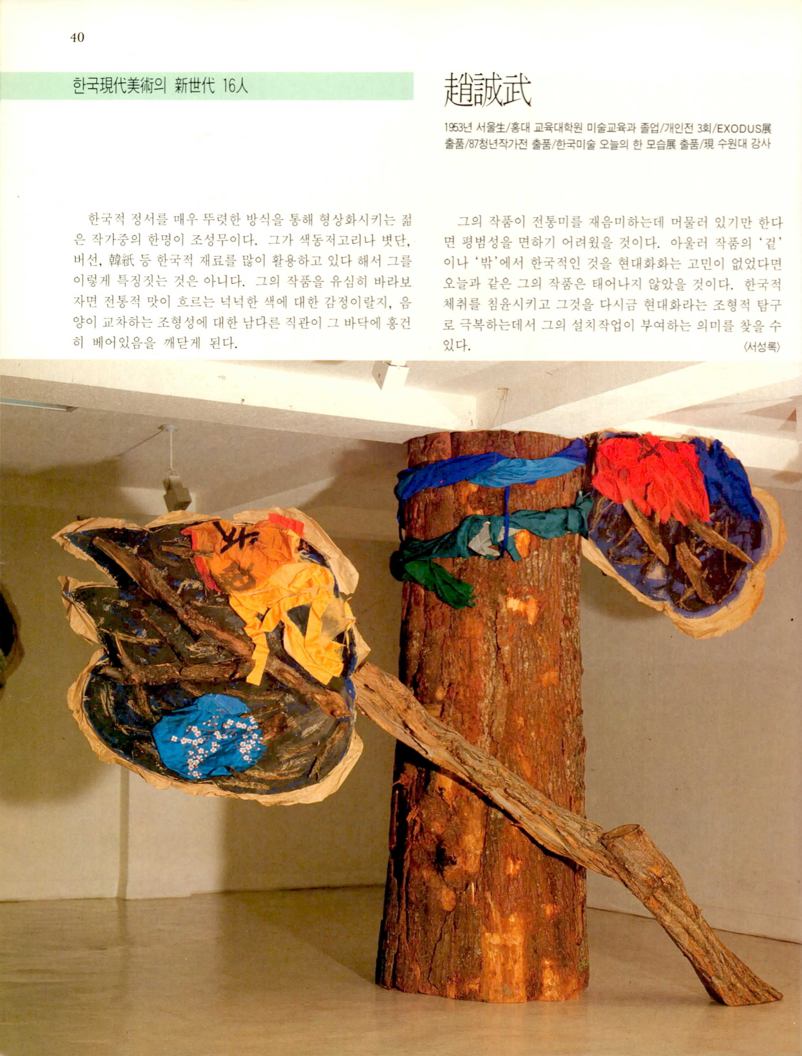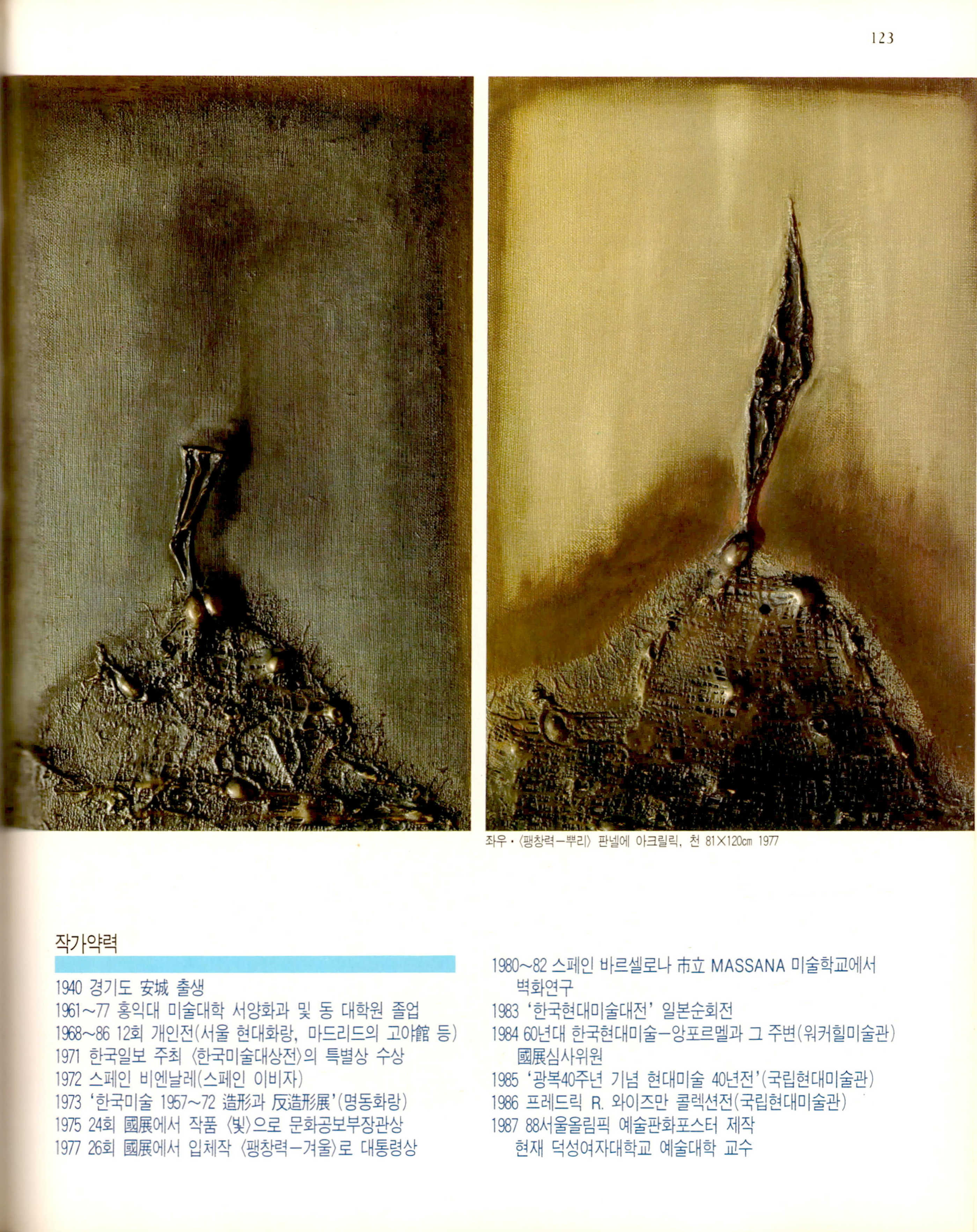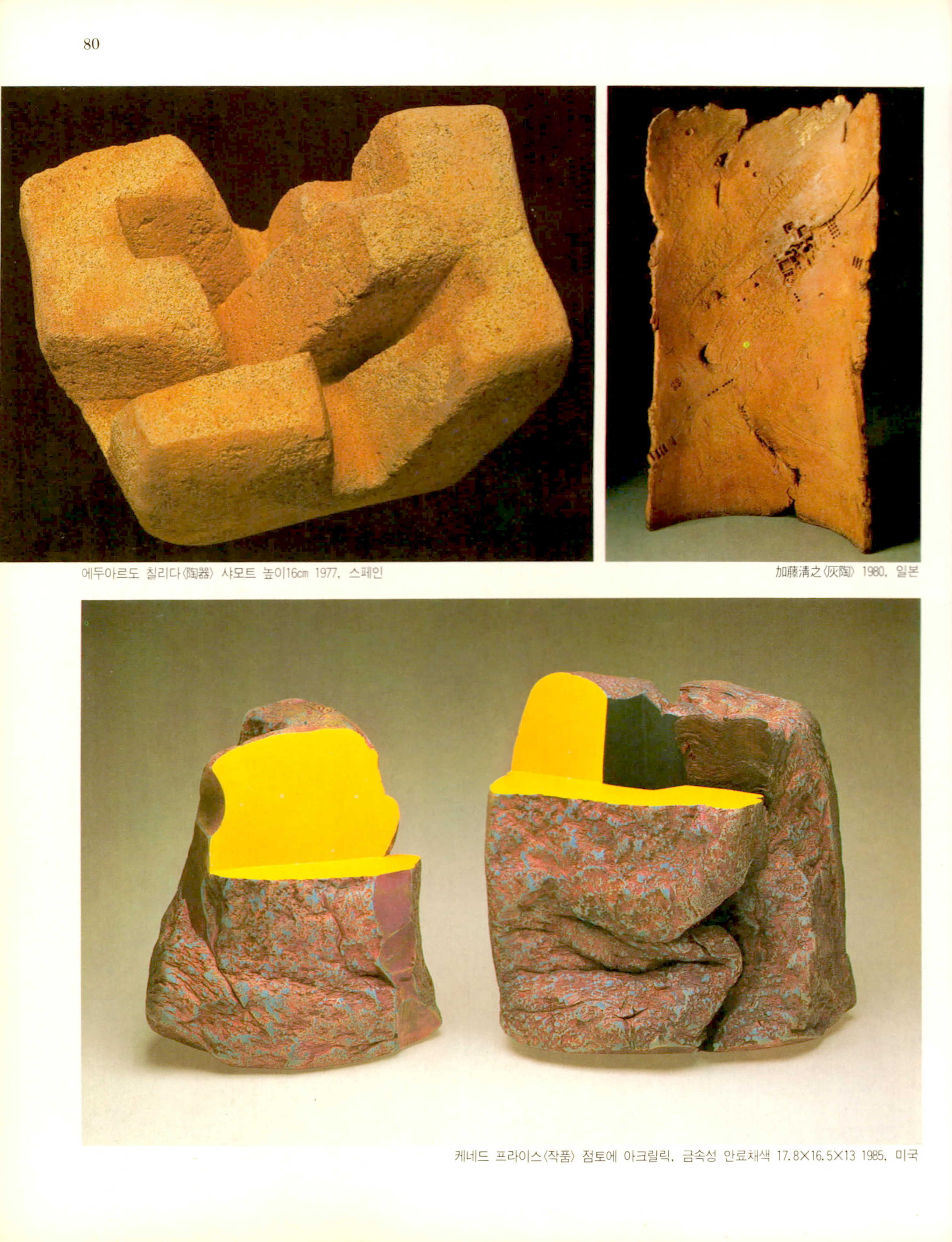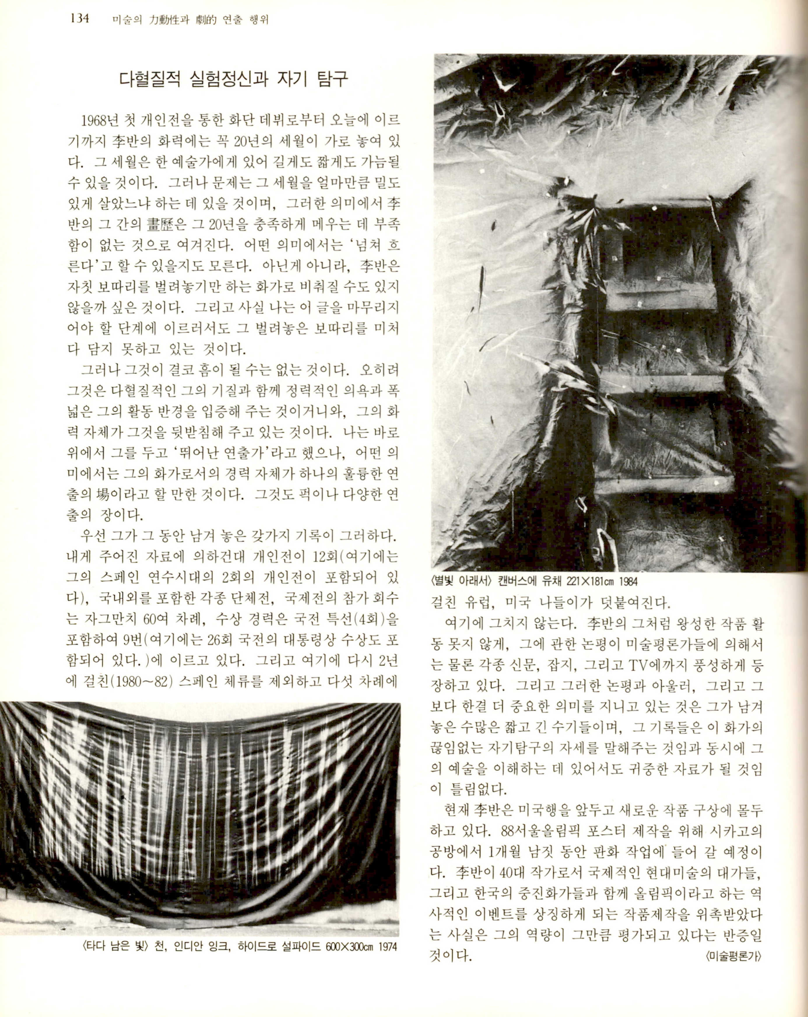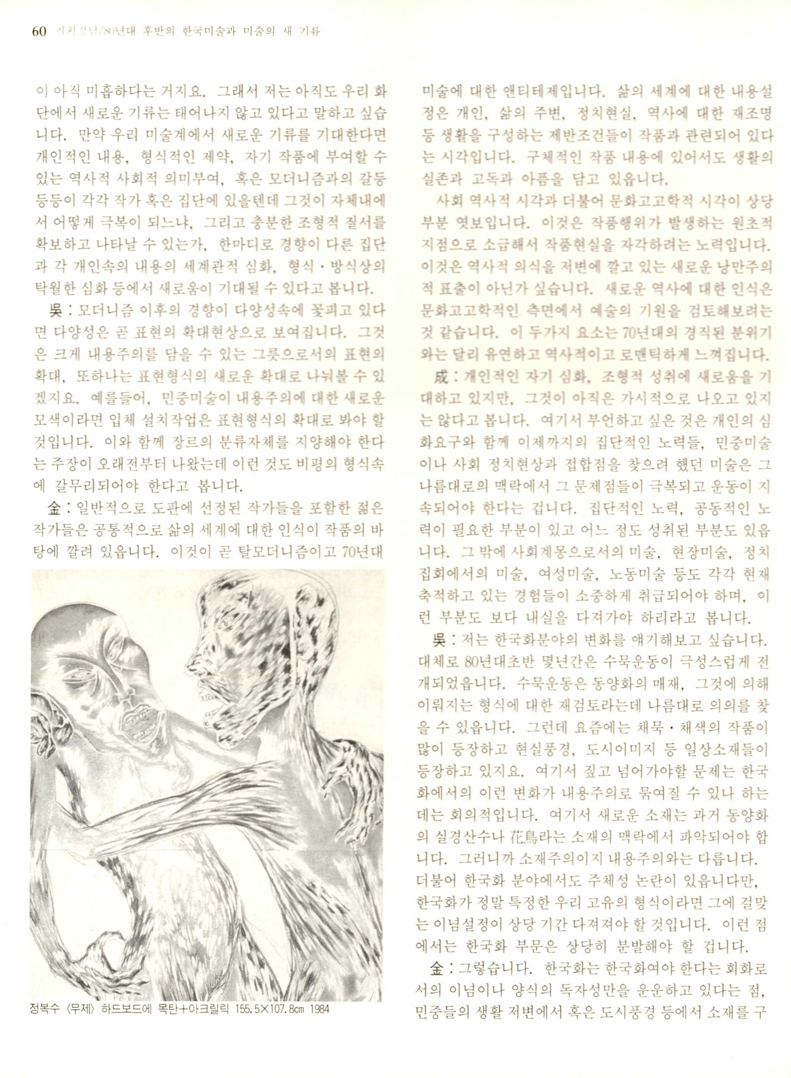 1988년 3월 15일에 발행된 계간미술 45 1988봄호로 작품 <머리의 손가락>(브론즈, 45X19X24cm, 1986), <퍼스컴>(브론즈, 27X37X36cm, 1987), <머리의 손가락>(석고에 은박, 20X14X15cm, 1986), <神(신)의 젖줄>(브론즈, 31X19X18cm, 1986)과 설명이 기술되어 있다.