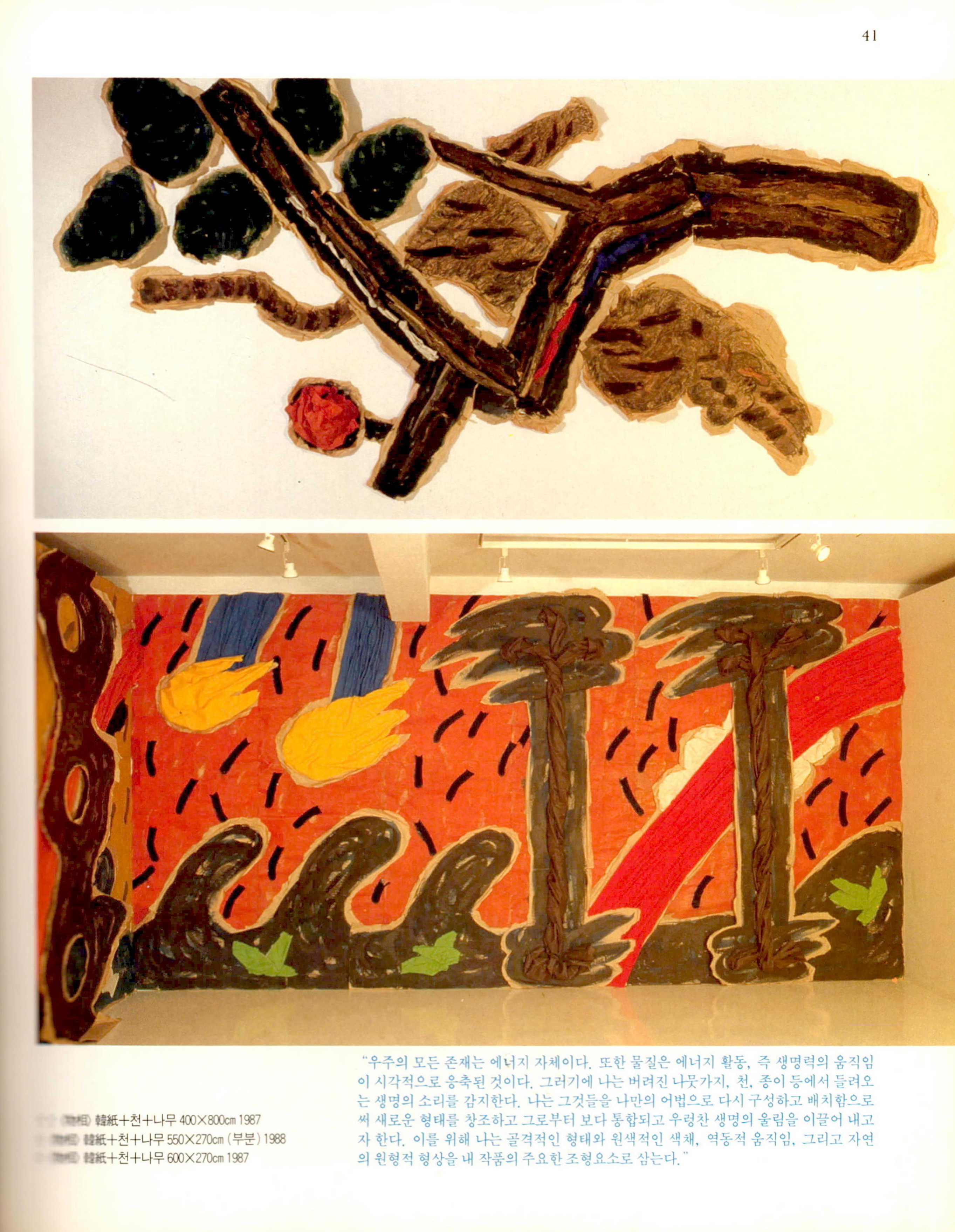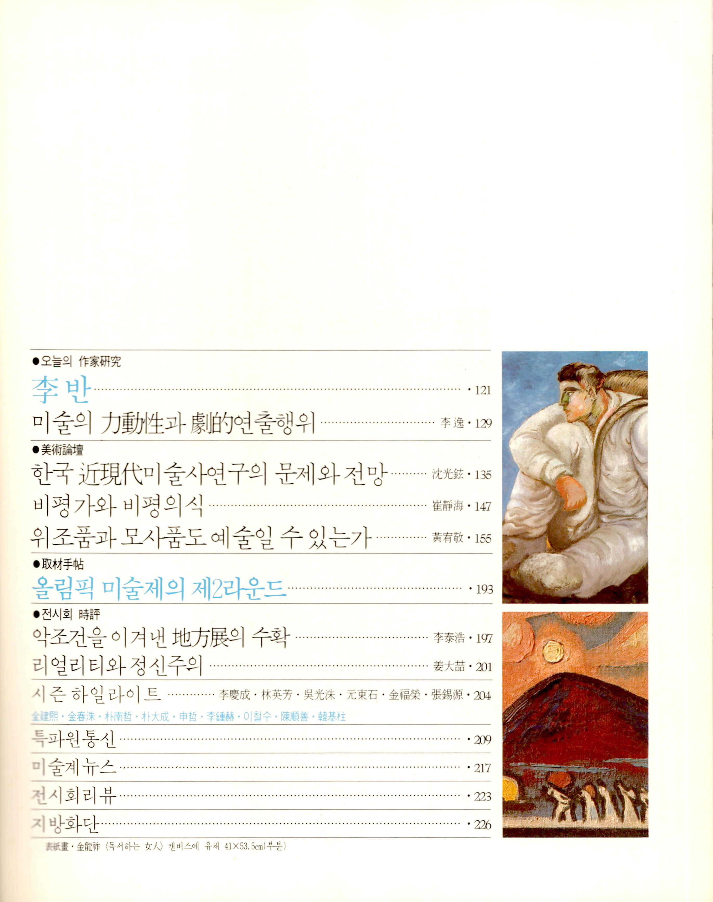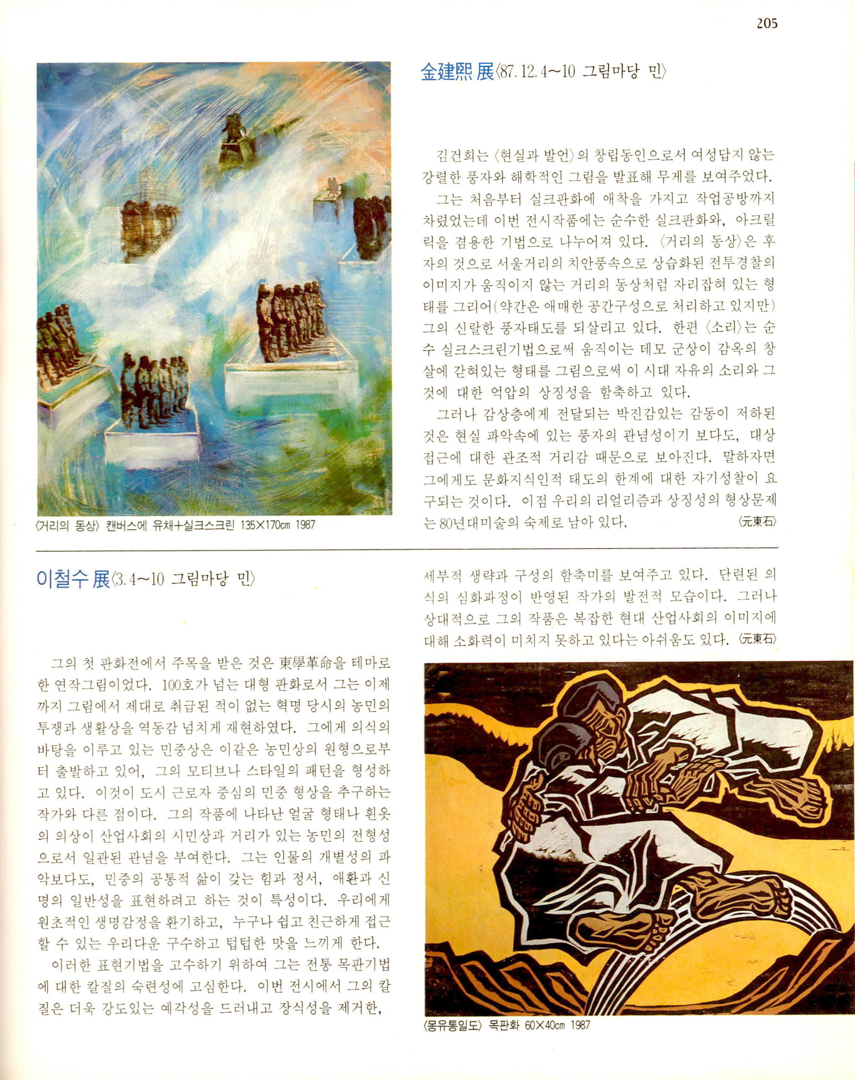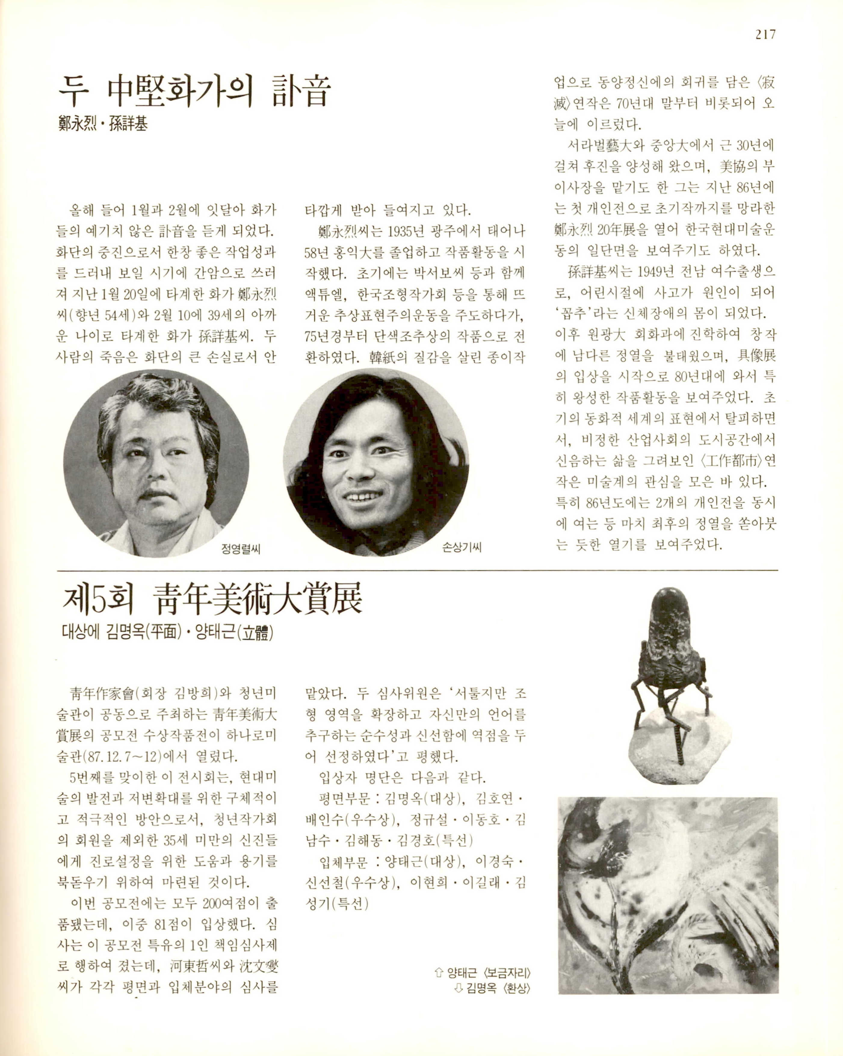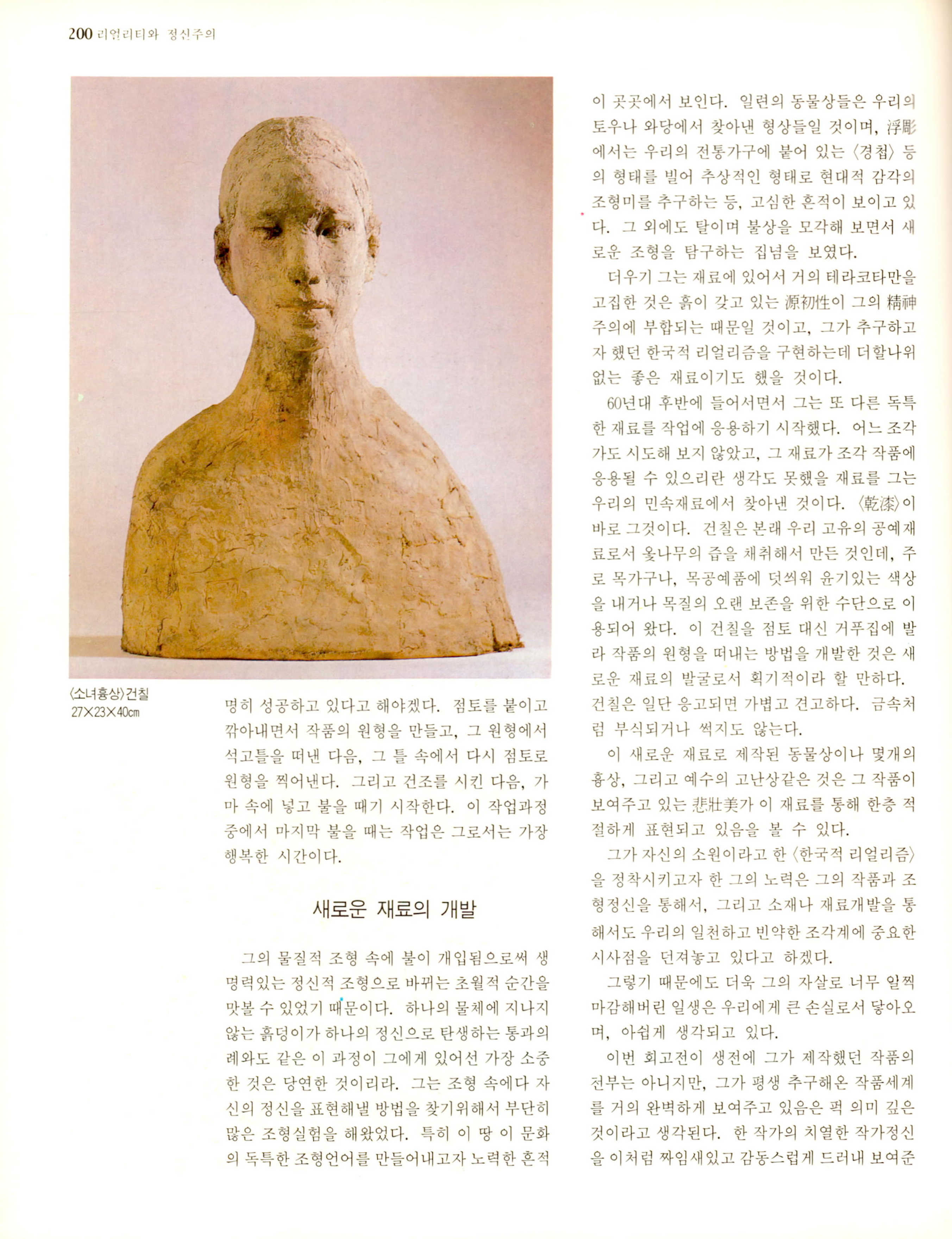 1988년 3월 15일에 발행된 계간미술 45 1988봄호로 작품 <머리의 손가락>(브론즈, 45X19X24cm, 1986), <퍼스컴>(브론즈, 27X37X36cm, 1987), <머리의 손가락>(석고에 은박, 20X14X15cm, 1986), <神(신)의 젖줄>(브론즈, 31X19X18cm, 1986)과 설명이 기술되어 있다.