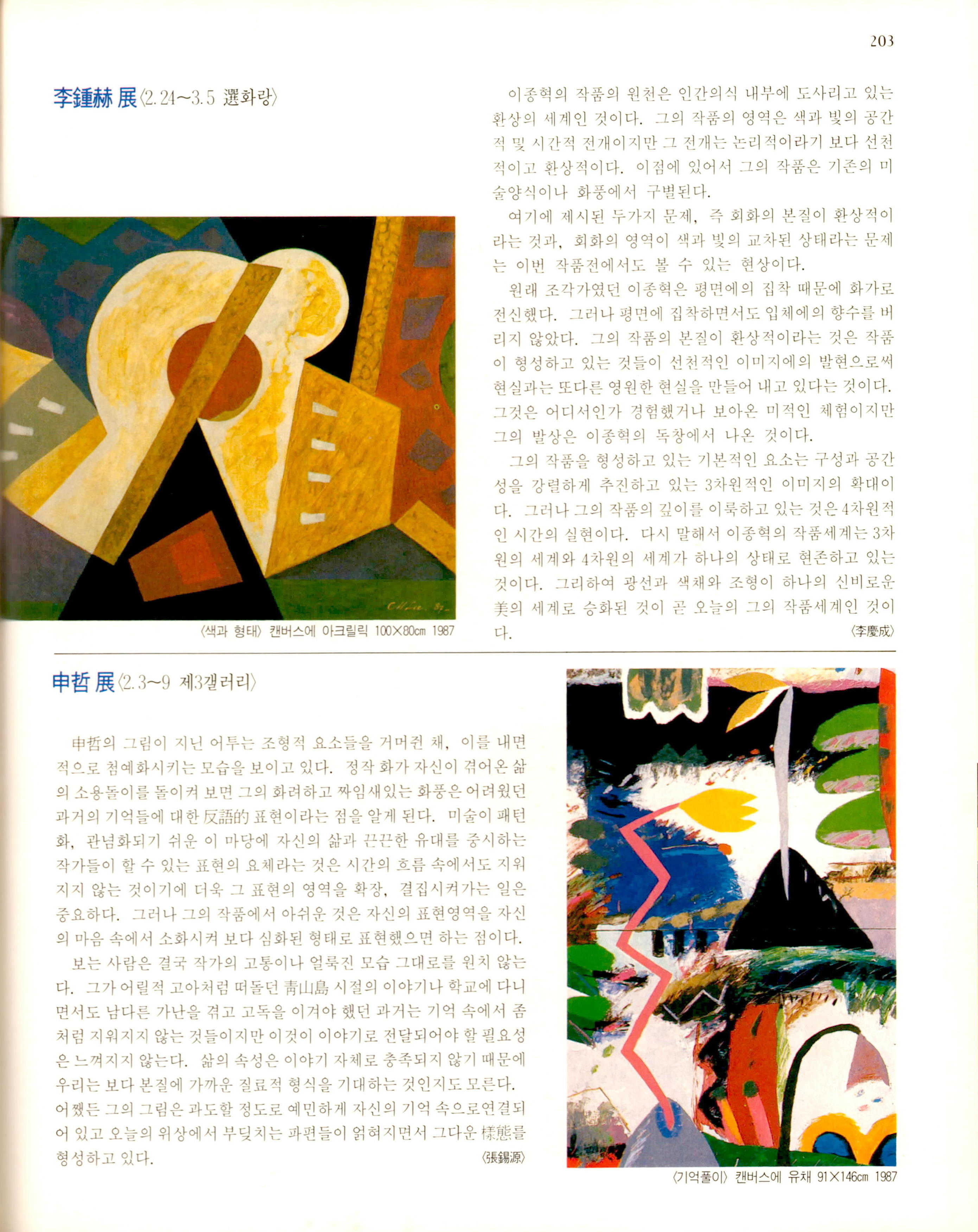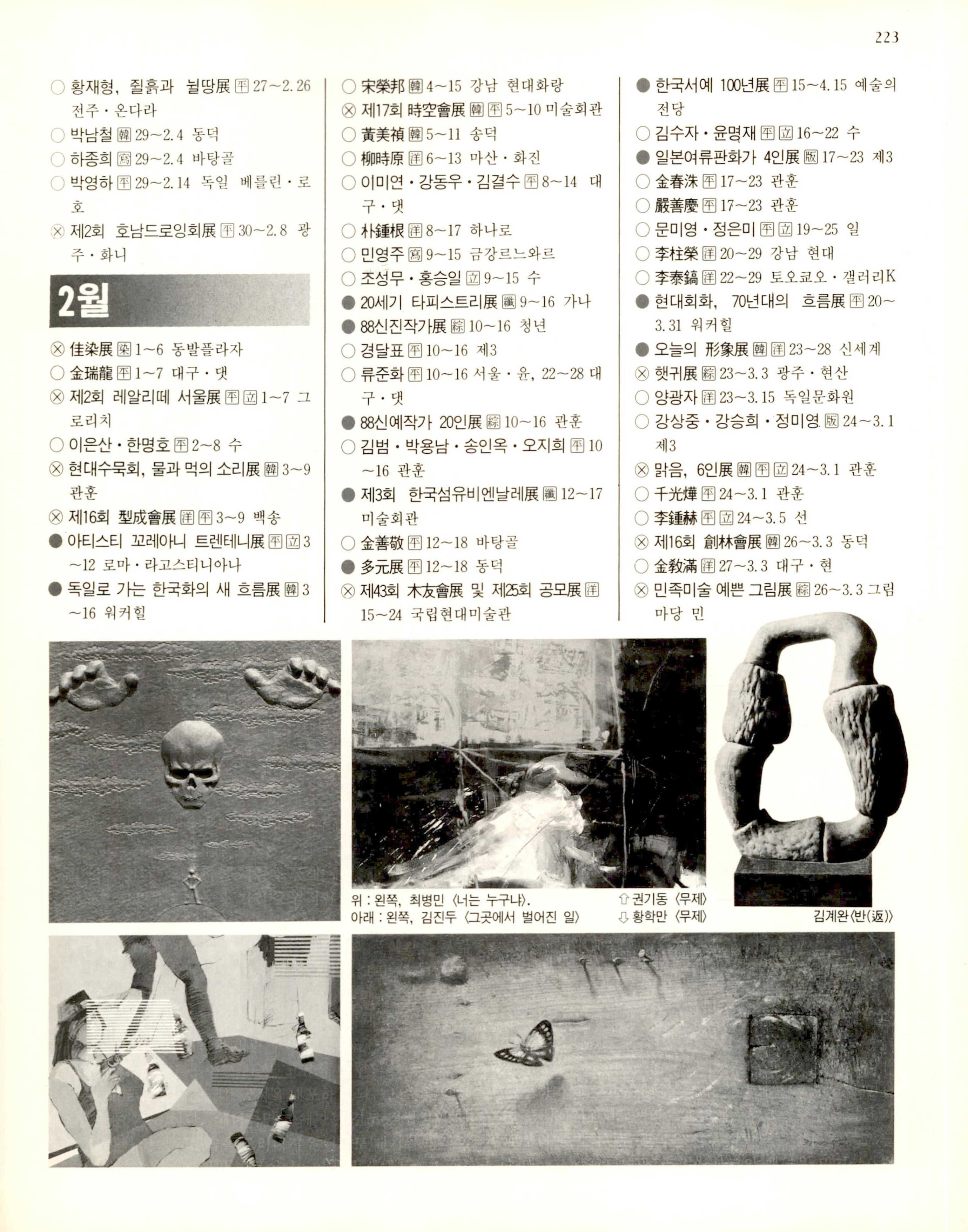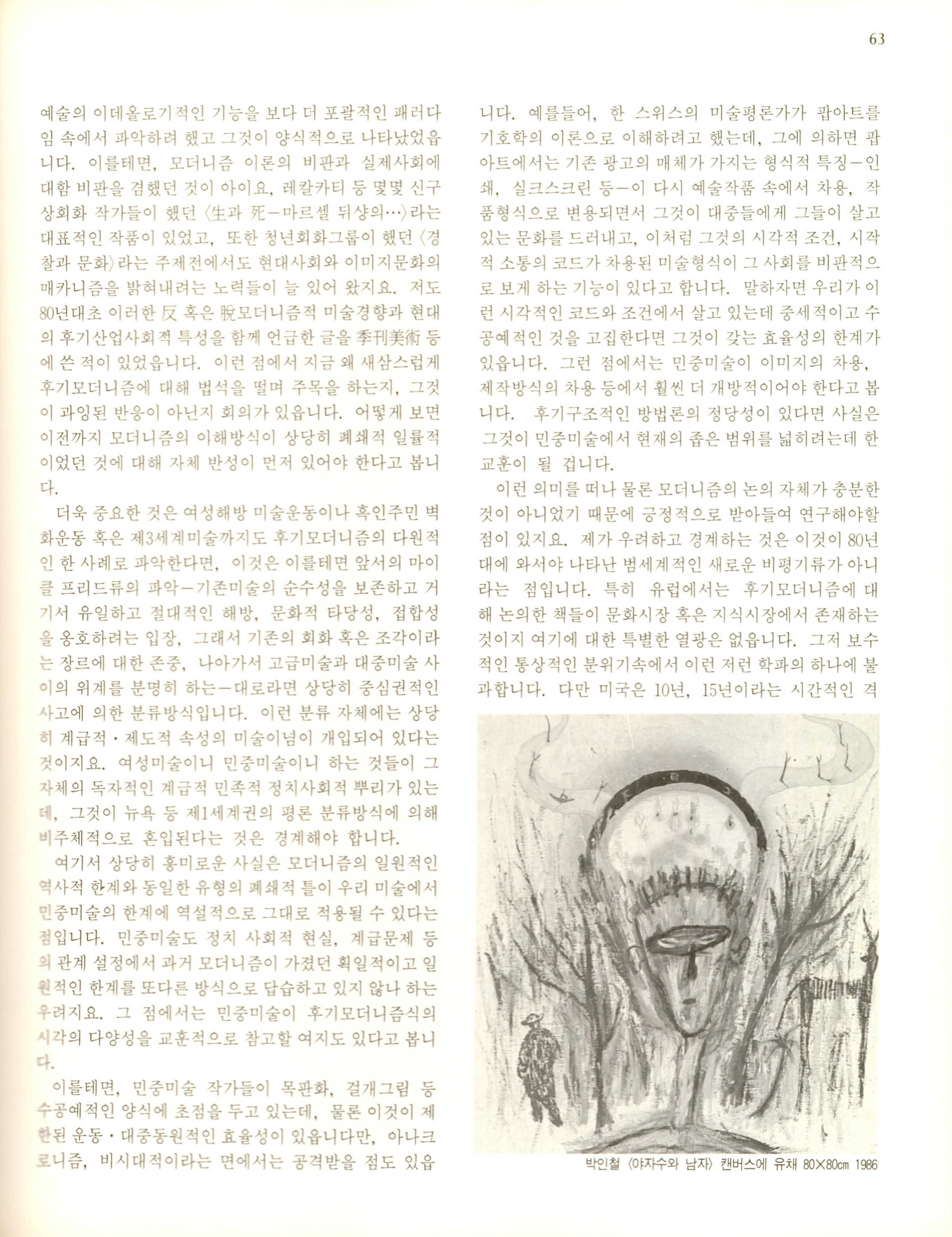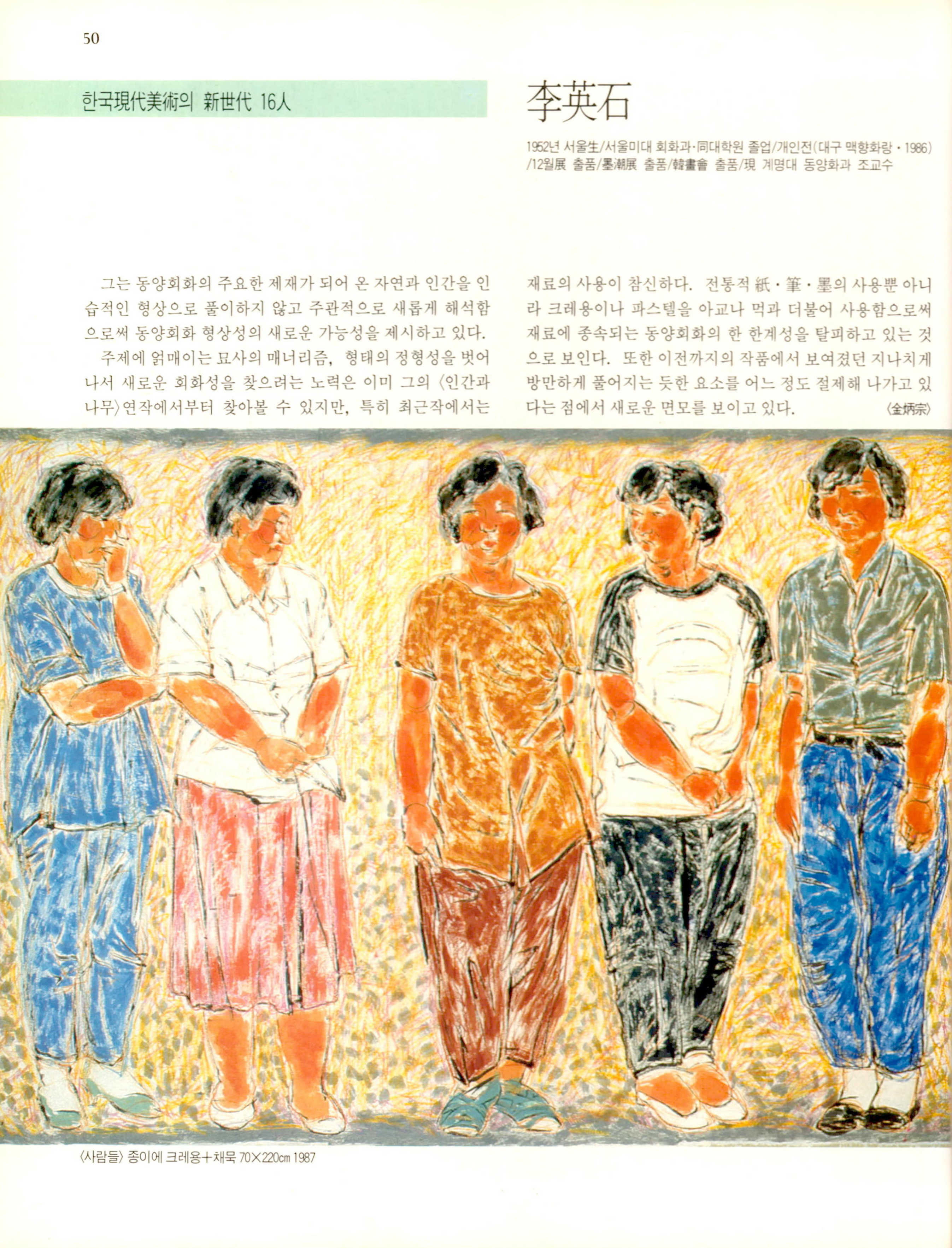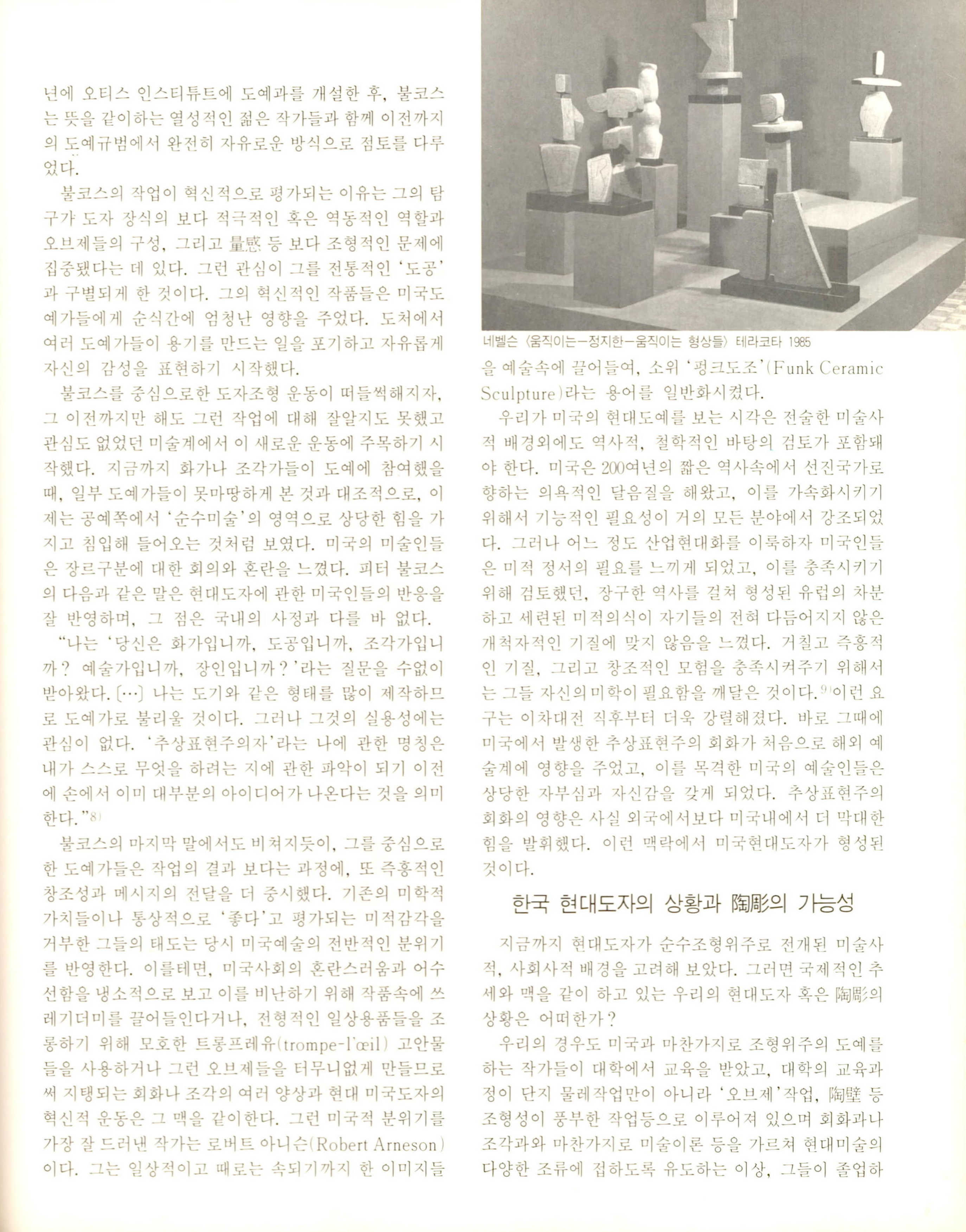1988년 3월 15일에 발행된 계간미술 45 1988봄호로 작품 <머리의 손가락>(브론즈, 45X19X24cm, 1986), <퍼스컴>(브론즈, 27X37X36cm, 1987), <머리의 손가락>(석고에 은박, 20X14X15cm, 1986), <神(신)의 젖줄>(브론즈, 31X19X18cm, 1986)과 설명이 기술되어 있다.