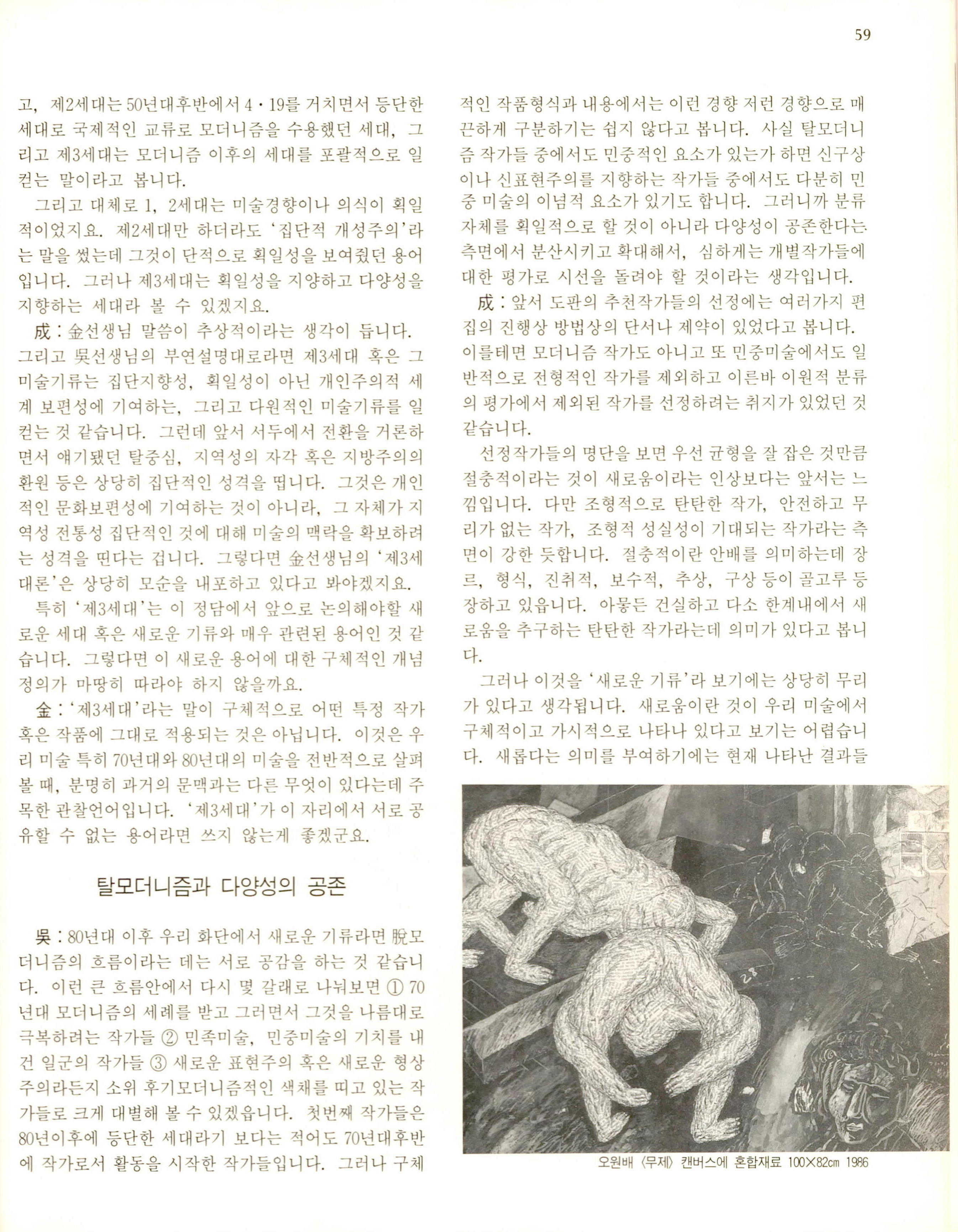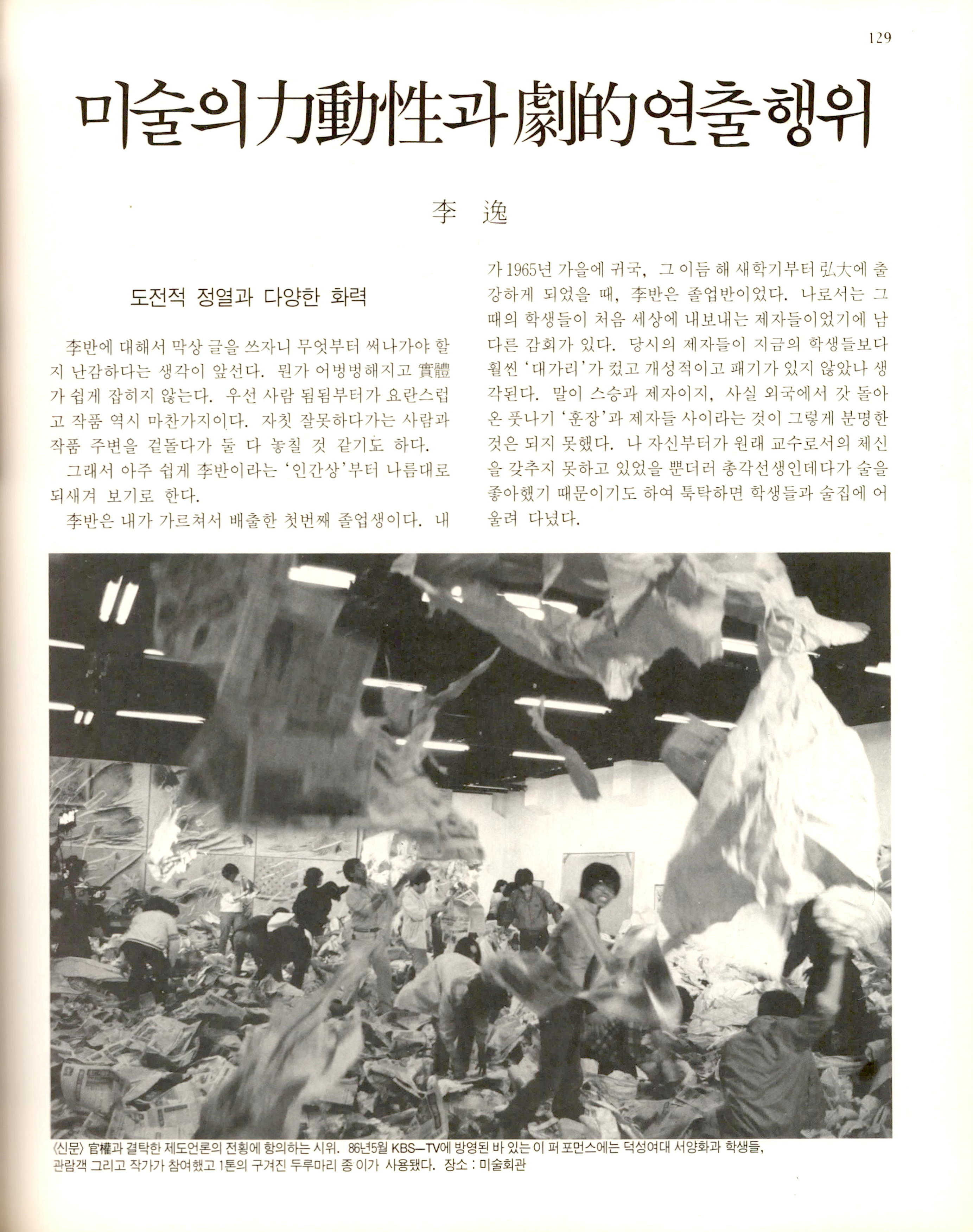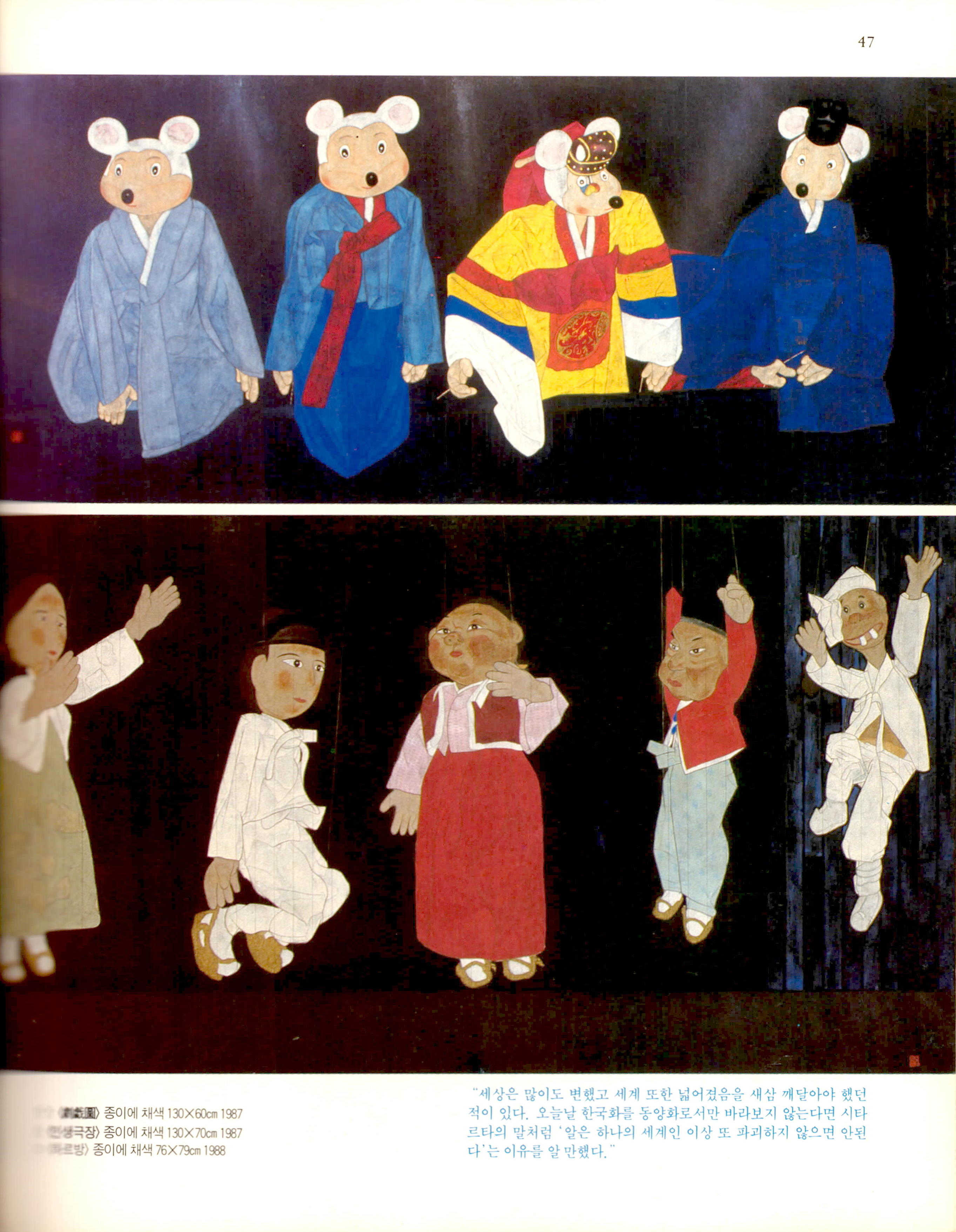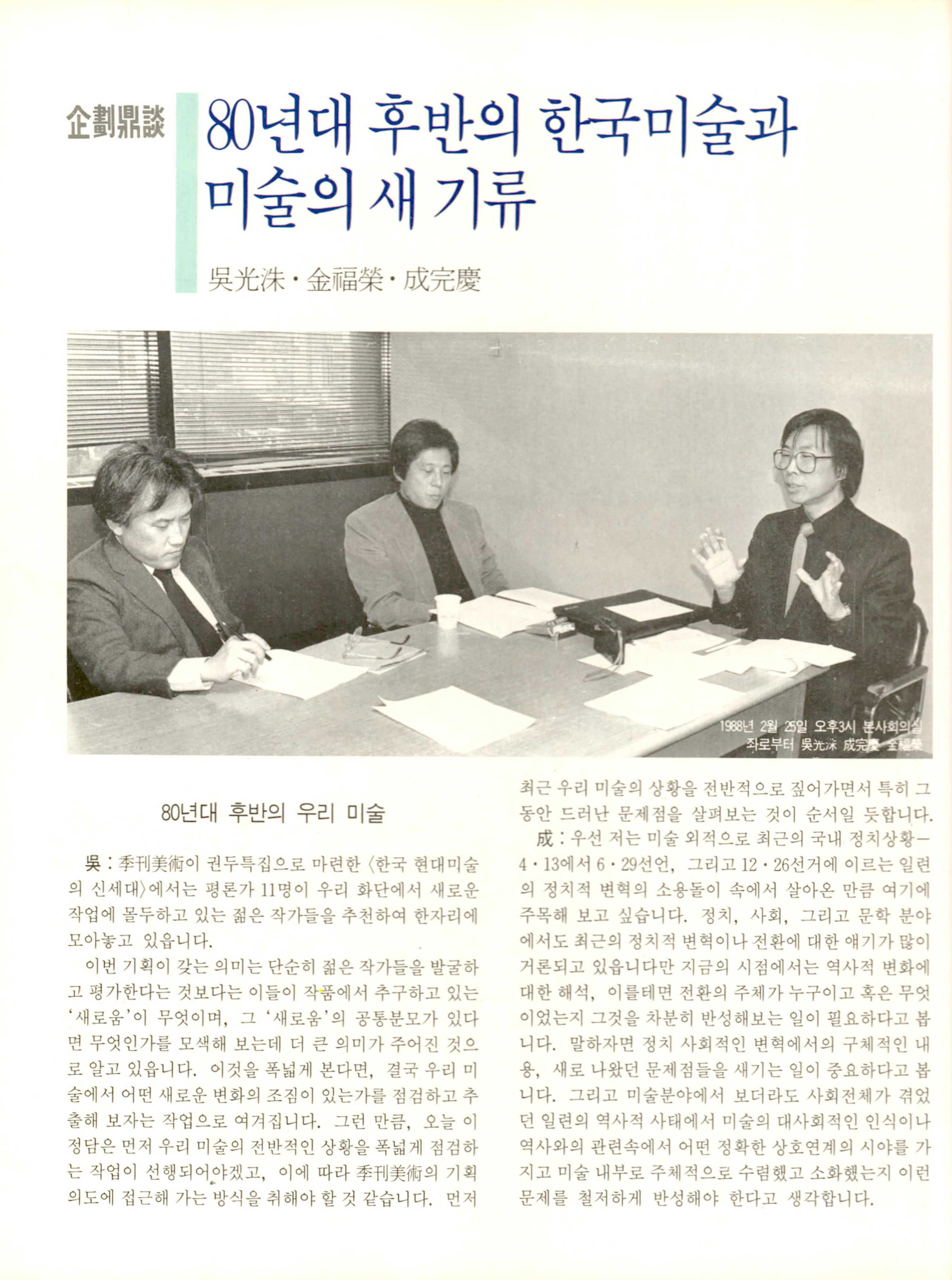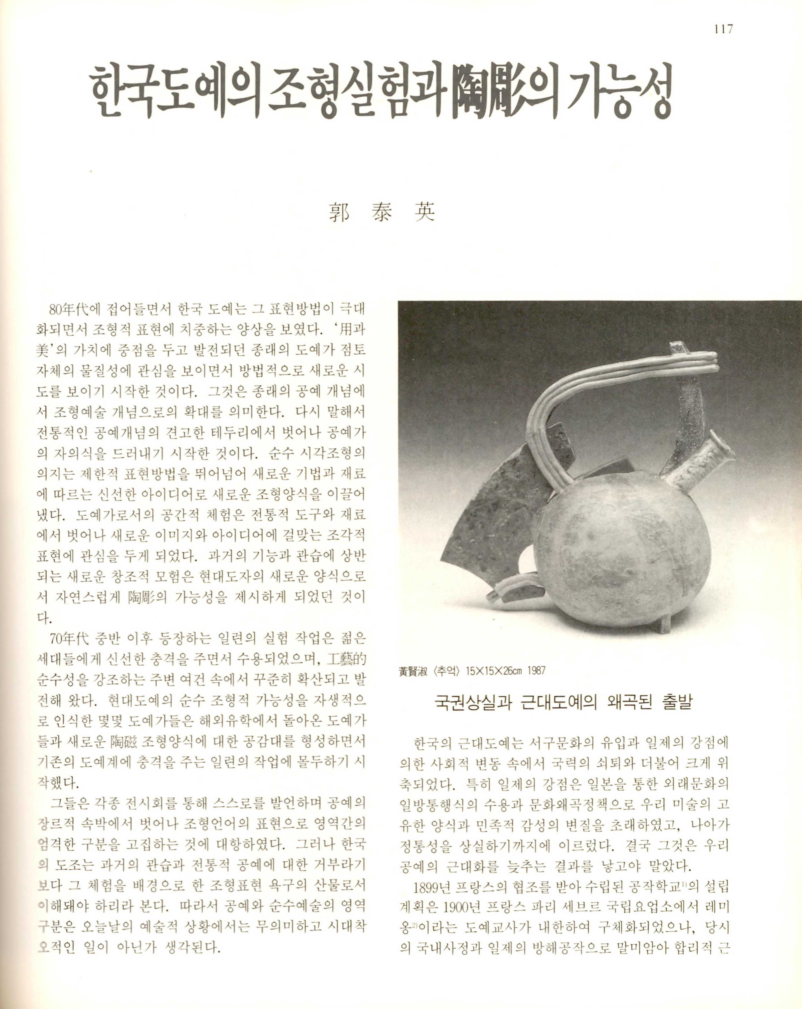 1988년 3월 15일에 발행된 계간미술 45 1988봄호로 작품 <머리의 손가락>(브론즈, 45X19X24cm, 1986), <퍼스컴>(브론즈, 27X37X36cm, 1987), <머리의 손가락>(석고에 은박, 20X14X15cm, 1986), <神(신)의 젖줄>(브론즈, 31X19X18cm, 1986)과 설명이 기술되어 있다.