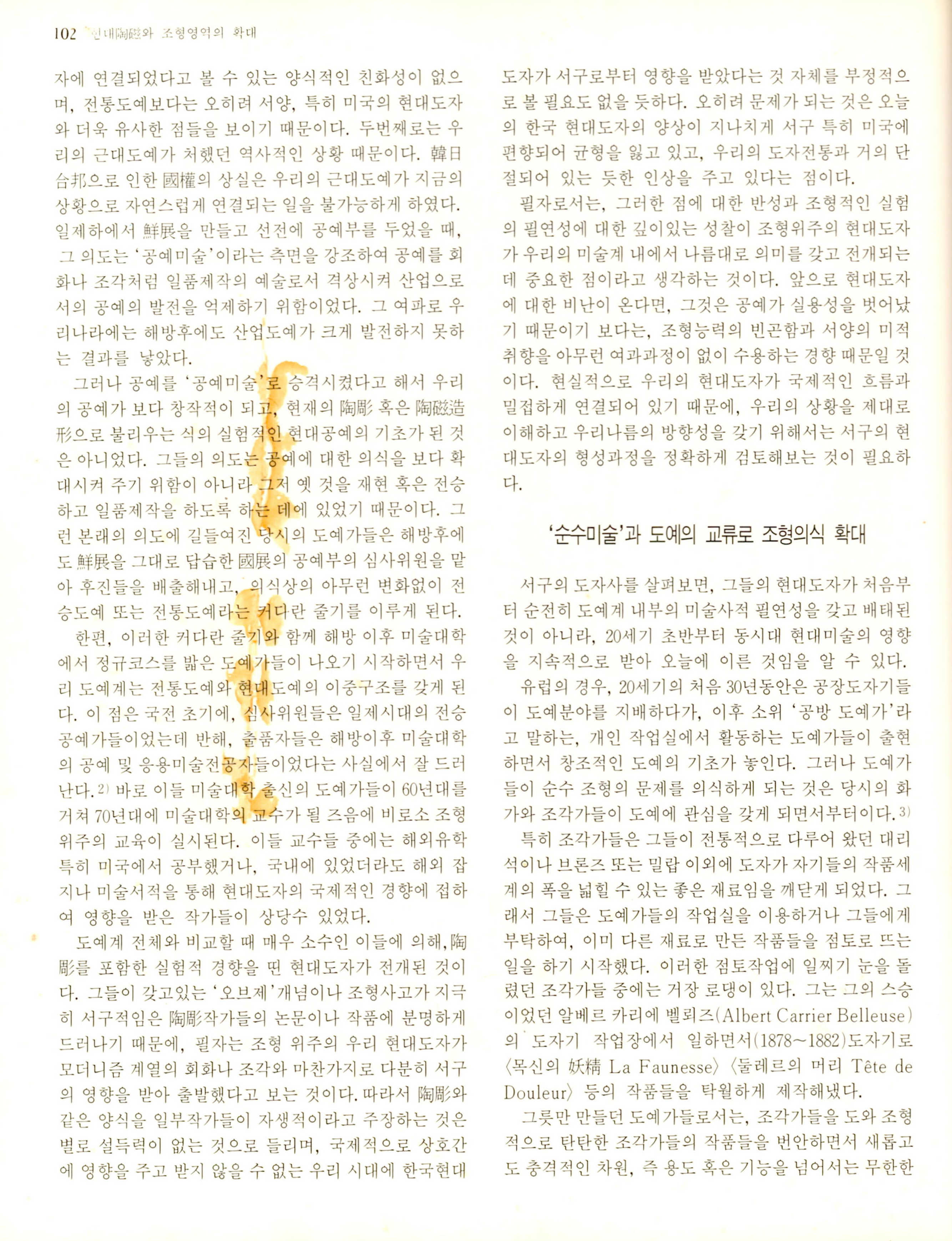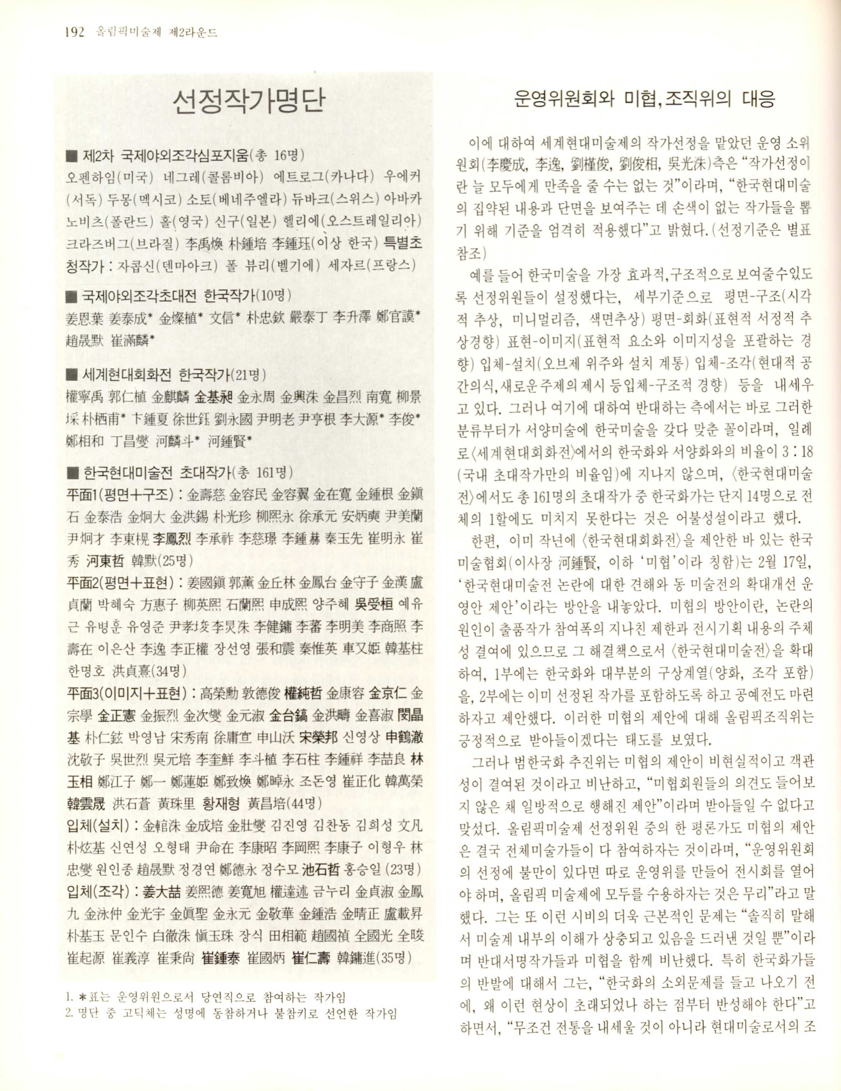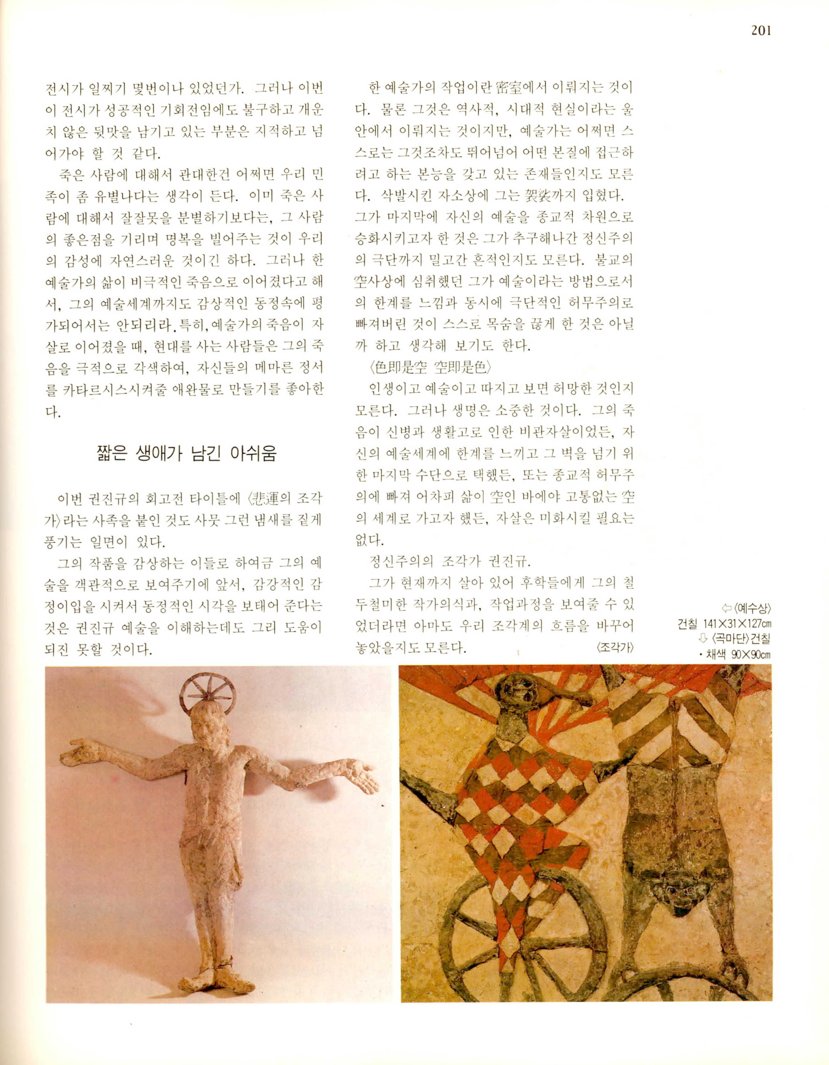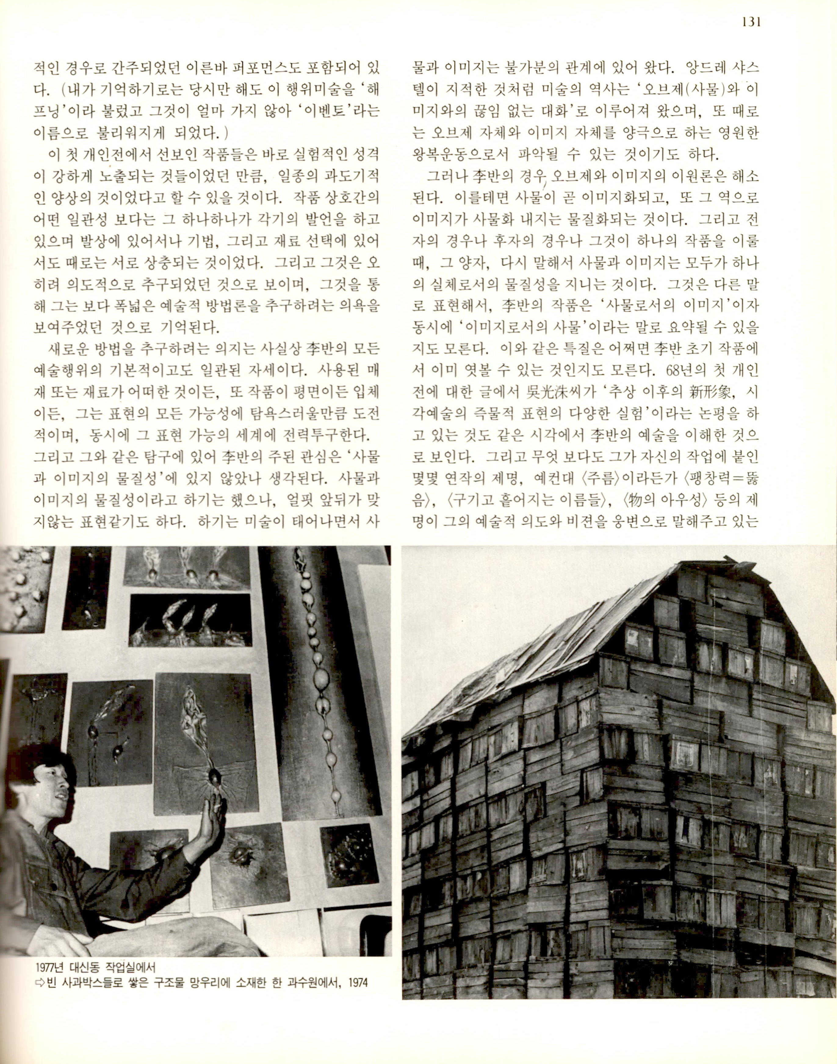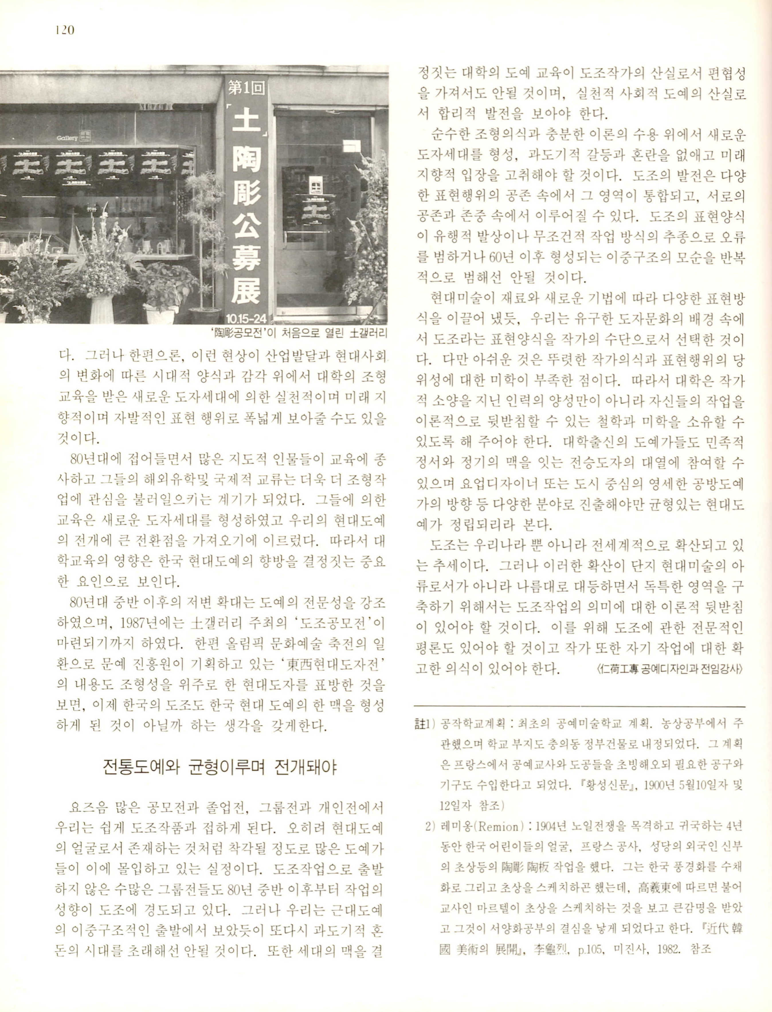 1988년 3월 15일에 발행된 계간미술 45 1988봄호로 작품 <머리의 손가락>(브론즈, 45X19X24cm, 1986), <퍼스컴>(브론즈, 27X37X36cm, 1987), <머리의 손가락>(석고에 은박, 20X14X15cm, 1986), <神(신)의 젖줄>(브론즈, 31X19X18cm, 1986)과 설명이 기술되어 있다.