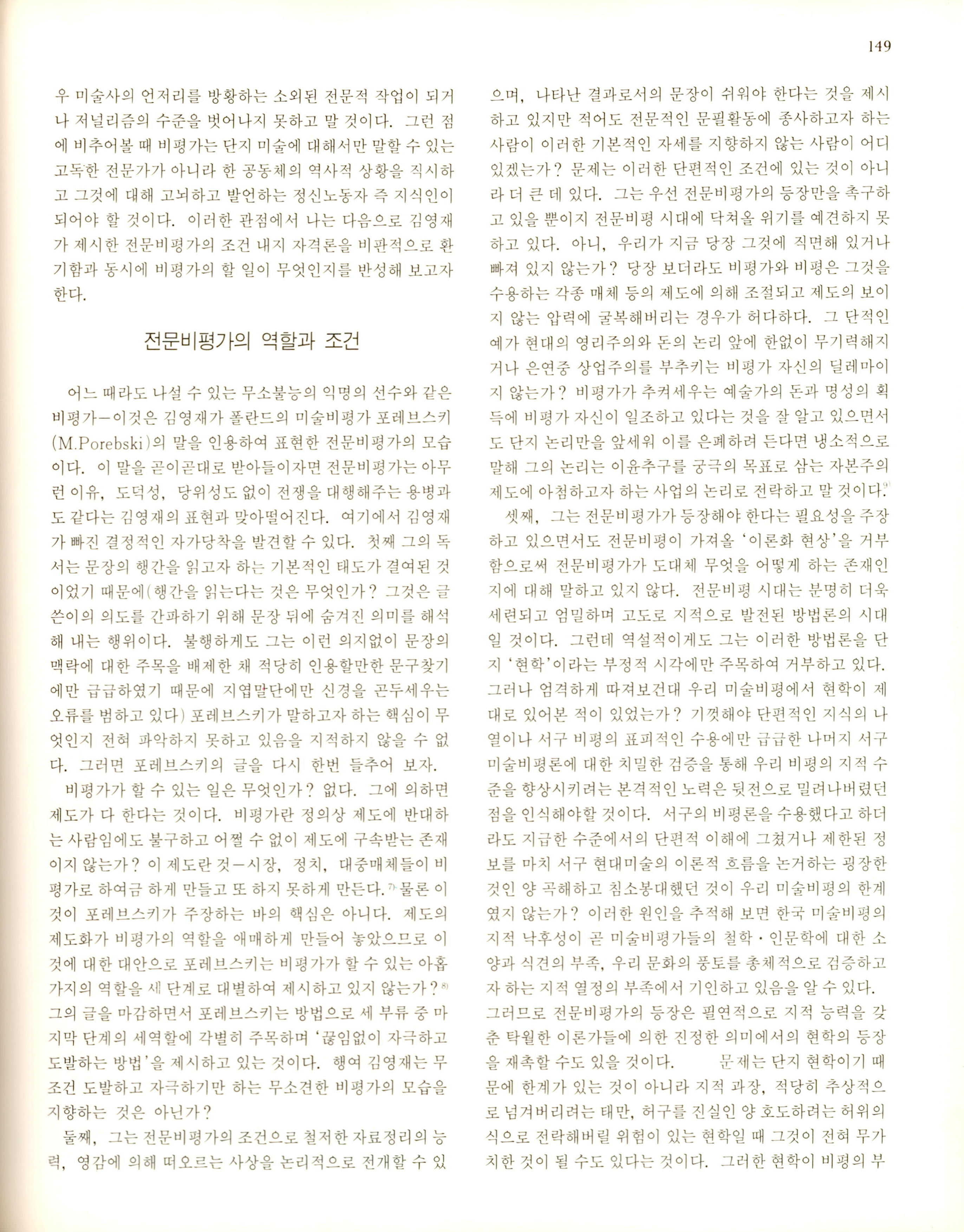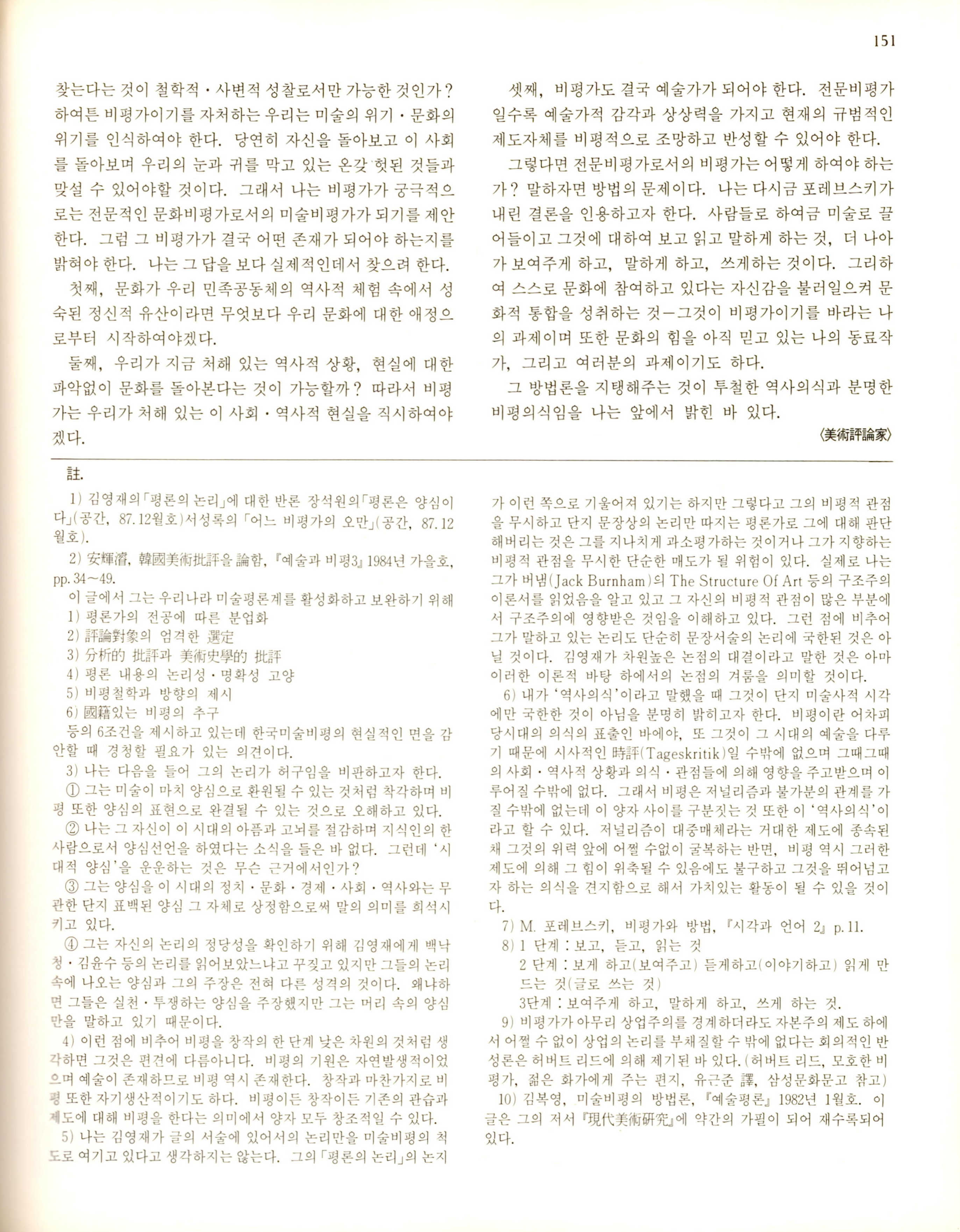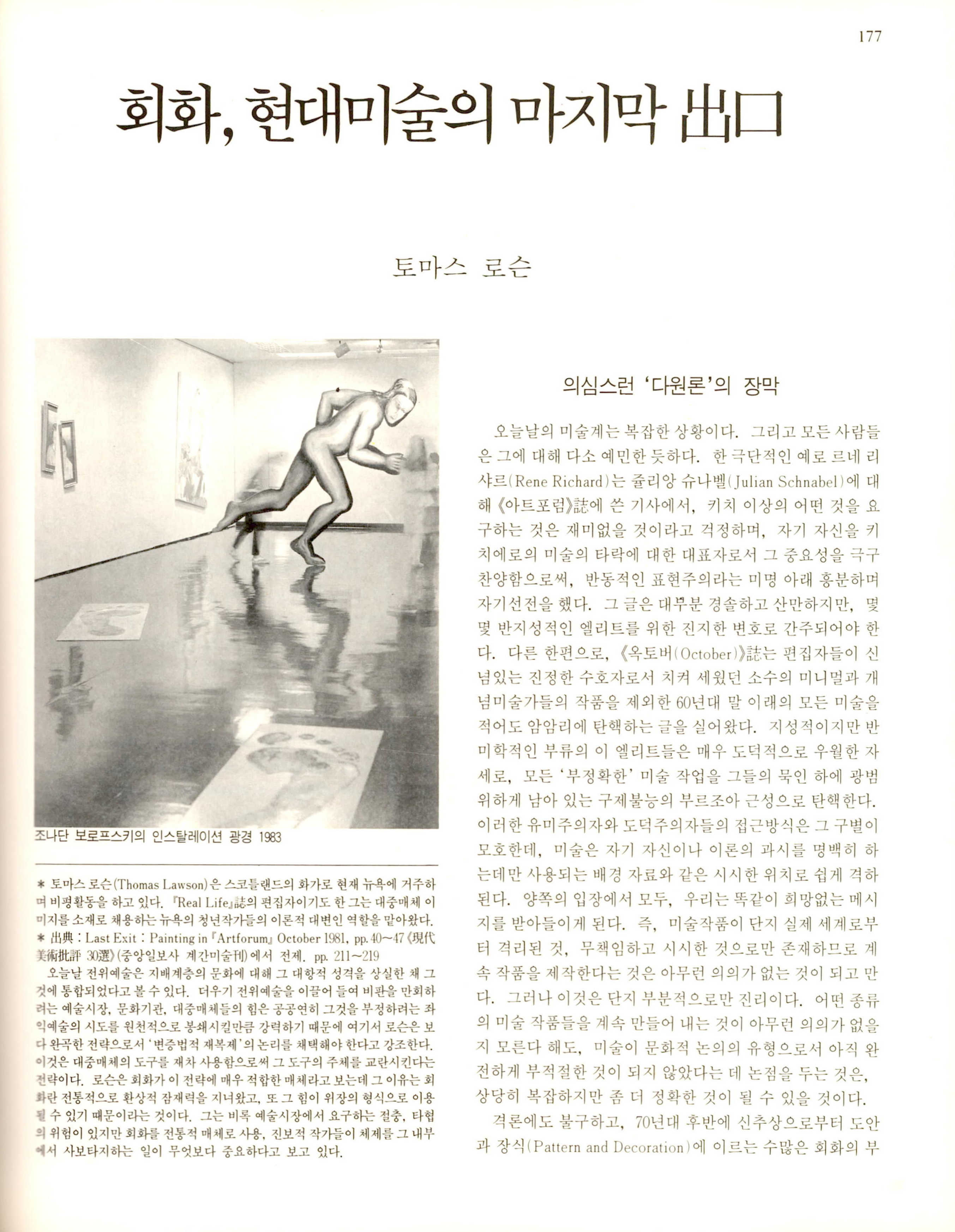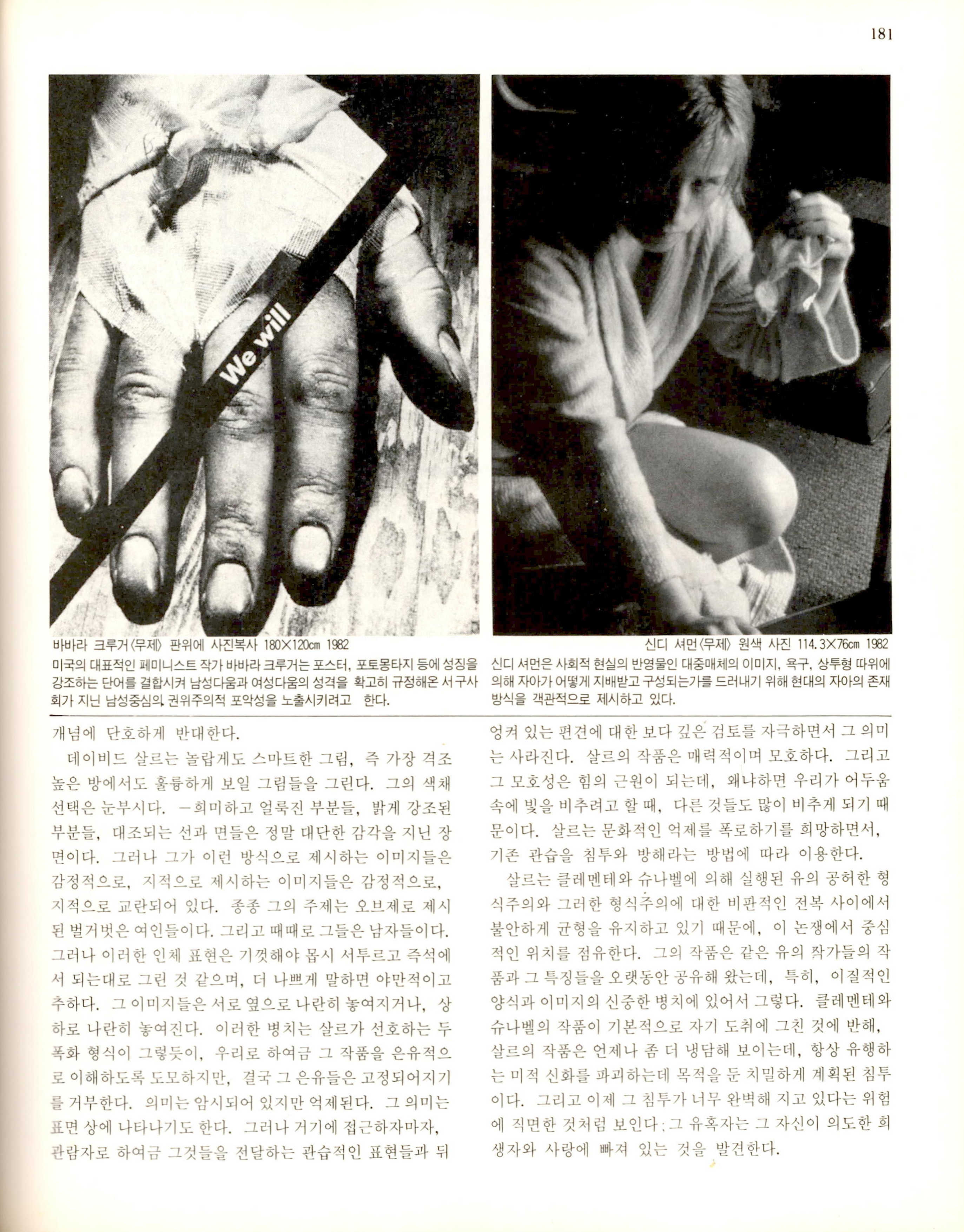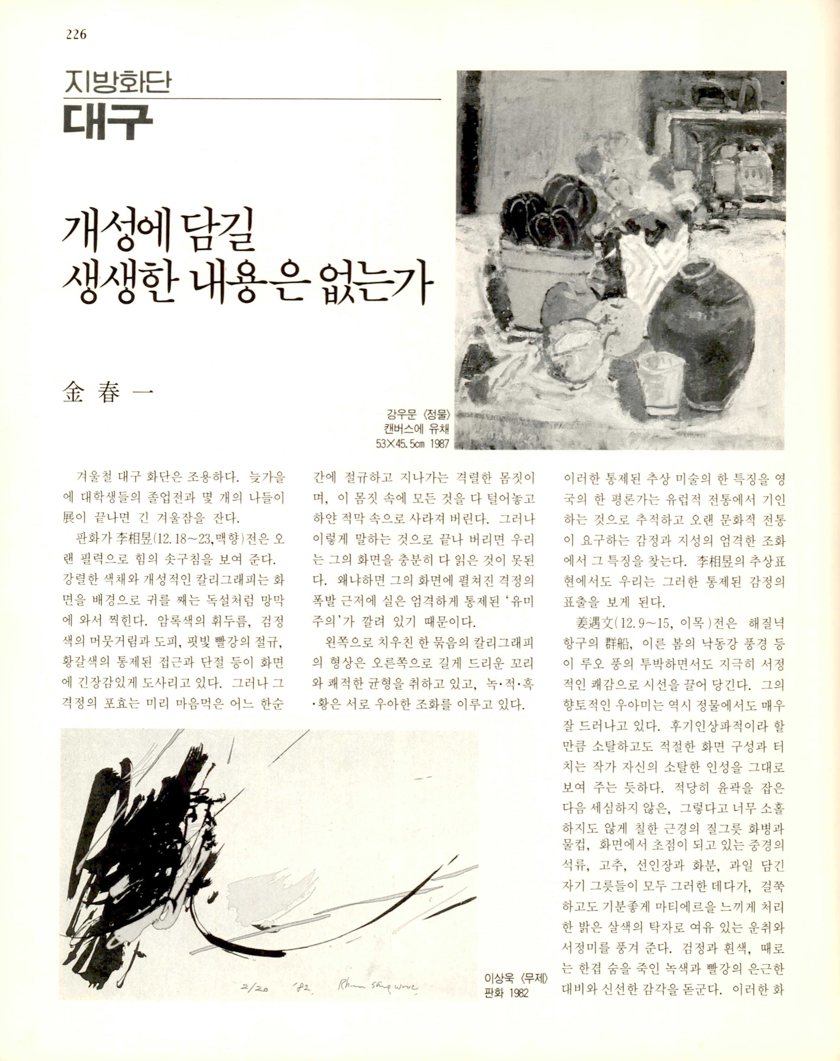 1988년 3월 15일에 발행된 계간미술 45 1988봄호로 작품 <머리의 손가락>(브론즈, 45X19X24cm, 1986), <퍼스컴>(브론즈, 27X37X36cm, 1987), <머리의 손가락>(석고에 은박, 20X14X15cm, 1986), <神(신)의 젖줄>(브론즈, 31X19X18cm, 1986)과 설명이 기술되어 있다.
