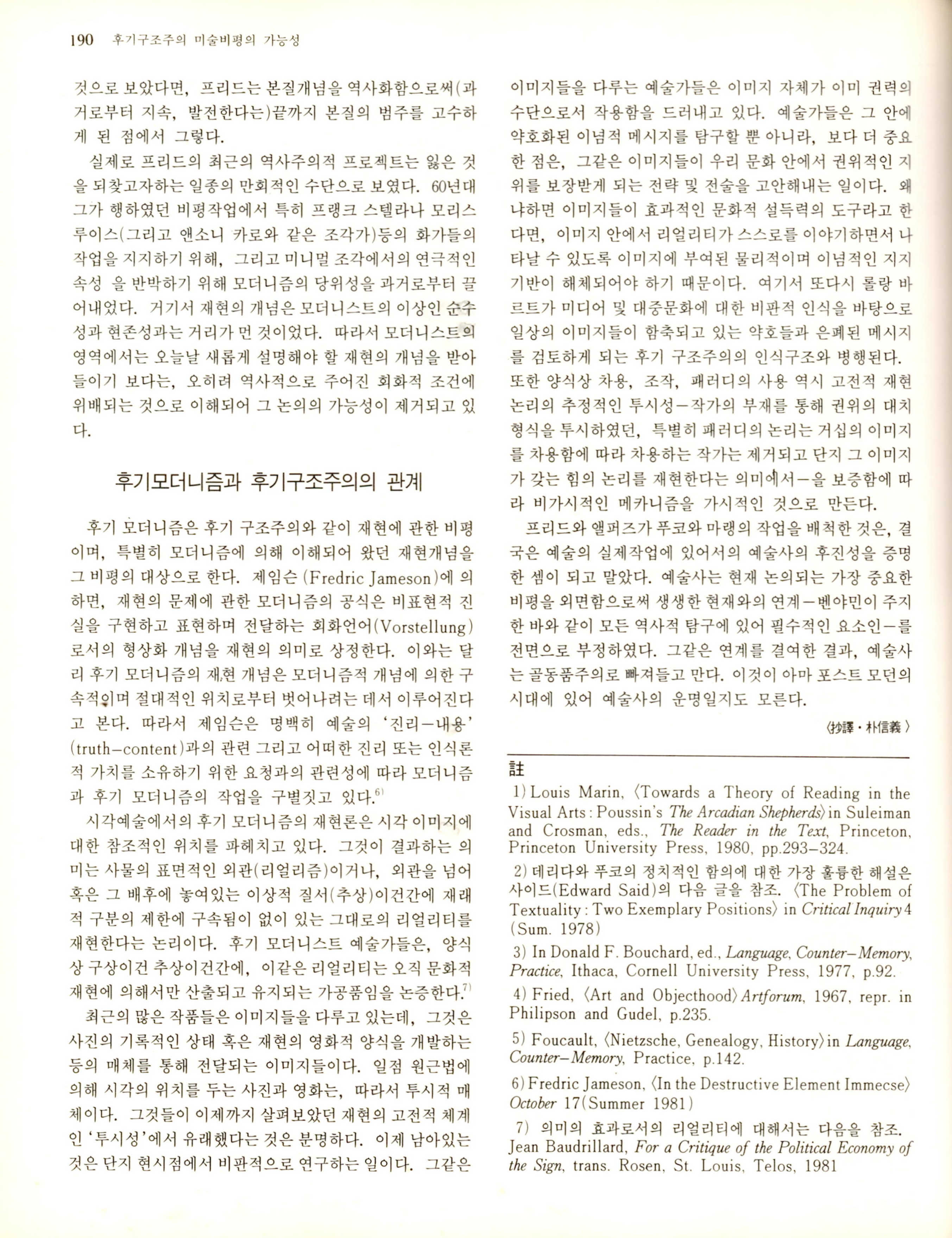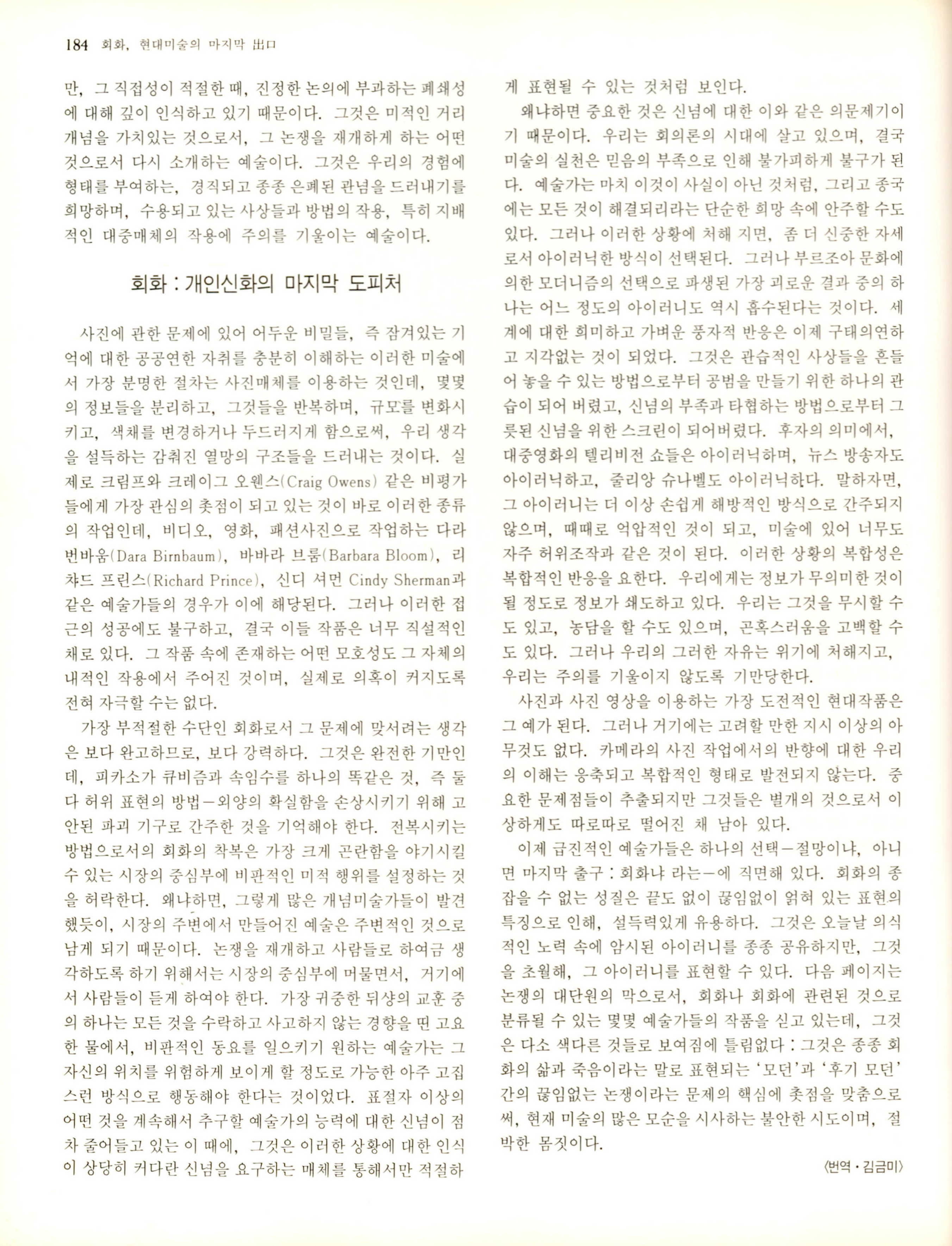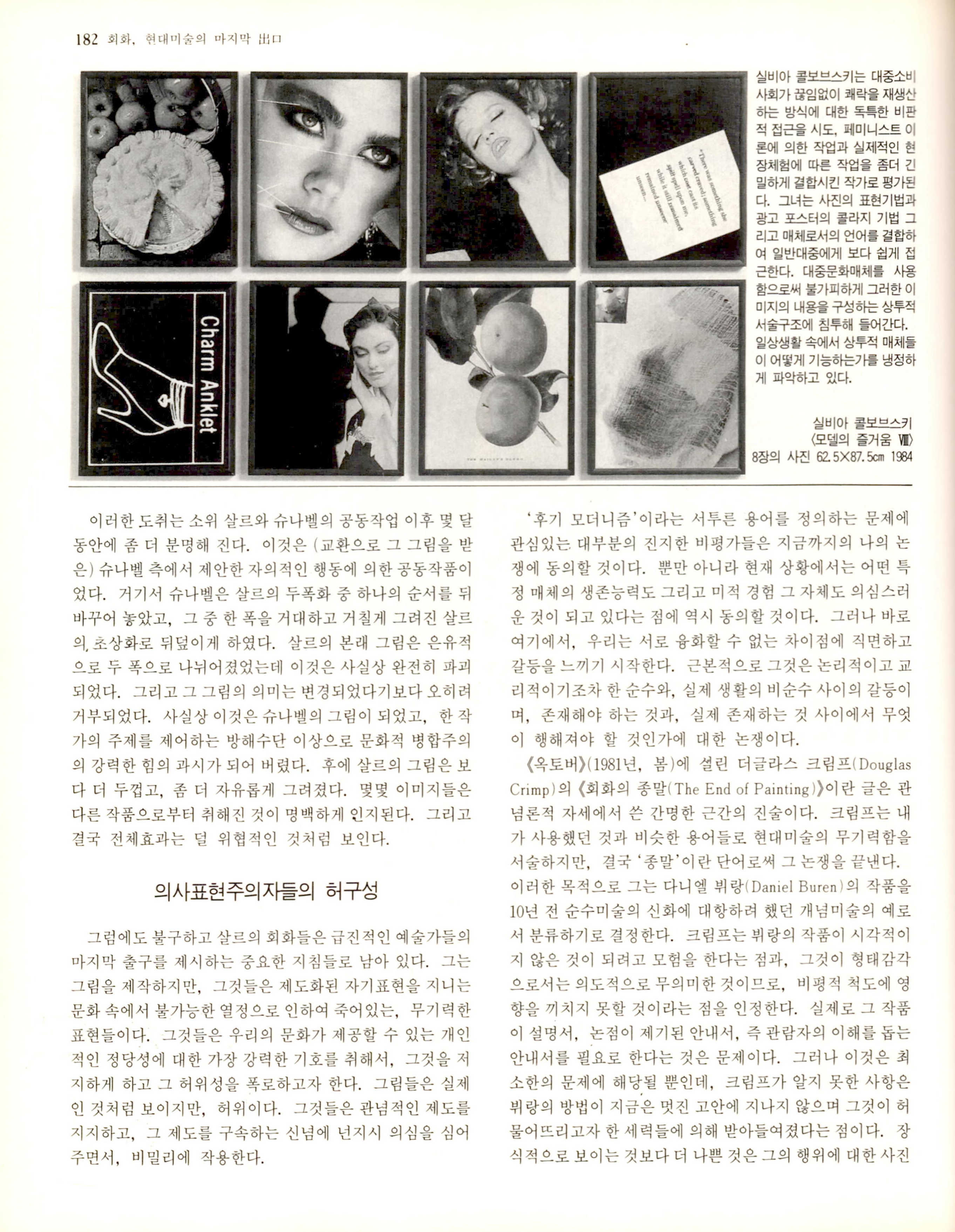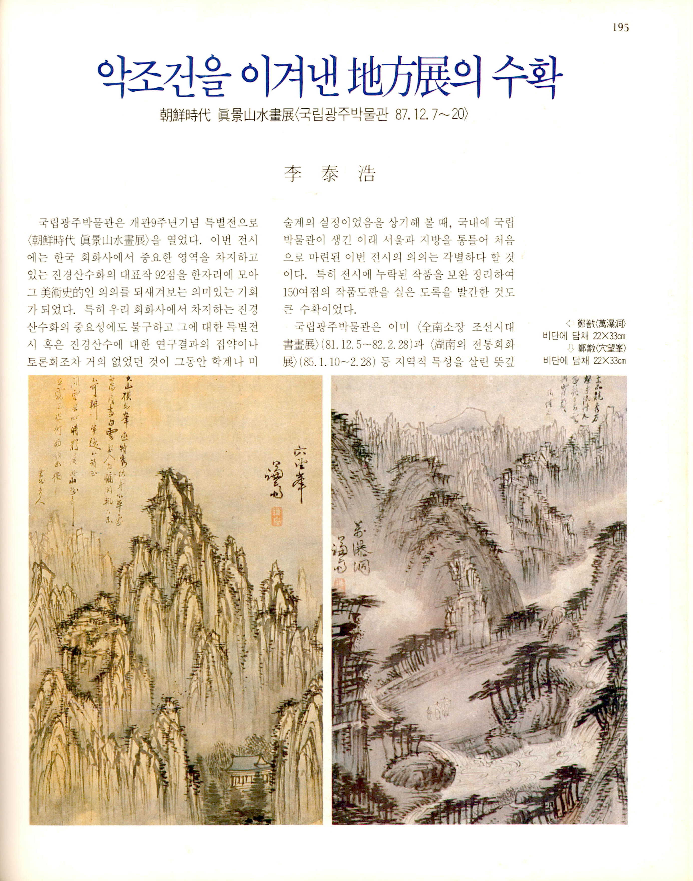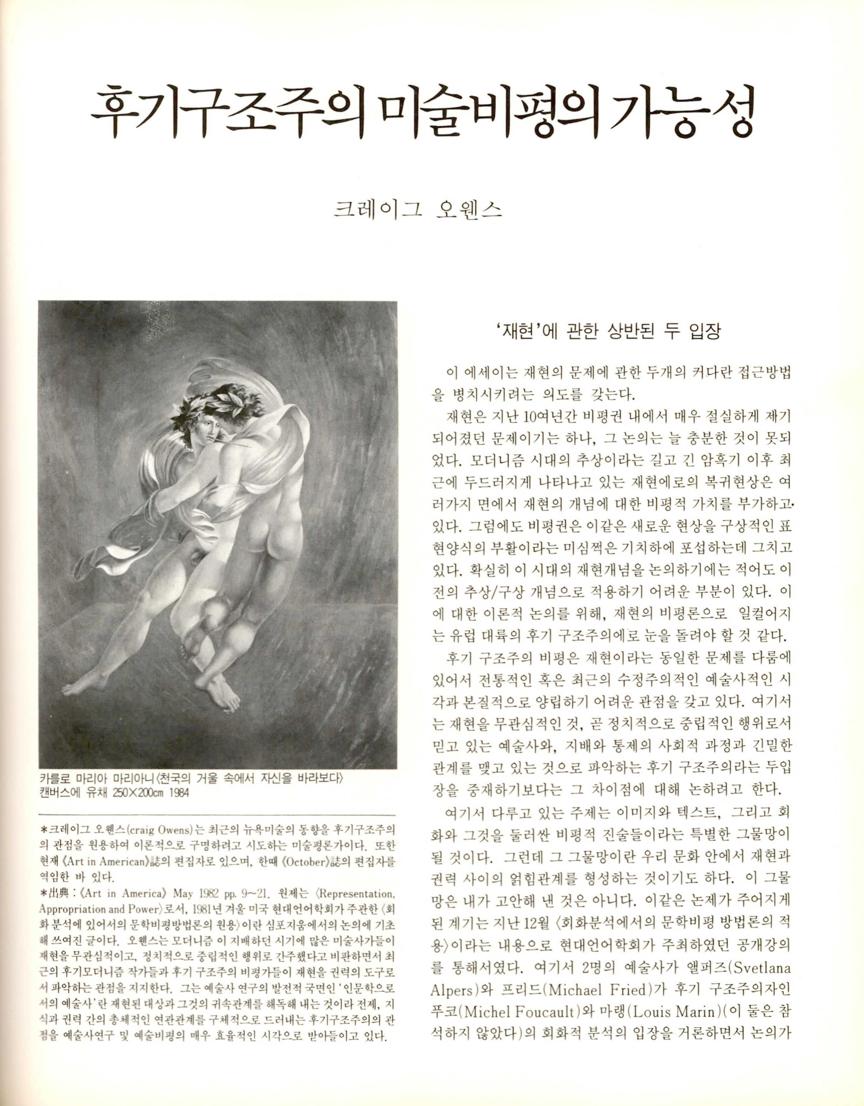 1988년 3월 15일에 발행된 계간미술 45 1988봄호로 작품 <머리의 손가락>(브론즈, 45X19X24cm, 1986), <퍼스컴>(브론즈, 27X37X36cm, 1987), <머리의 손가락>(석고에 은박, 20X14X15cm, 1986), <神(신)의 젖줄>(브론즈, 31X19X18cm, 1986)과 설명이 기술되어 있다.