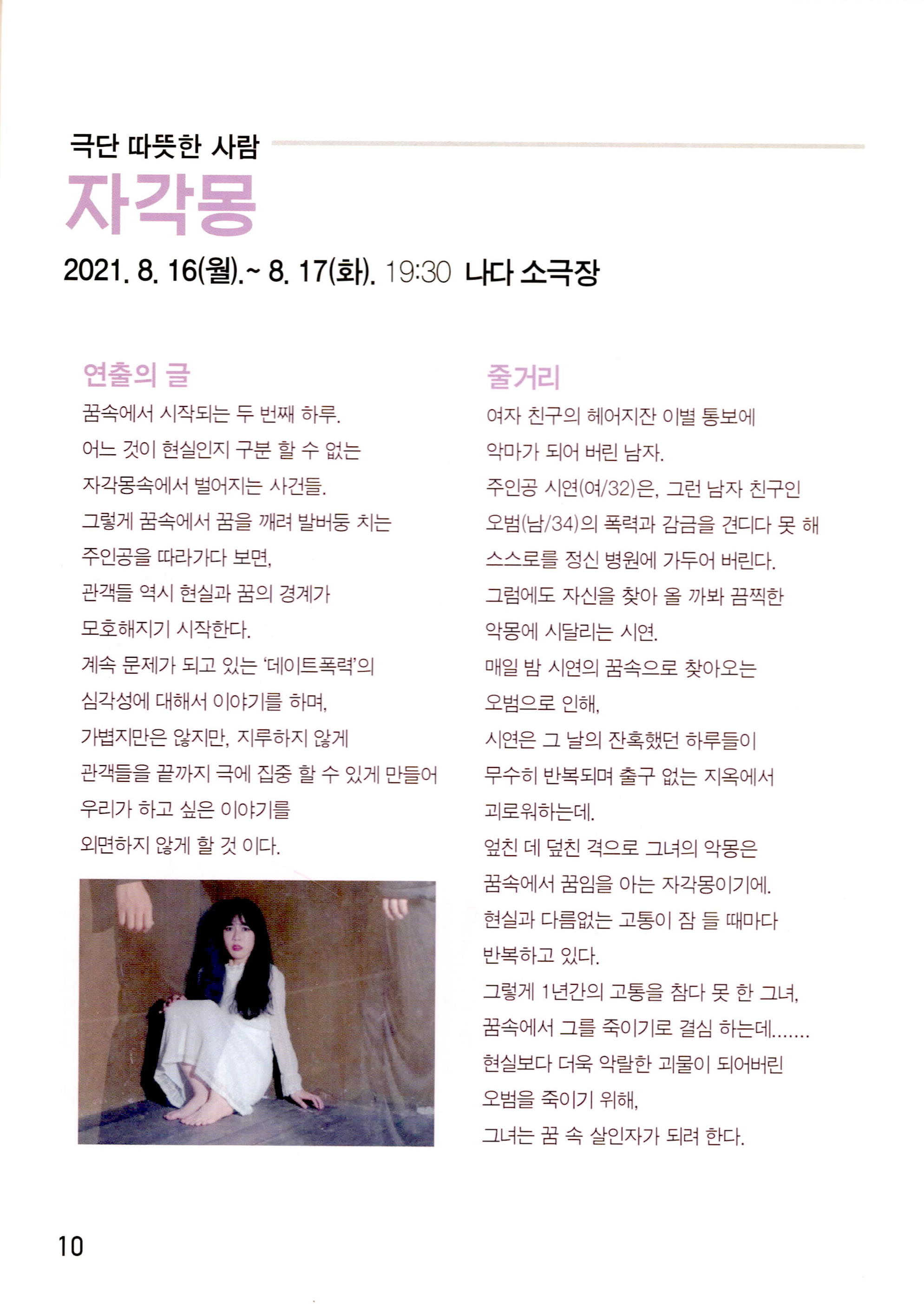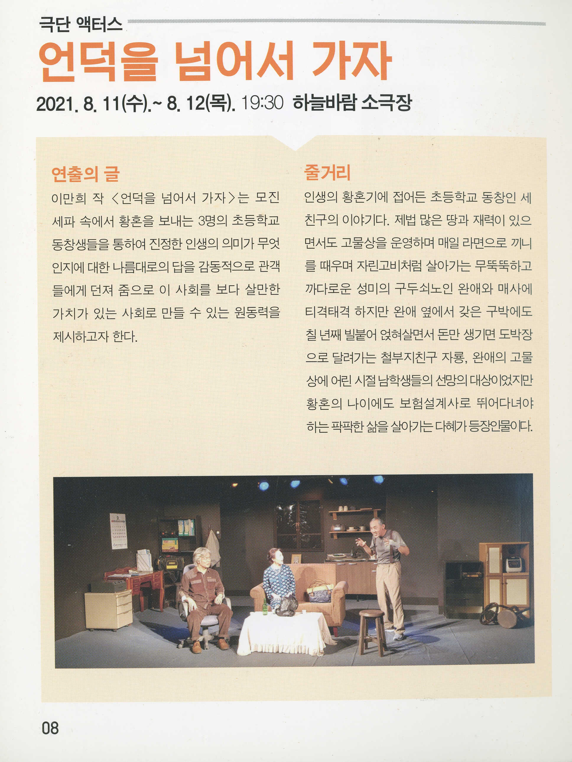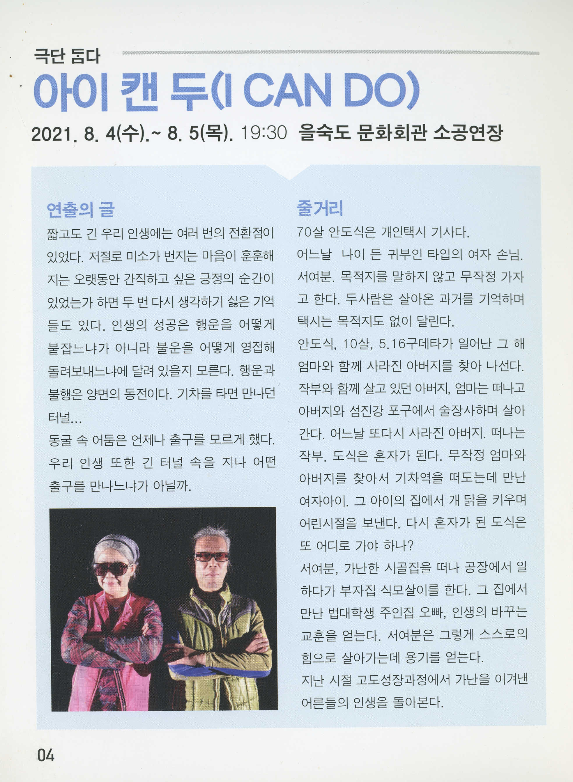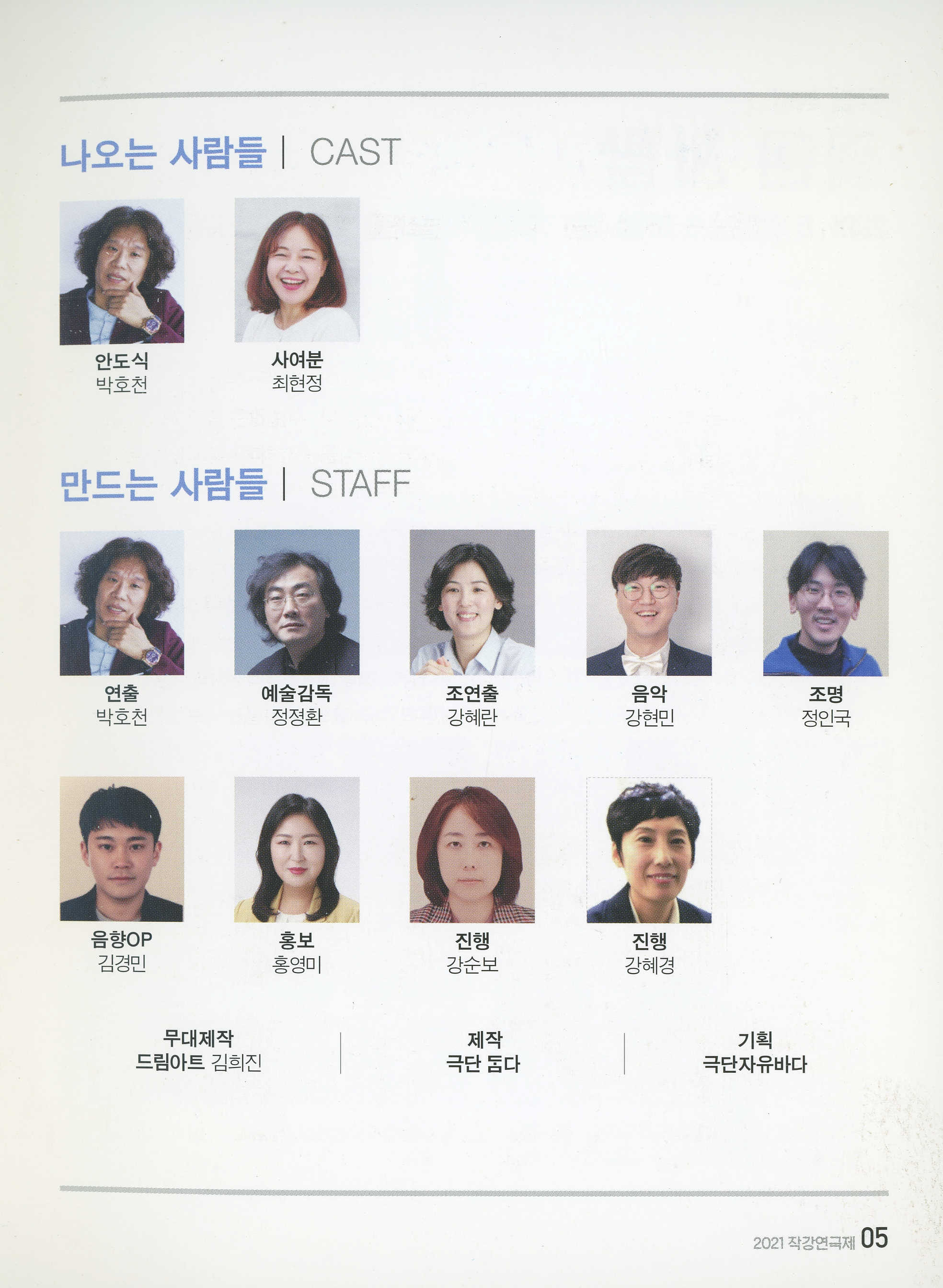 아이 캔 두(I CAN DO)_박호천, 최현정 / 죽은 사람_박명정, 권혁진, 이현옥 / 언덕을 넘어서 가자_호민, 구민주, 오정국 / 자각몽_박유진, 유병영, 허석민 / 땡큐! 돈키호테_박찬영, 이은주