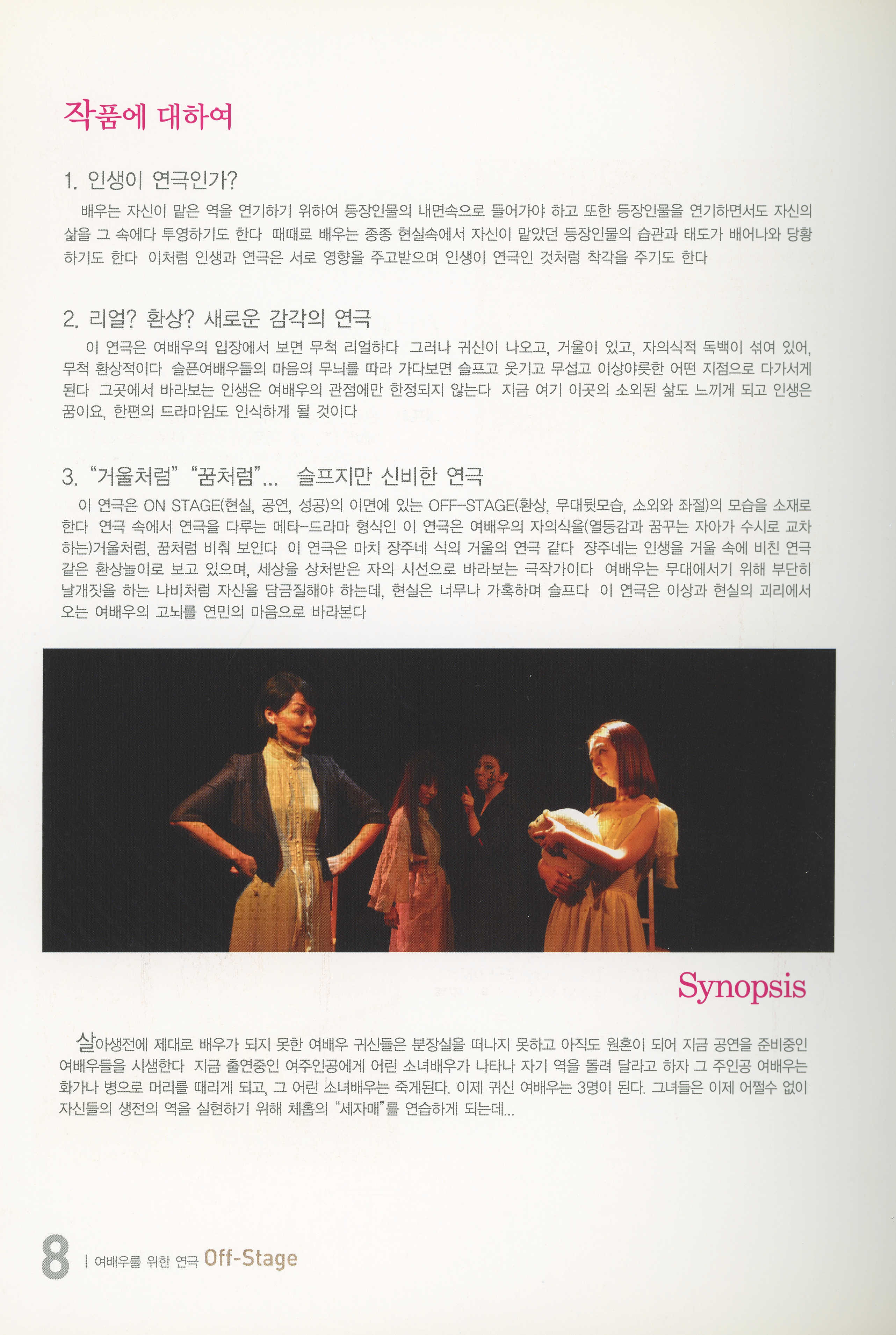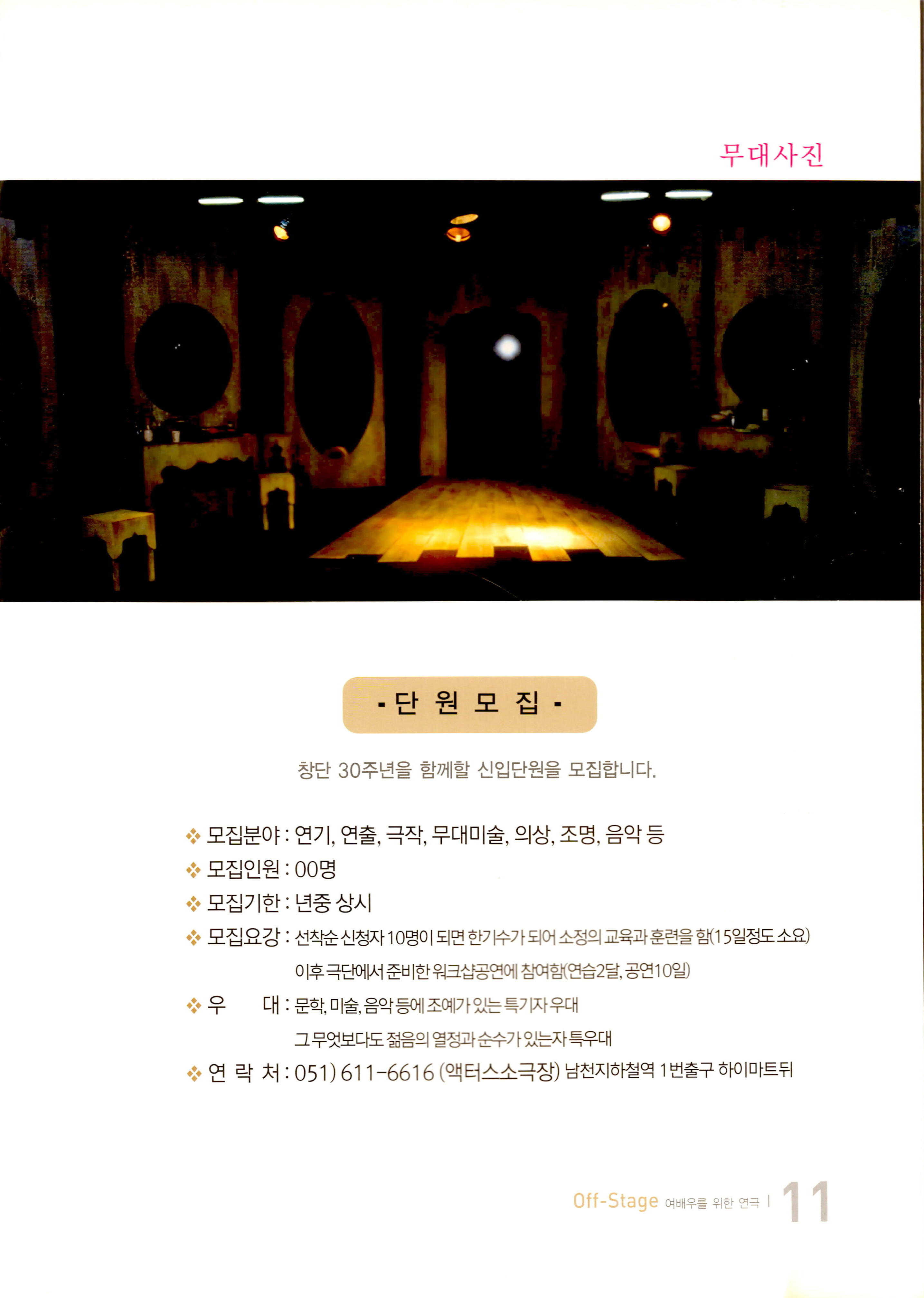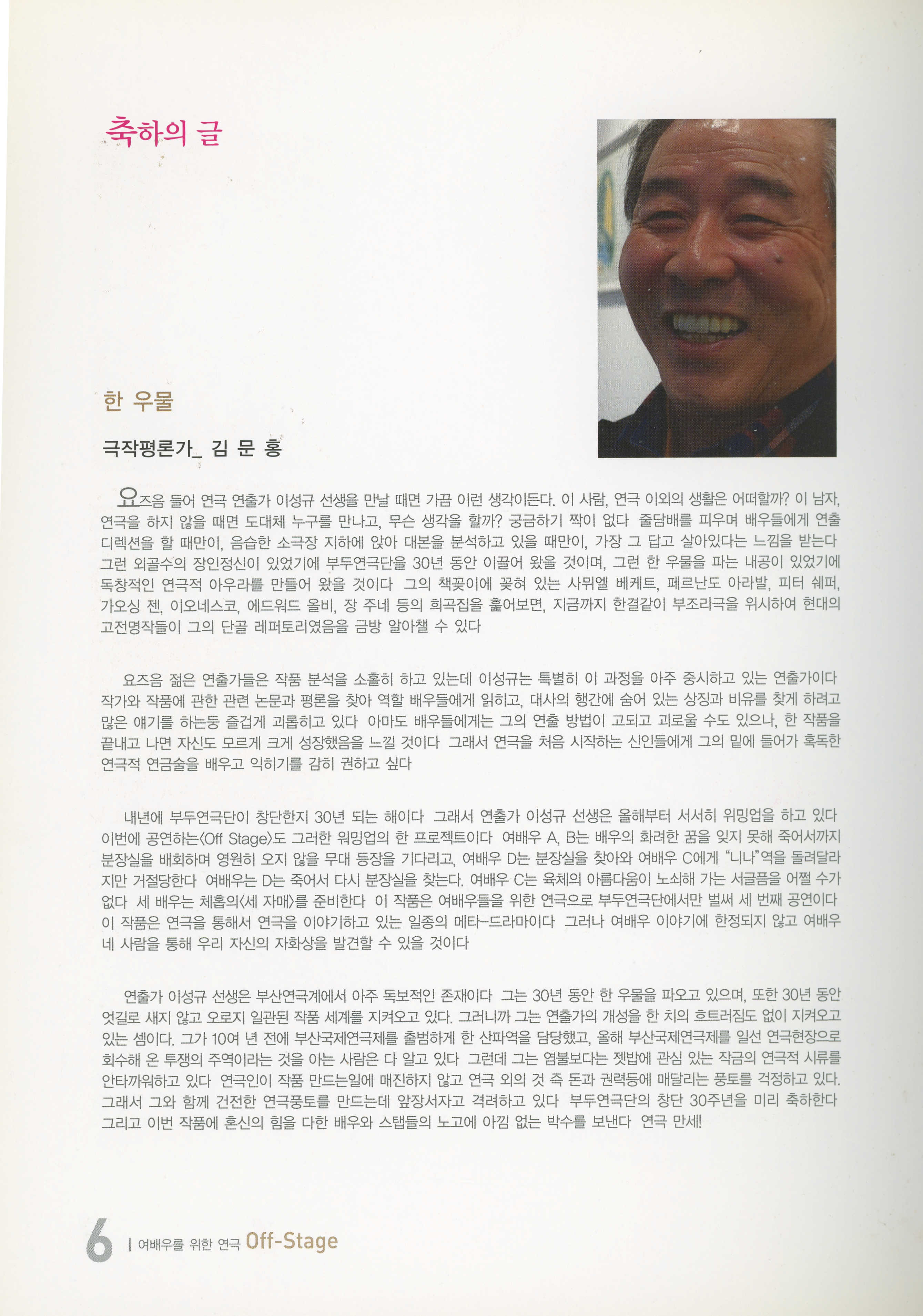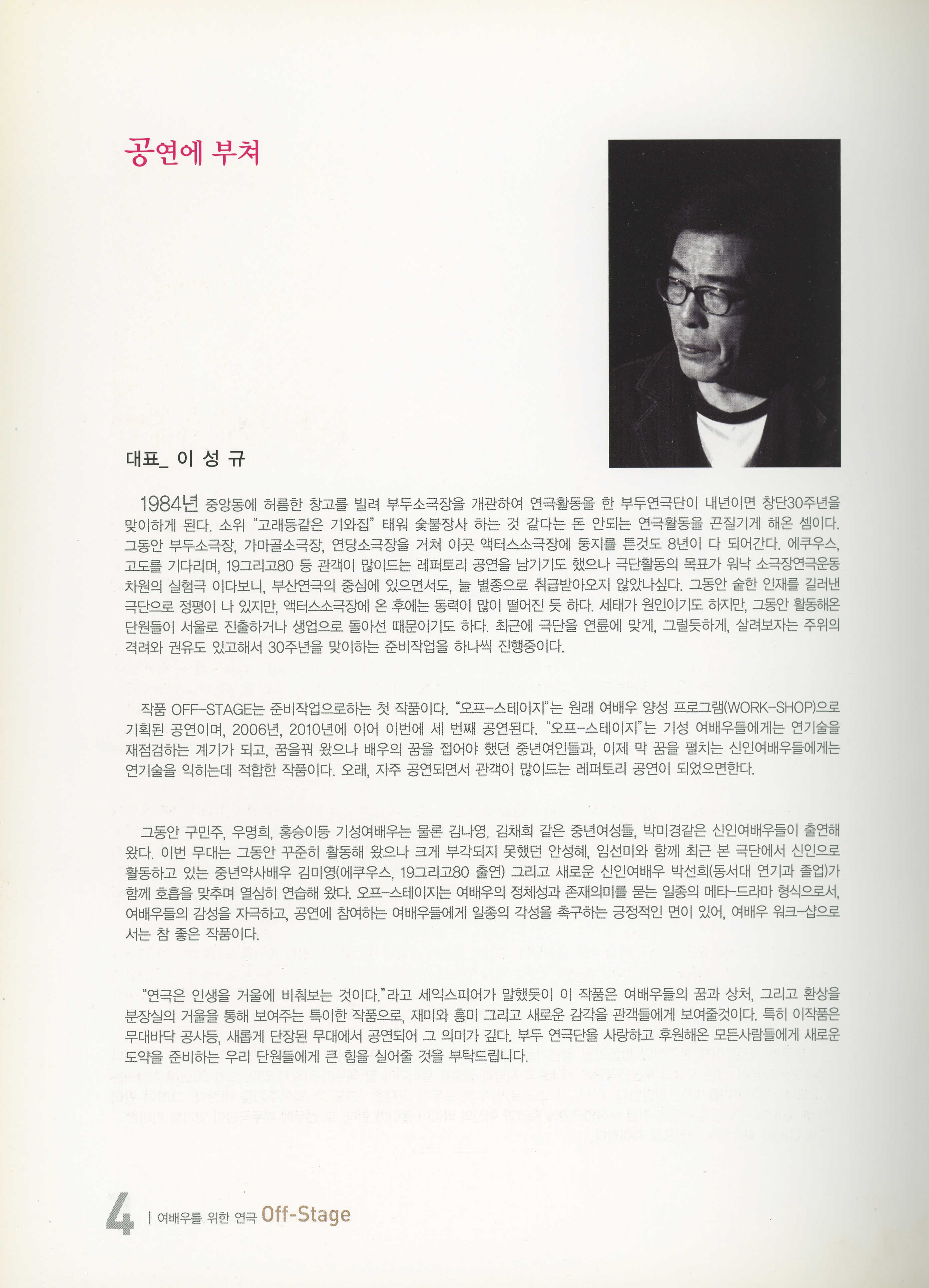 부두연극단 30주년맞이 준비공연 NO.1 / 부산소극장연극페스티발 참가작 《여배우를 위한 연극… 오프-스테이지(Off-Stage)》 프로그램북
