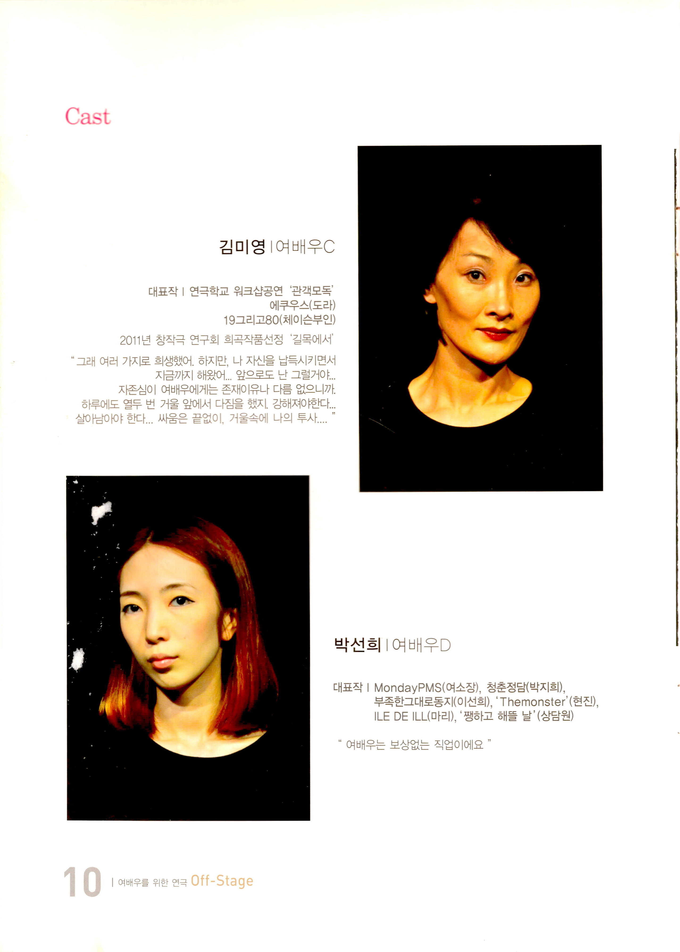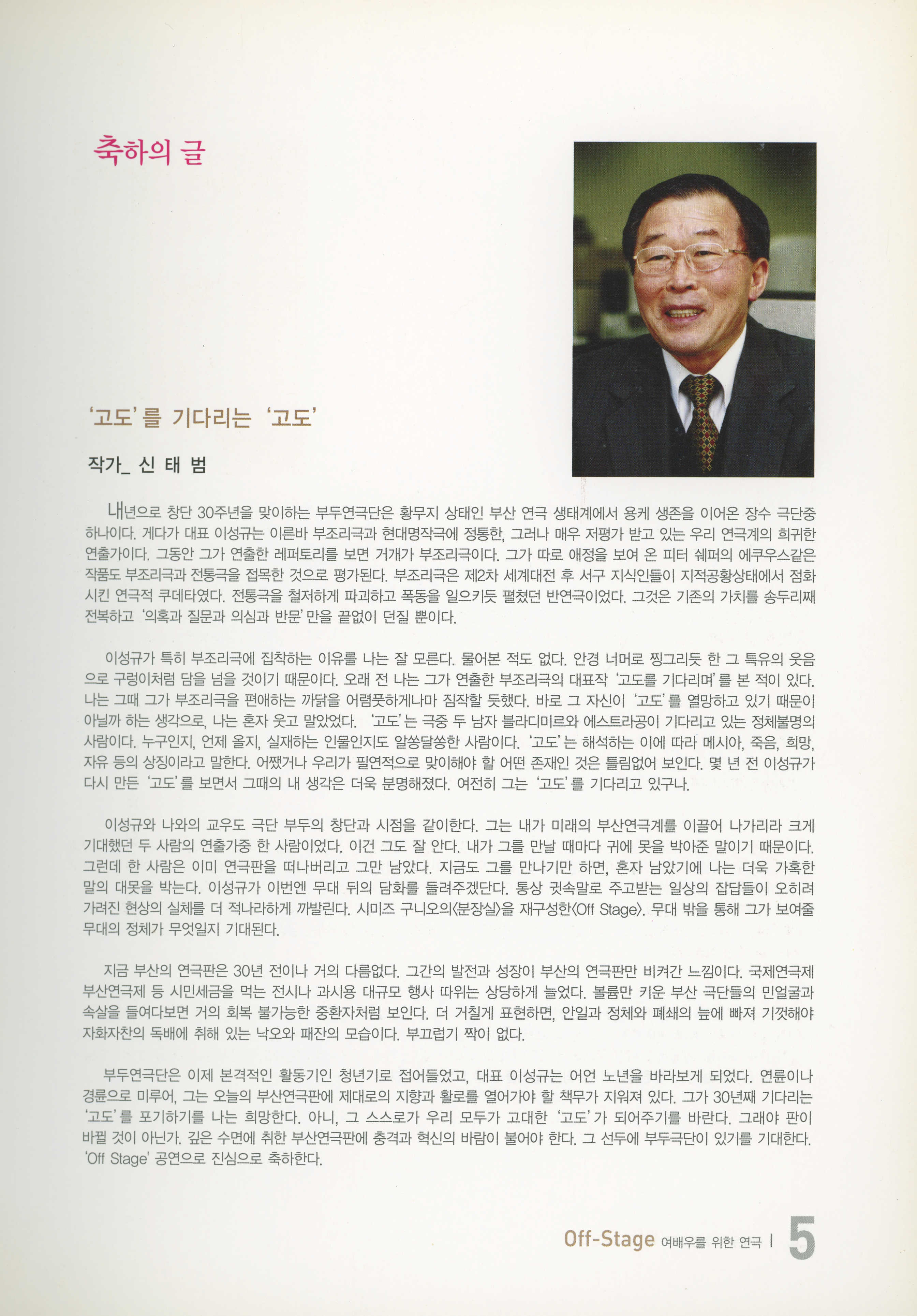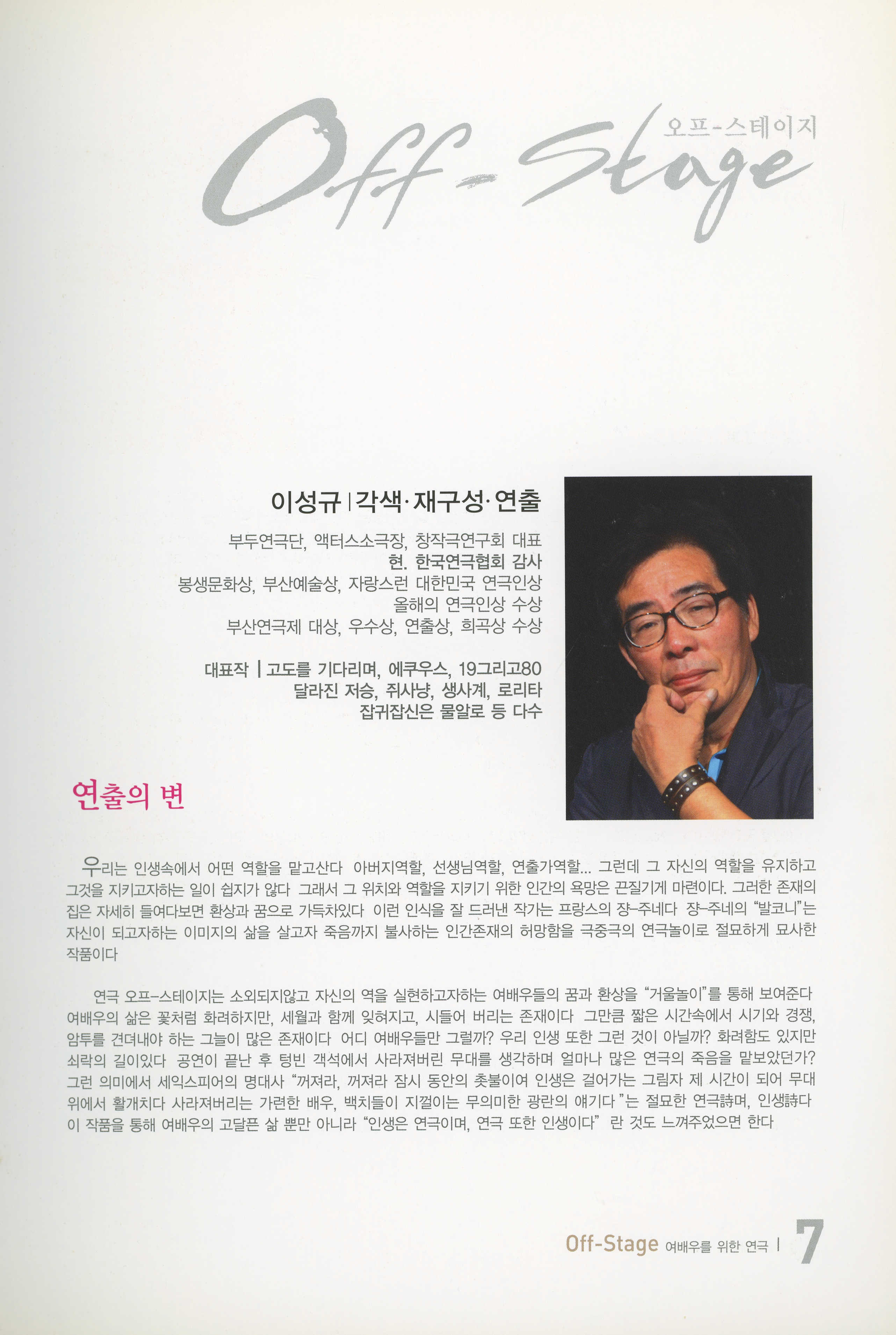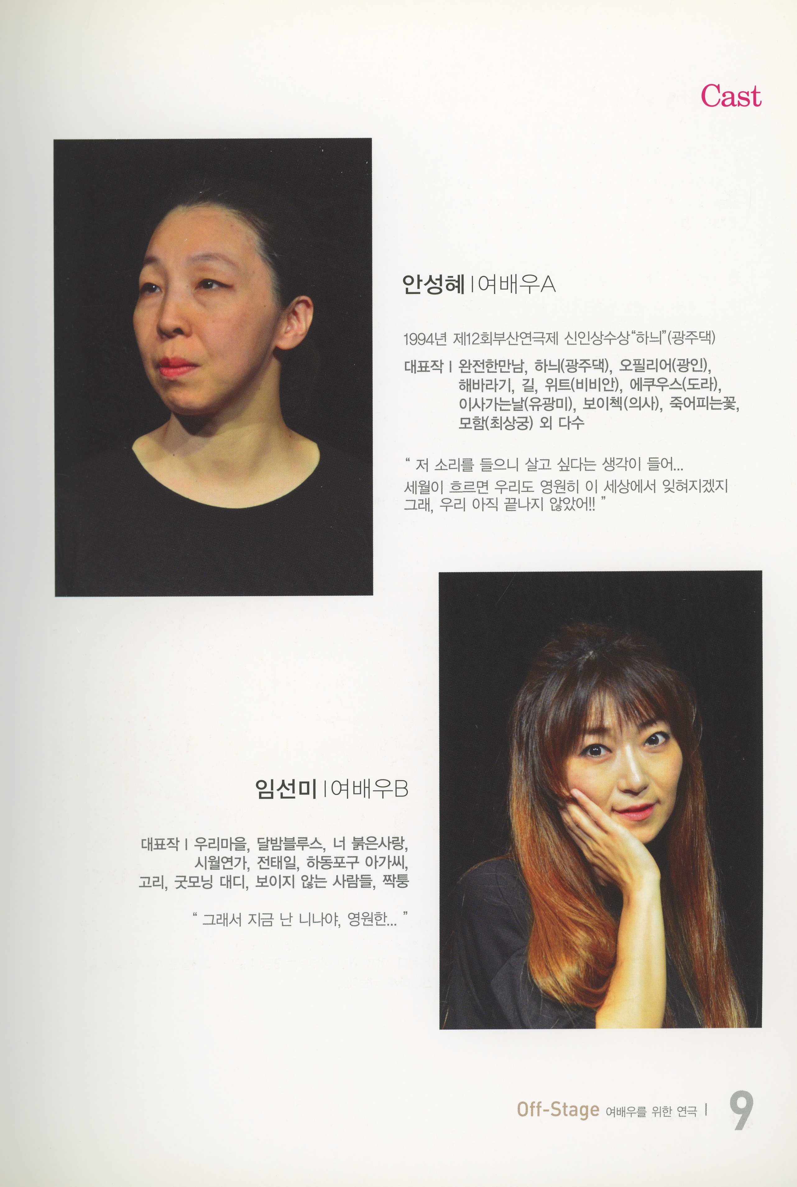 부두연극단 30주년맞이 준비공연 NO.1 / 부산소극장연극페스티발 참가작 《여배우를 위한 연극… 오프-스테이지(Off-Stage)》 프로그램북