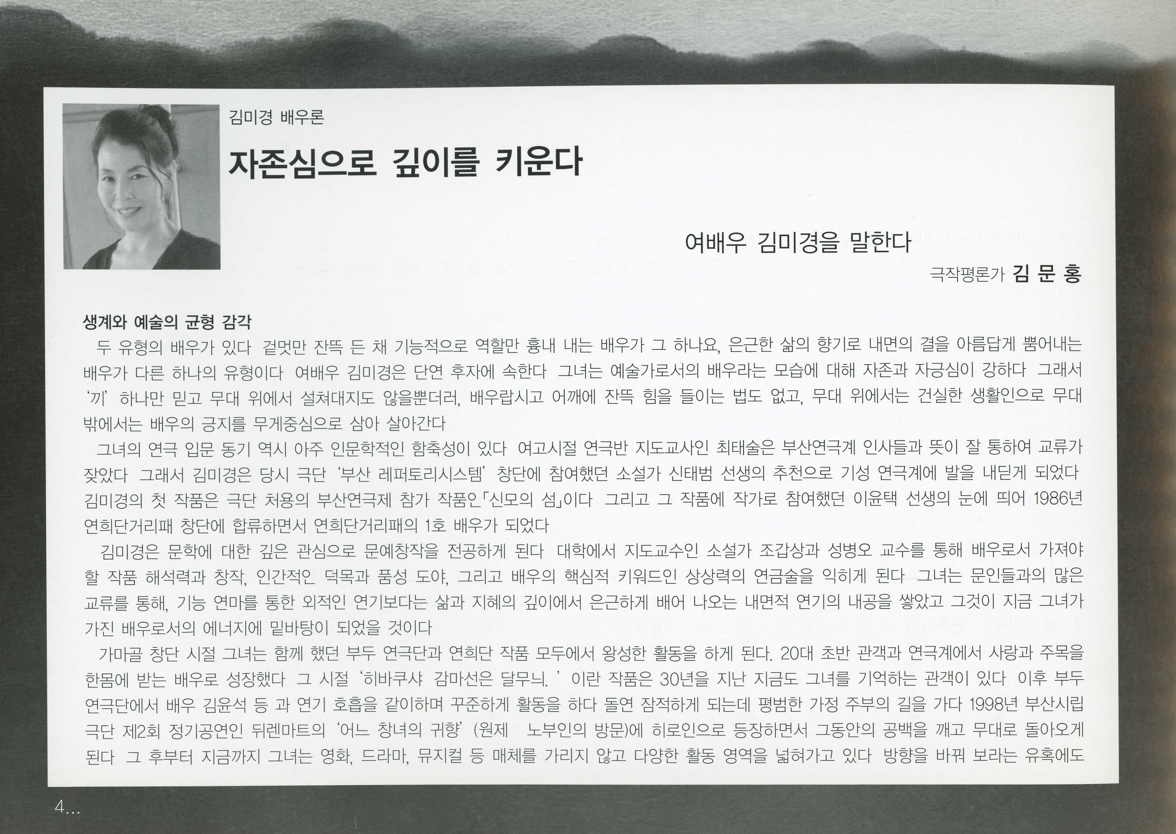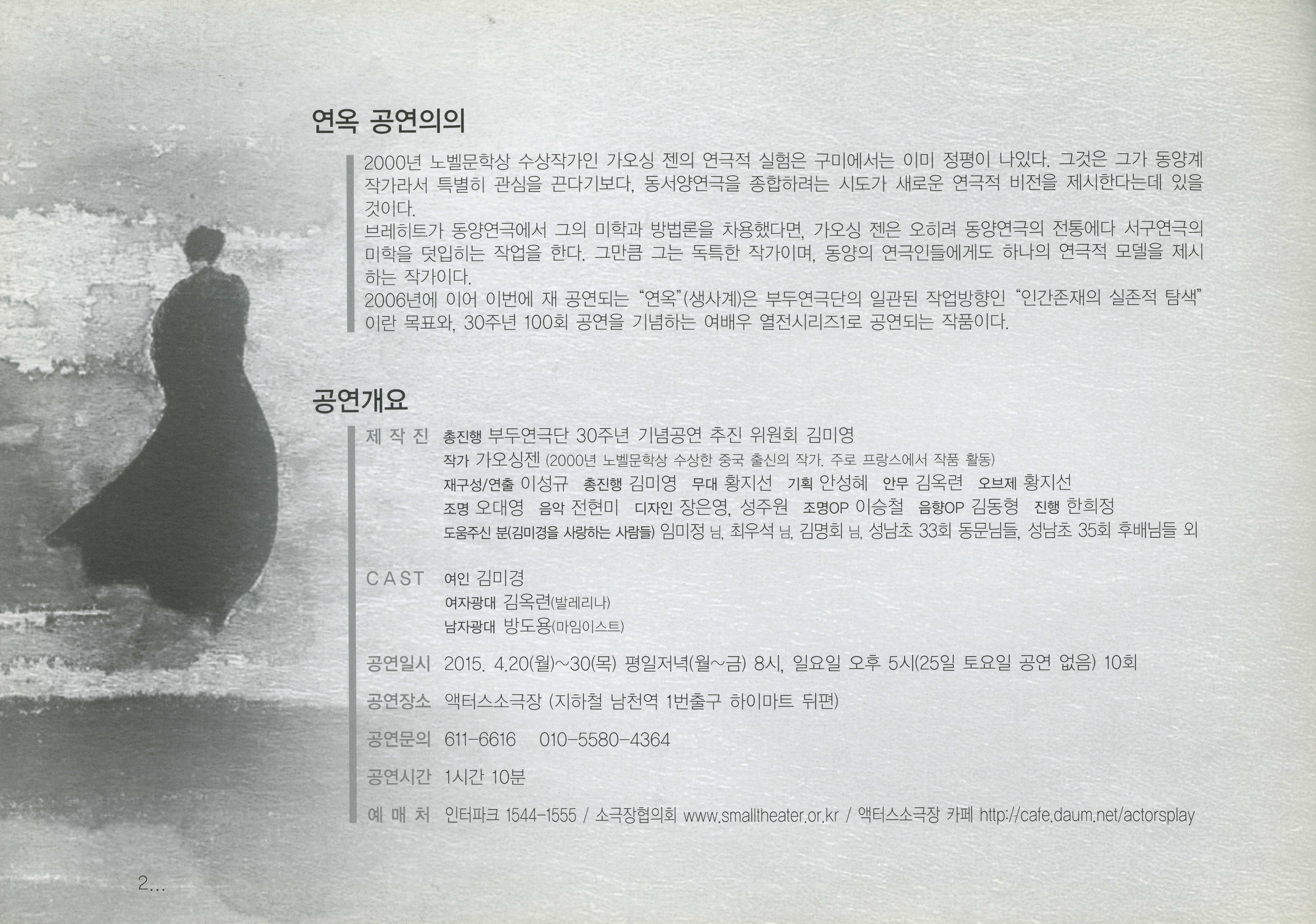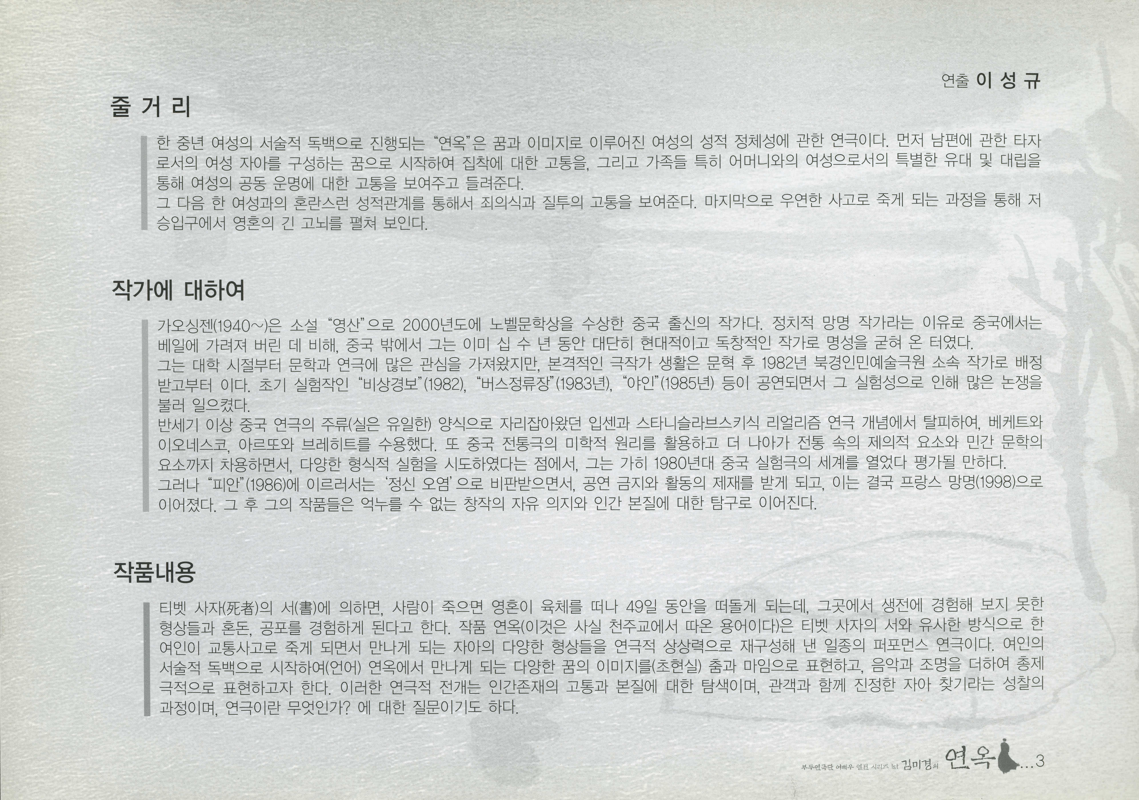 부두연극단 30주년 100회 기념 공연 : 부두연극단 여배우 열전 시리즈 1st 김미경의 《연옥 生死界 - 삶과 죽음의 사이》 프로그램북