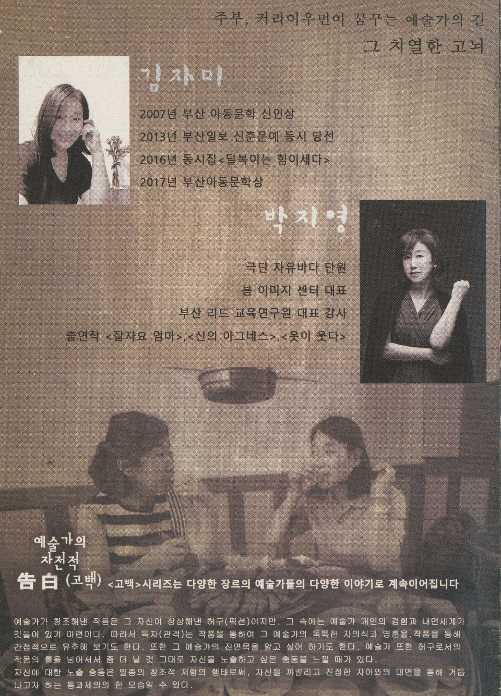 예술가의 자전적 告白(고백) 시리즈 3탄 《물불안가리는여자 물불가리는여자》 리플릿