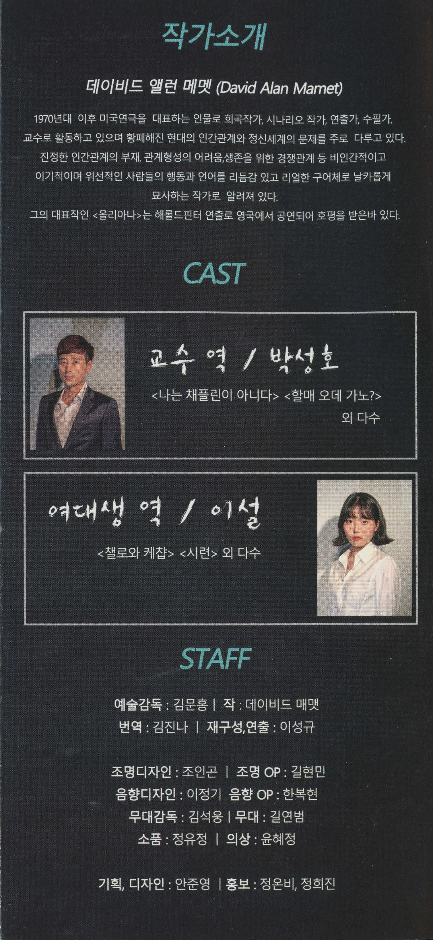 2018 부산 가을연극페스티벌 《아니! 왜 이러세요?(원제 : 올리아나)》 리플릿