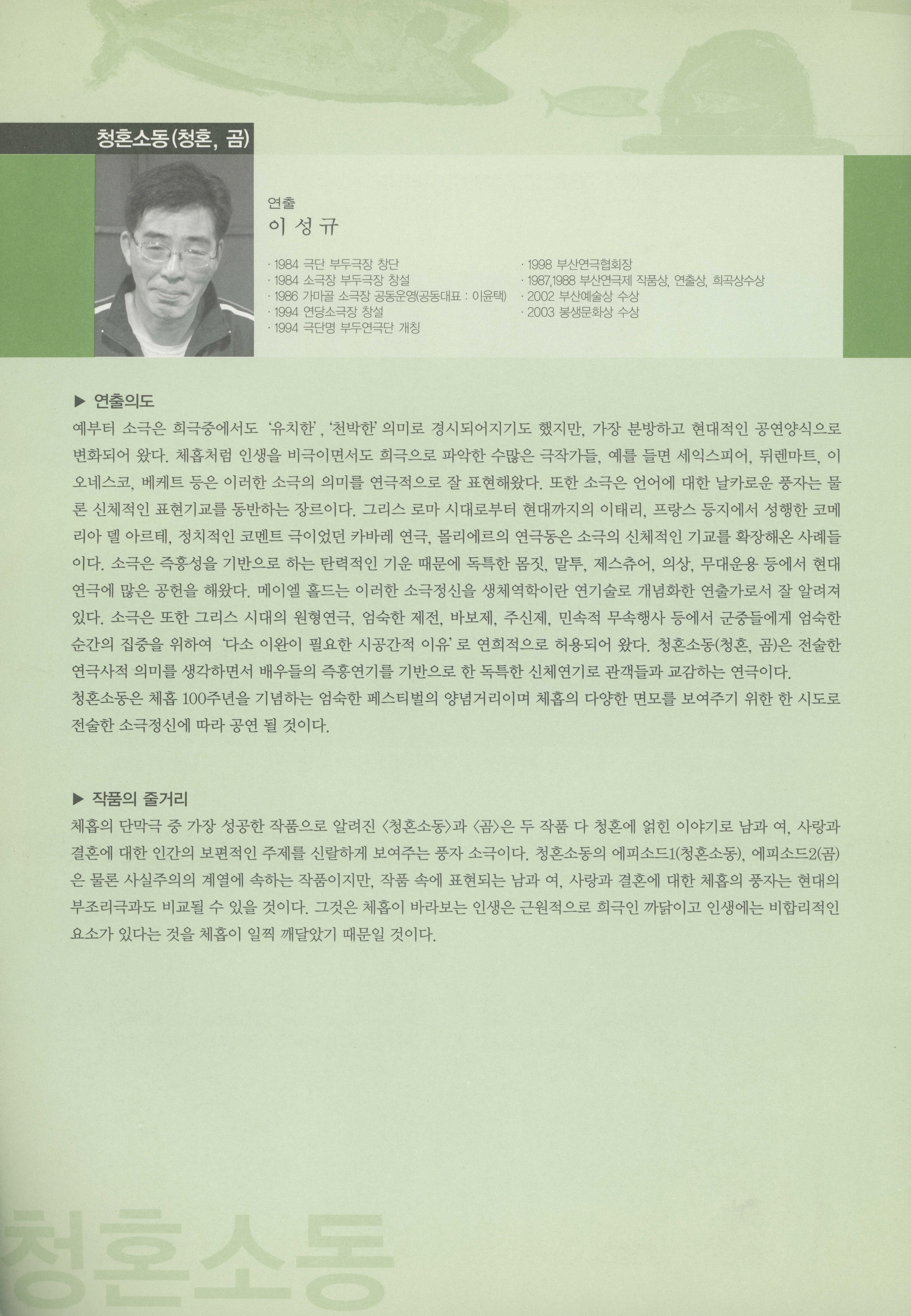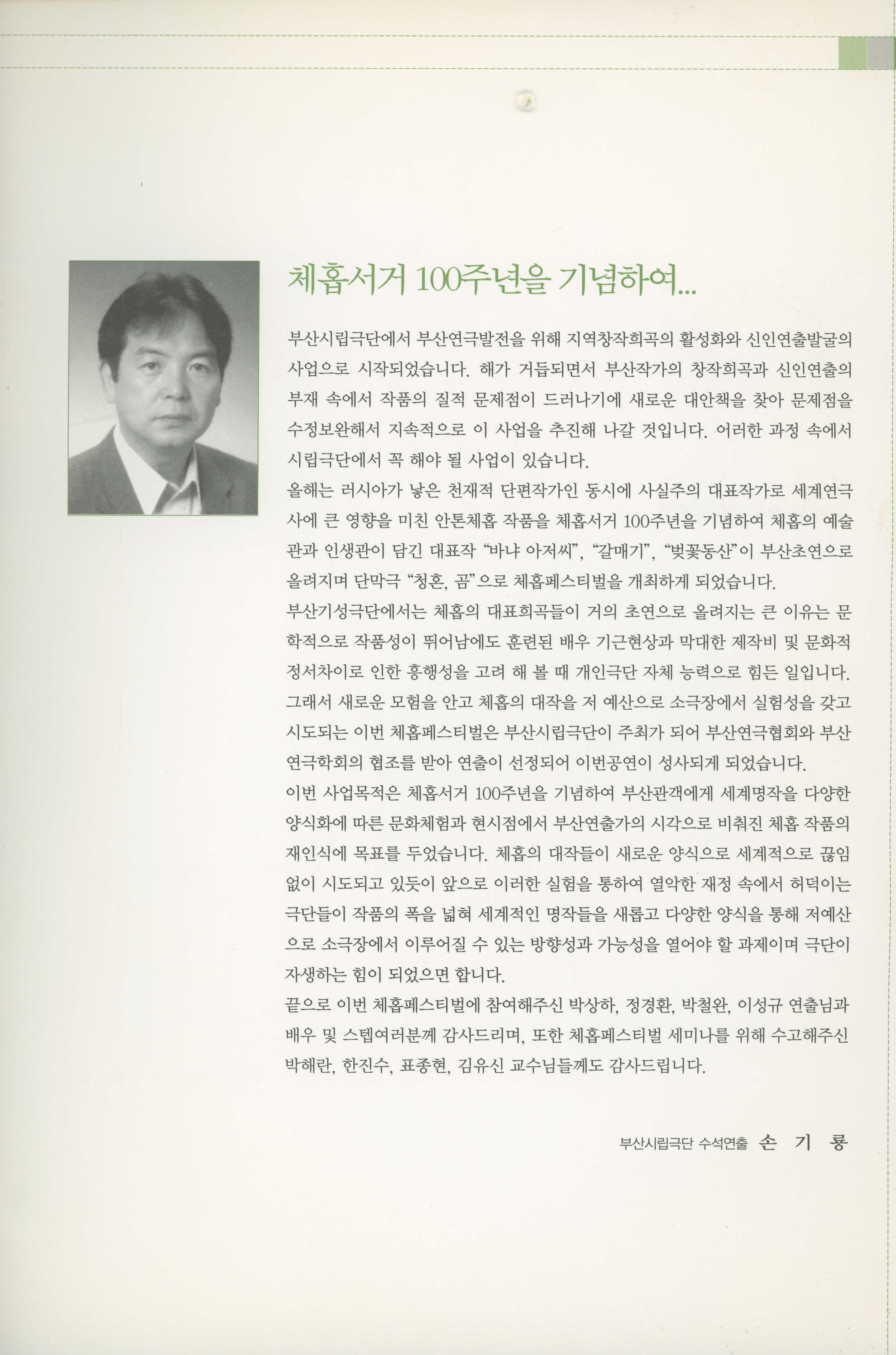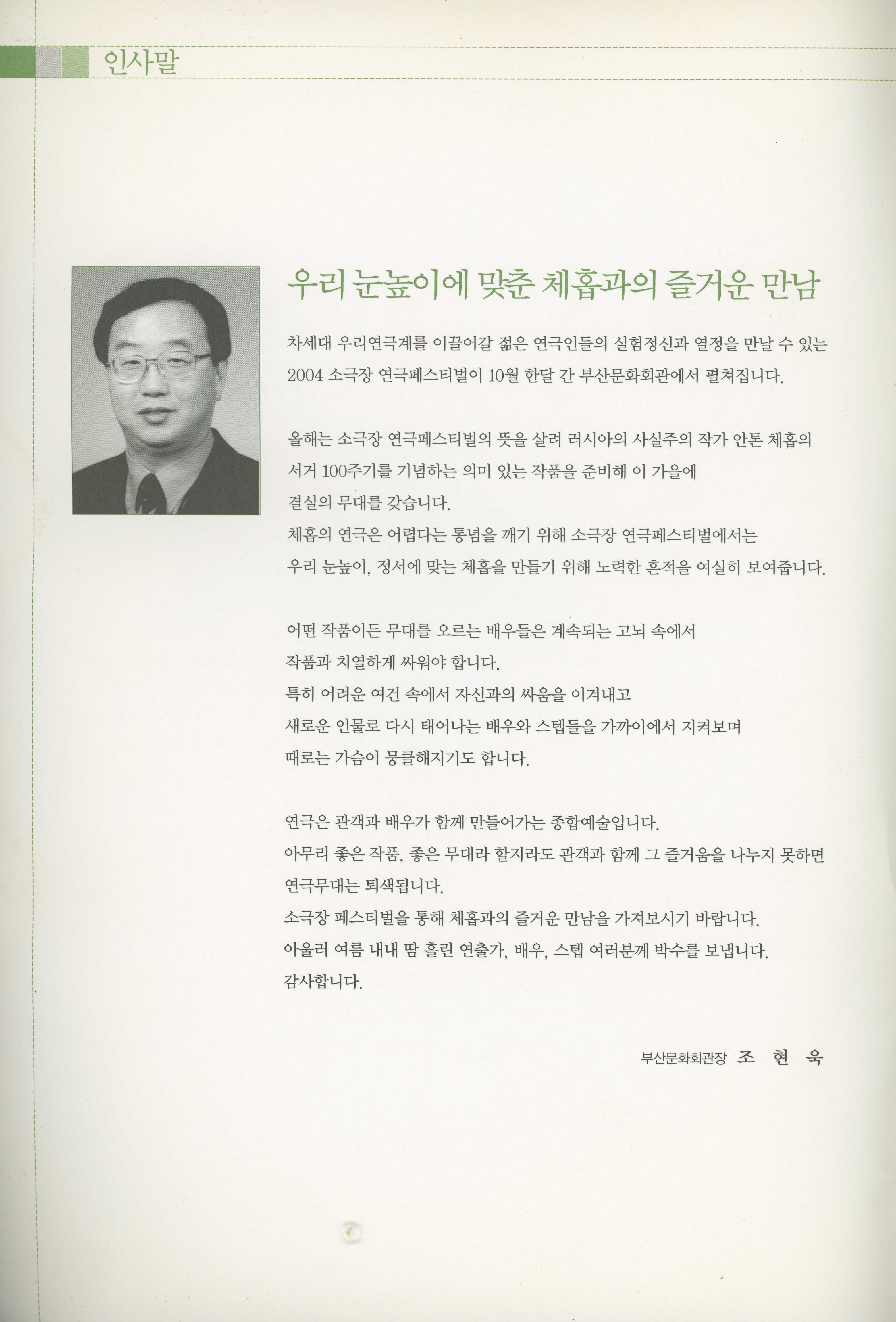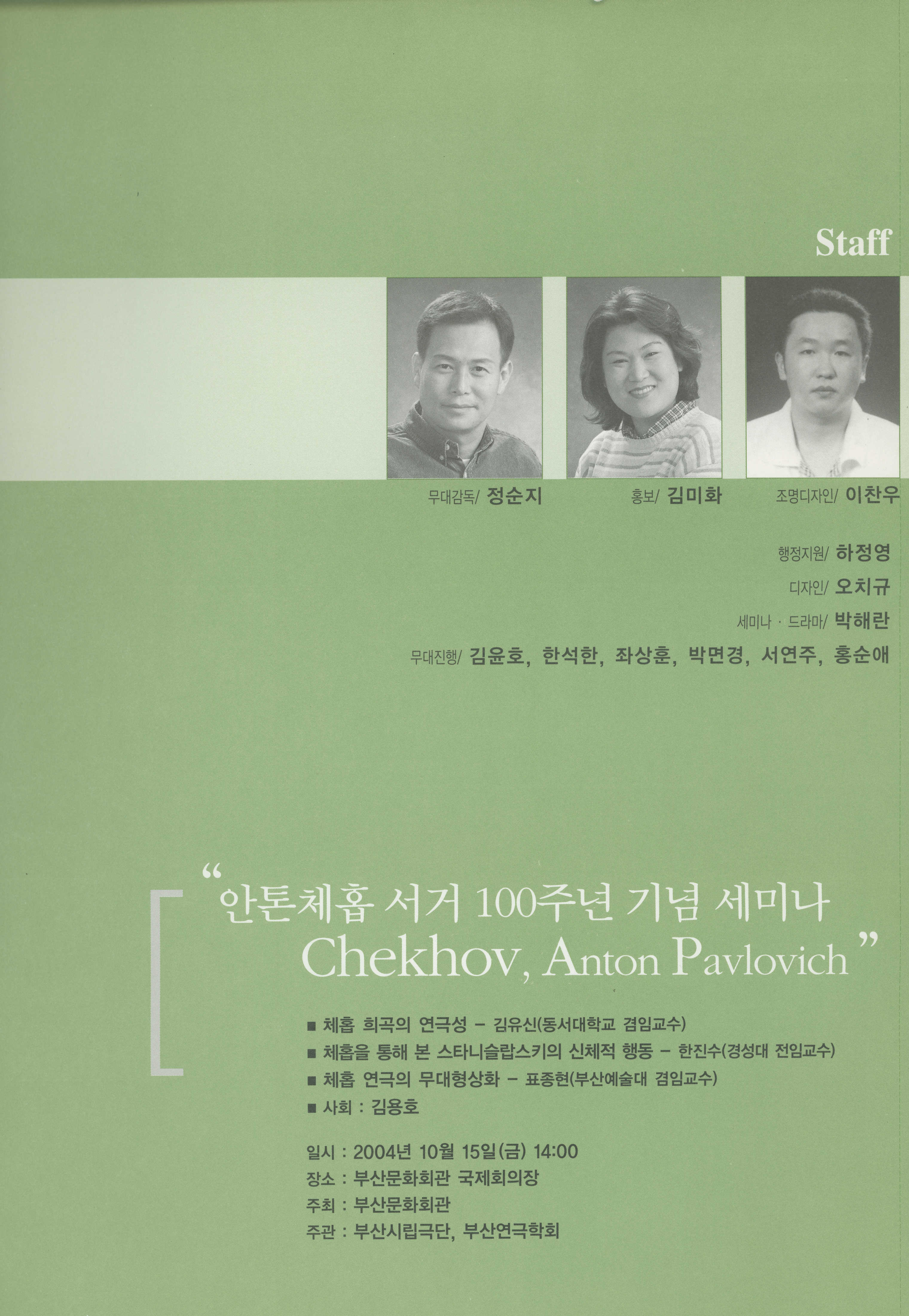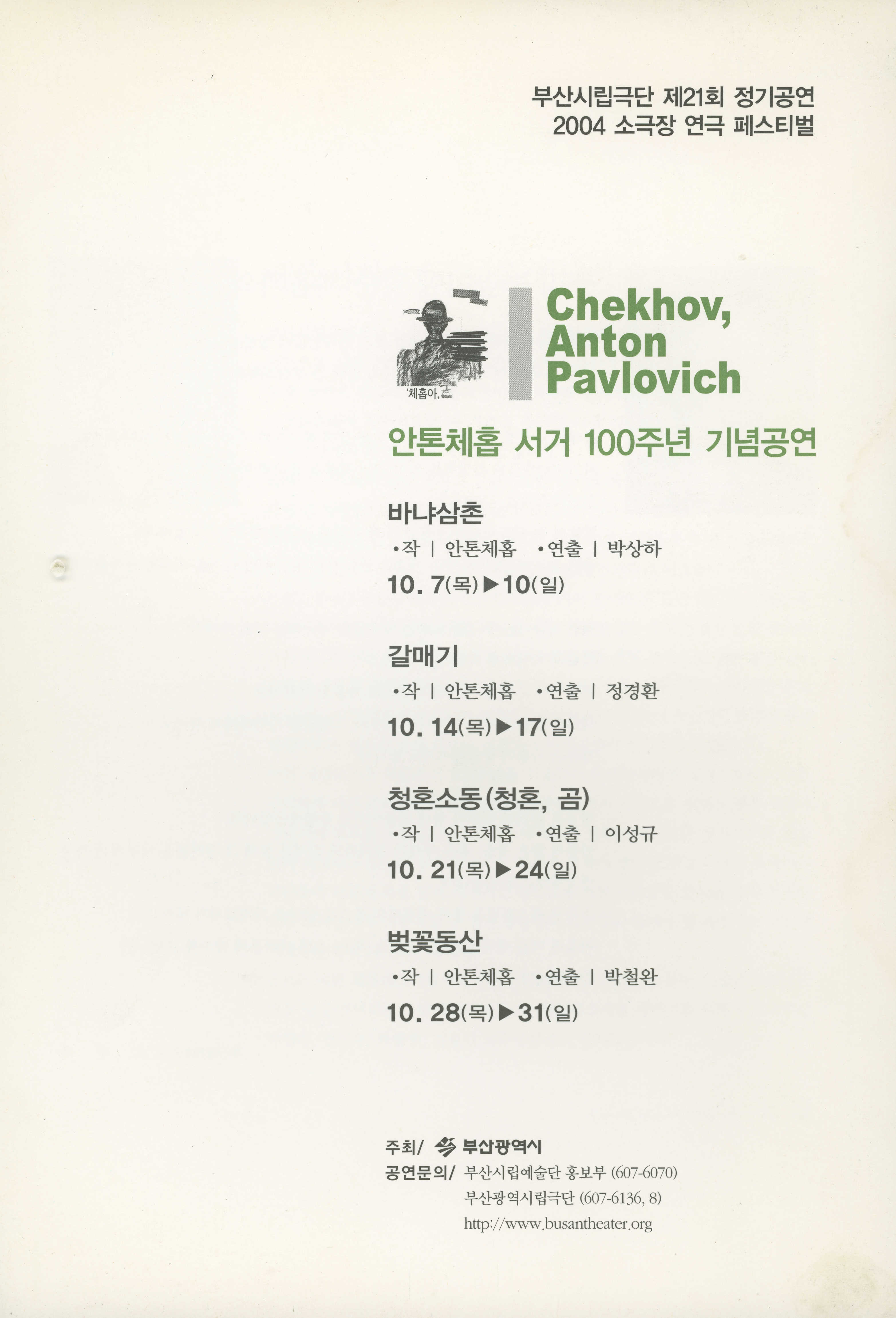 부산광역시립극단 제21회 정기공연&2004 소극장 연극 페스티벌 : 안톤체홉 서거 100주년 기념공연 《'체홉아, 놀자》 프로그램북