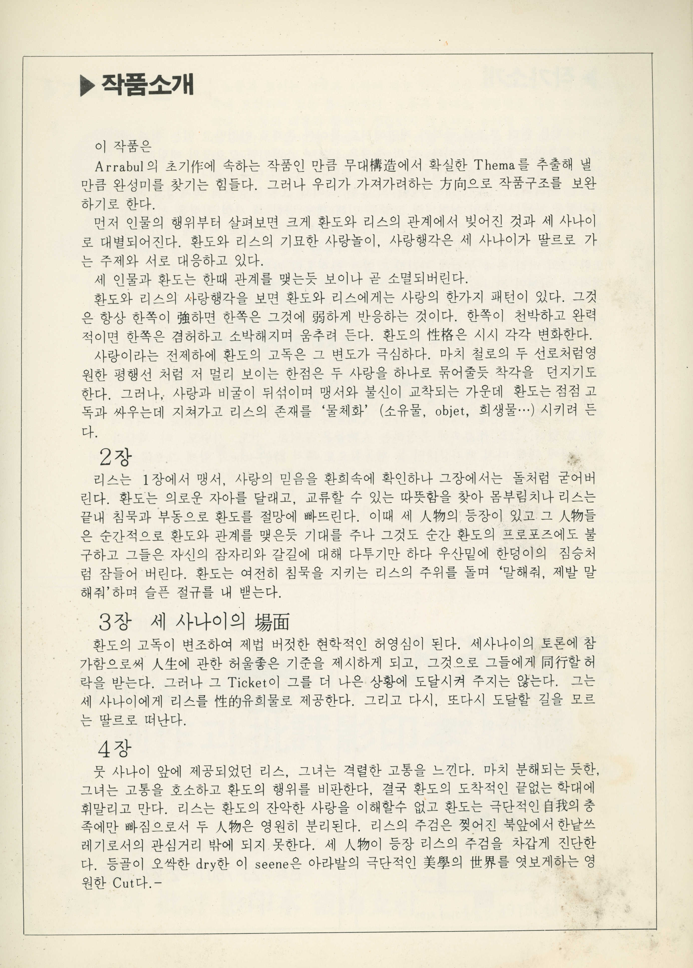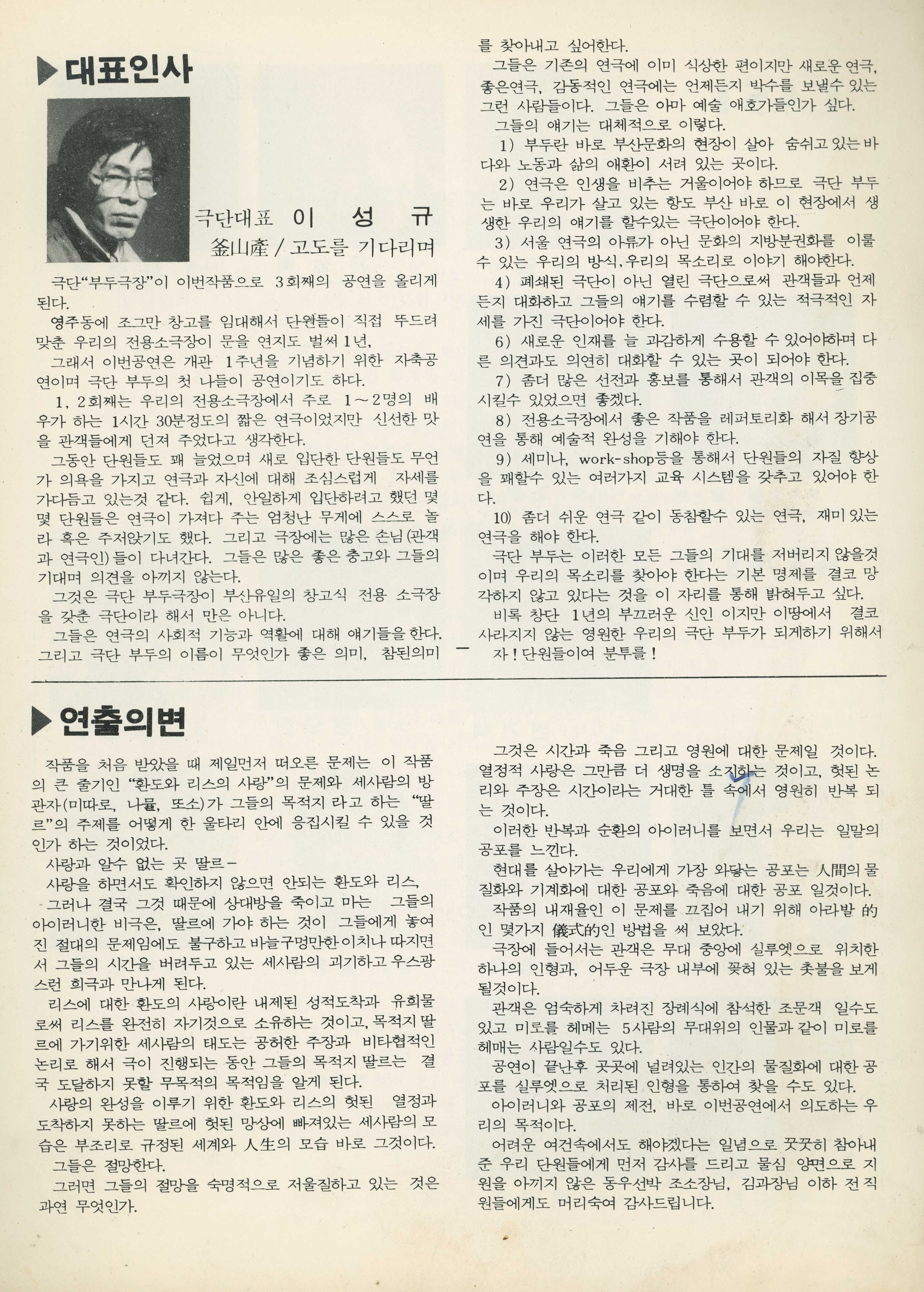 劇團부두劇場(극단부두극장) 개관1주년 특별공연 《환도와 리스》 프로그램북