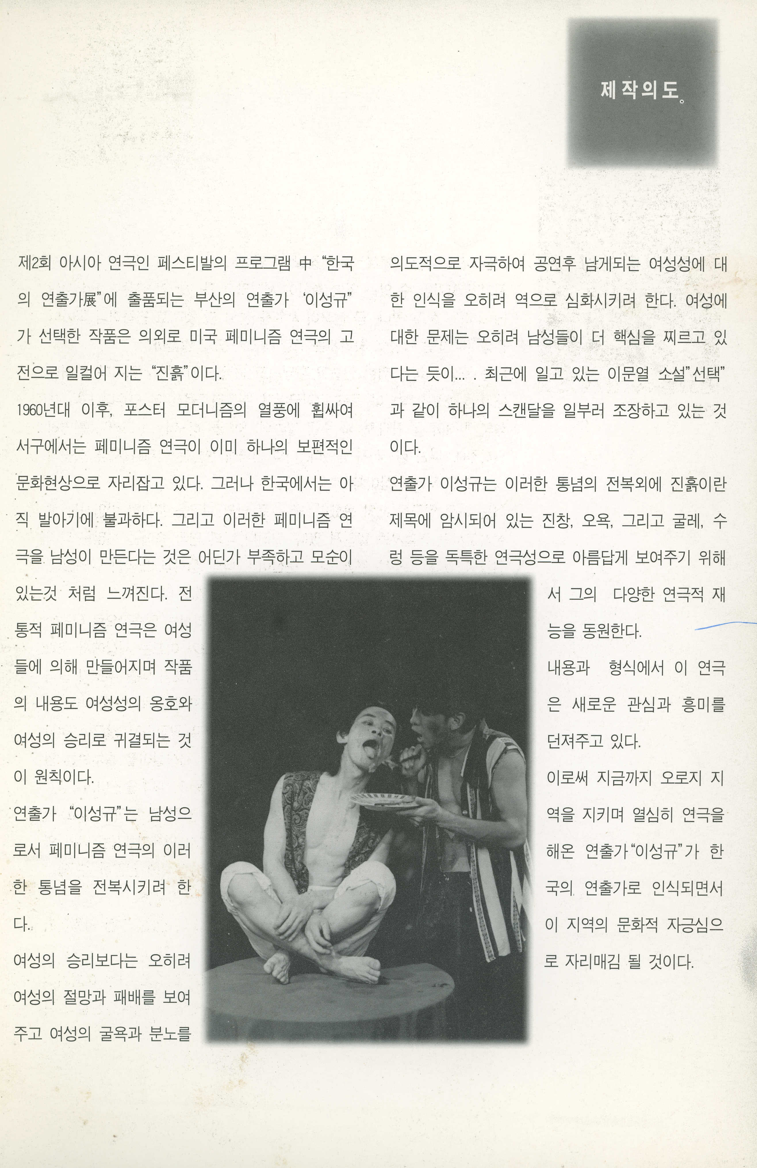 제2회 아시아 연극인 페스티발 : 한국의 연출가展 《진흙 굴욕 그리고 분노》 포스터