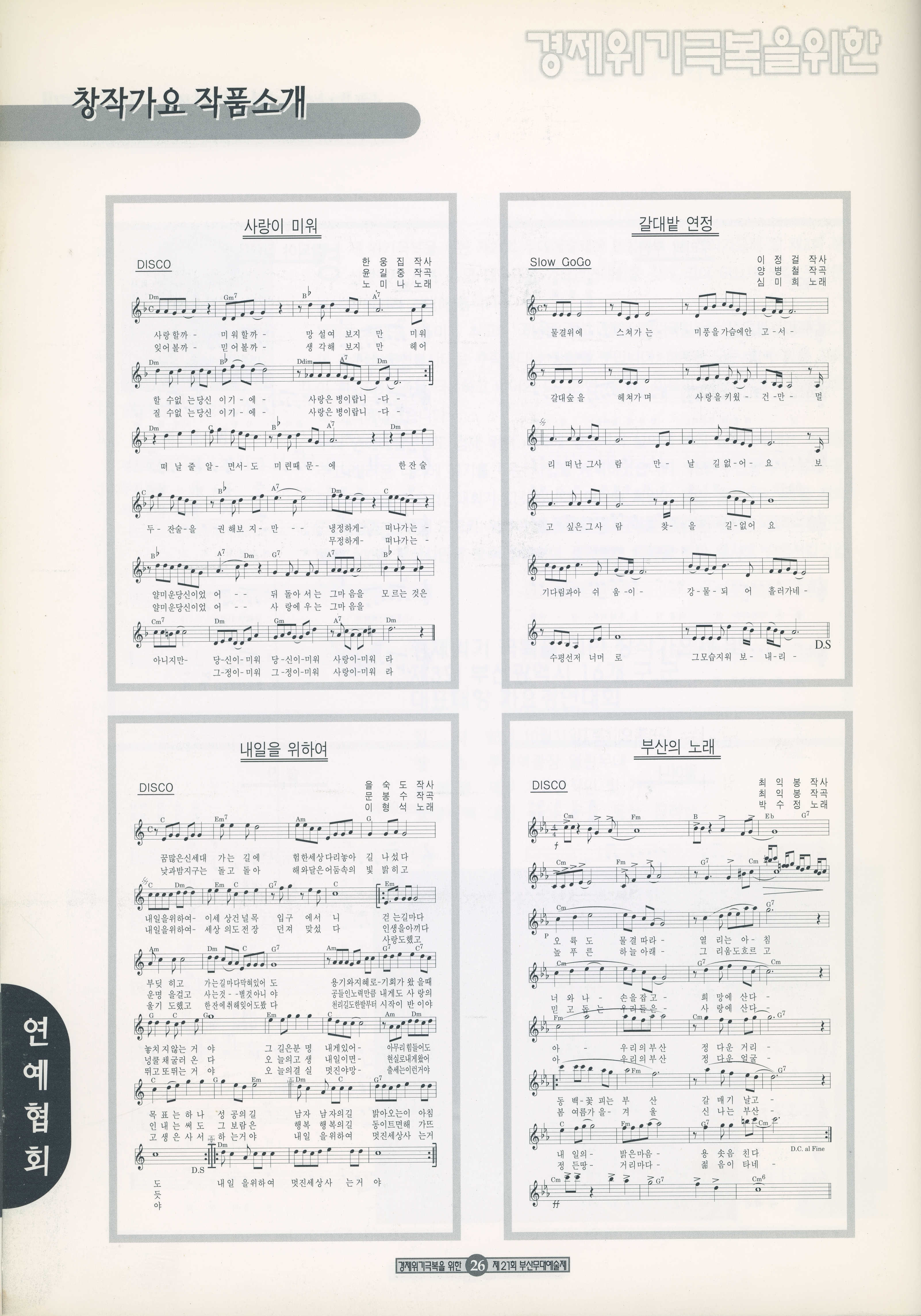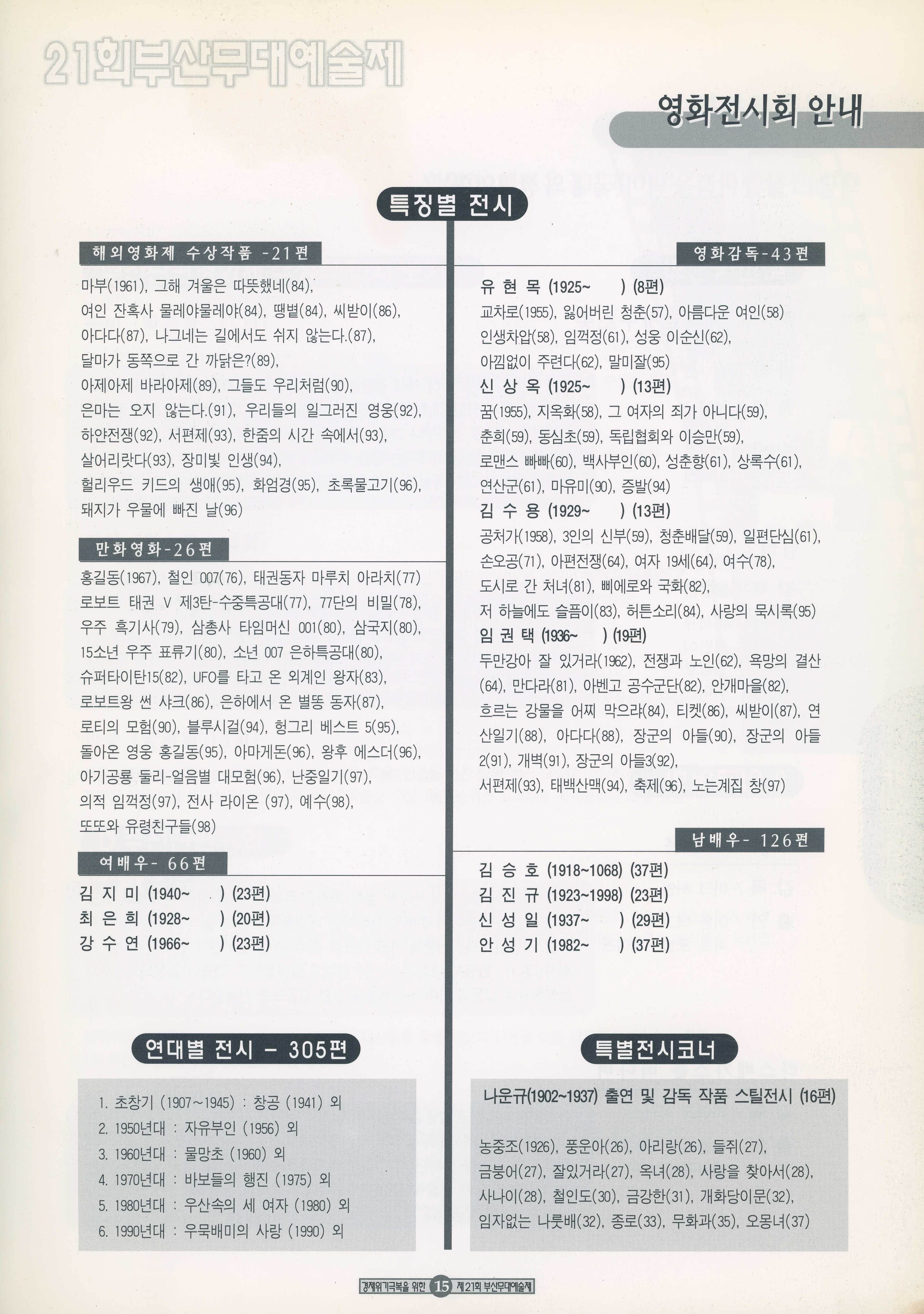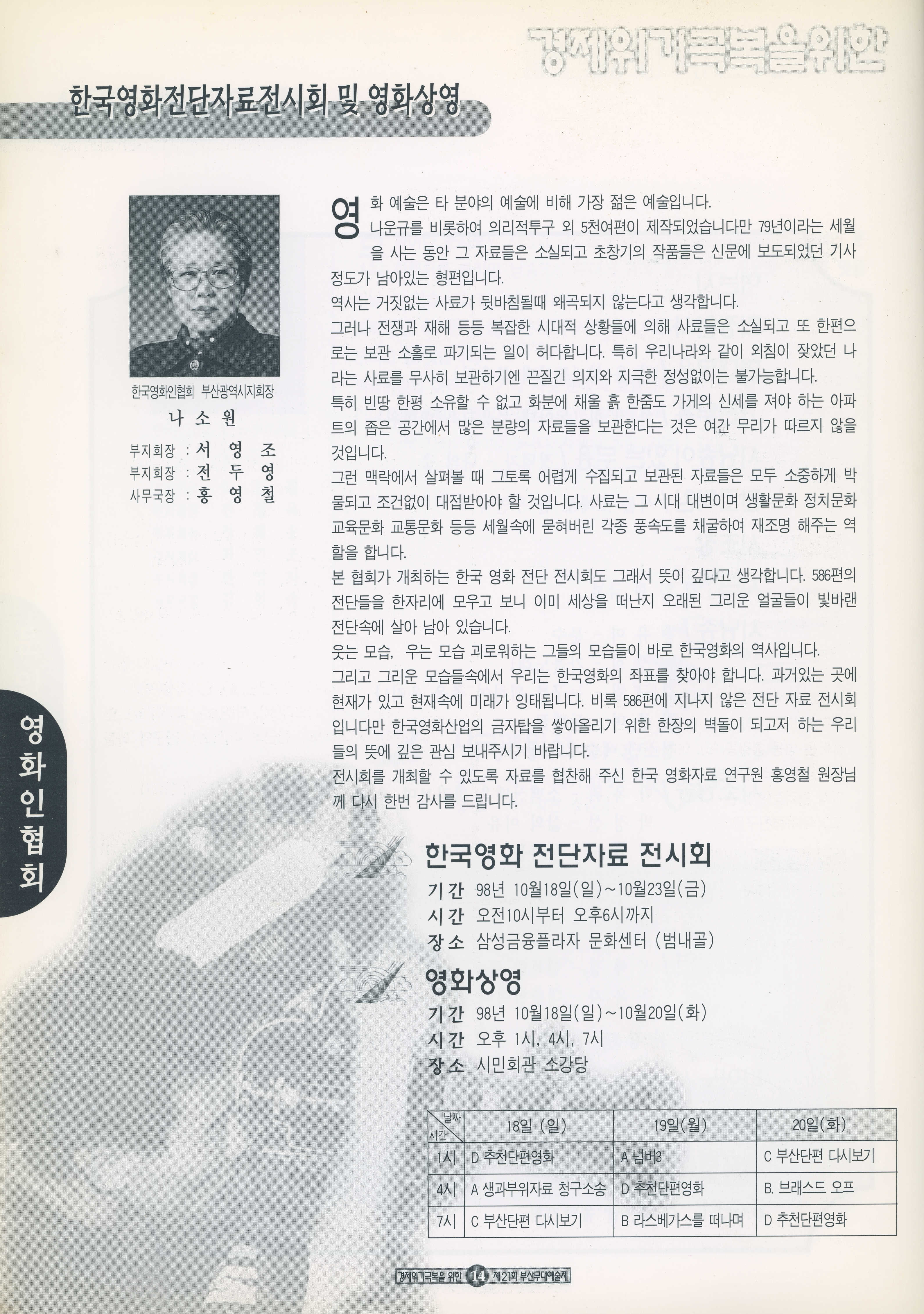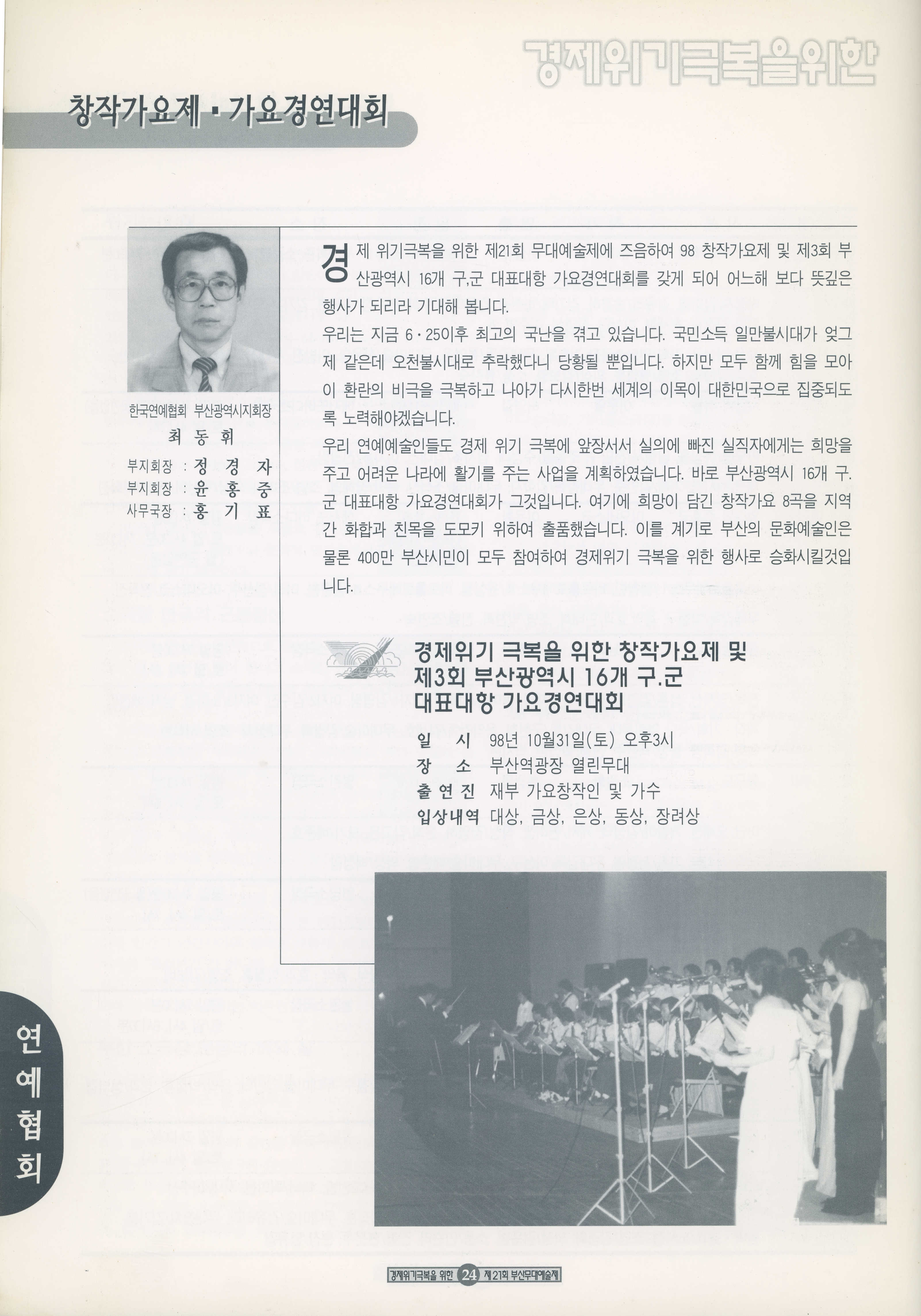 1998년 10월 10일부터 11월 8일까지 열린 '경제위기극복을 위한 21회 부산무대예술제' 프로그램북이다.