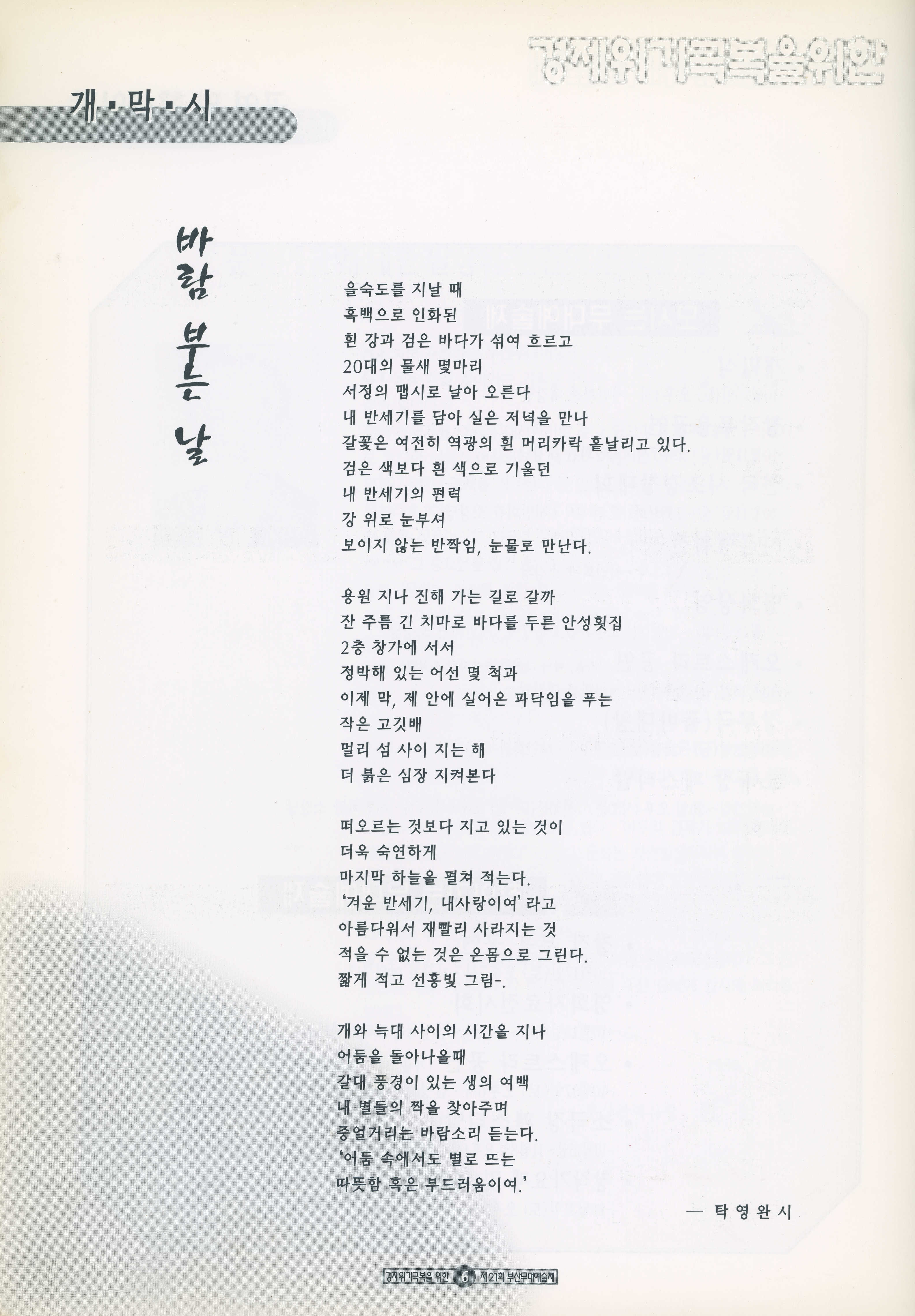 《경제위기극복을 위한 21회 부산무대예술제》 프로그램북