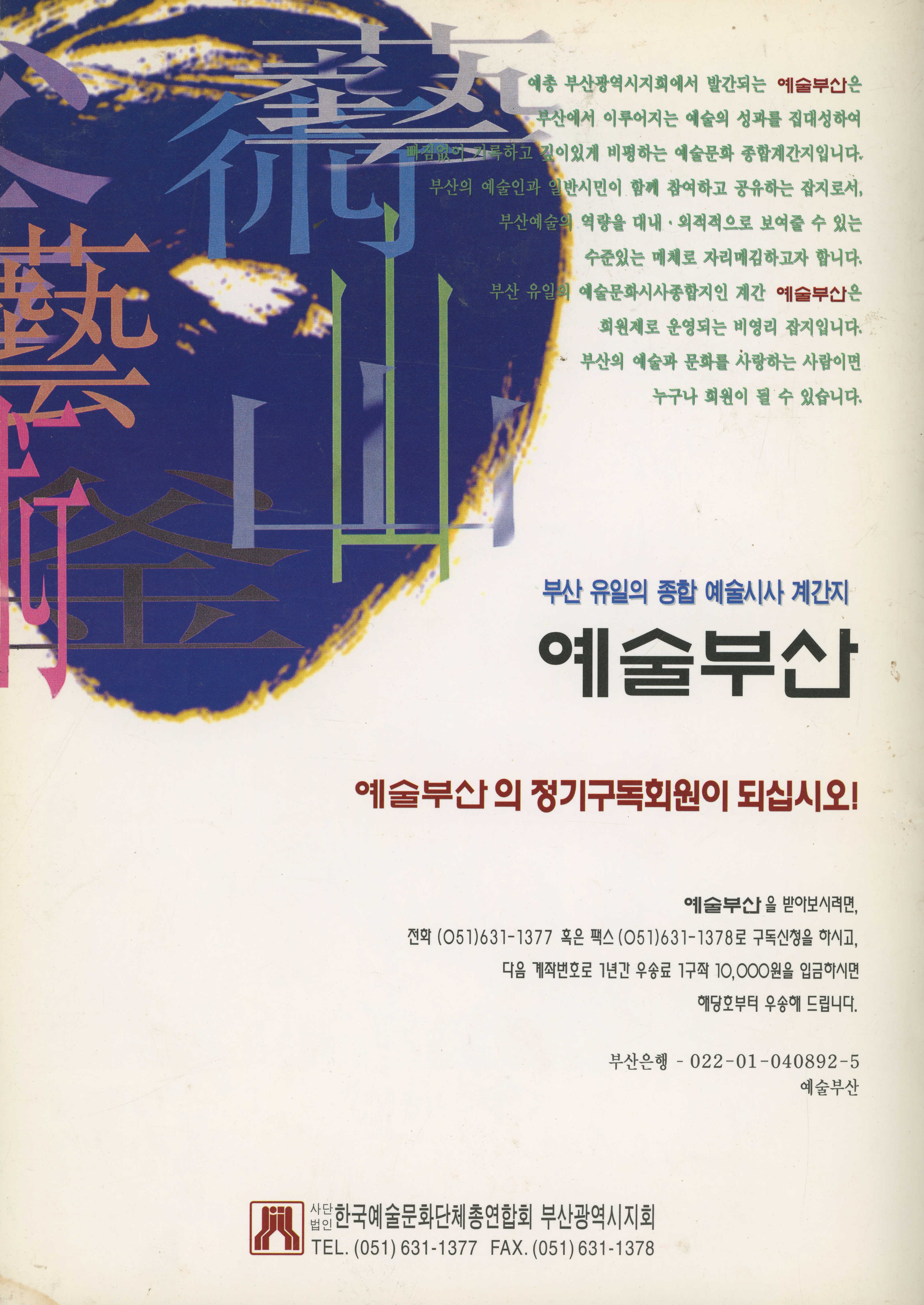 • 단체/작가명부산광역시, 사단법인 한국예술문화단체총연합회 부산광역시지회