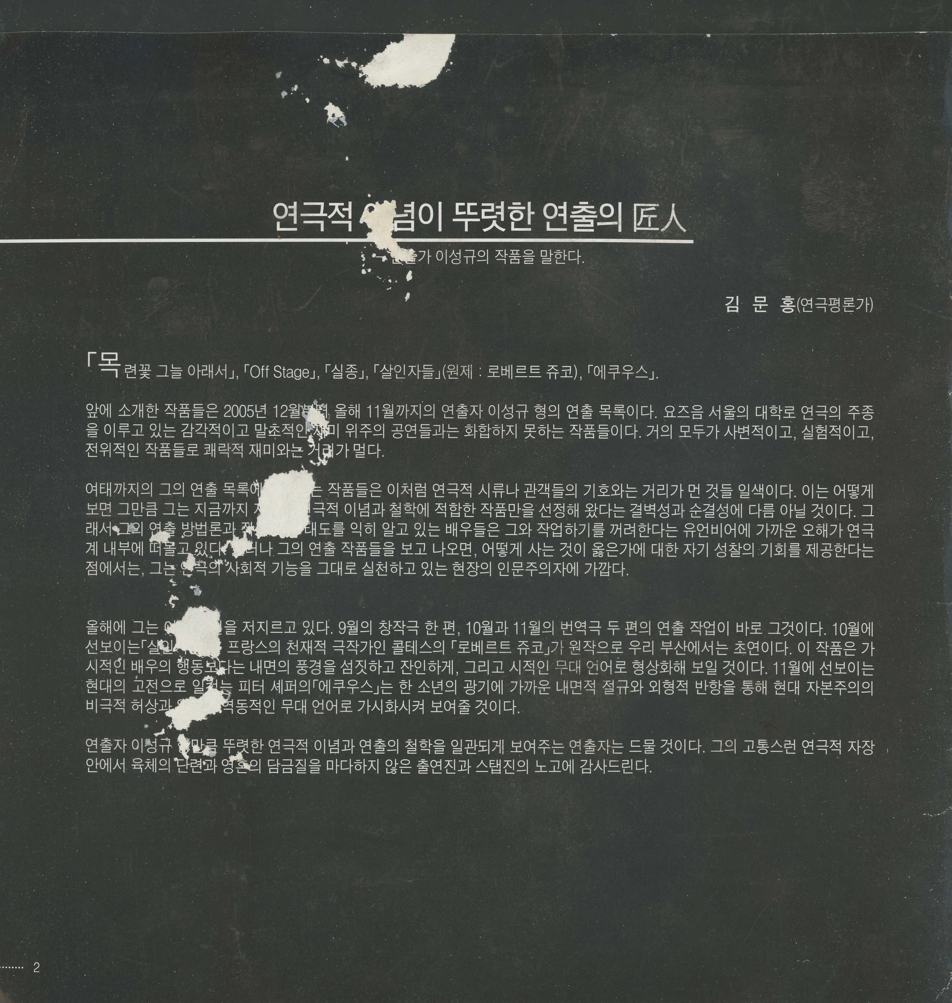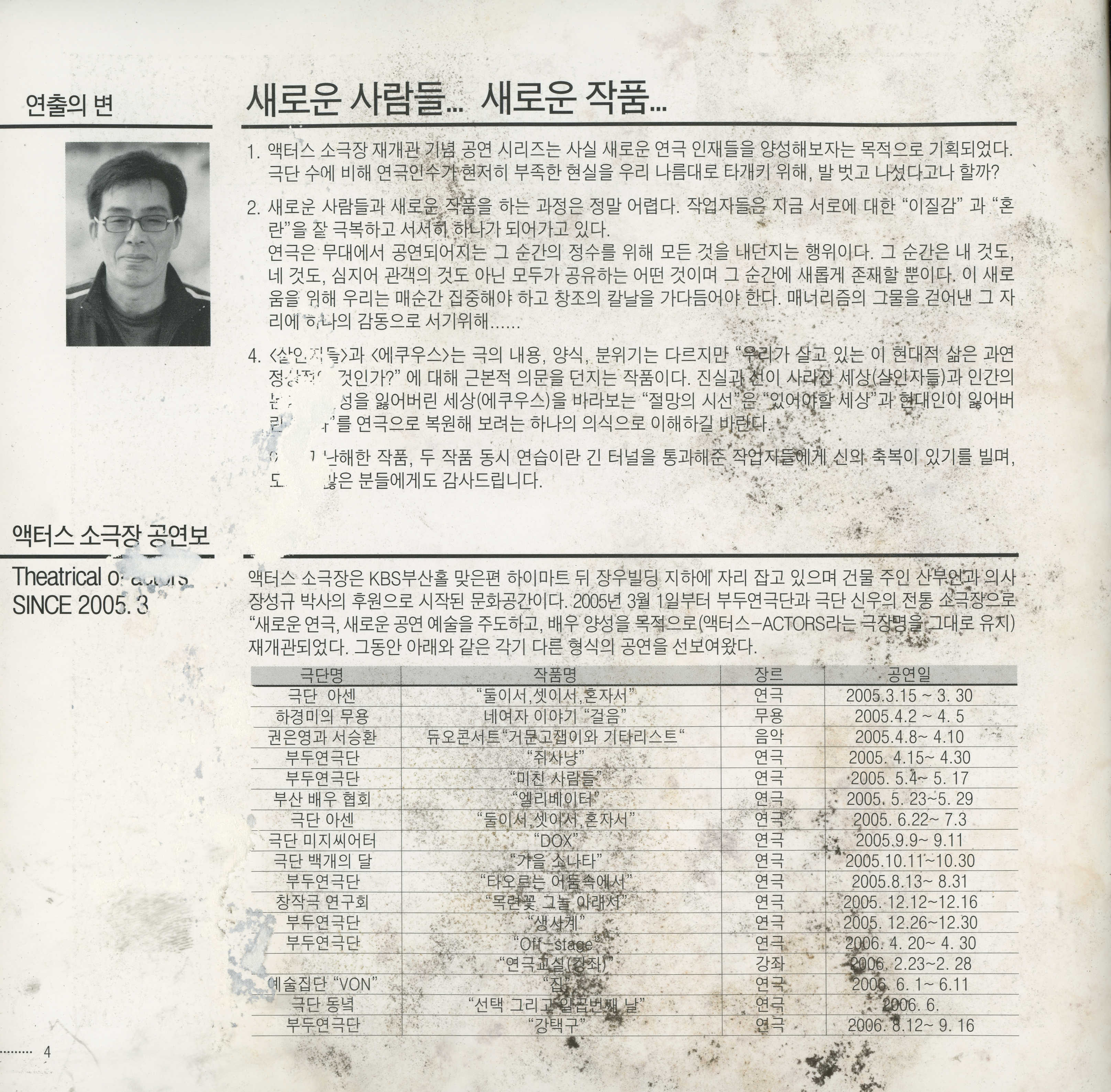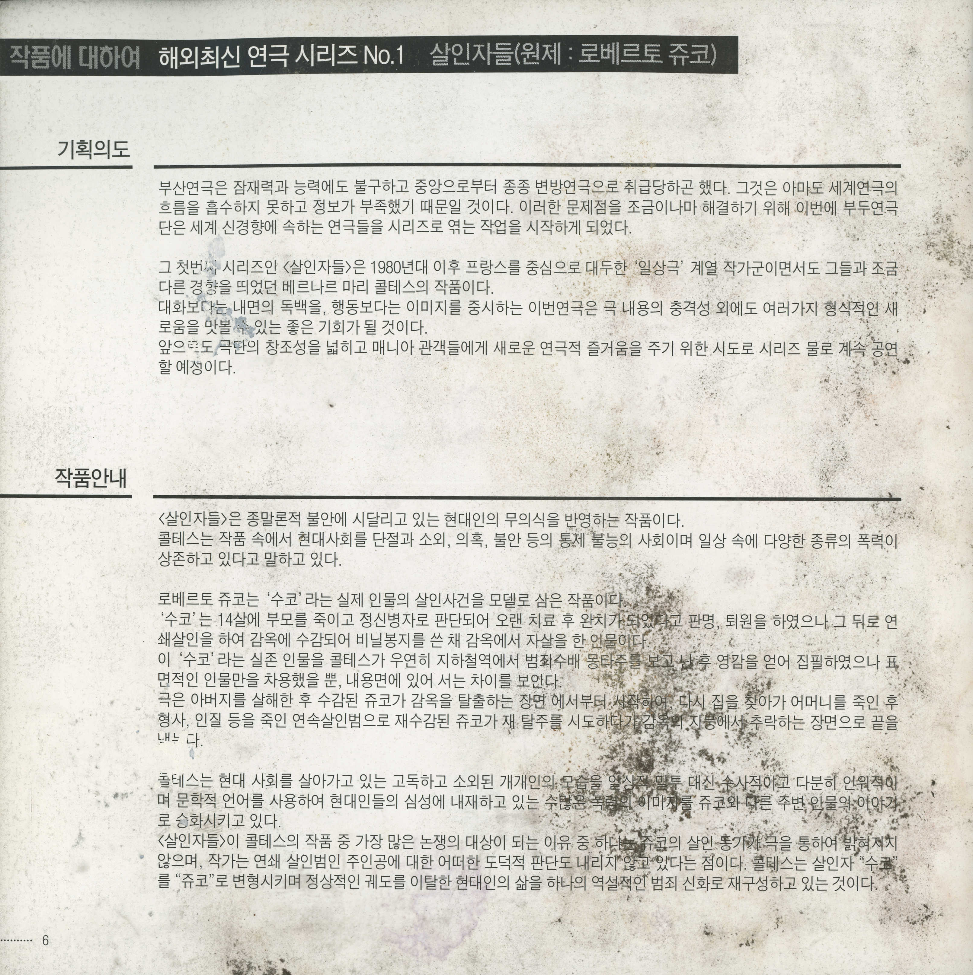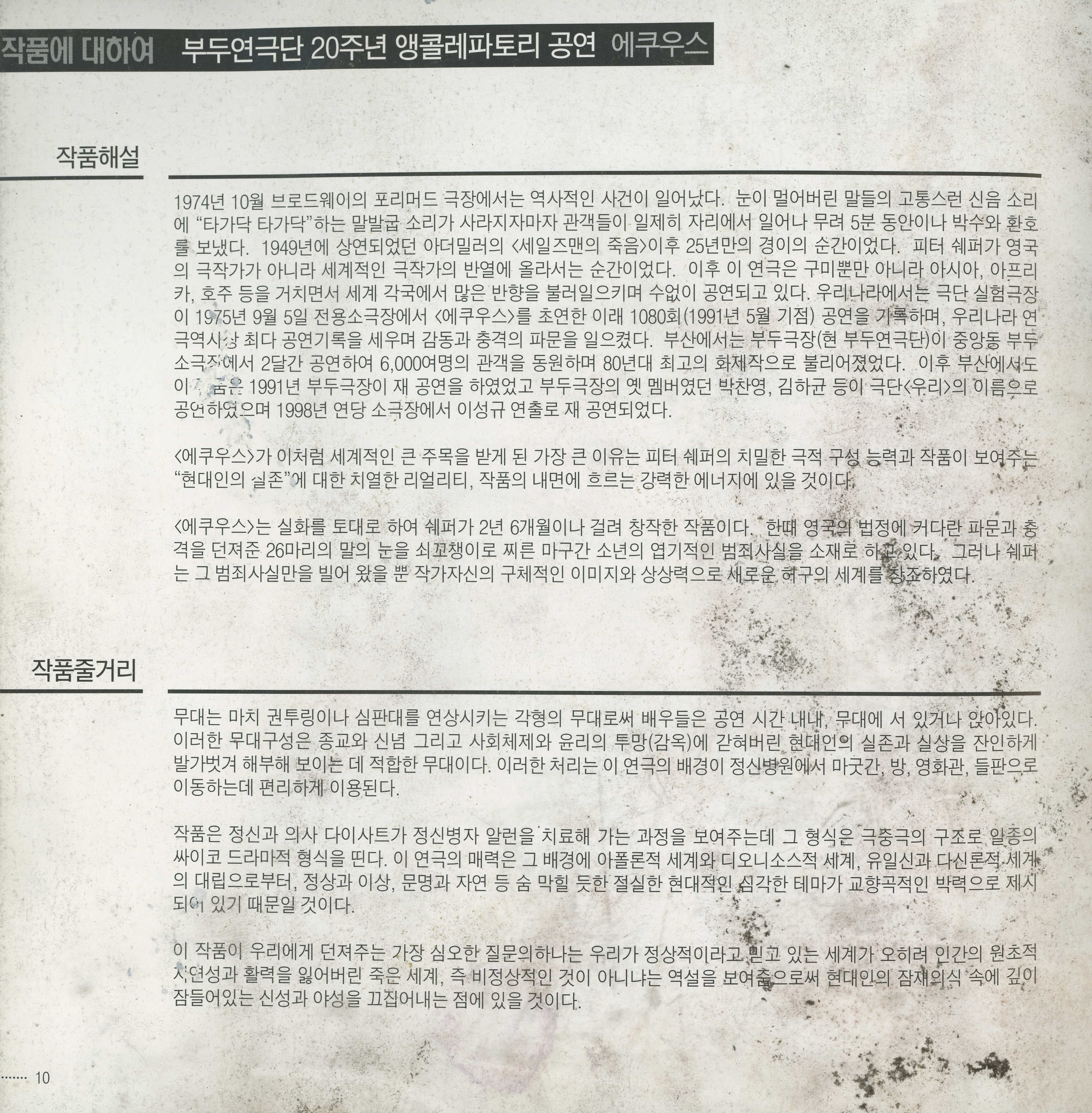 액터스 소극장 재개관 1주년 기념공연 시리즈 《殺人者들(원제:로베르토 쥬코)》, 《에쿠우스(EQUUS)》 팜플렛