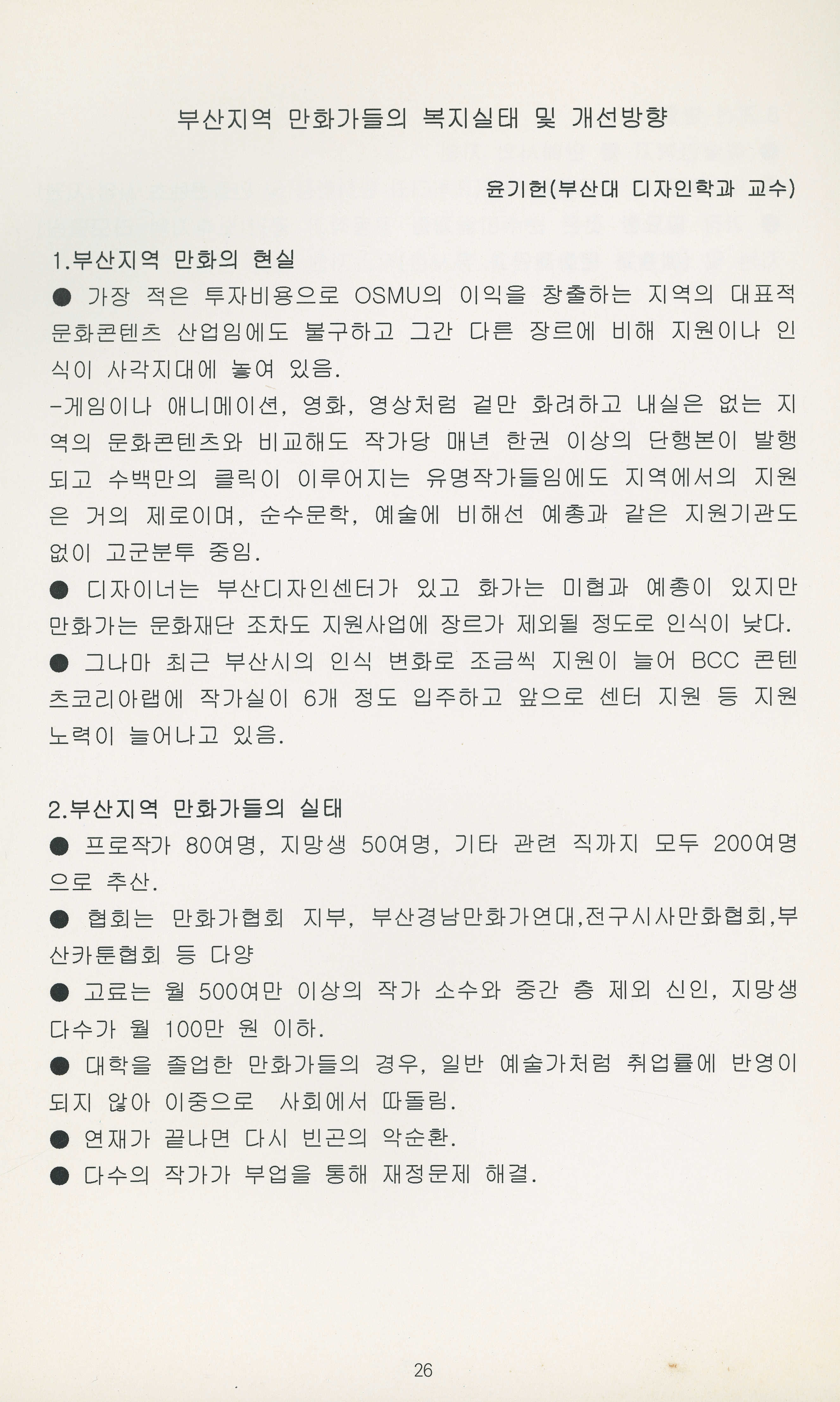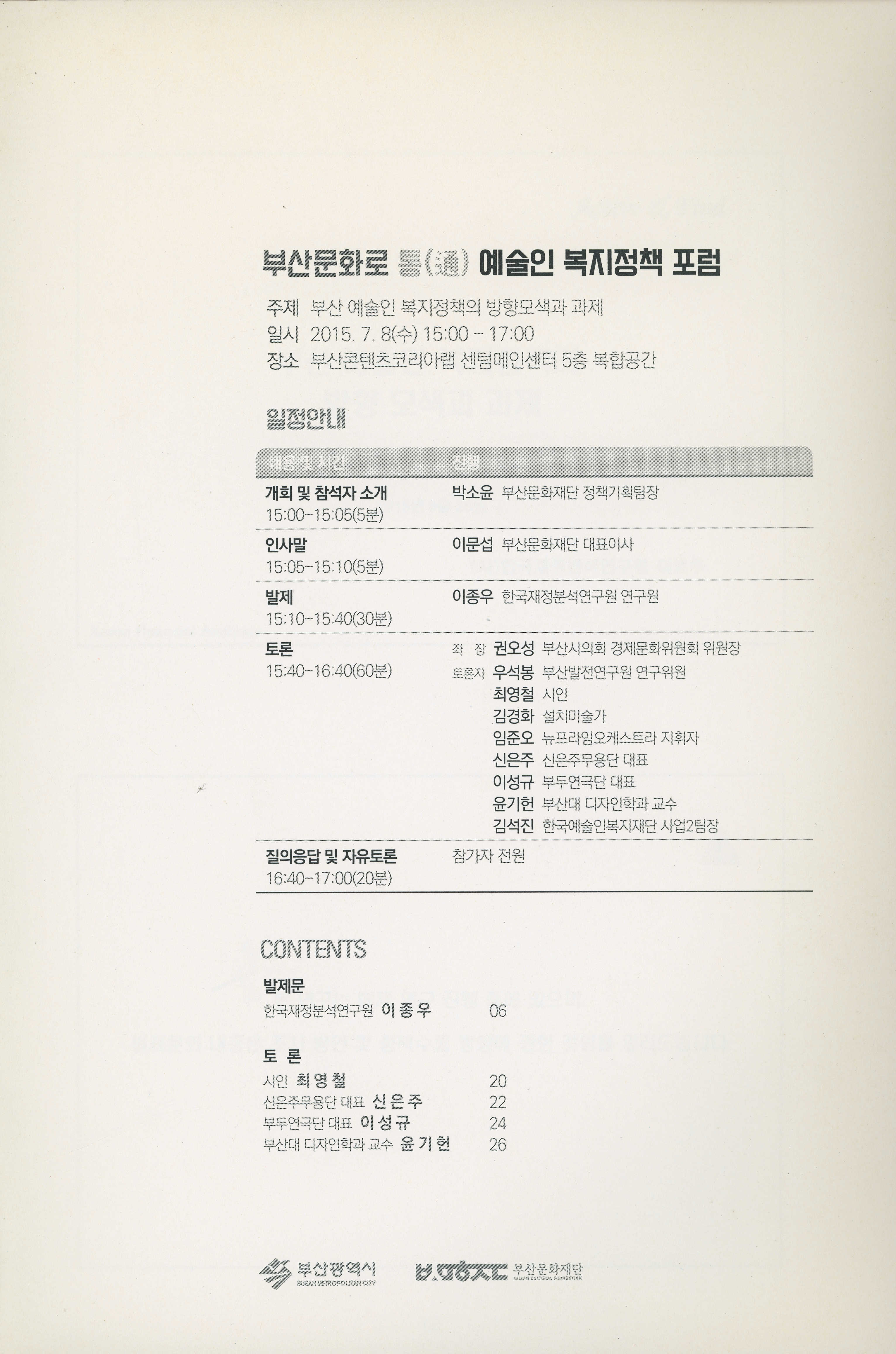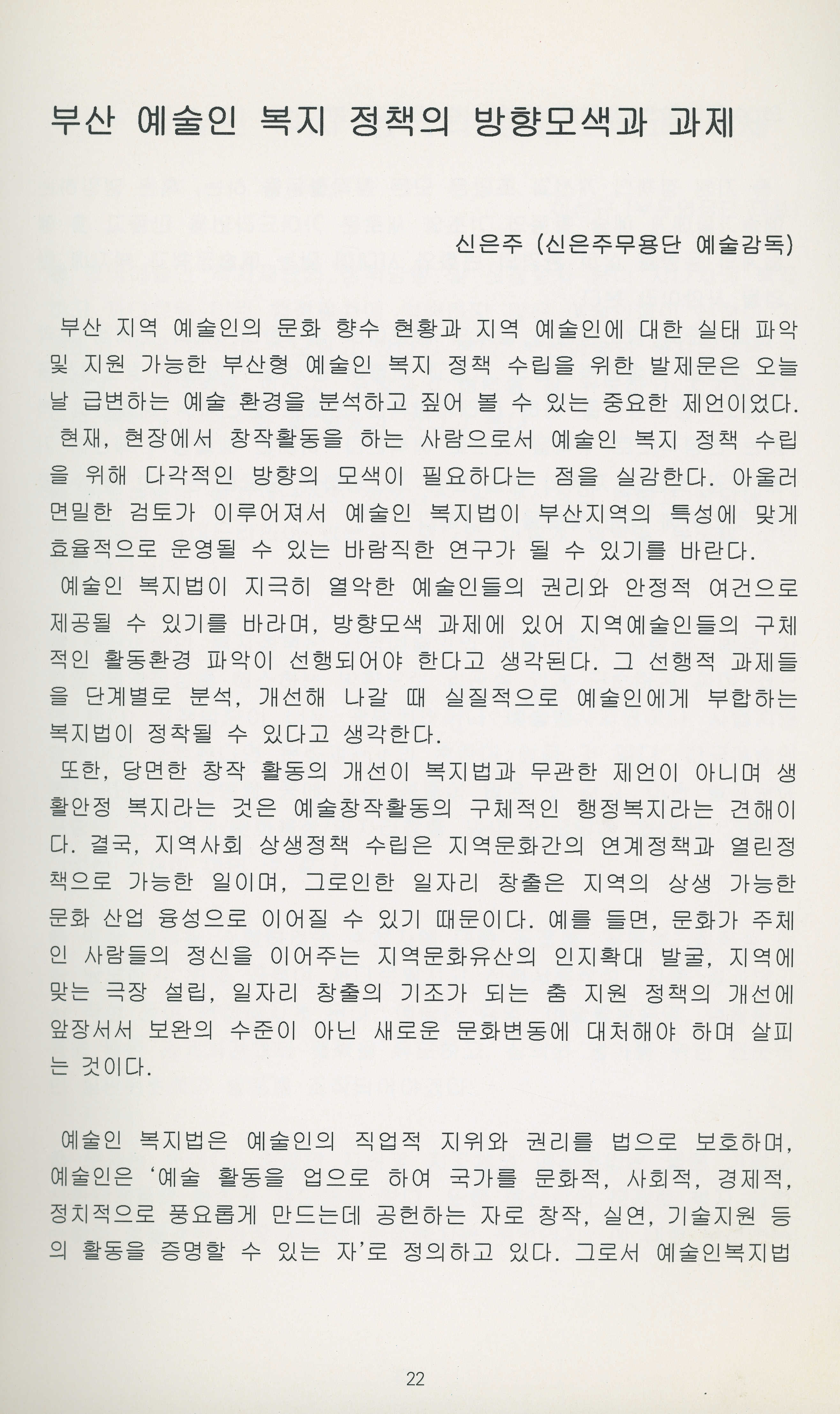 『부산문화로 통(通) 예술인 복지정책 포럼』 논문