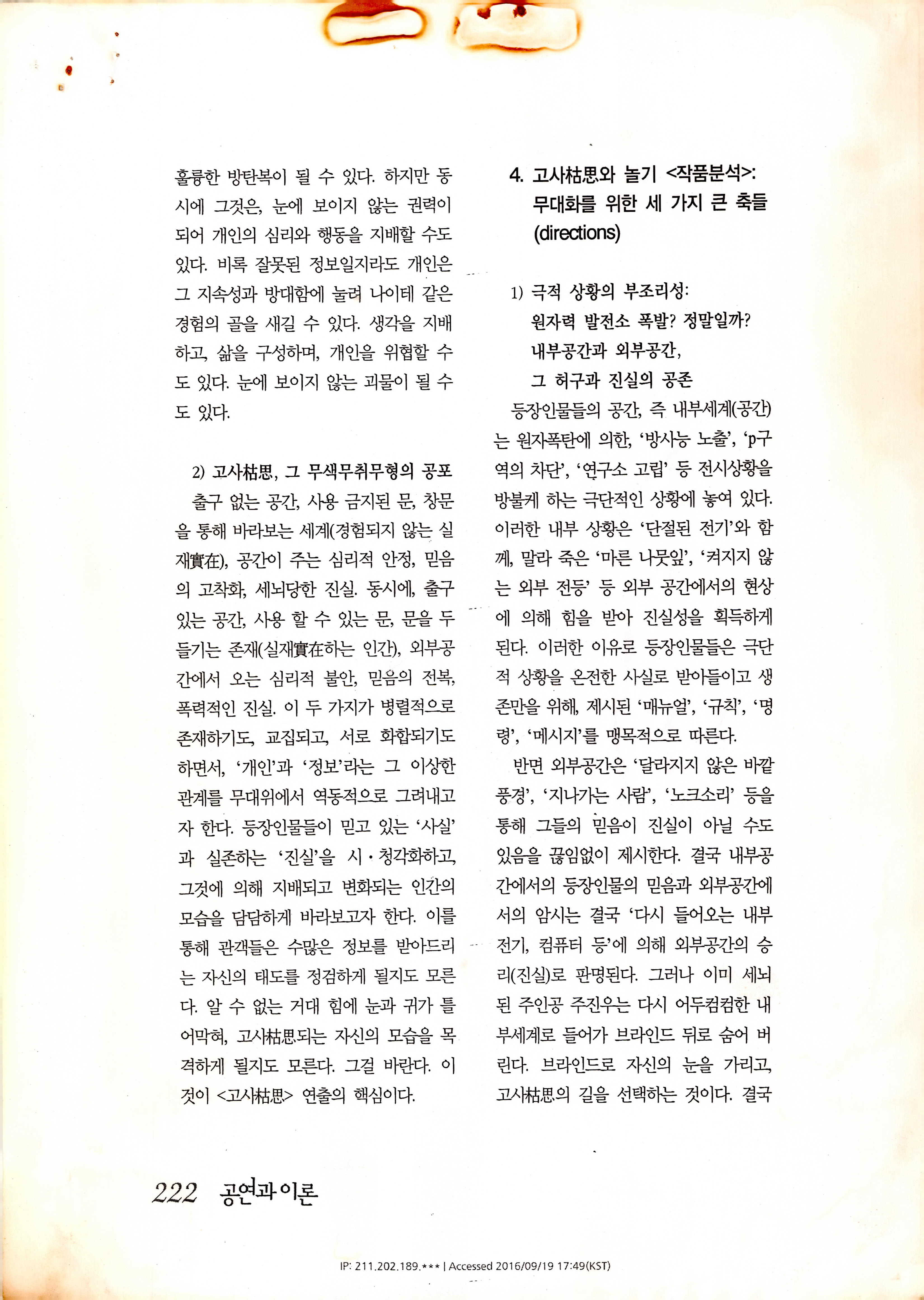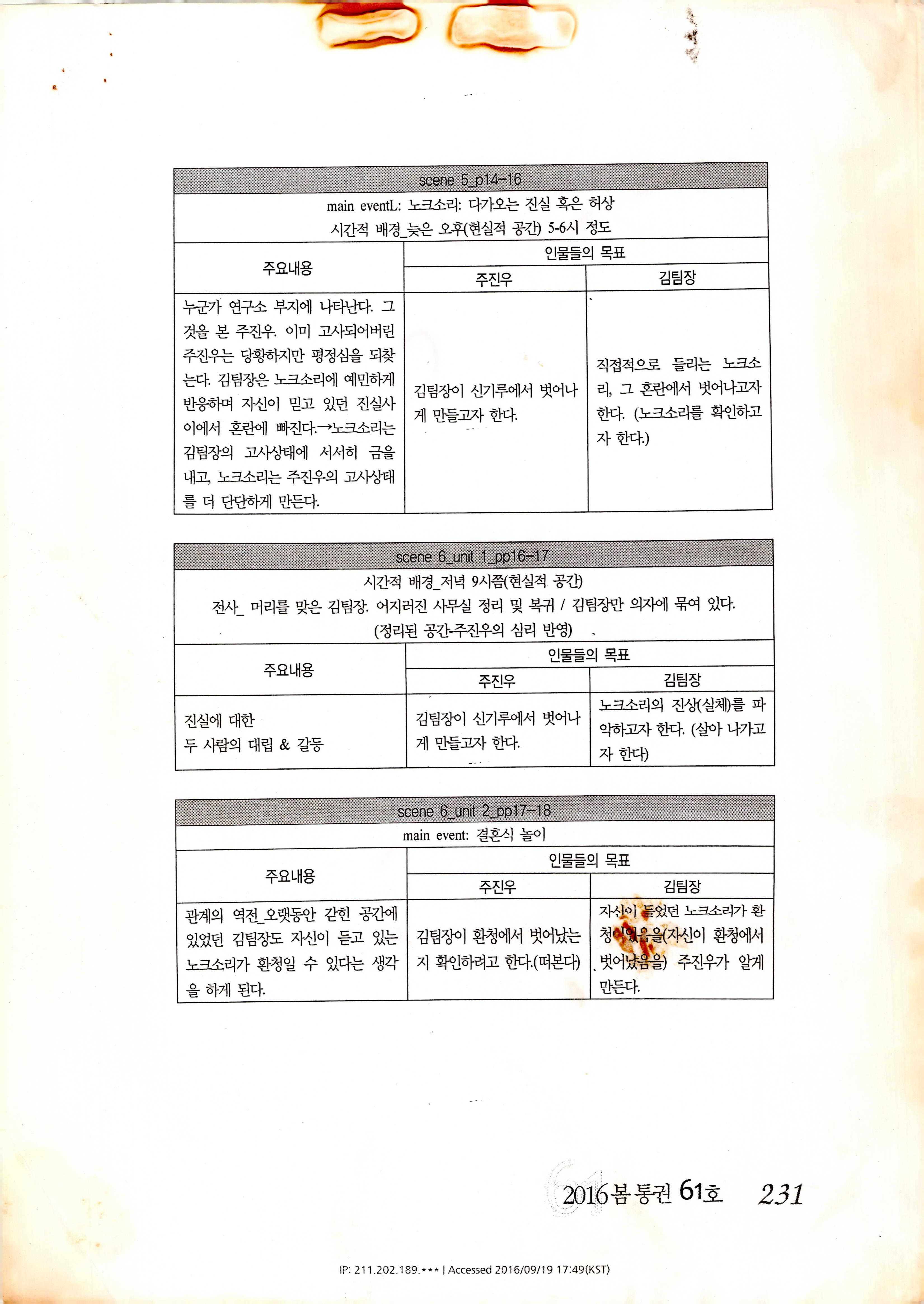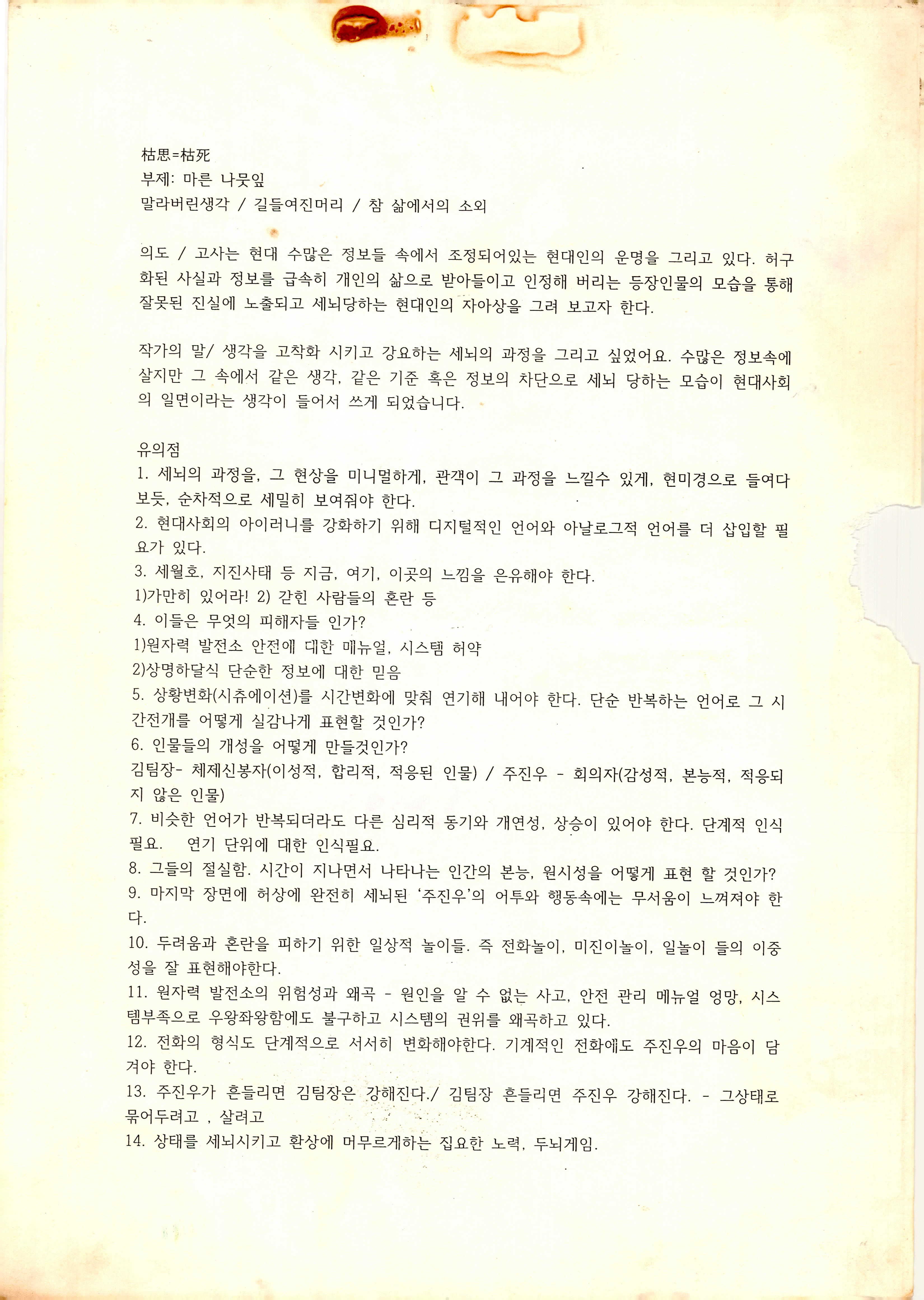 「枯思(부제: 마른 나뭇잎)」 대본집