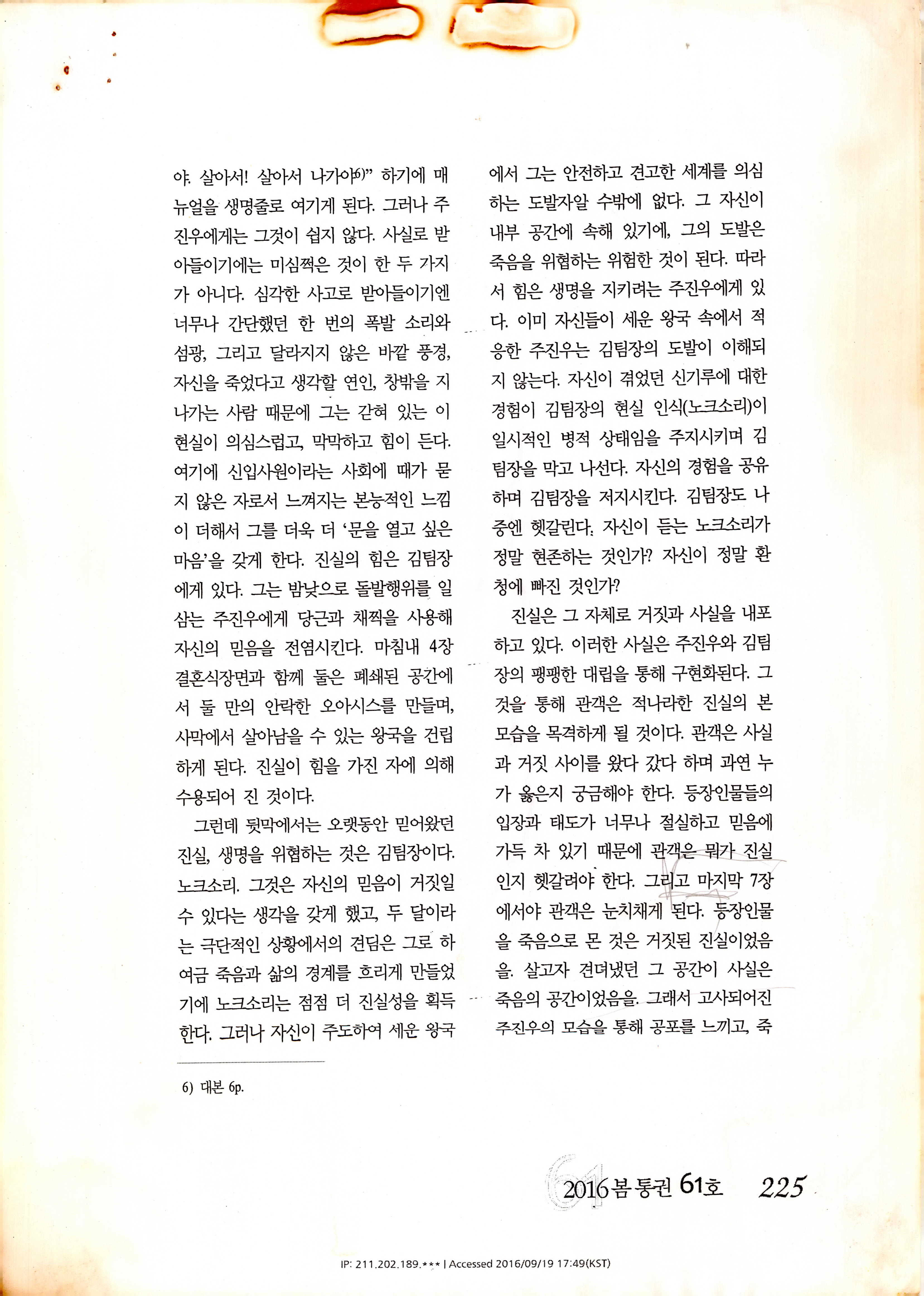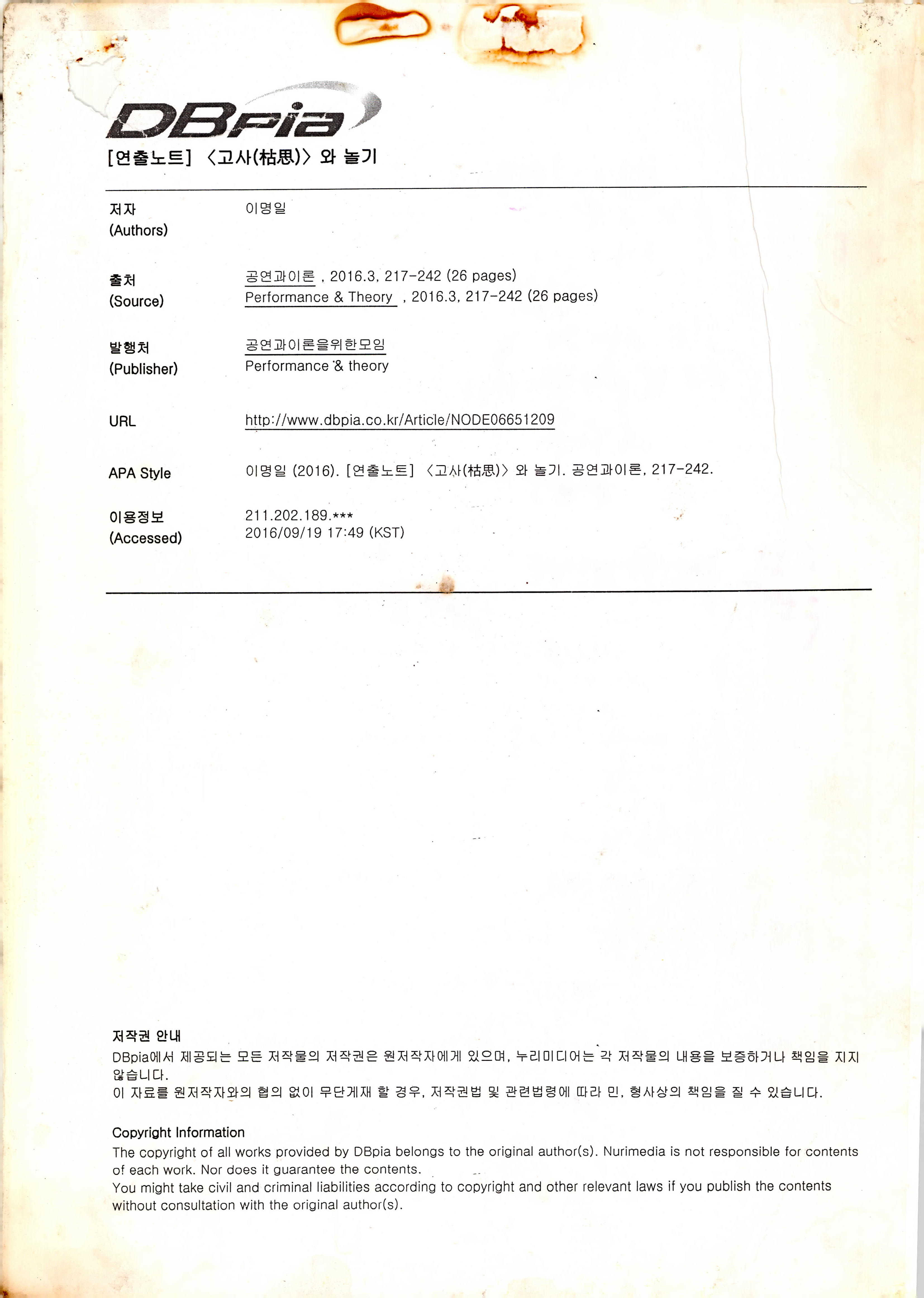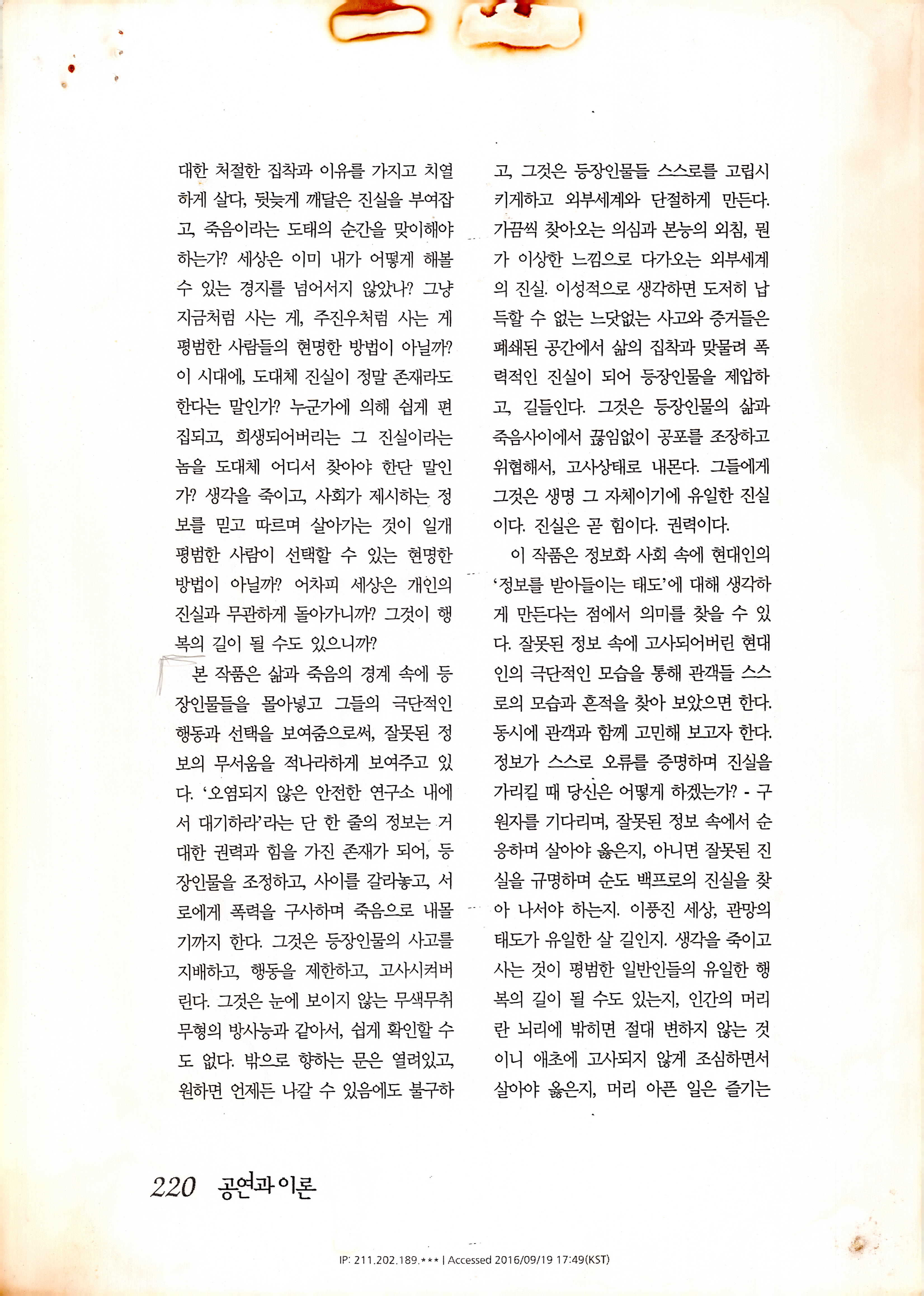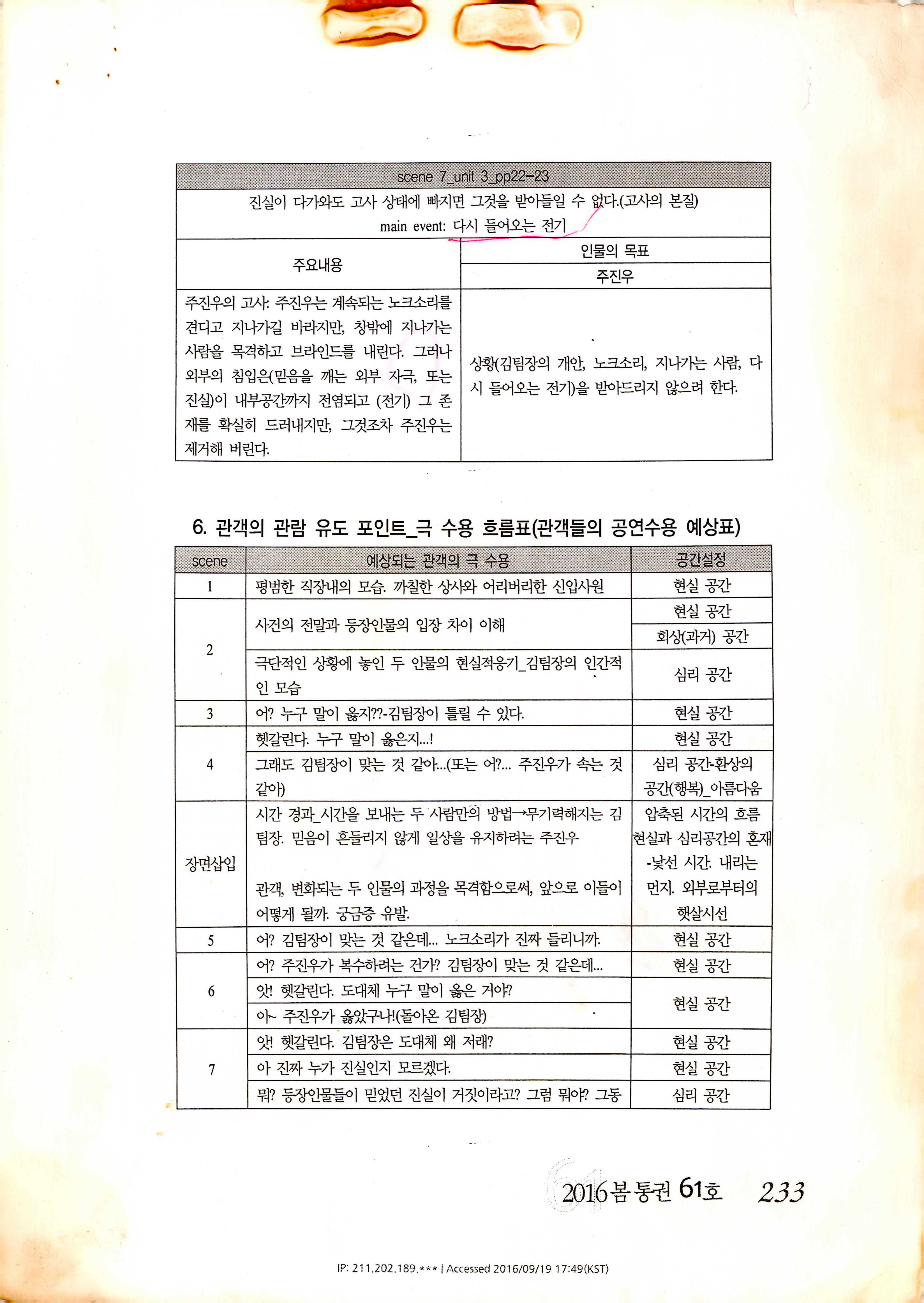 「枯思(부제: 마른 나뭇잎)」 대본집