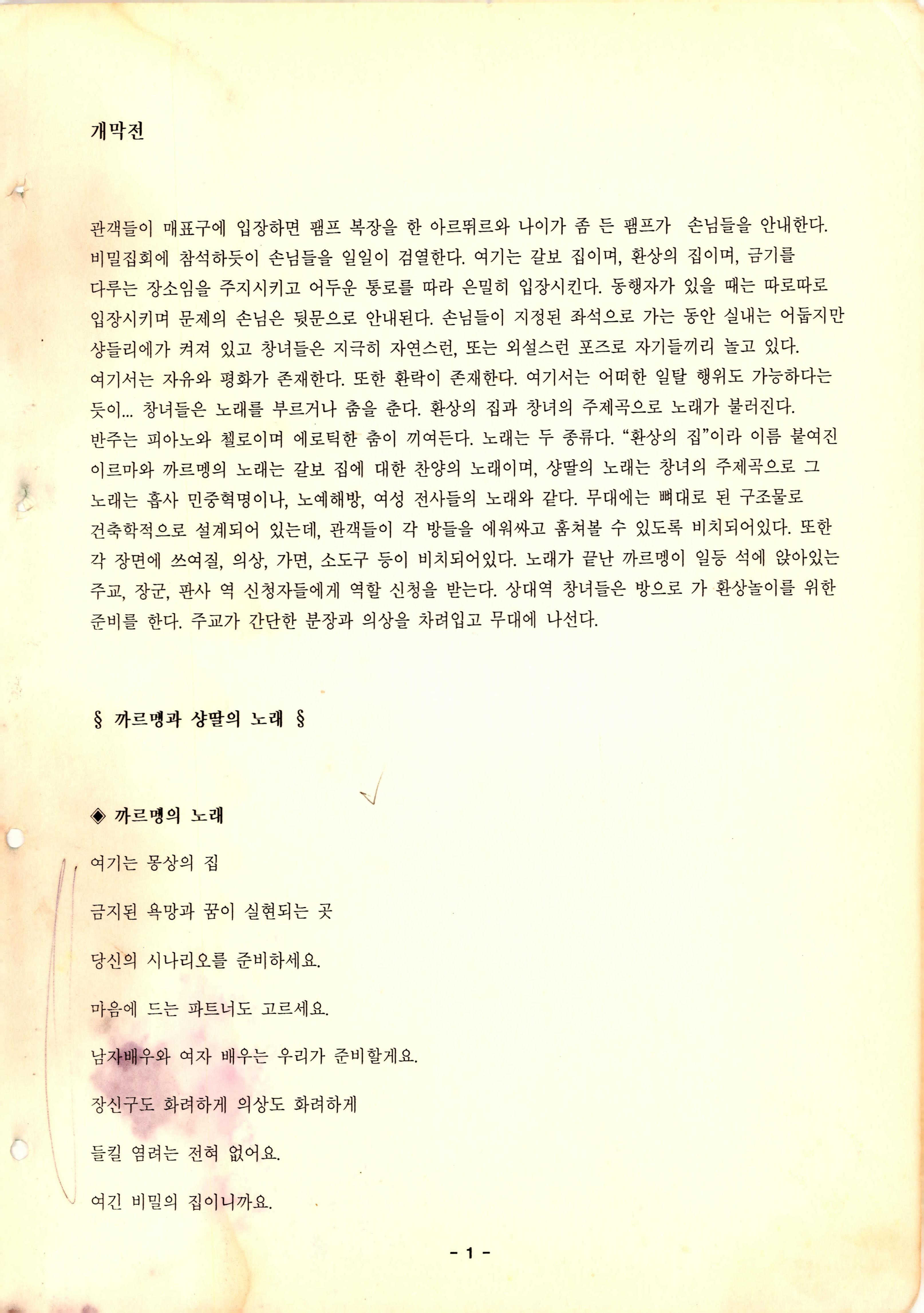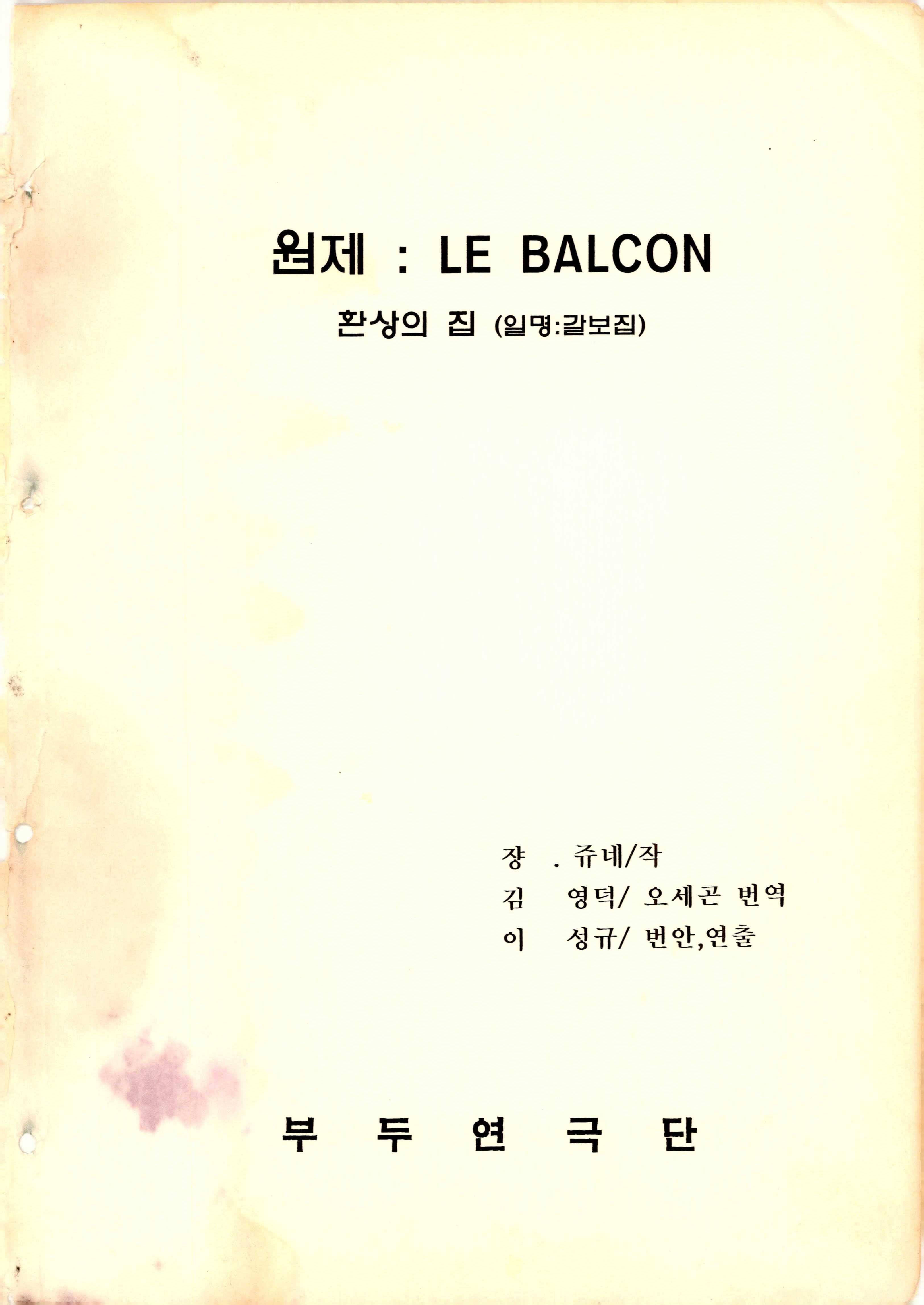 「원제: LE BALCON(발코니) 환상의 집(일명: 갈보집)」 대본집