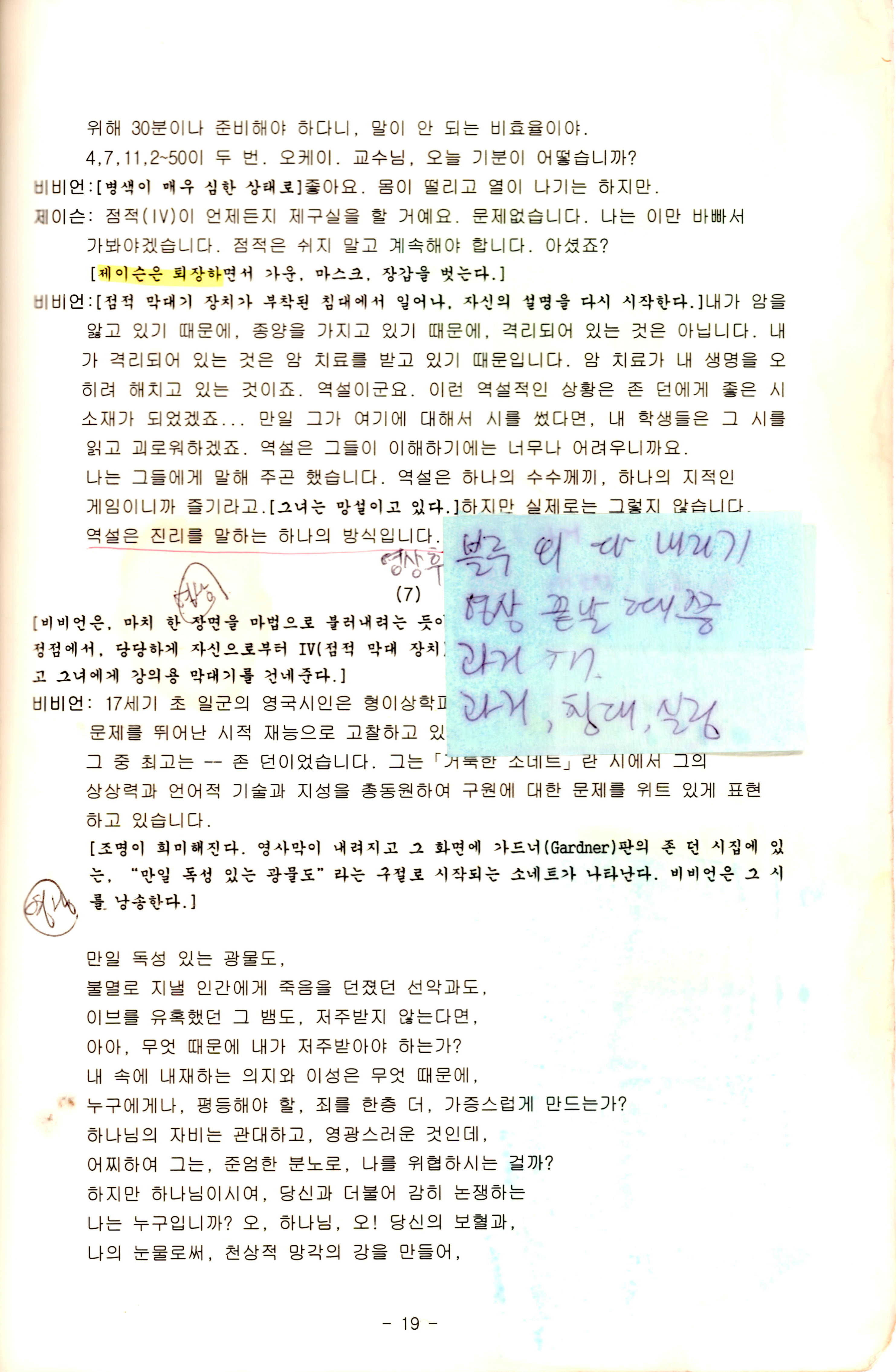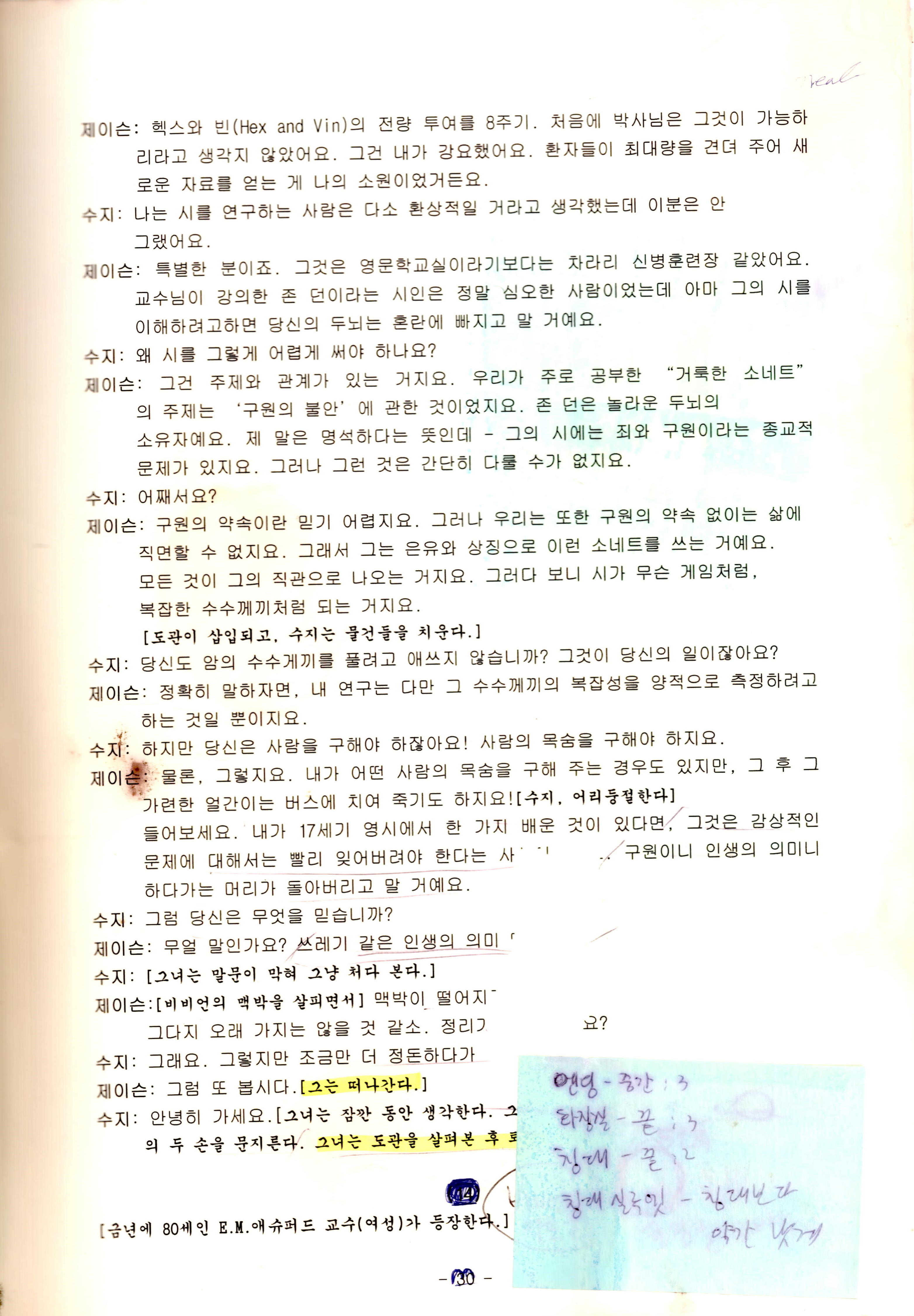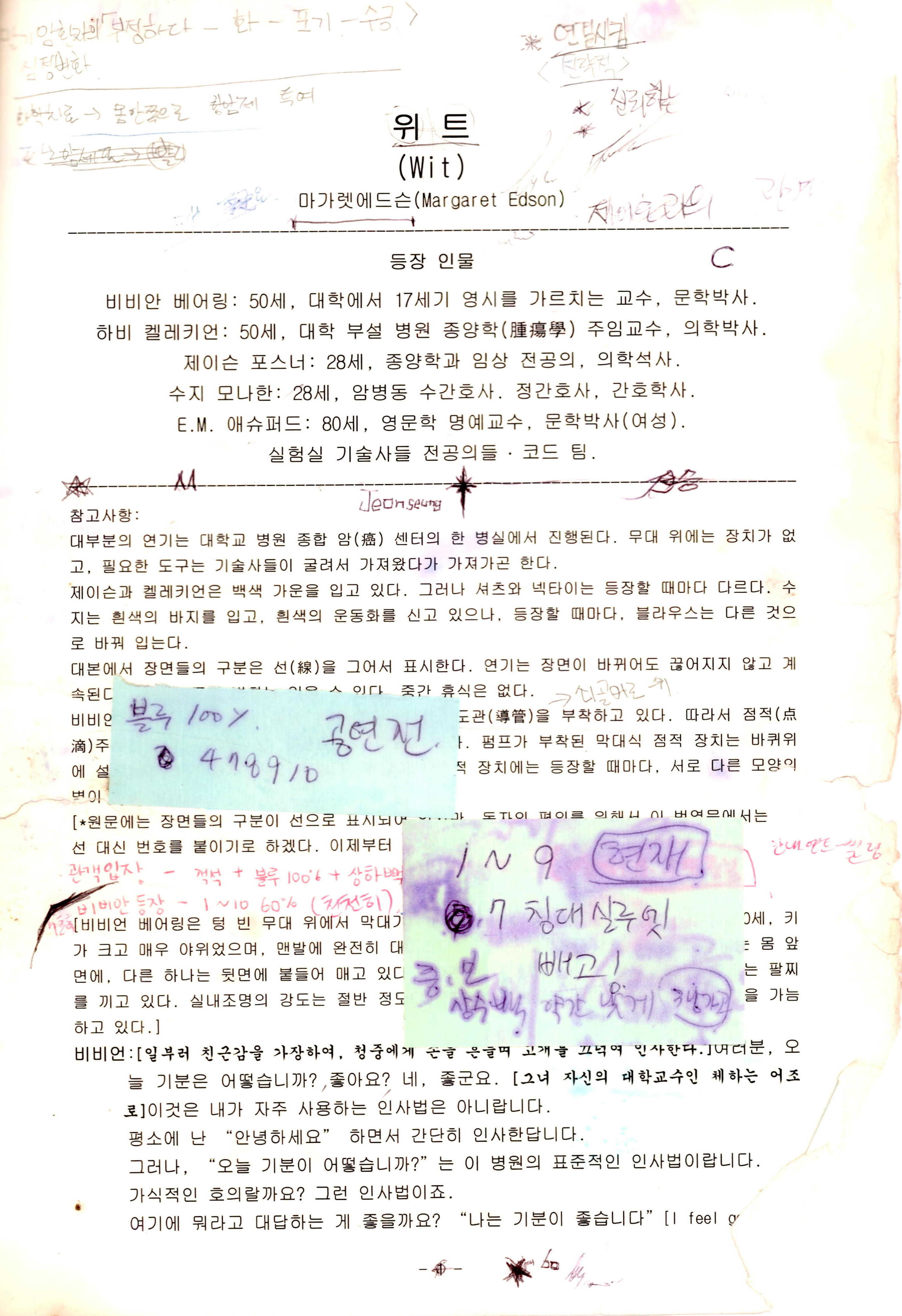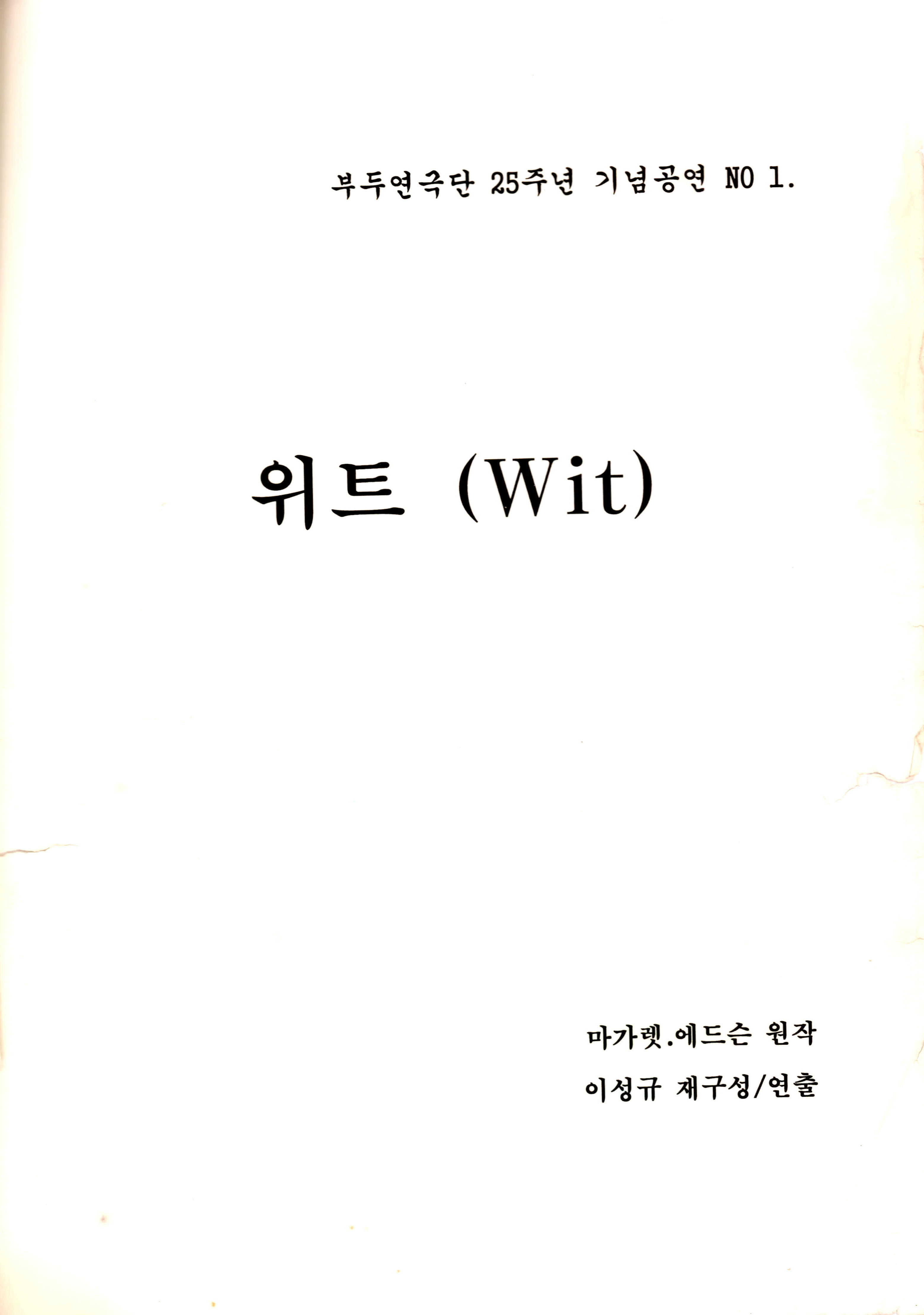부두연극단 25주년 기념공연 NO 1 「위트(Wit)」 대본집