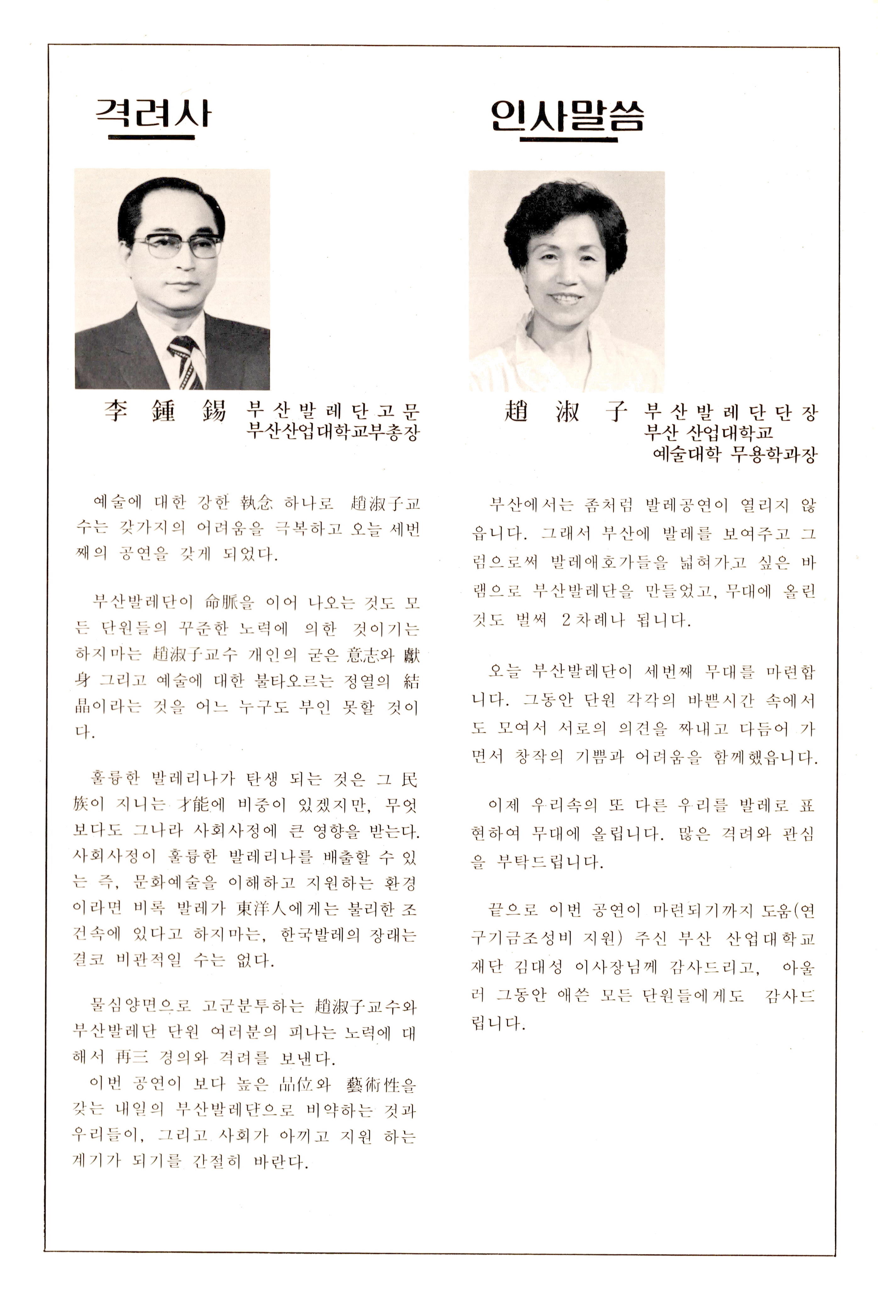 부산에서 열리는 1984년 부산발레단의 세 번째 무대로 기획되었다.