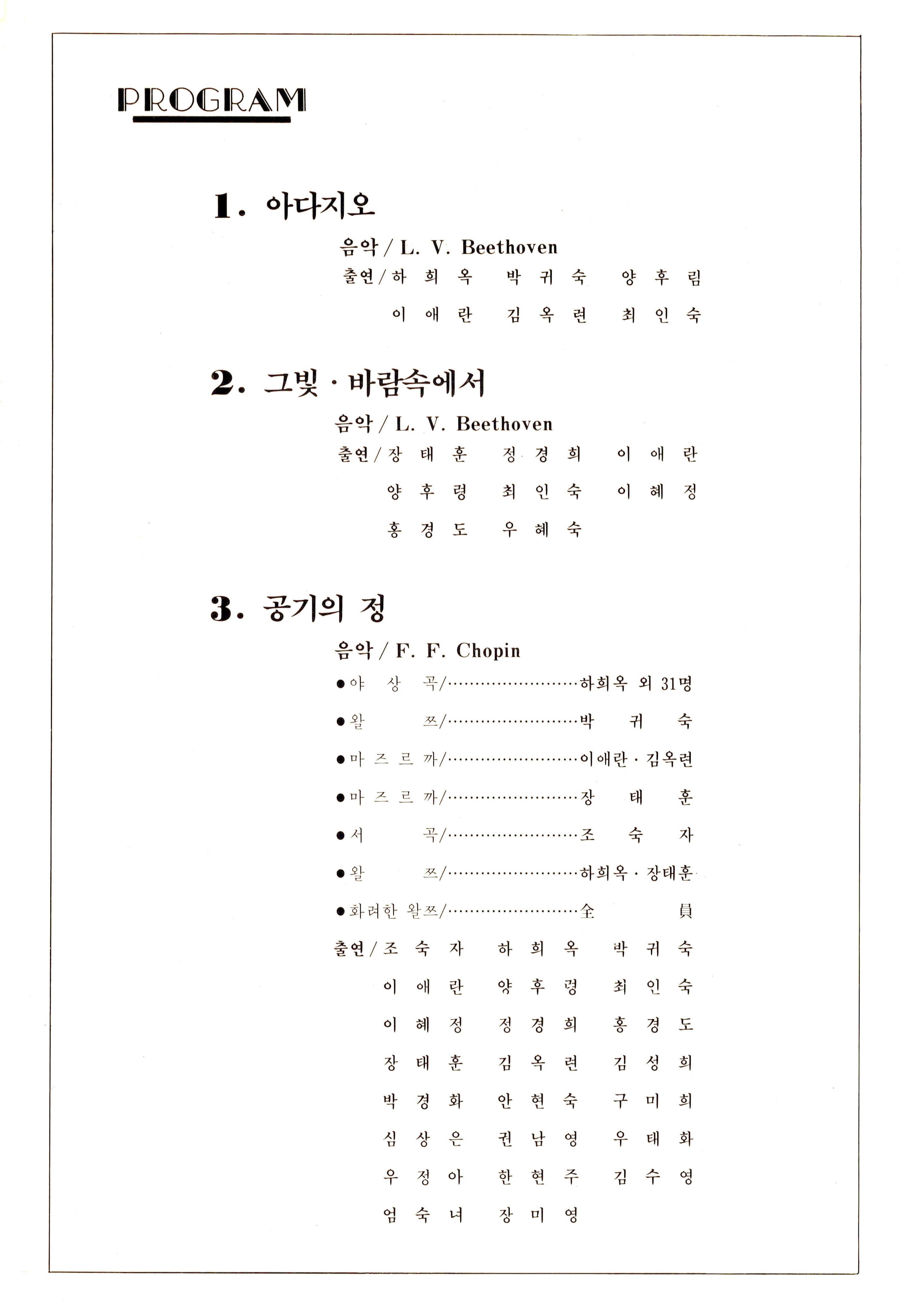 하희옥, 박귀숙, 이애란, 양후령, 최인숙, 이혜정, 정경희, 홍경도, 우혜숙, 장태훈, 김옥련, 김성희, 박경화, 안현숙, 구미희, 심상은, 권남영, 전광옥, 우태화, 우정아, 한현주, 김수영, 엄숙녀, 장미영