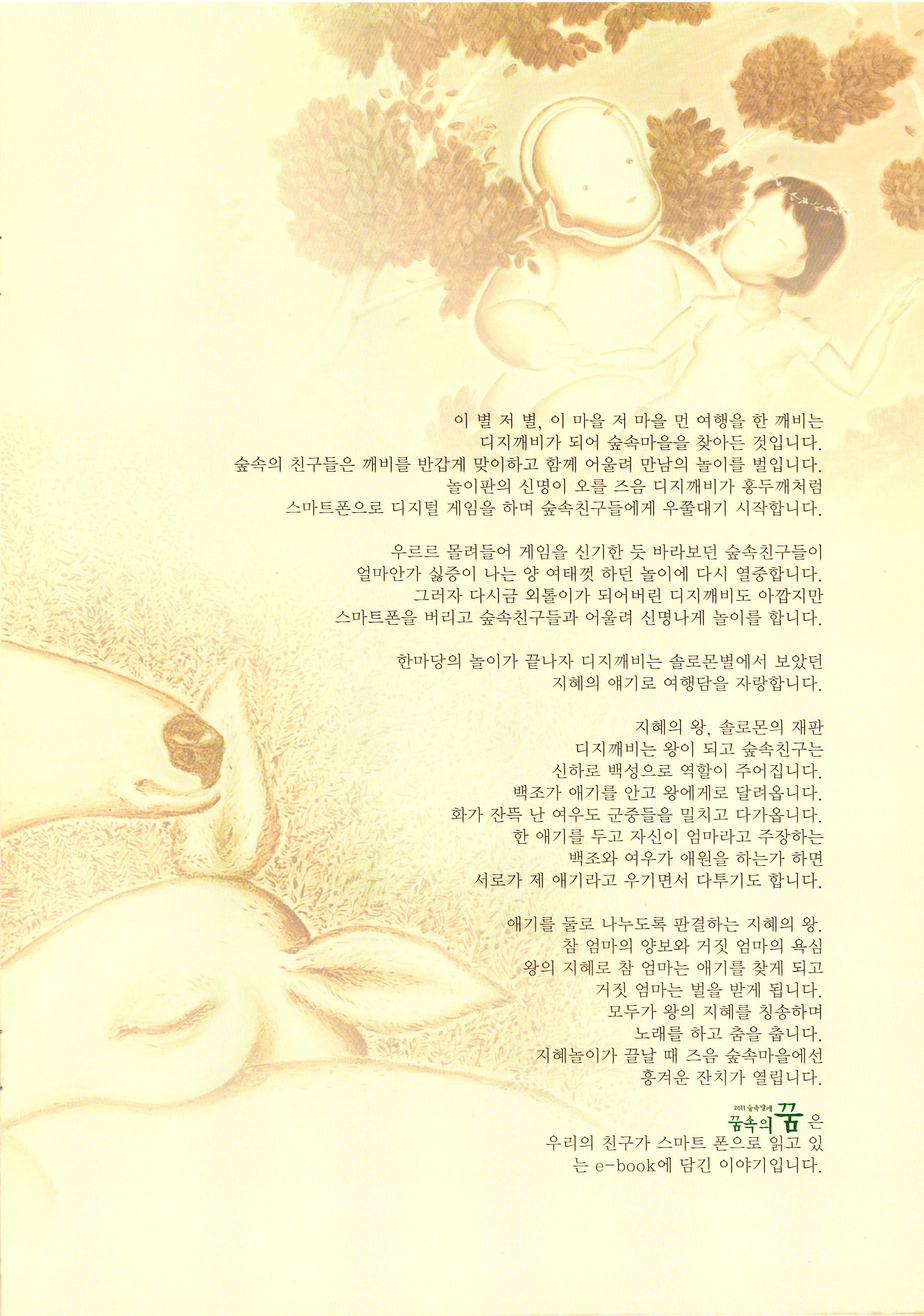 클래식 발레의 정형성에서 벗어나 춤극 Tanztheater 형식으로 꾸며진 작품이다. 작품은 OPENING, 숲속친구들과의 하루-숲속마을의 아침, 한낮의 만남-, 디지털의 꿈, Final로 구성되어 있다. 디지털 기기에만 푹 빠져 지내다 외톨이가 된 디지깨비가 디지털 대신 숲 속 친구와 어울리는 것을 선택하고, 친구들과 솔로몬 별을 찾아 먼 여행을 다니는 과정에서 웃음을 되찾는다는 내용을 담고 있다. 온갖 디지털 기기에 둘러싸인 어린이들에게 자연과 우주의 꿈의 소중함을 발레로 일깨워주는 작품이다.