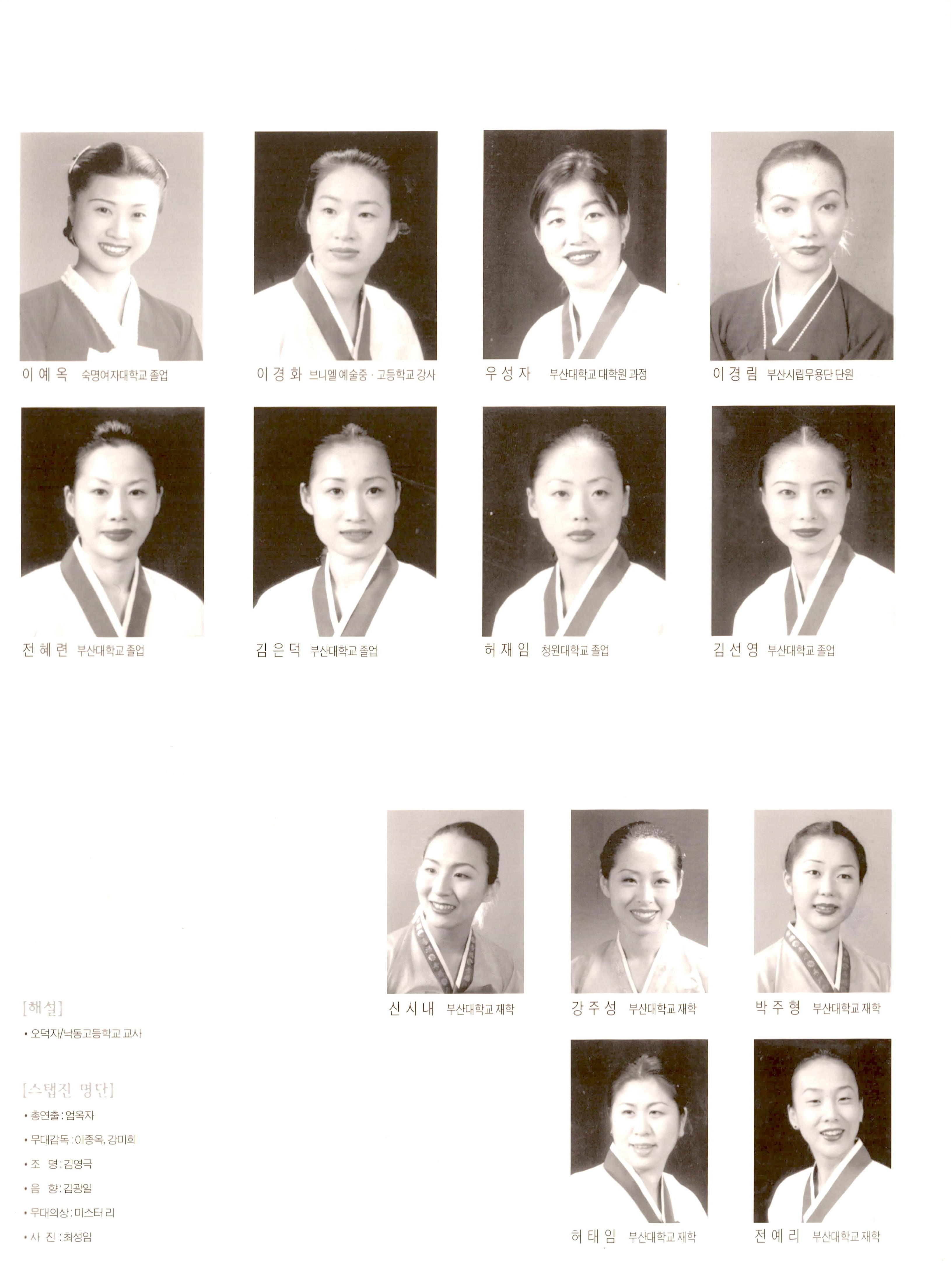 엄옥자, 오덕자, 김윤옥, 이계숙, 김태자, 김연화, 이화현, 안진희, 임정희, 신영미, 변지연, 황윤희, 김성미, 이예옥, 이경화, 우성자, 이경림, 전혜련, 김은덕, 허재임, 김선영, 신시내, 강주성, 박주형, 허태임, 전예리, 한정자, 김진규, 김문정, 유덕관, 김경호, 서진호, 진형준, 김창민, 김인수, 이은규