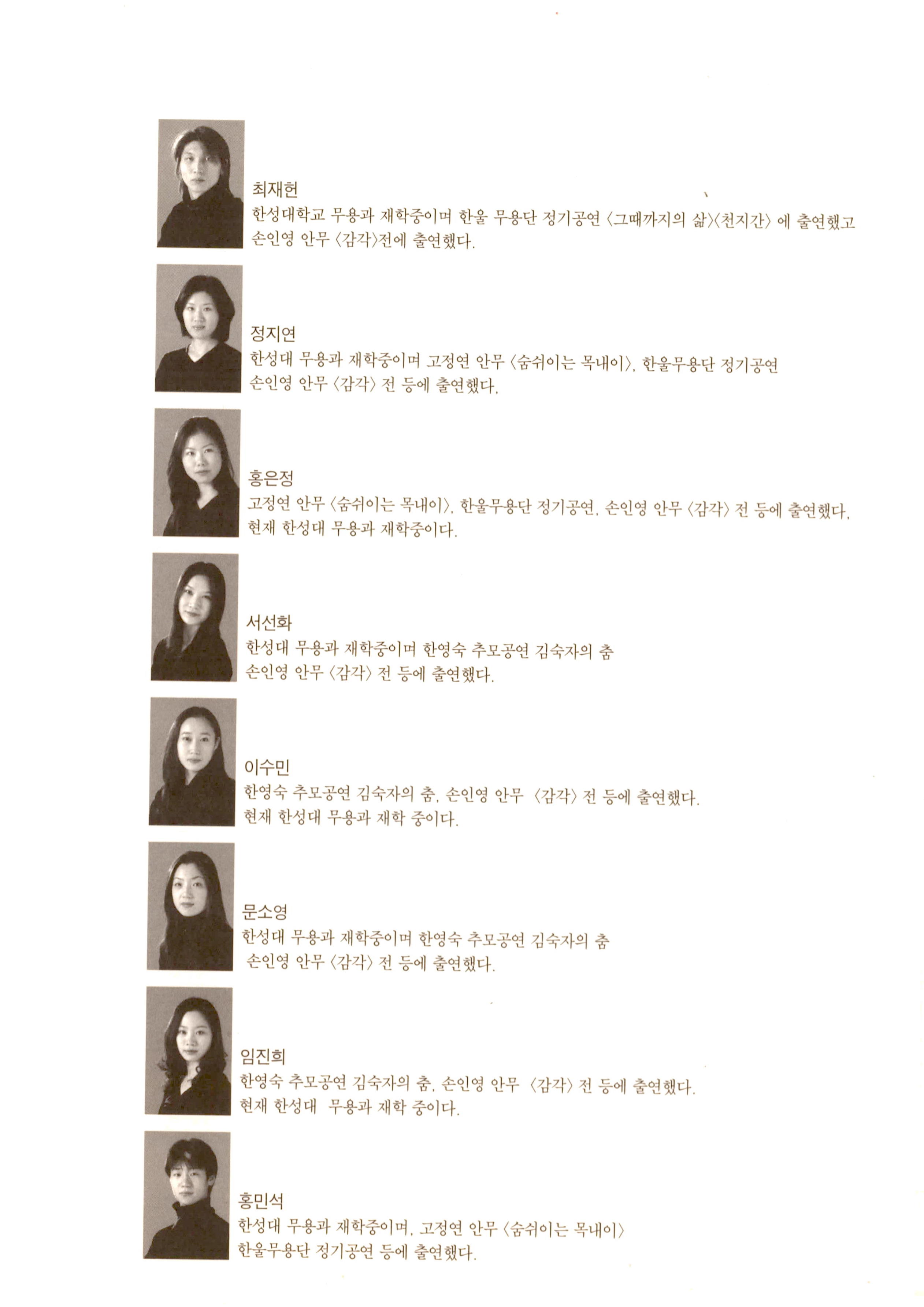 김혜숙, 김정은, 예효승, 윤푸름, 정연수, 장은영, 민재연, 최재현, 정지연, 홍은정, 서선화, 이수민, 문소영, 임진희, 홍민석