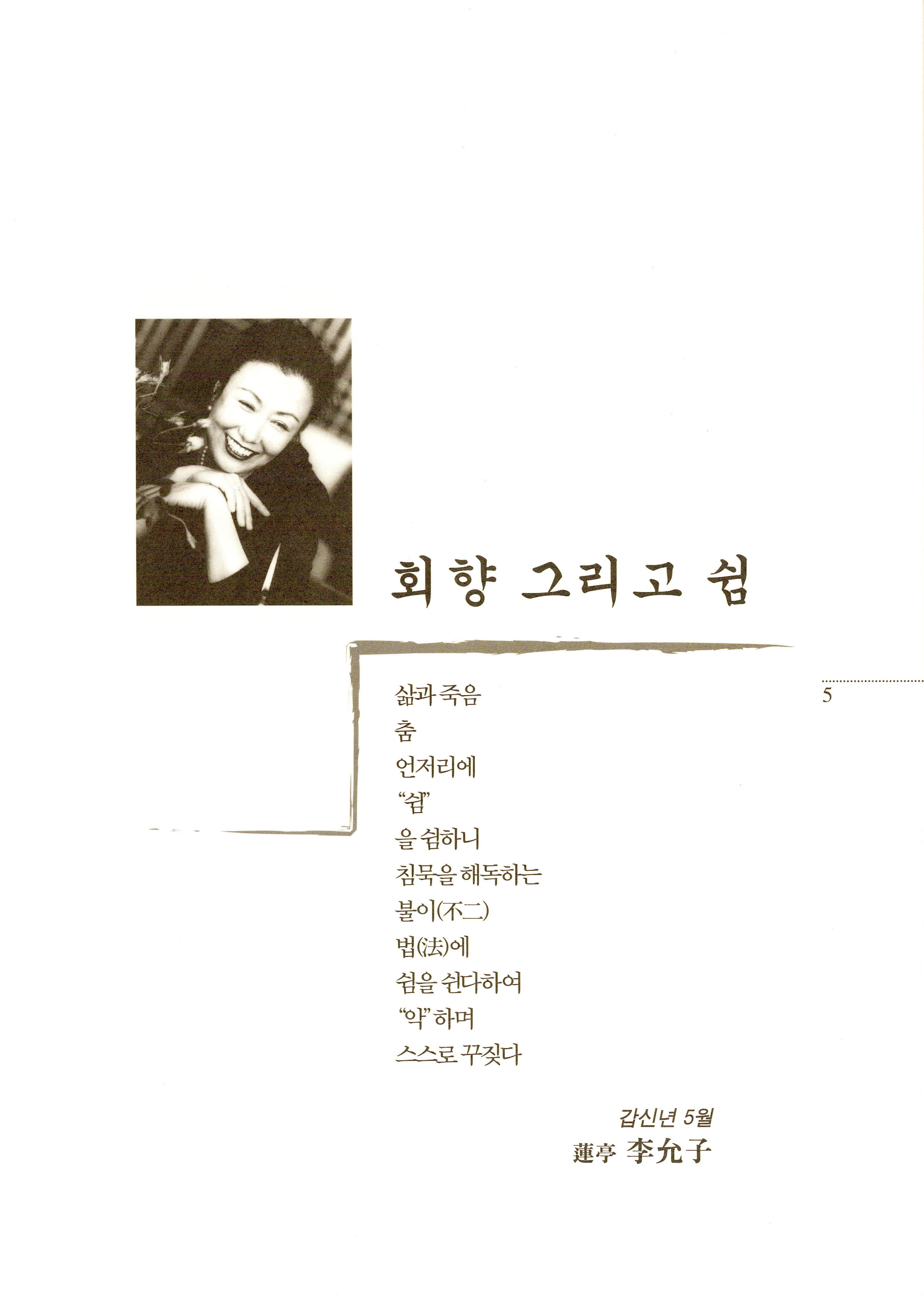 춤과 론 연작시리즈 세번째로 김추자의 안무로 공연되었다. 고향과 자신을 찾아가는 여정의 형식을 춤으로 푼 작품으로, 춤 자에 담긴 의미를 내면의 감정을 표현하는 살 · 푸리를 통해 자연으로서의 본집인 고향과 내면 심리표출에 중점을 두고 전통춤의 자연성을 바탕으로 구성하였다.