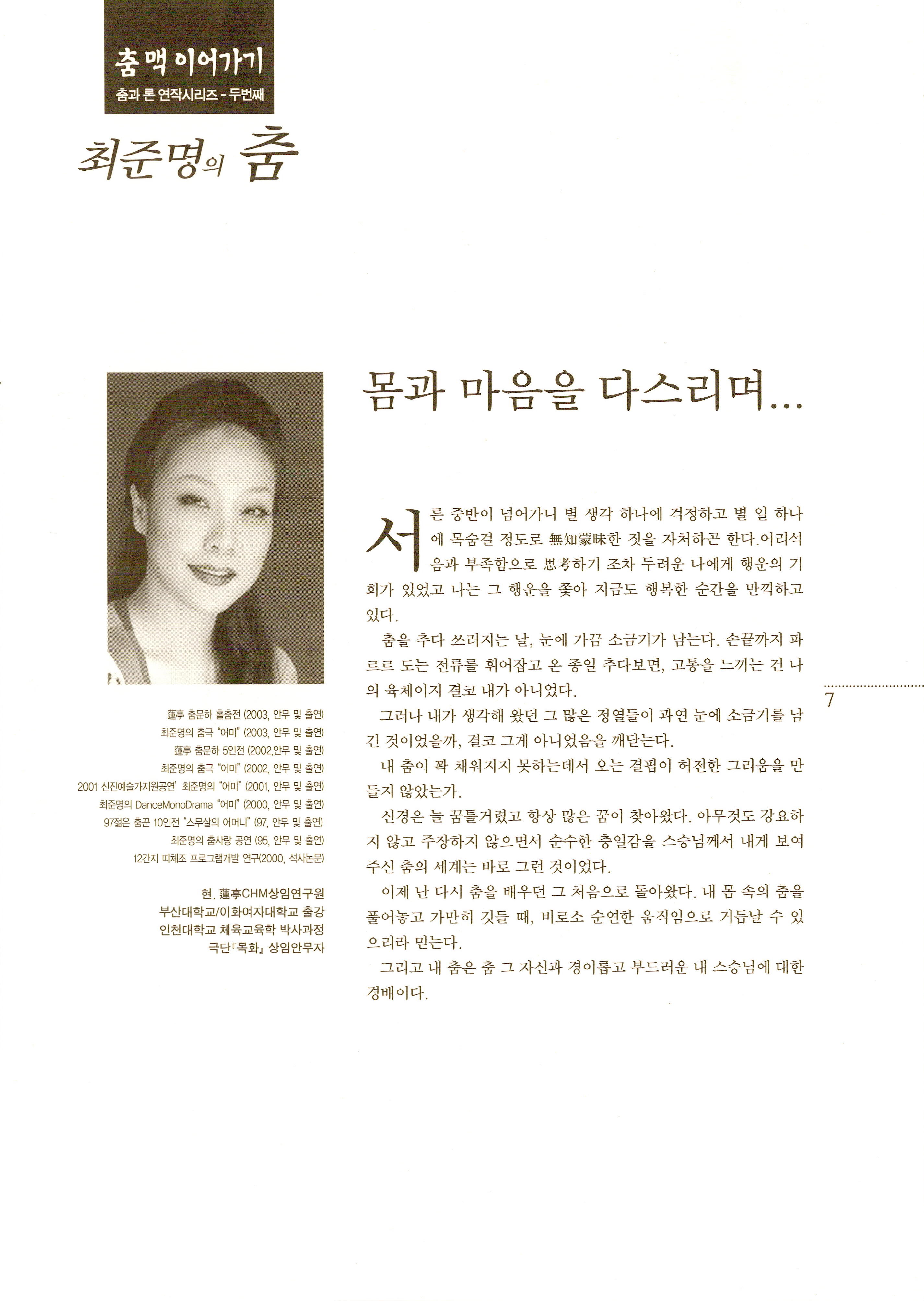 춤맥 이어가기 춤과 론 연작시리즈 두 번째, 세 번째 시리즈로 기획되었다.