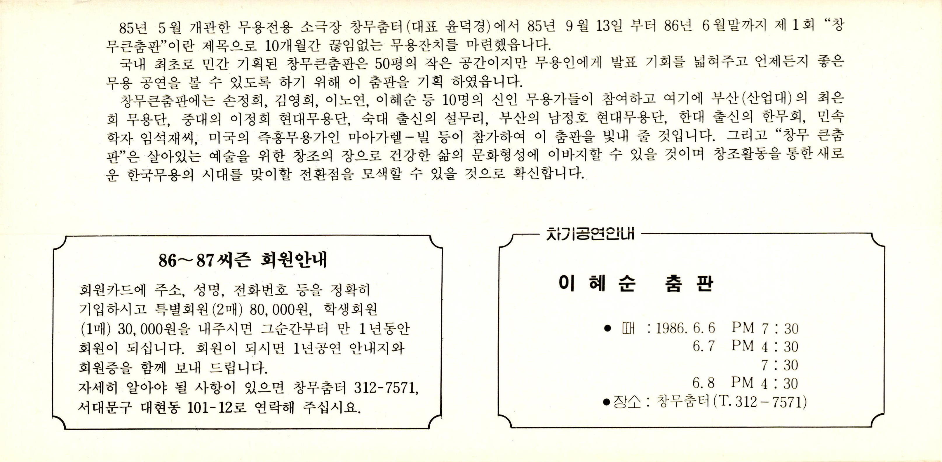 - 공연날짜1986.5.30 ~ 1986.6.1