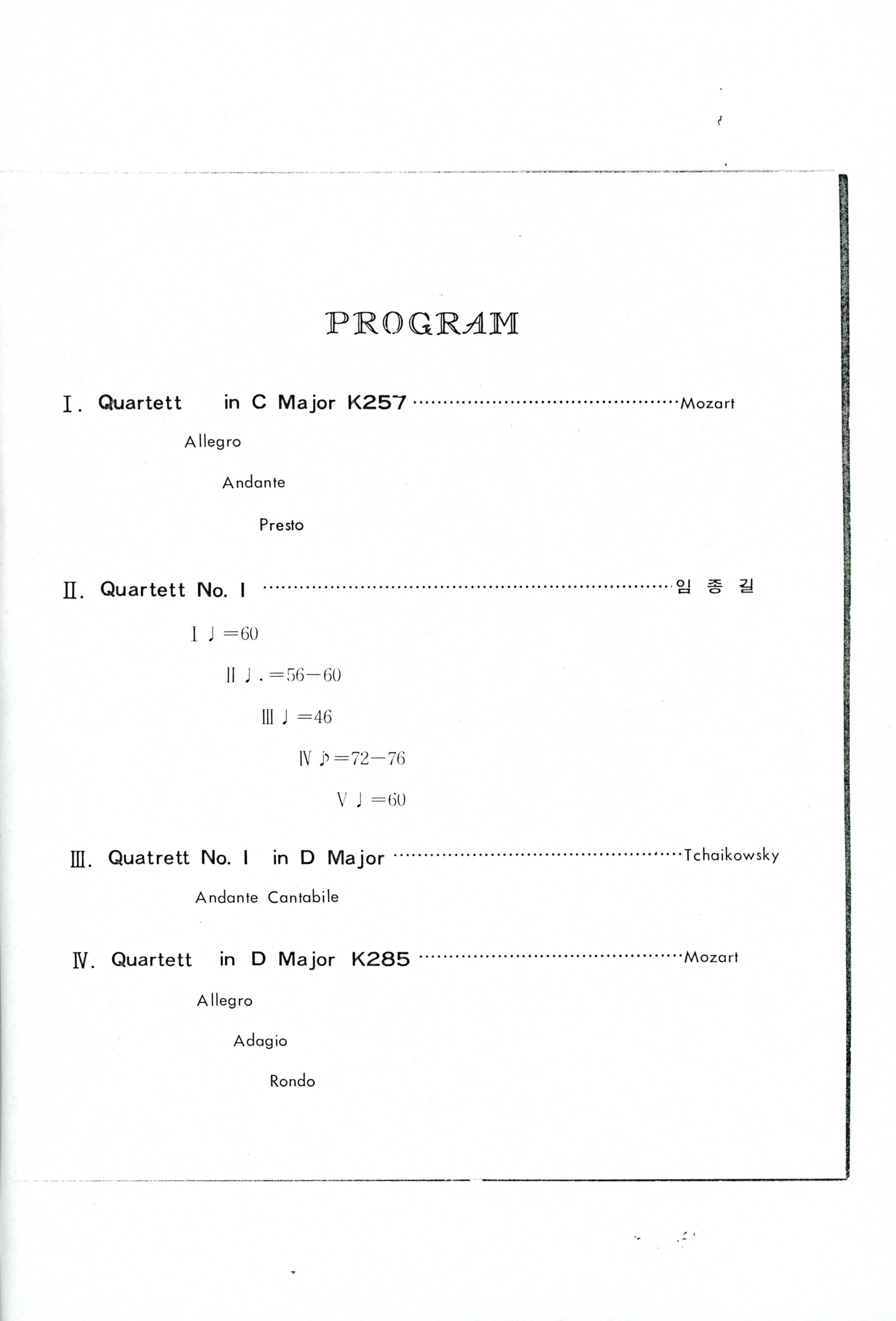 1978년 12월 30일에 부산여자대학강당에서 부산여자대학 음악학과 교수일동(유호석, 박화남, 오태균, 전범도)가 주최한 《'78 부산여대 실내악의 밤》리플릿이다. 인사말씀과 프로그램 구성(모짜르트 현악 4중주 다장조, 임종길의 현악 4중주1번, 차이코프스키 현악 4중주 1번 라장조, 모짜르트 현악 4중주 라장조) 구성이 기술되어 있으며 뒷면에 '이 프로그램은 초대권을 대신합니다' 라는 문구가 있어 리플릿 겸 초대권임을 알 수 있다.