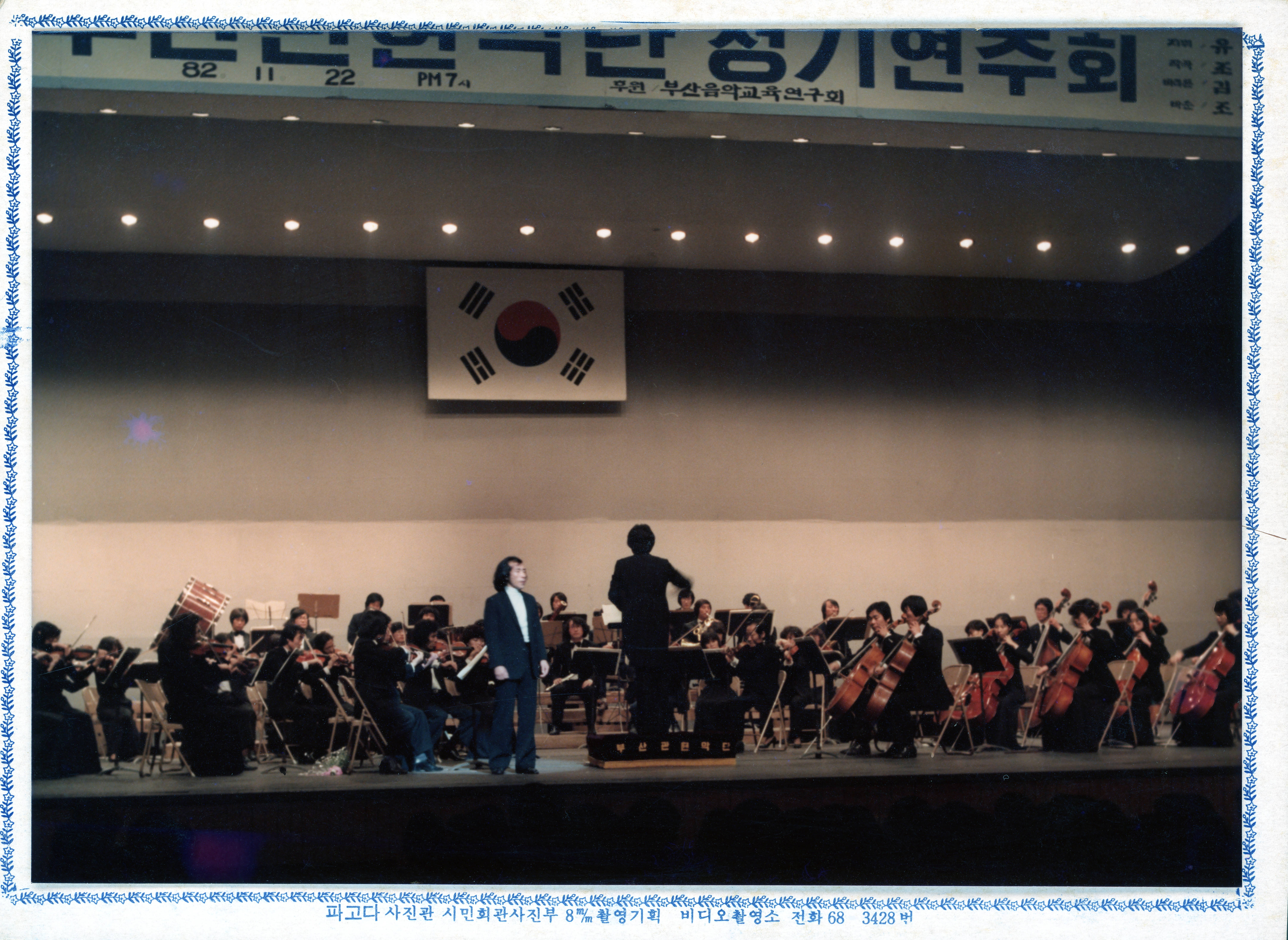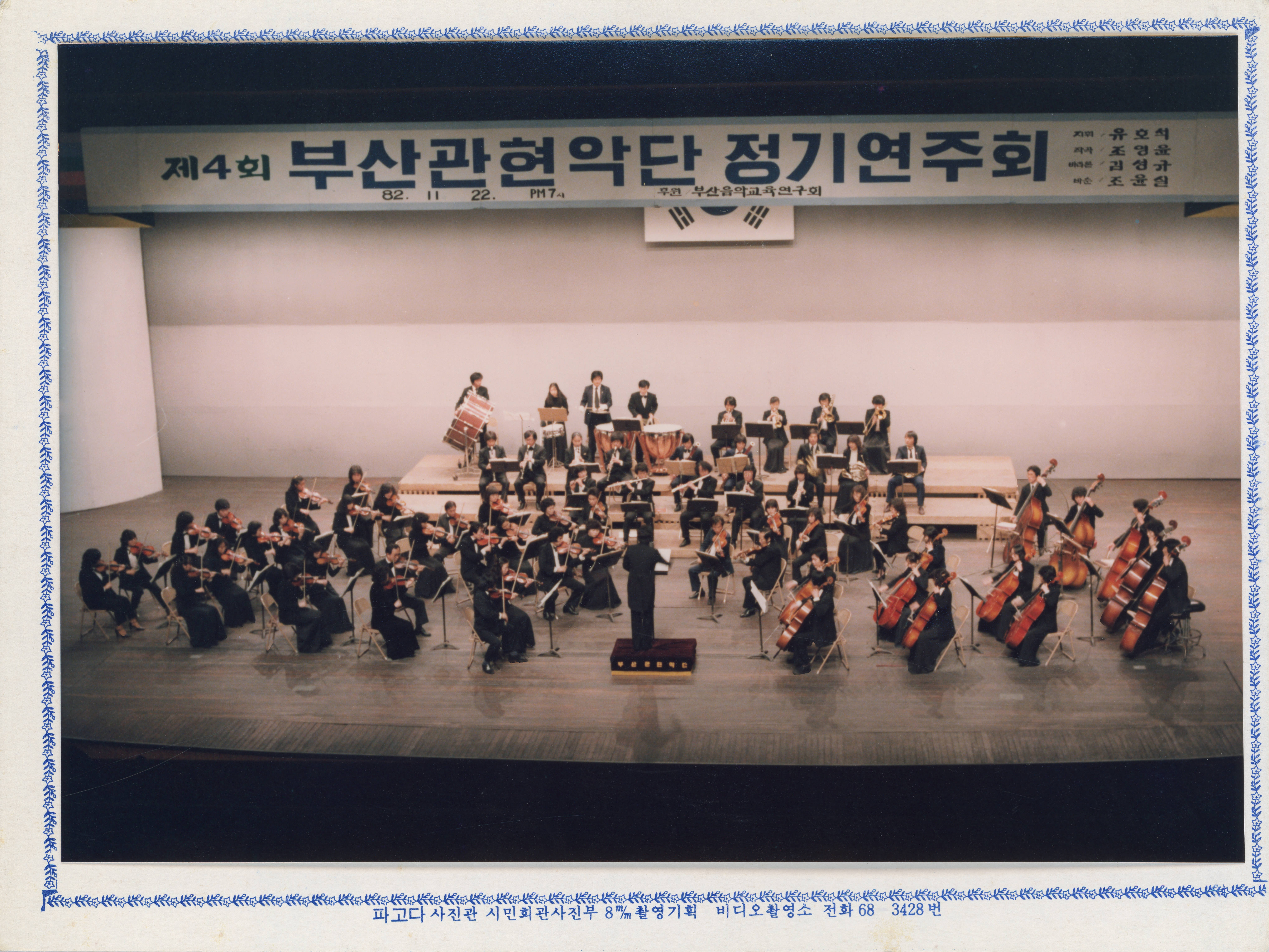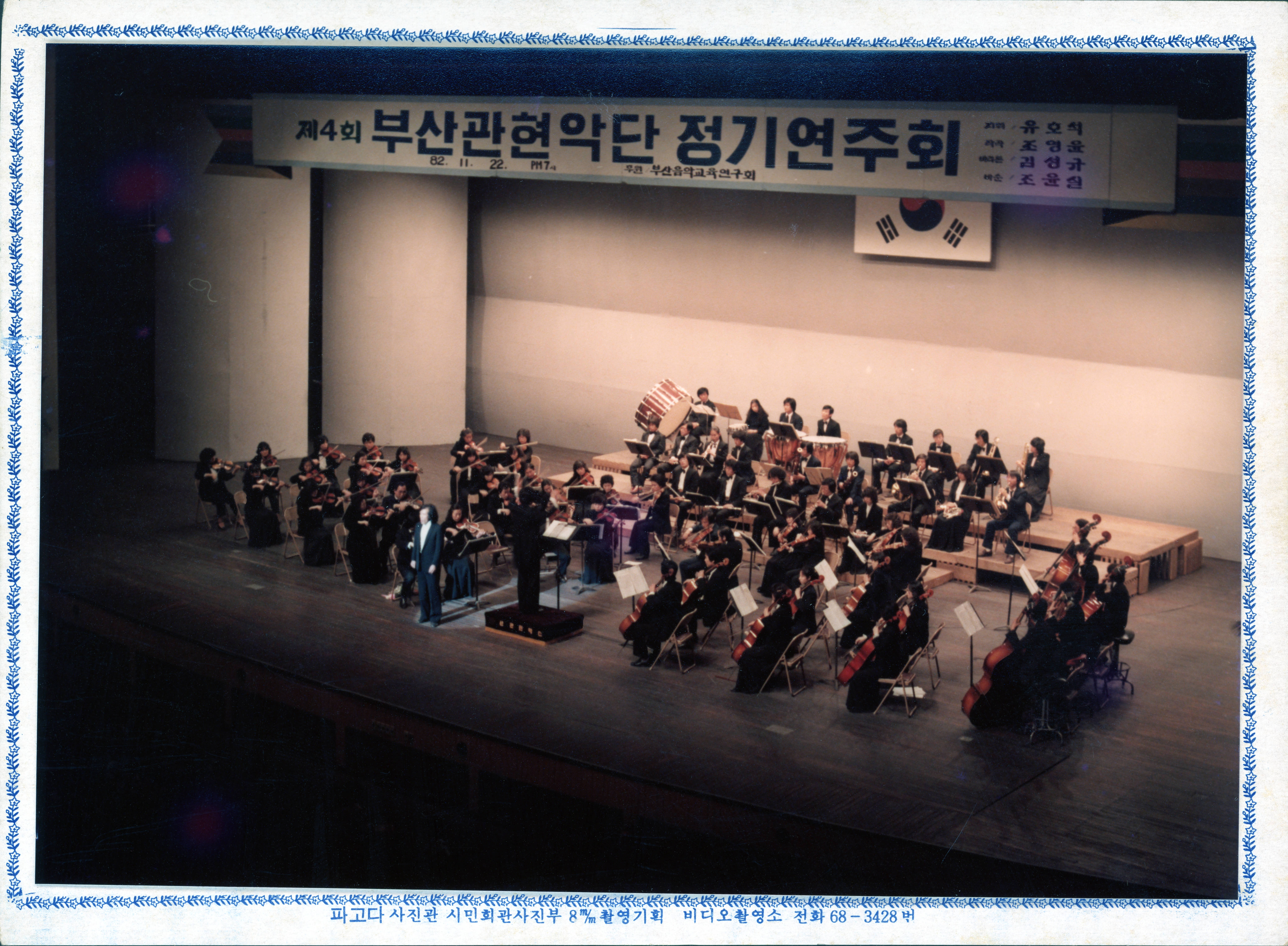 1982년에 촬영된 《제4회 부산관현악단 정기연주회- 지휘 유호석》 인화사진이다.