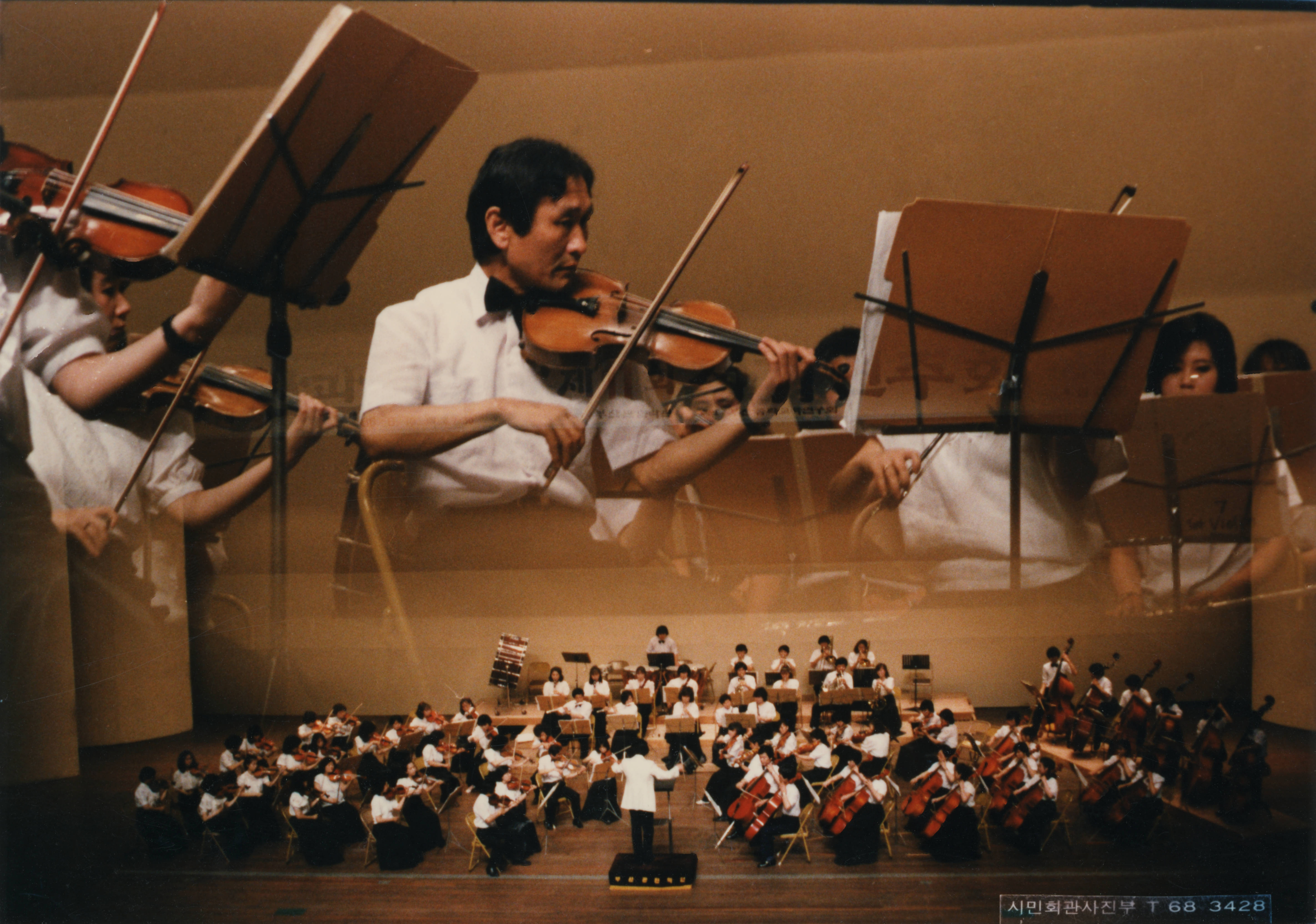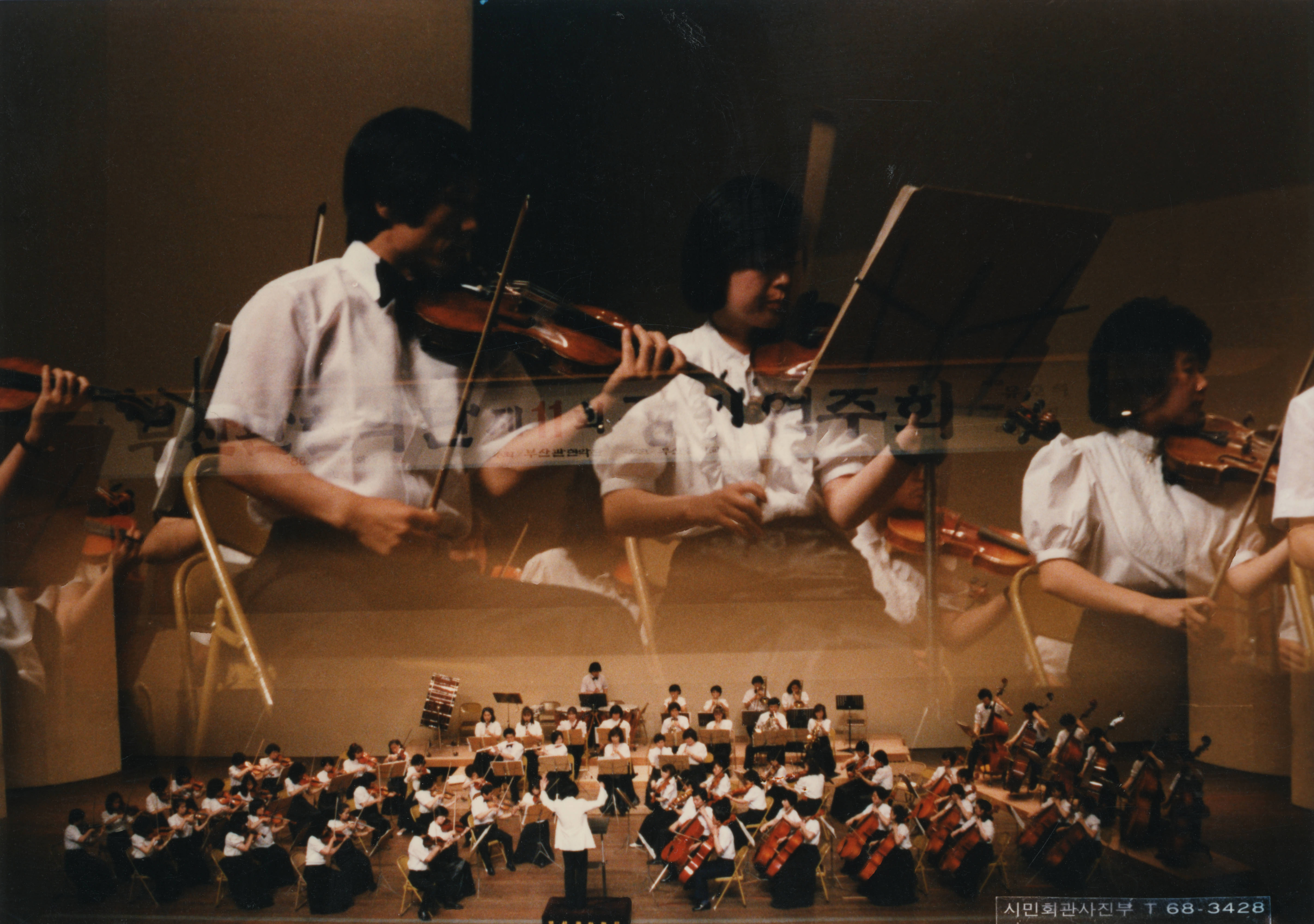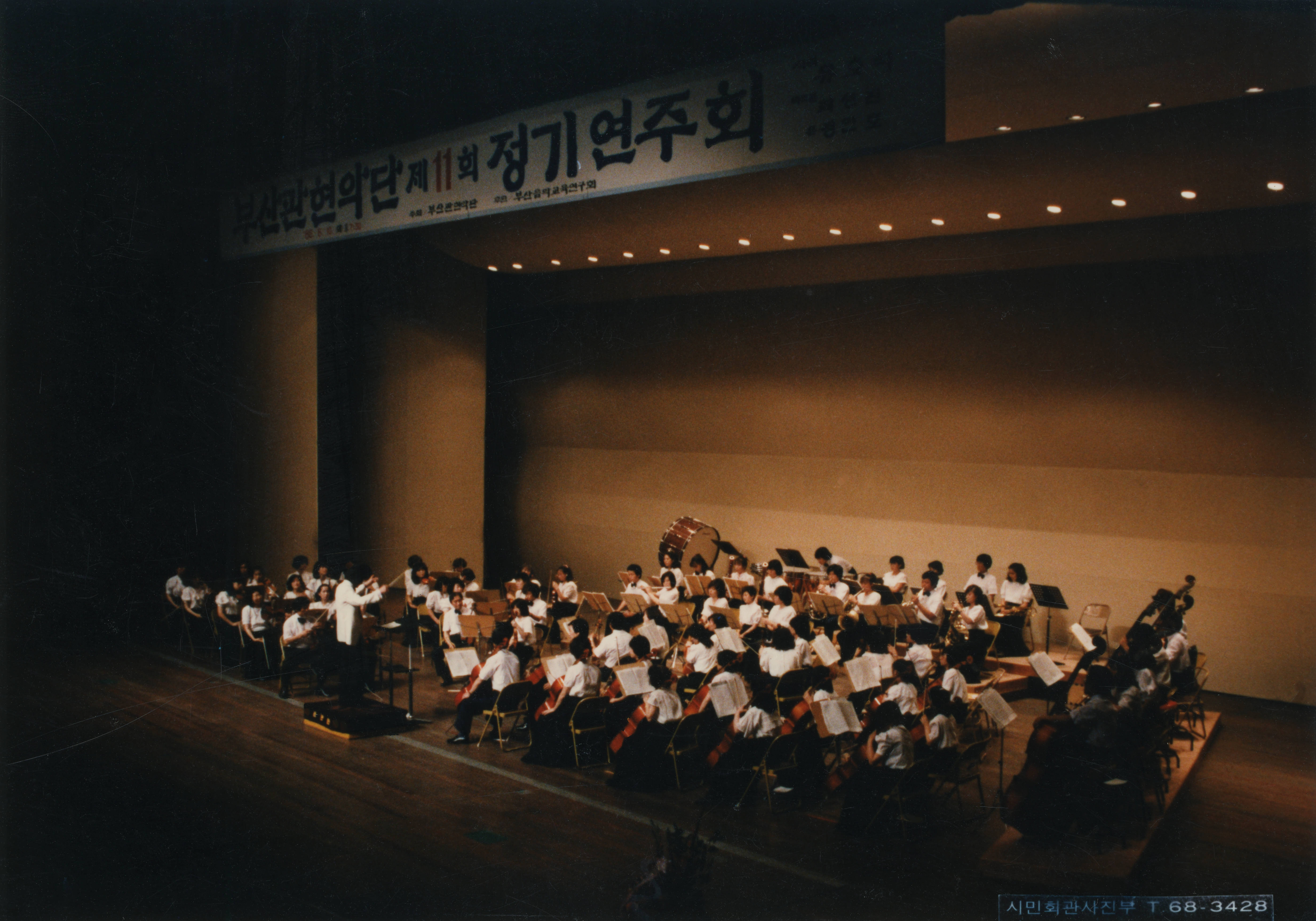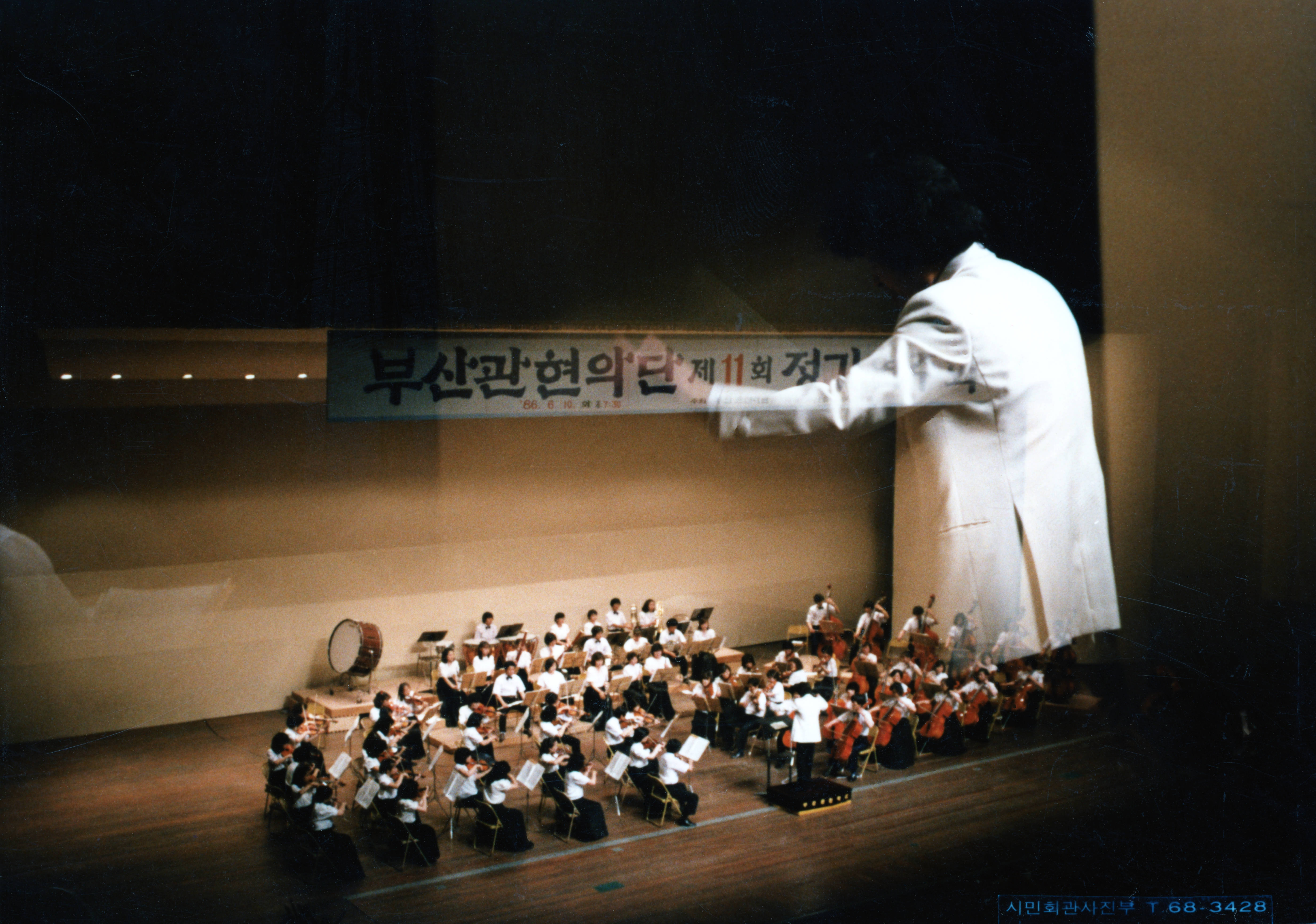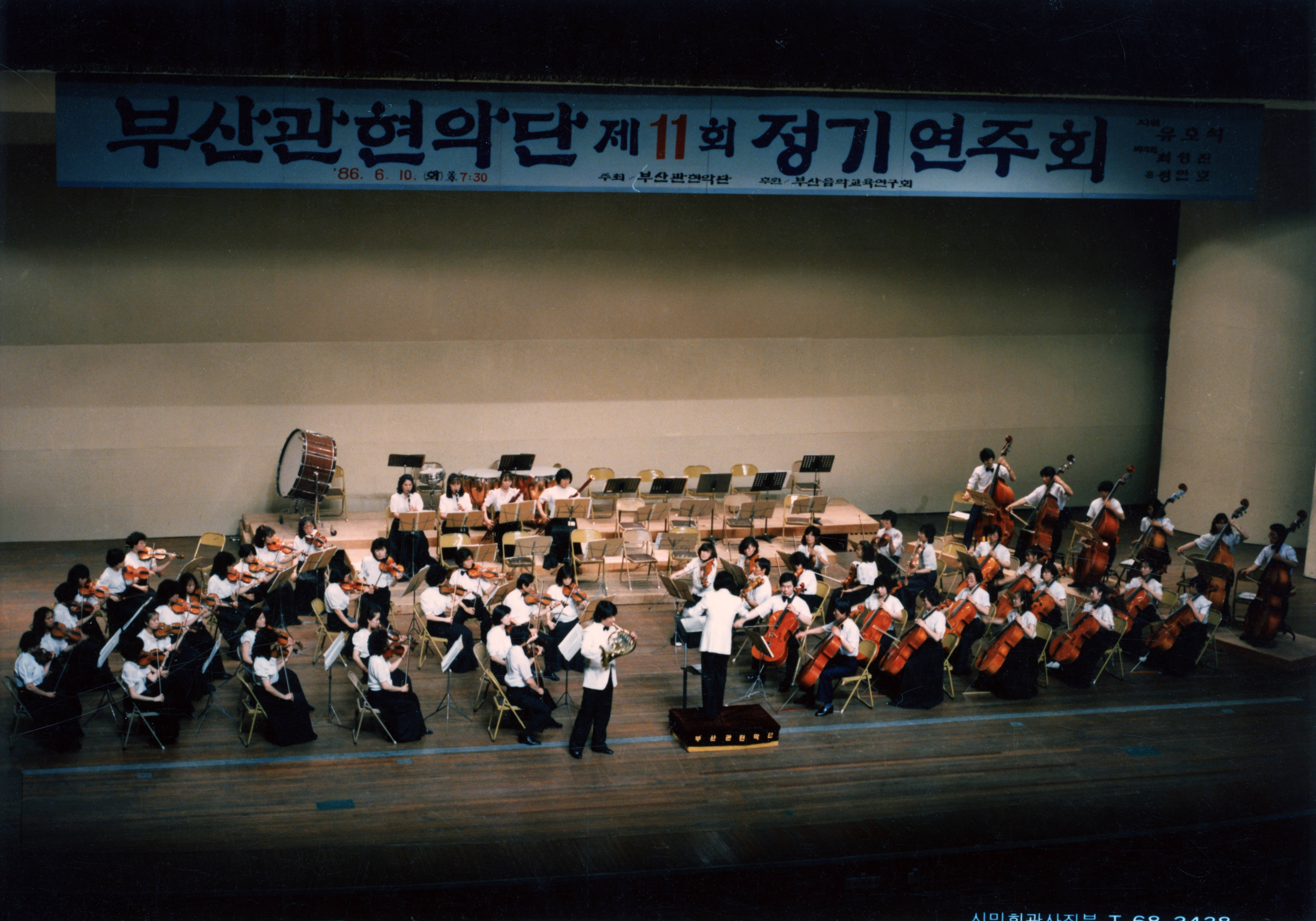 1986년에 촬영된 《제11회 부산관현악단 정기연주회- 지휘 유호석》 인화사진이다.