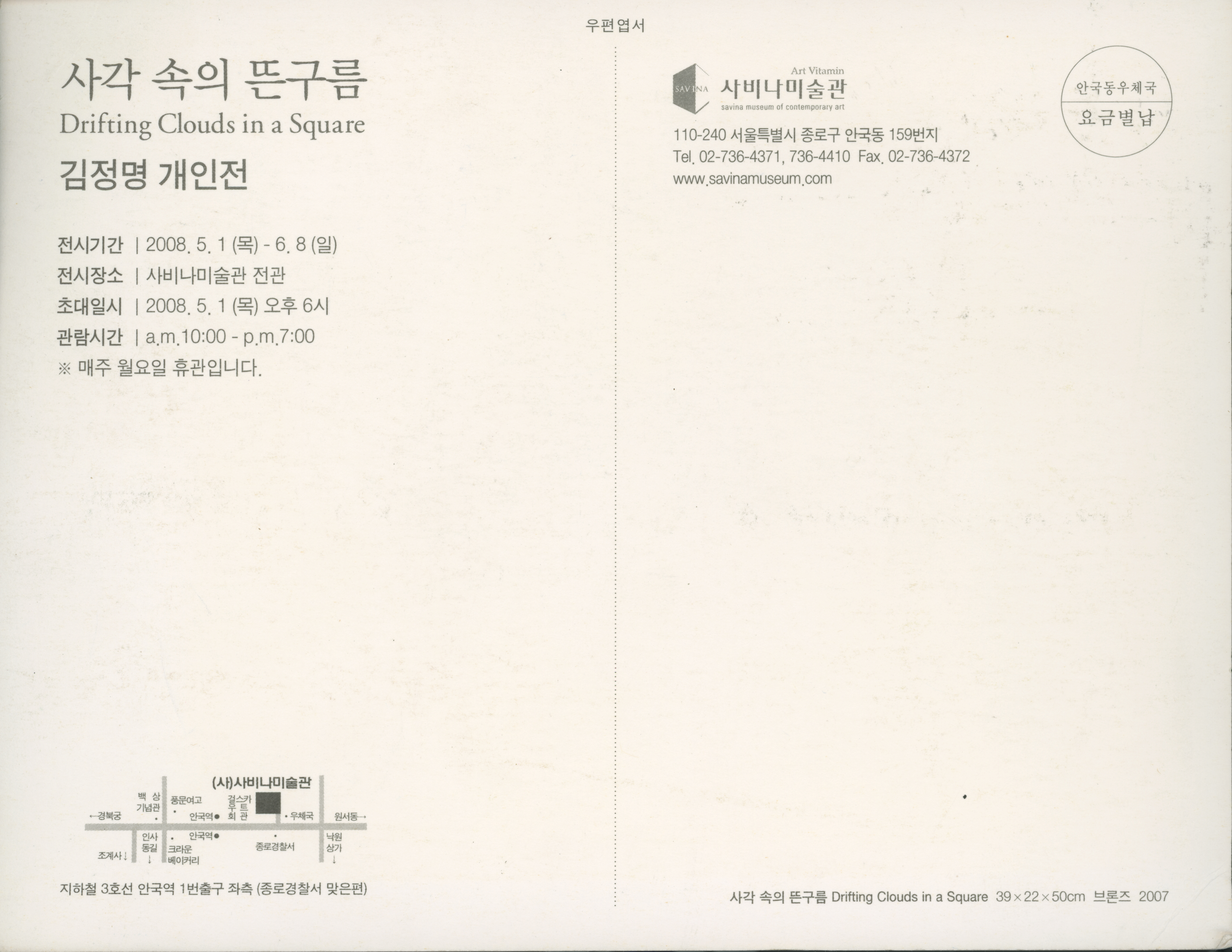 《사각 속의 뜬구름 김정명 개인전》 초대장