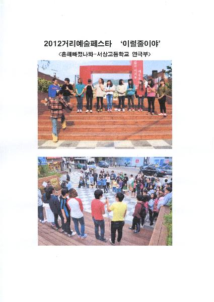 - 내용 : 어둠이 내린 거리에서 2012거리예술페스타를 알리는 작은 거리공연을 펼친다. 복잡한 서면의 중심가에서 약간