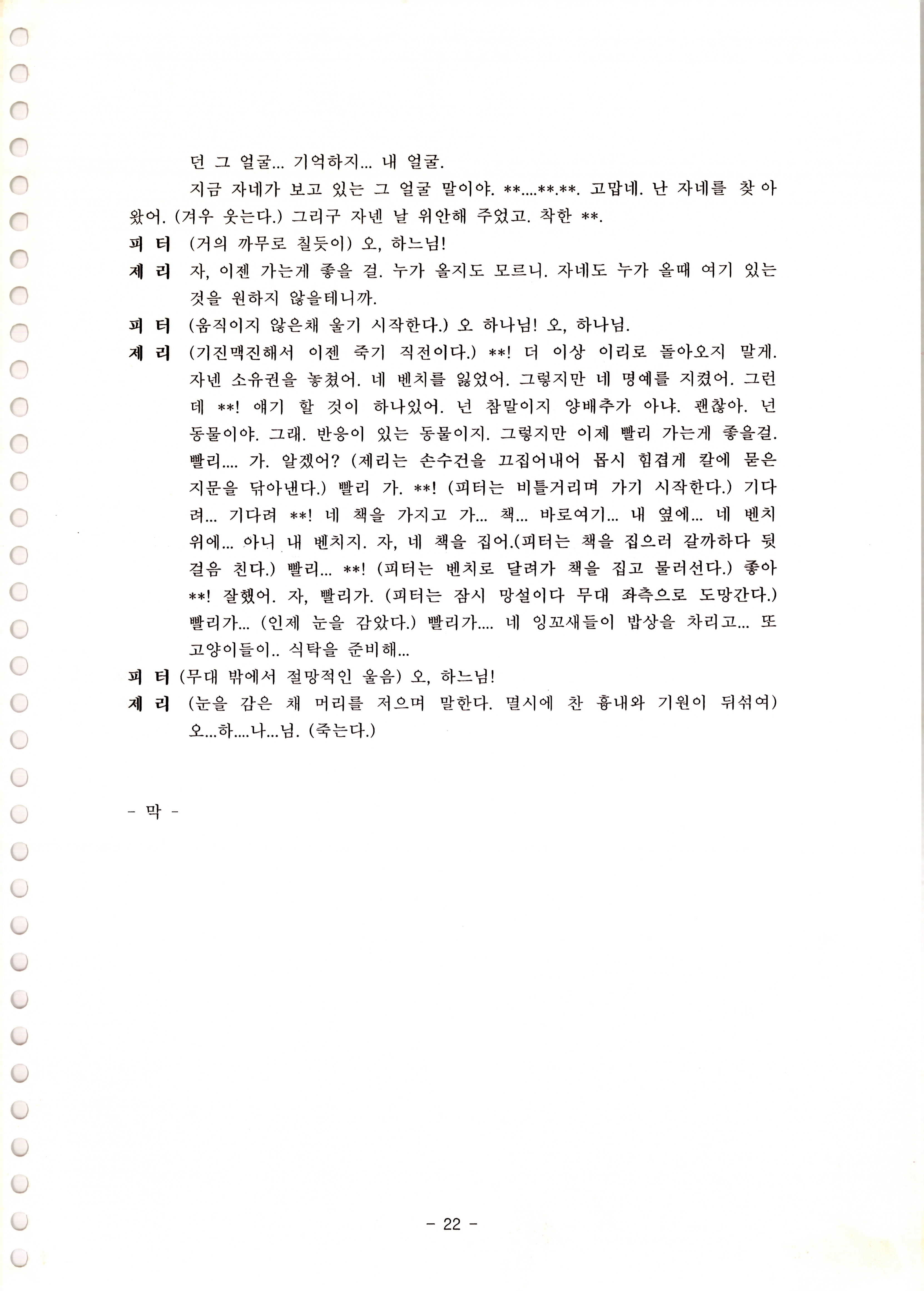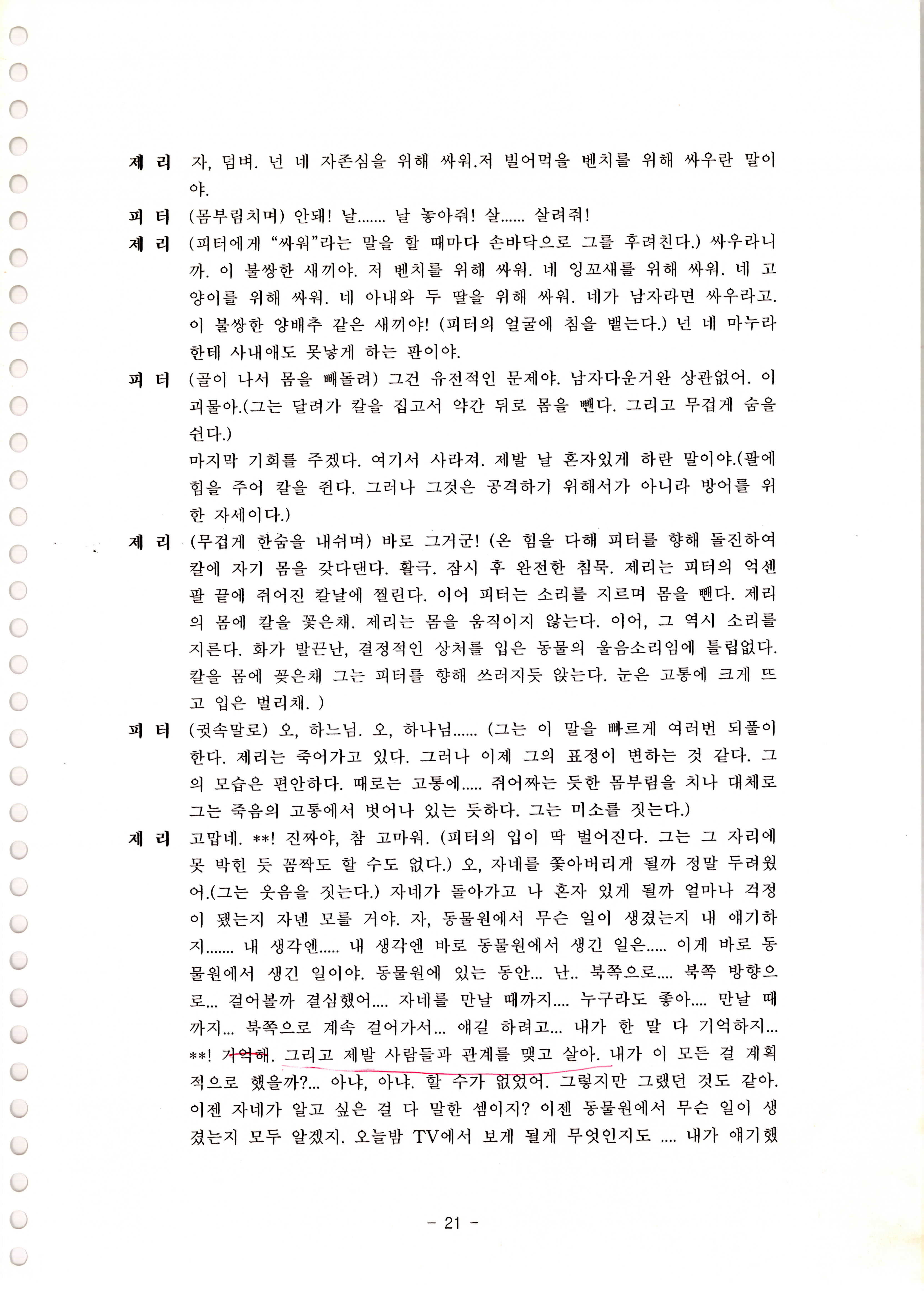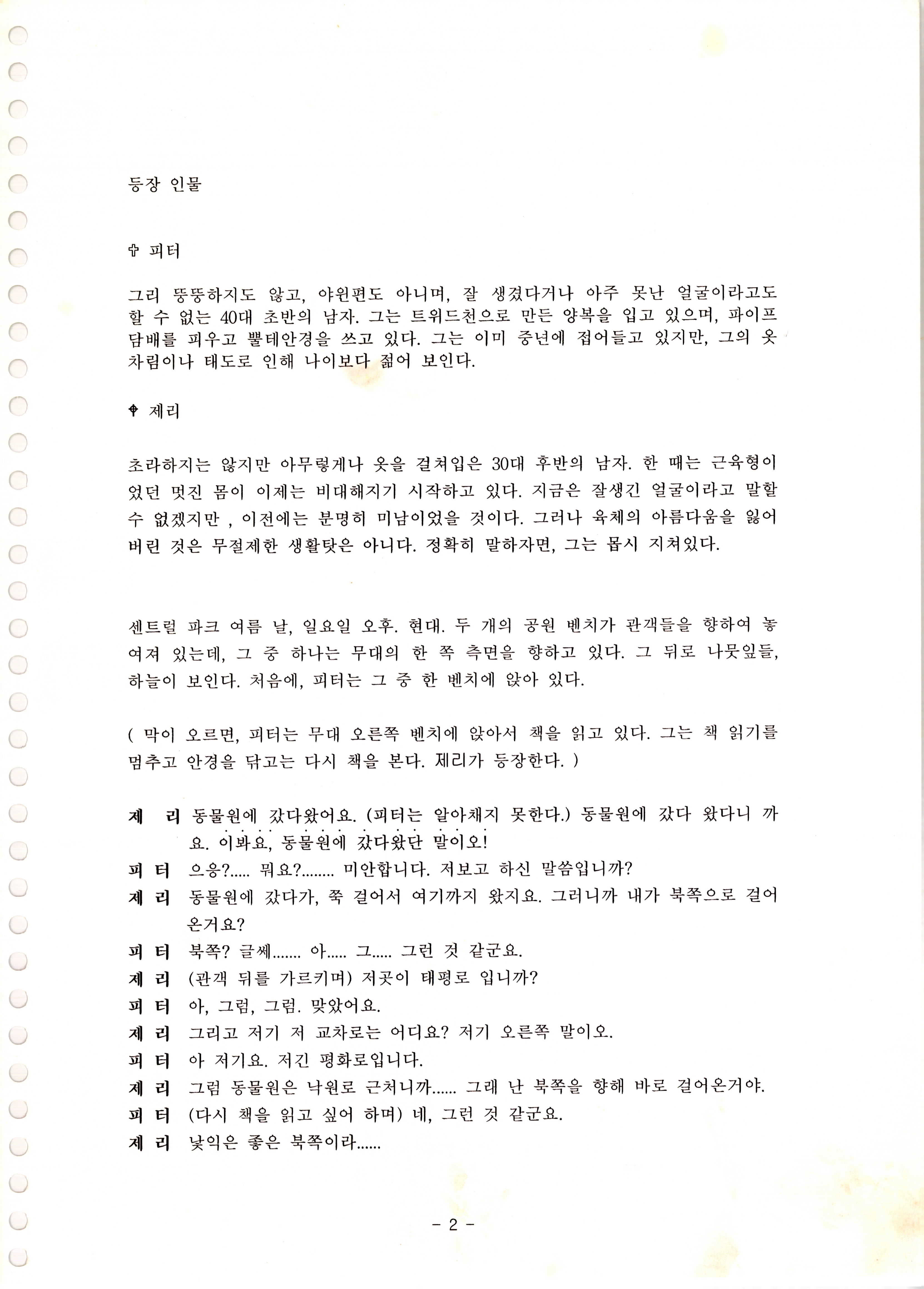 액터스 소극장 2인극 페스티발 No.1 「動物園(동물원) 이야기(The Zoo Story)」 대본집