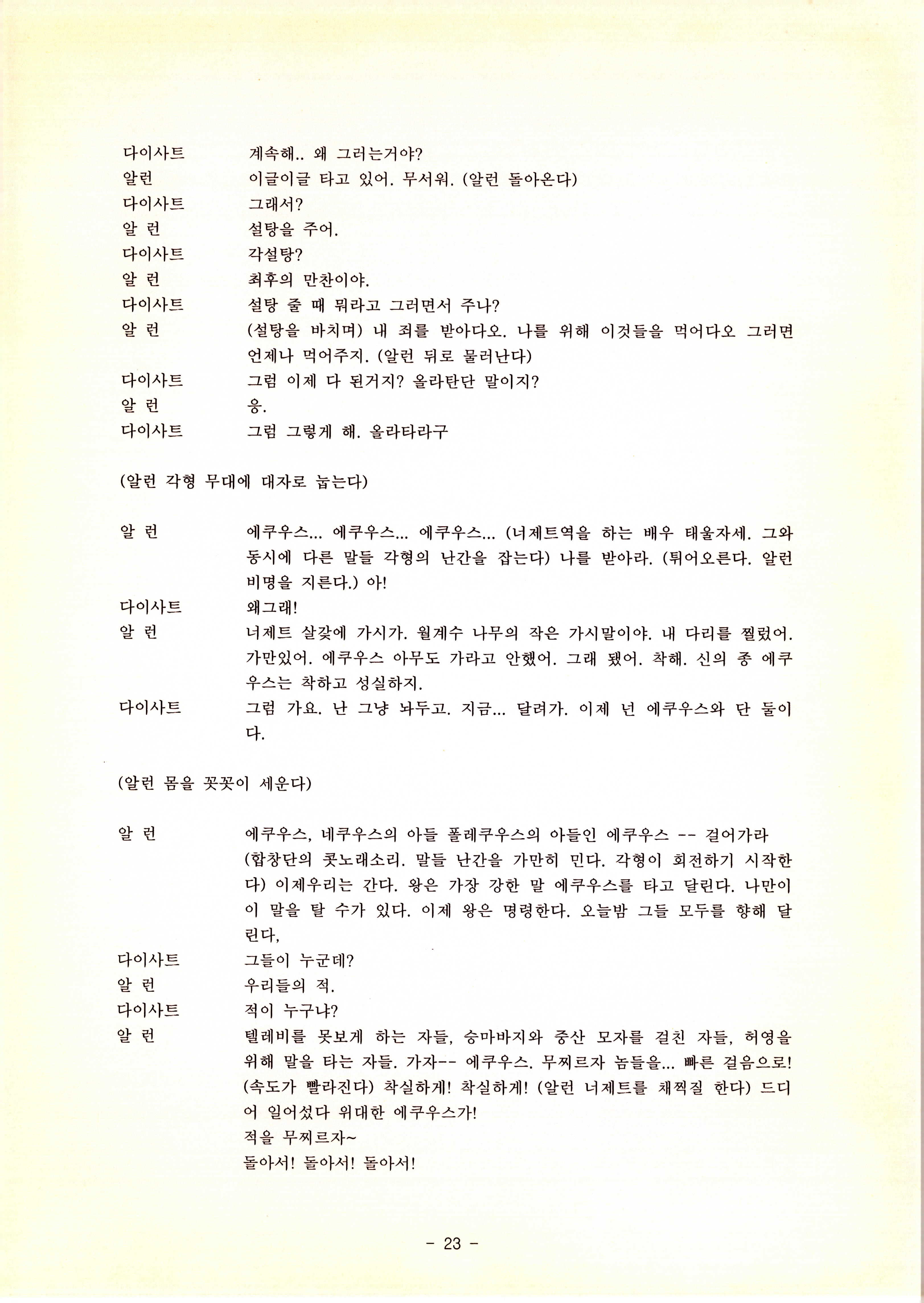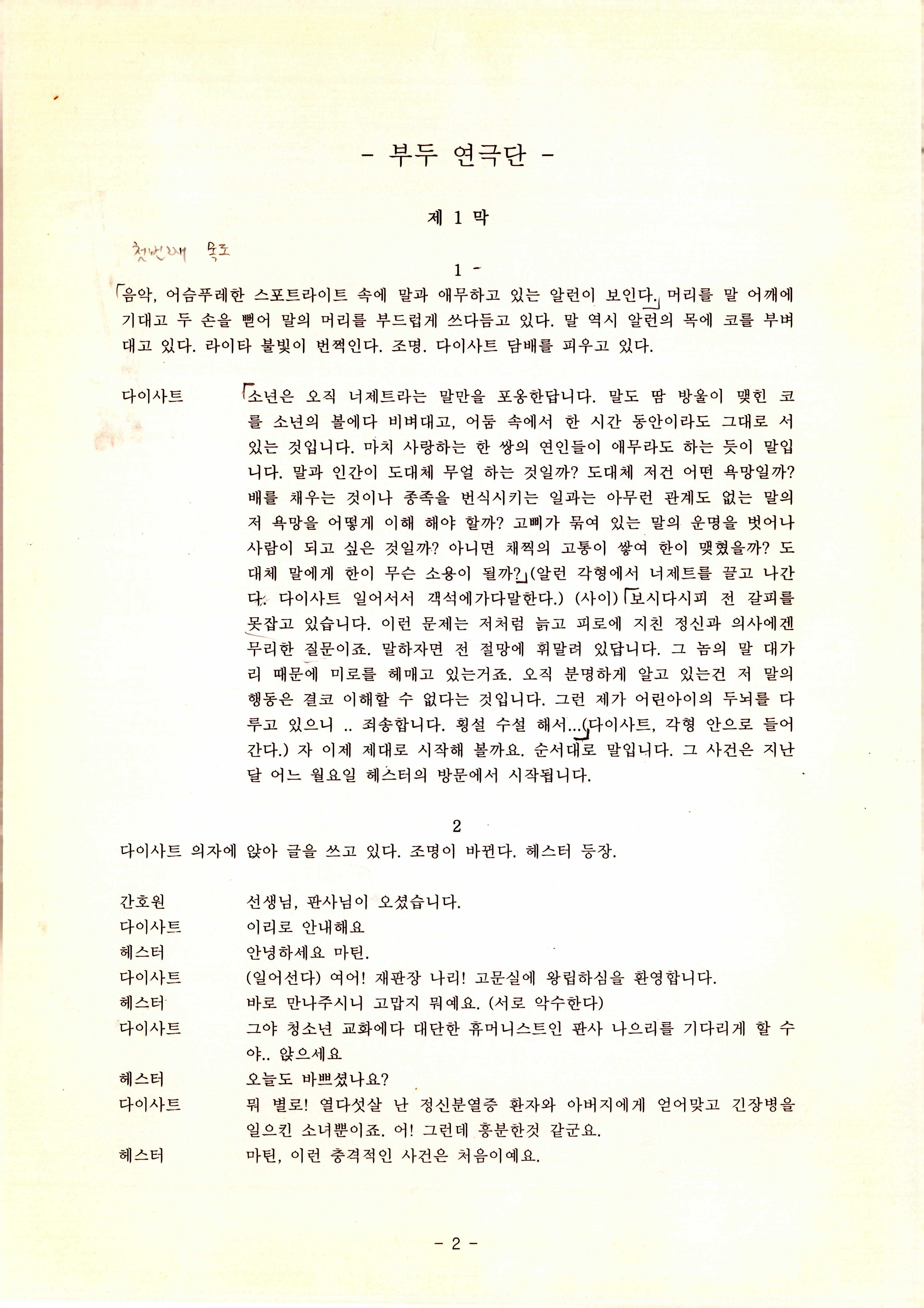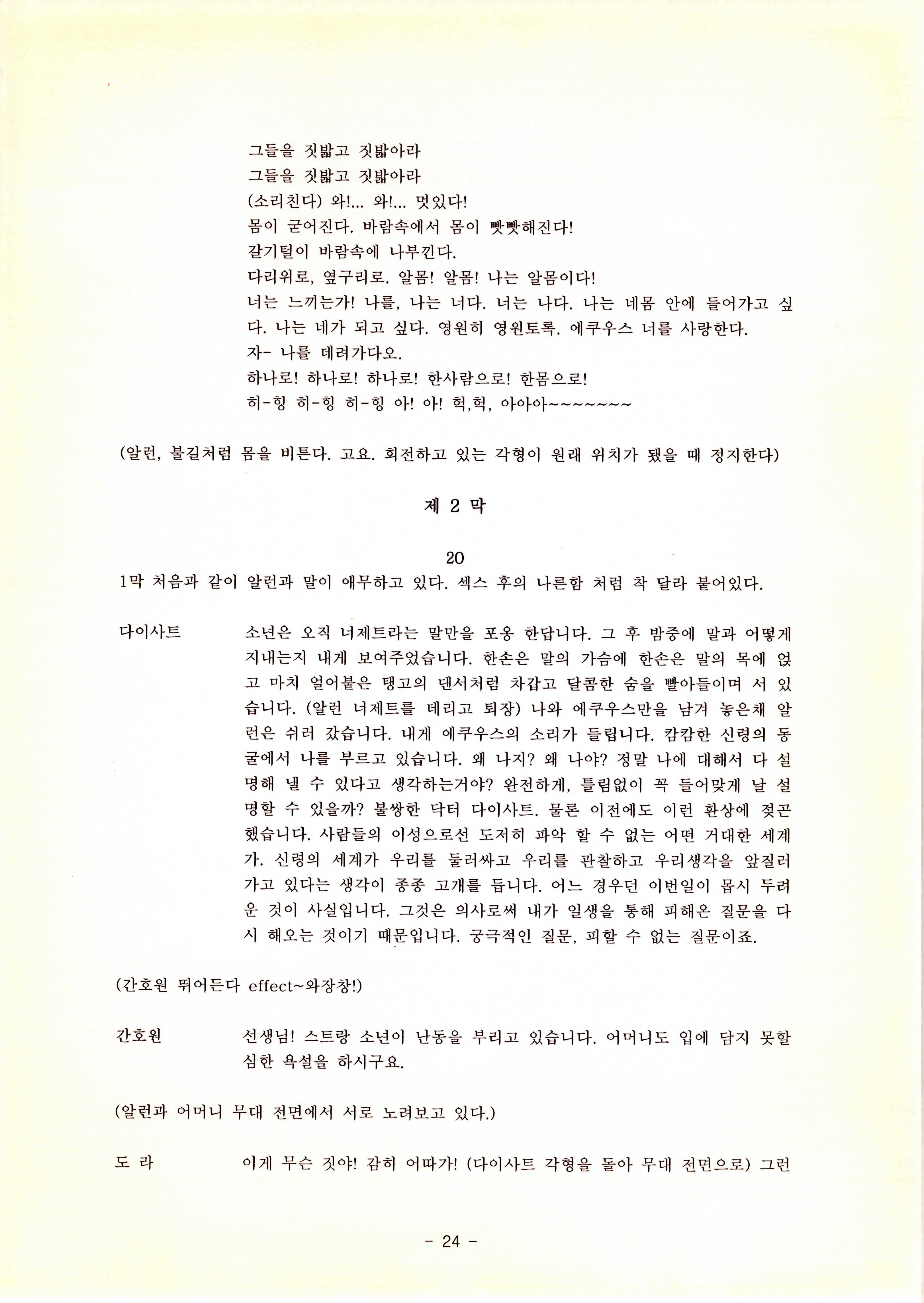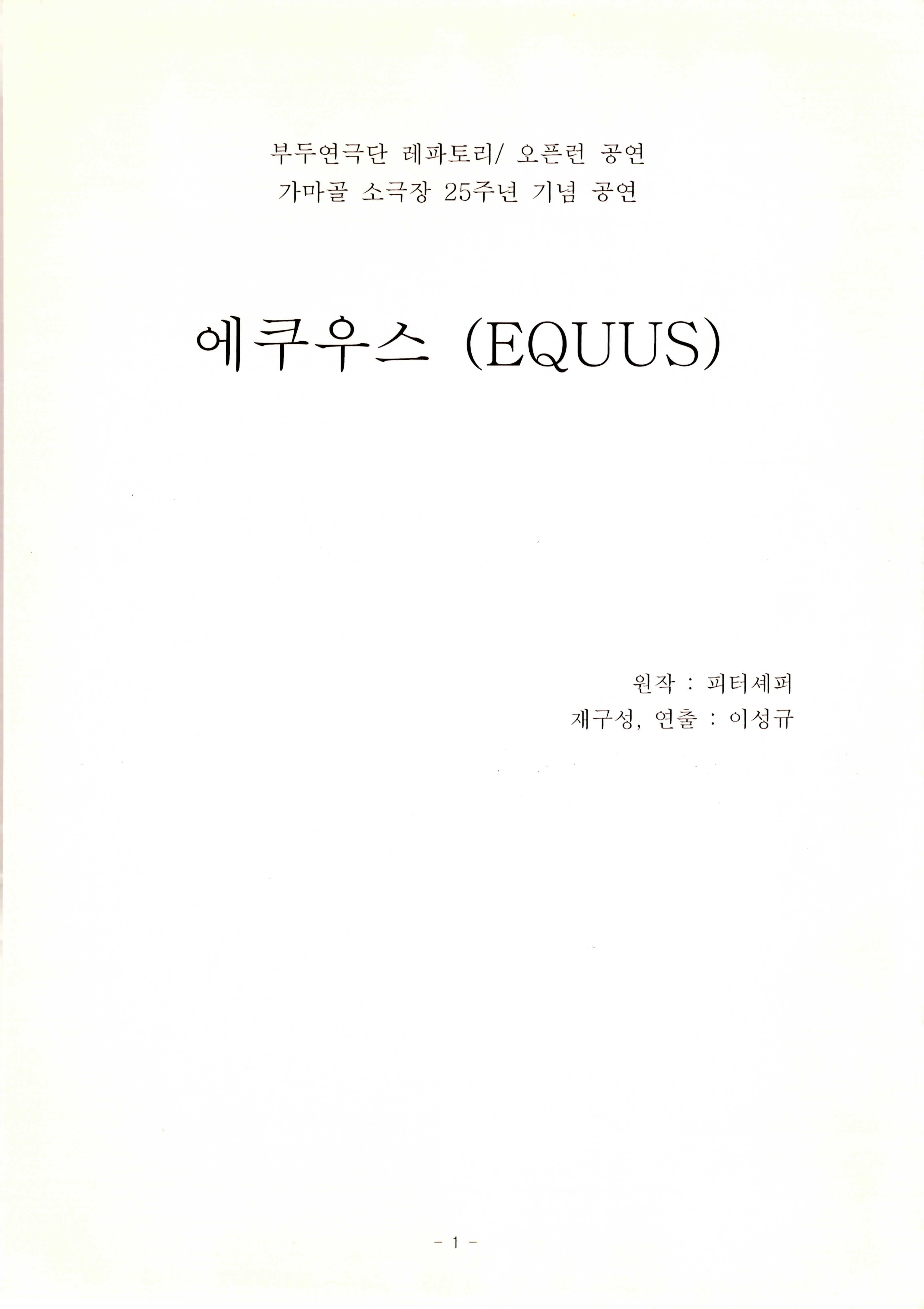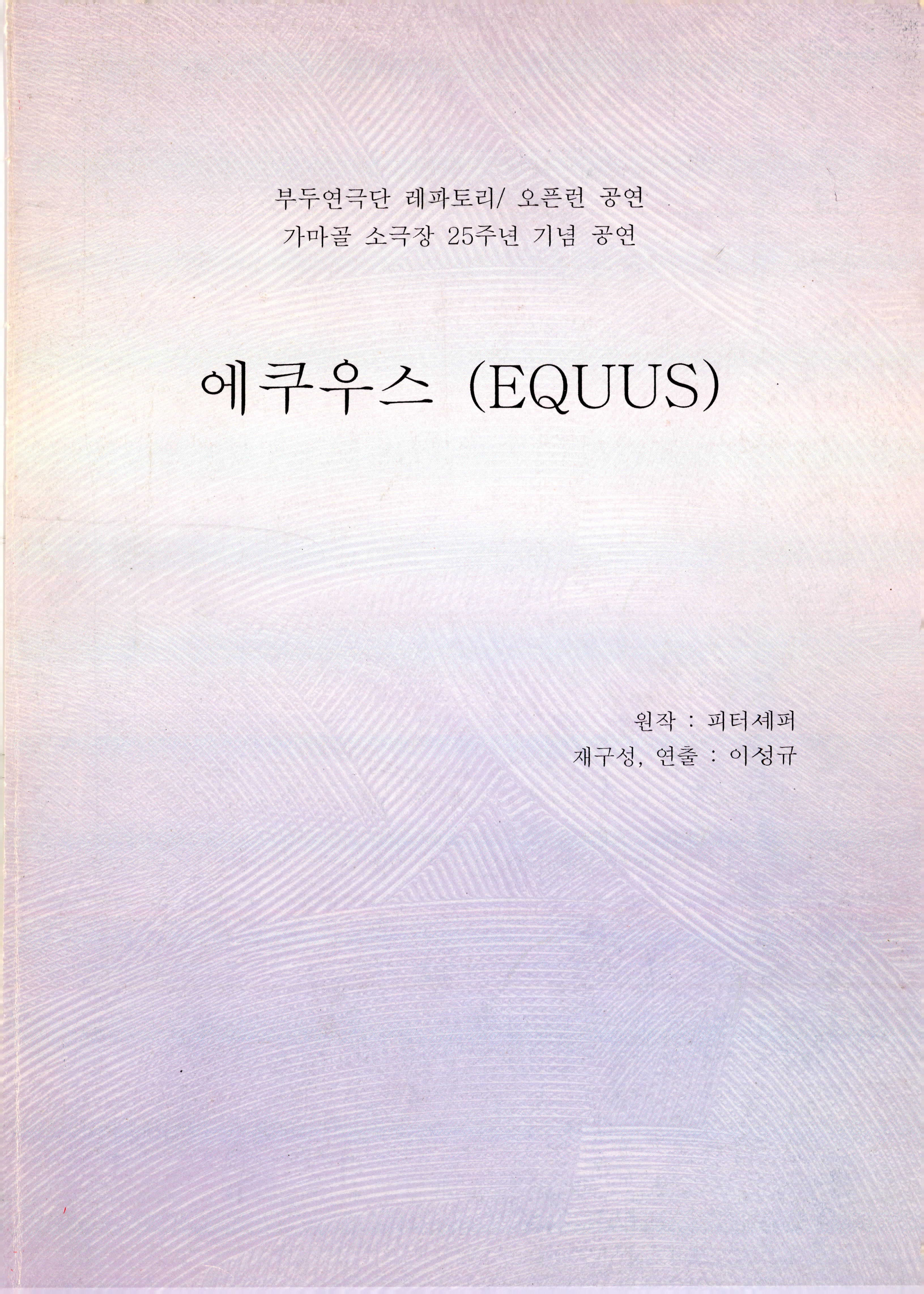 부두연극단 레파토리/오픈런 공연 · 가마골 소극장 25주년 기념 공연 「에쿠우스(EQUUS)」 대본집