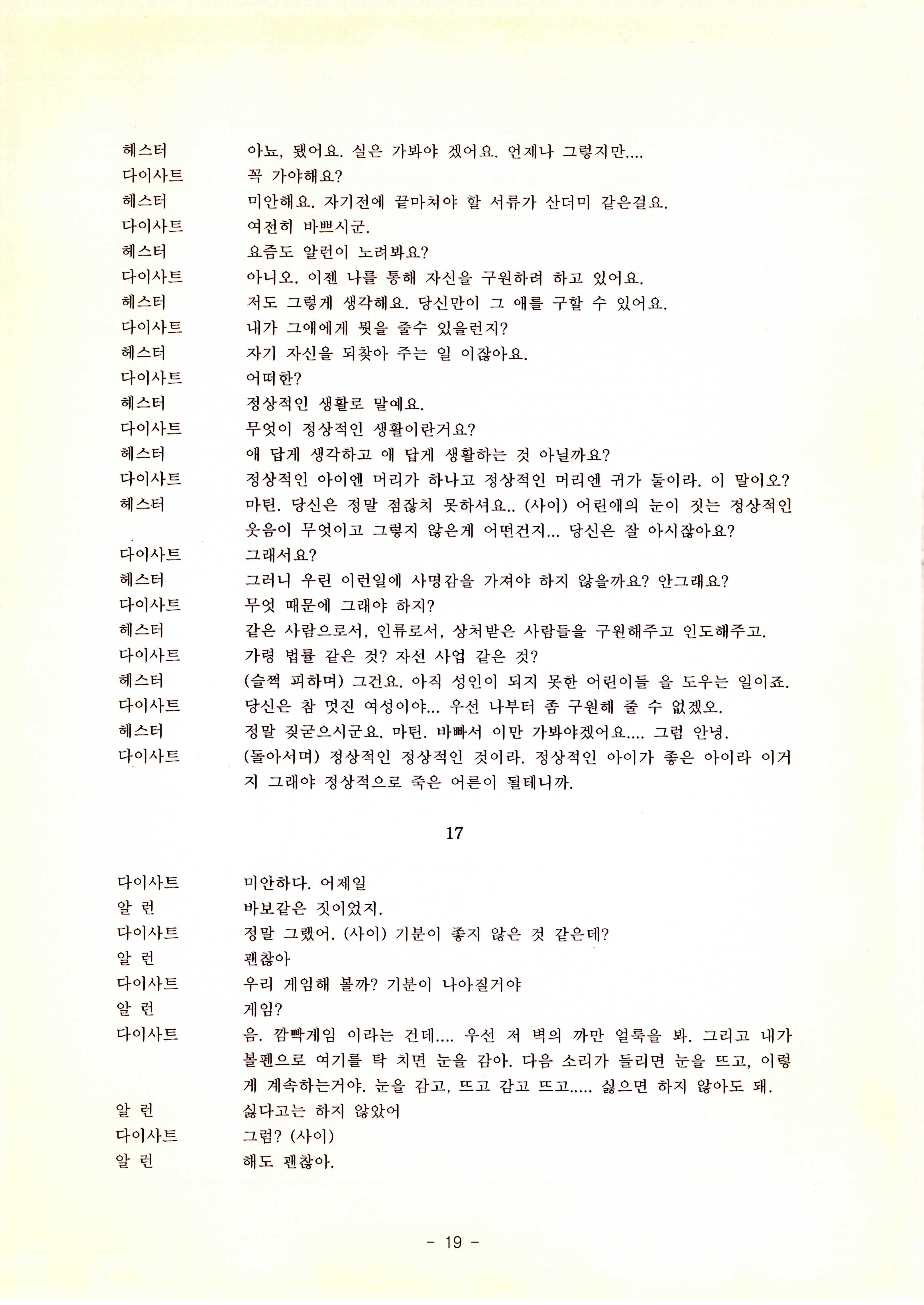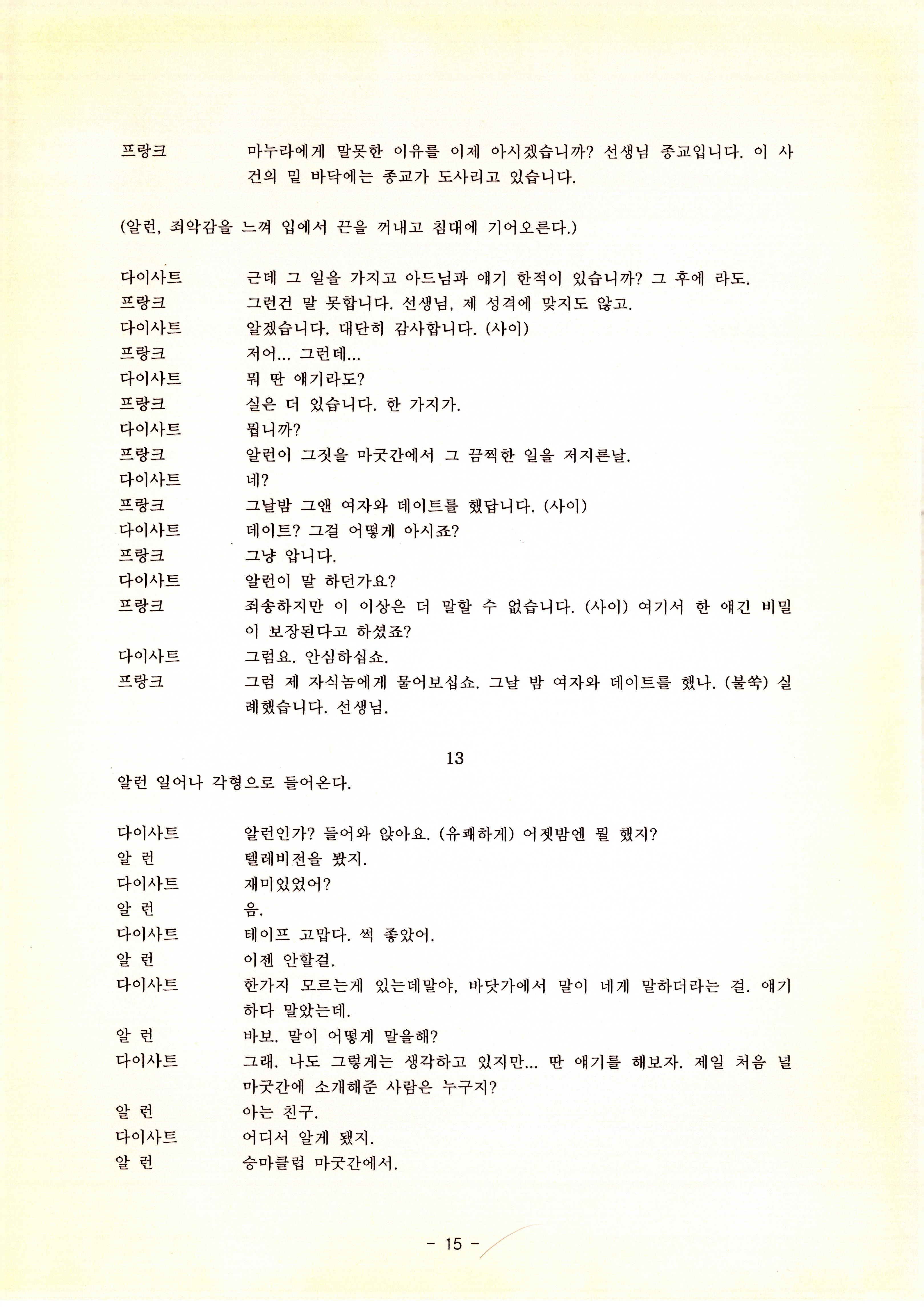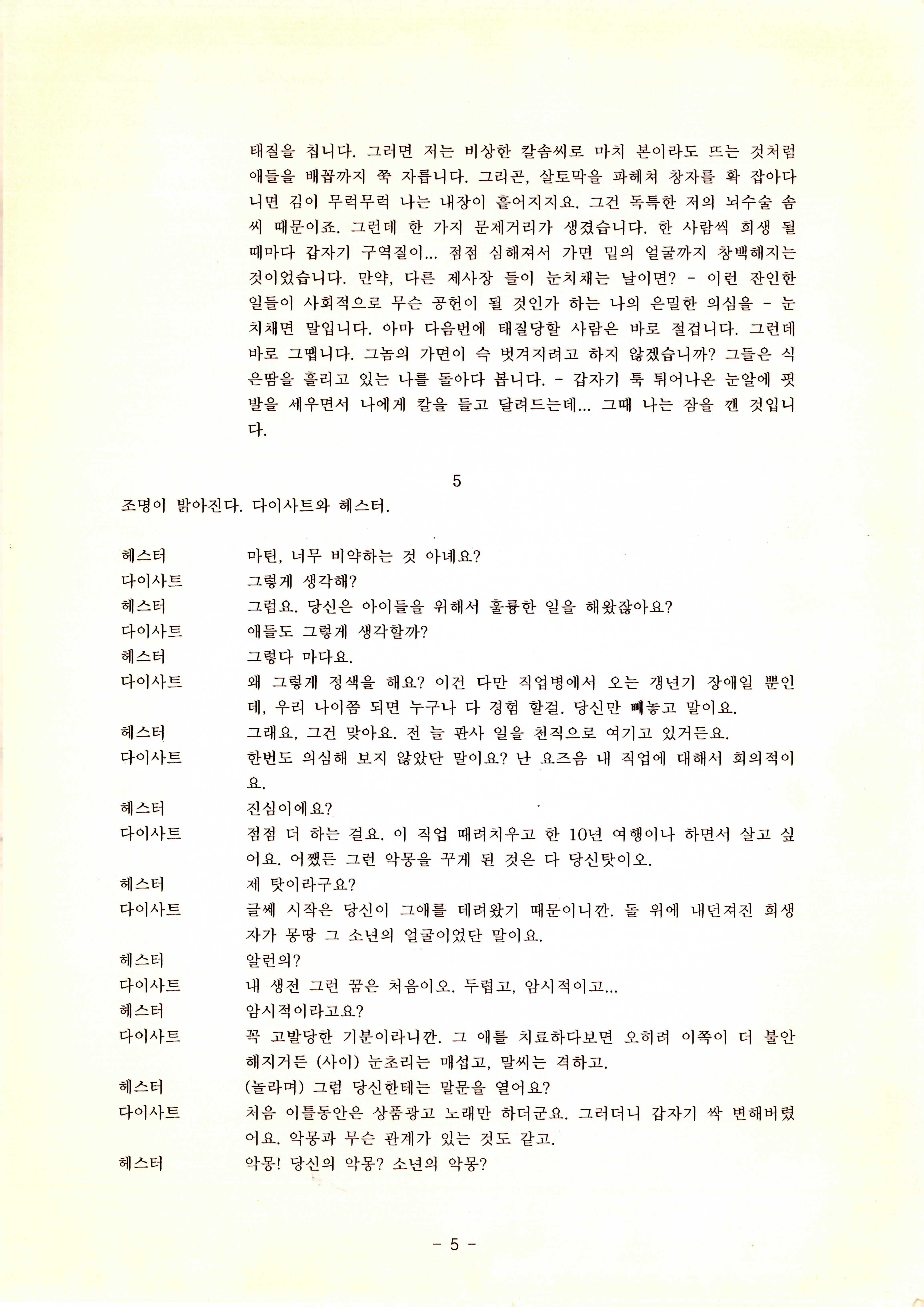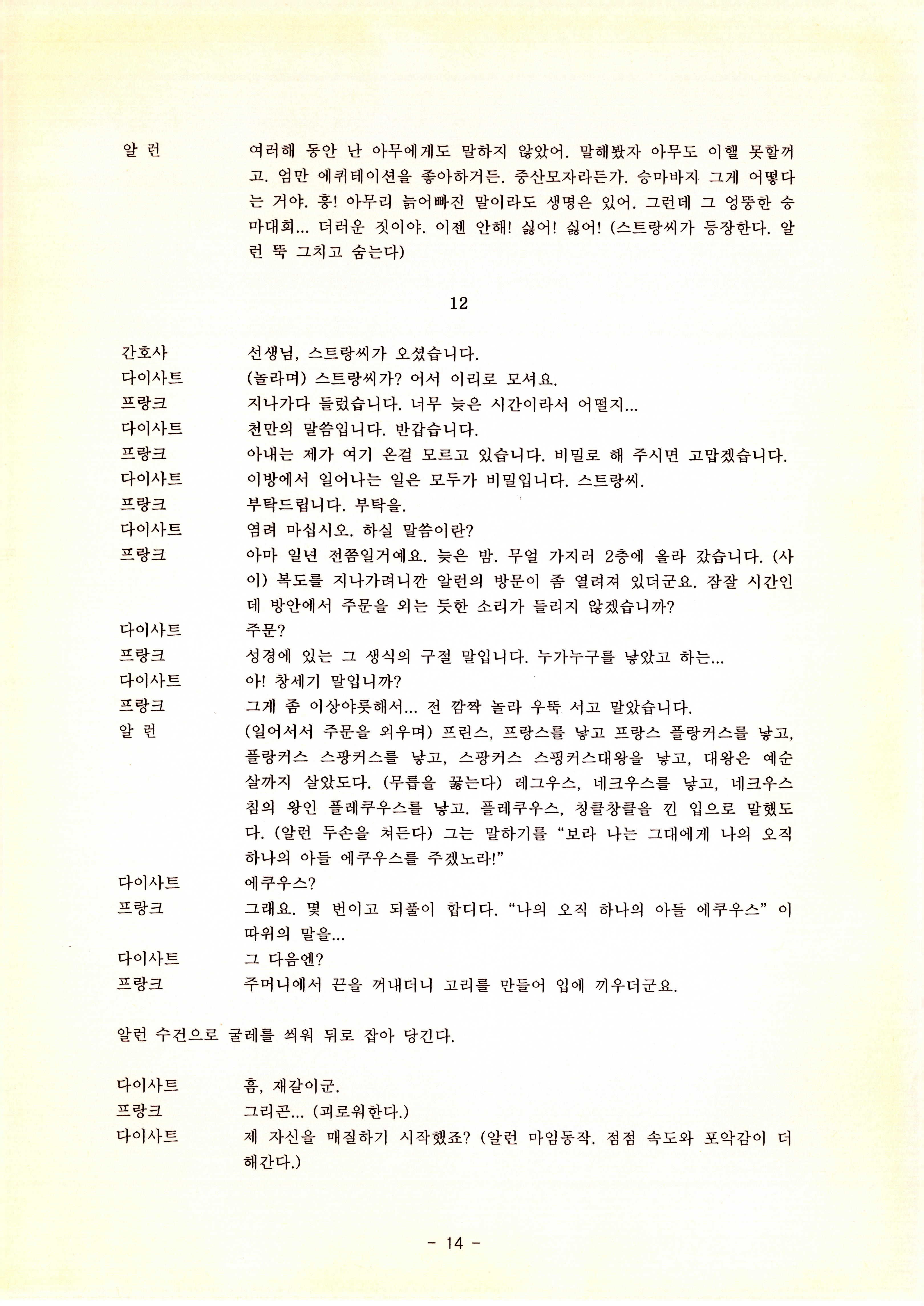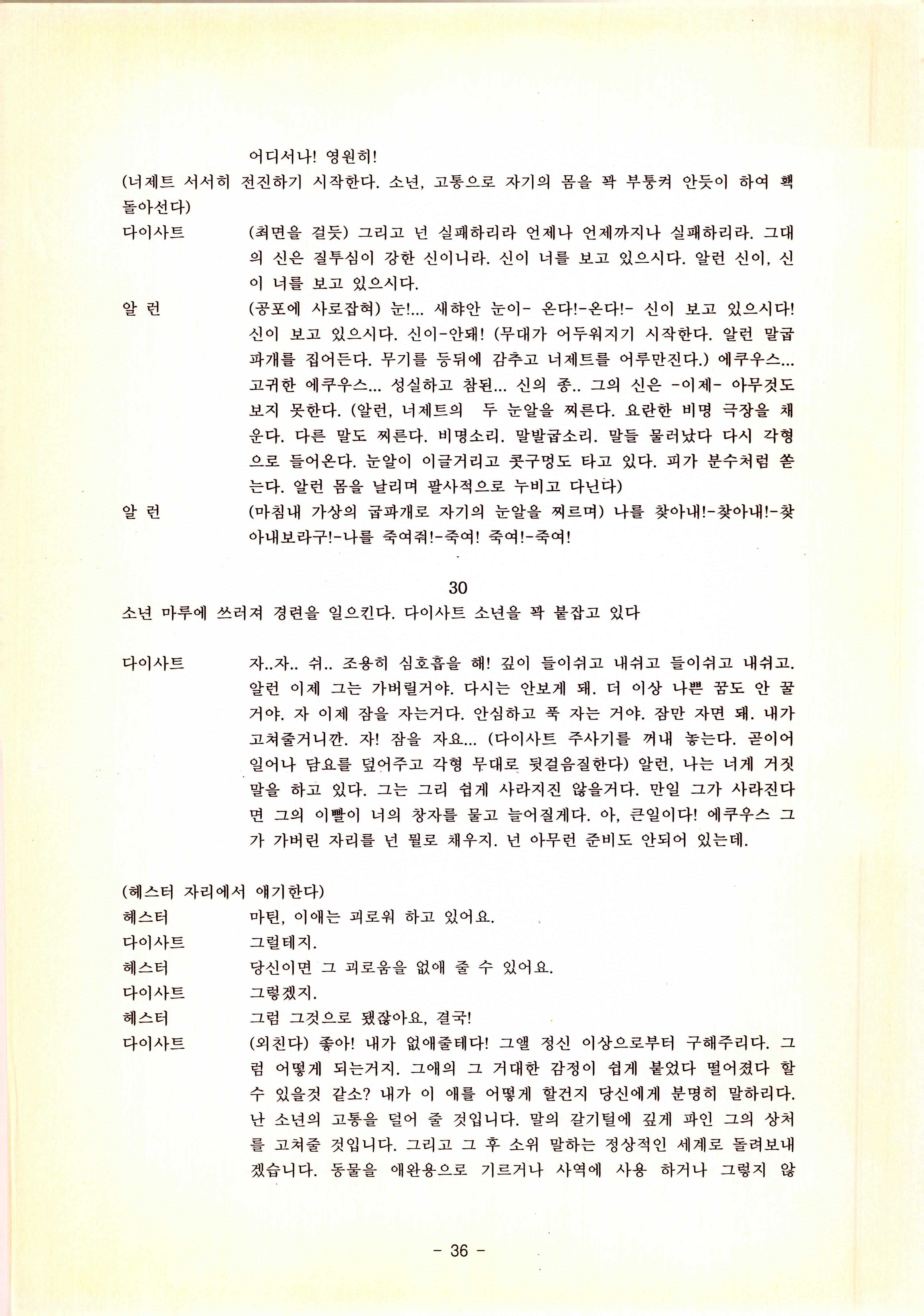 부두연극단 레파토리/오픈런 공연 · 가마골 소극장 25주년 기념 공연 「에쿠우스(EQUUS)」 대본집