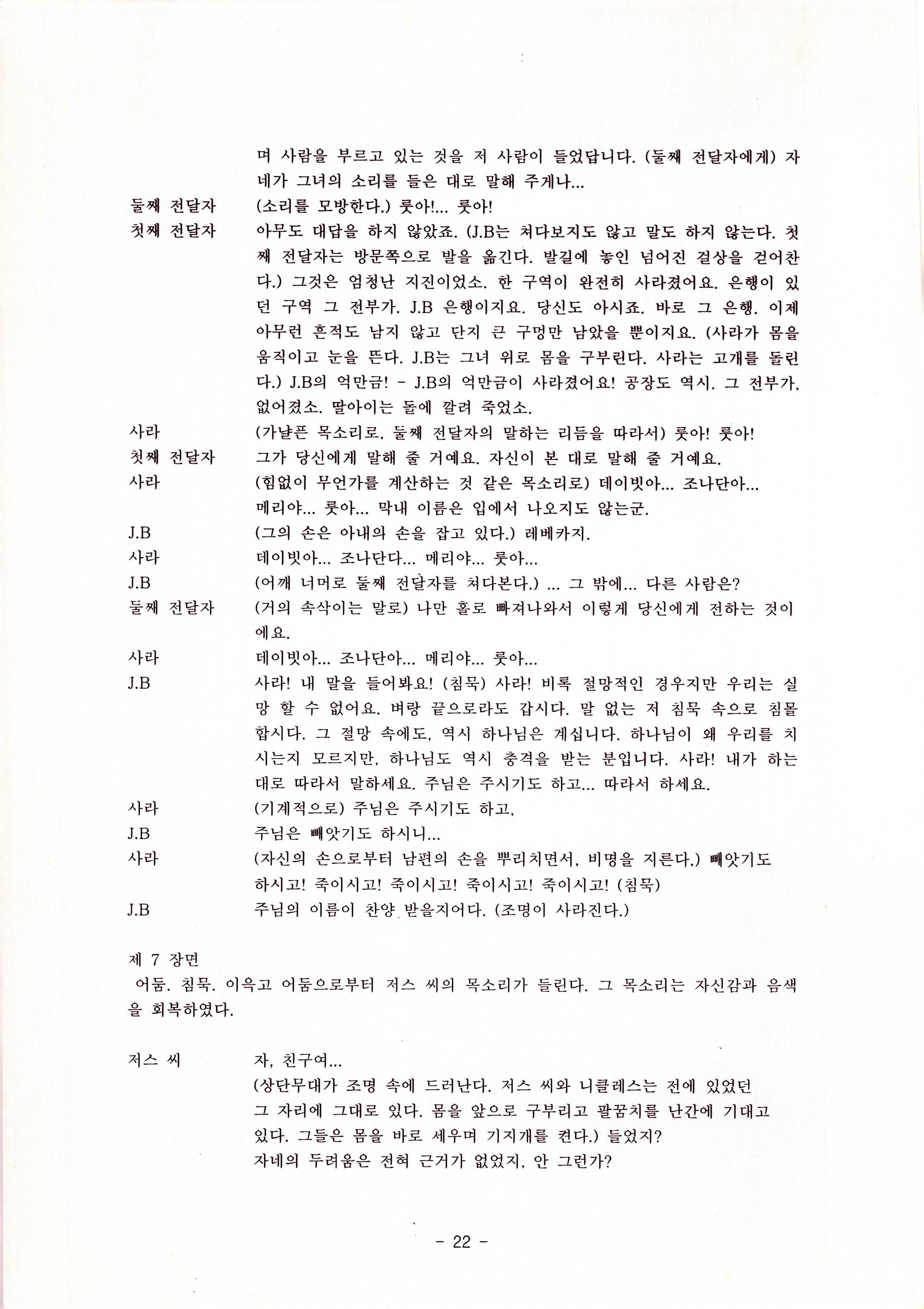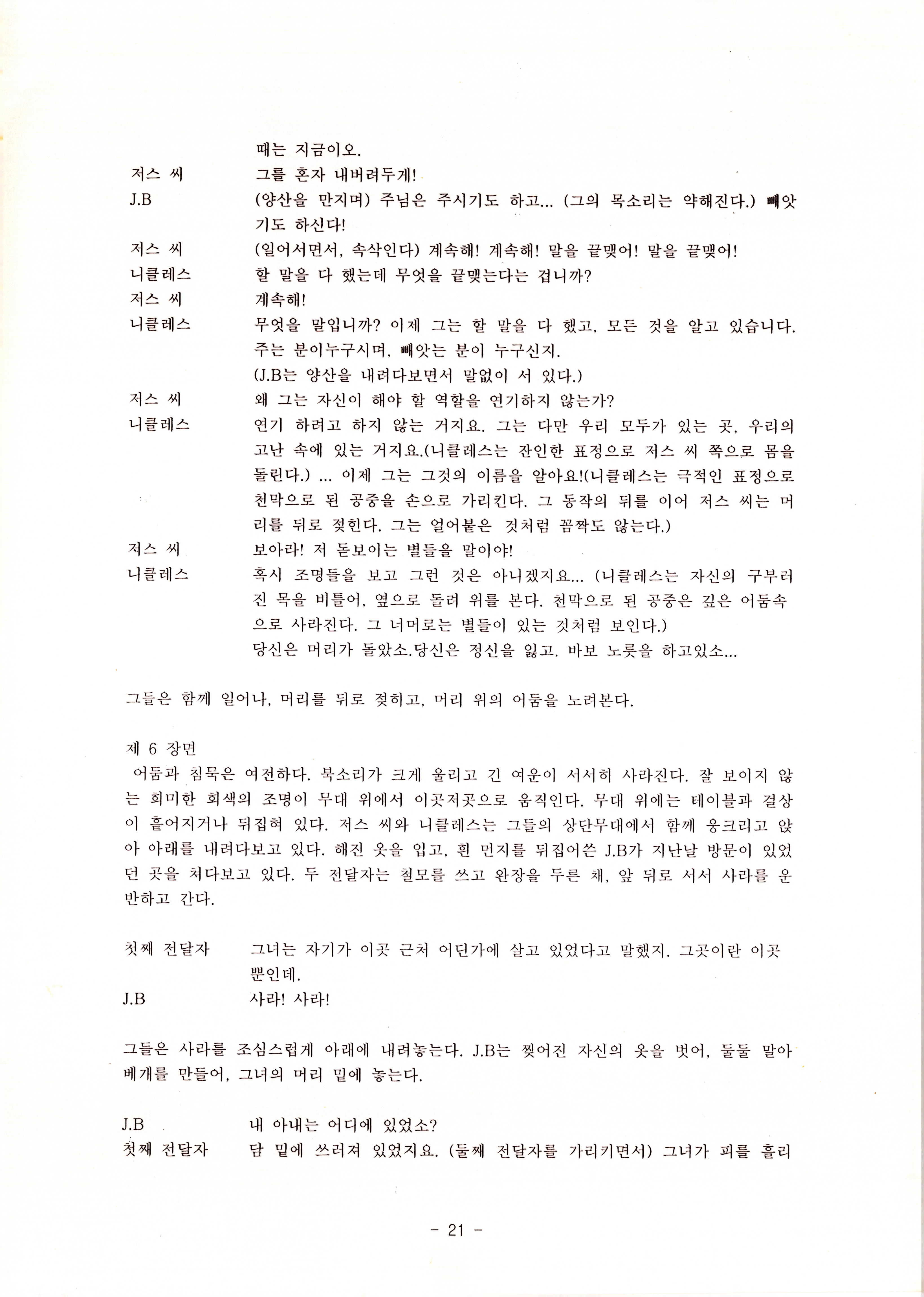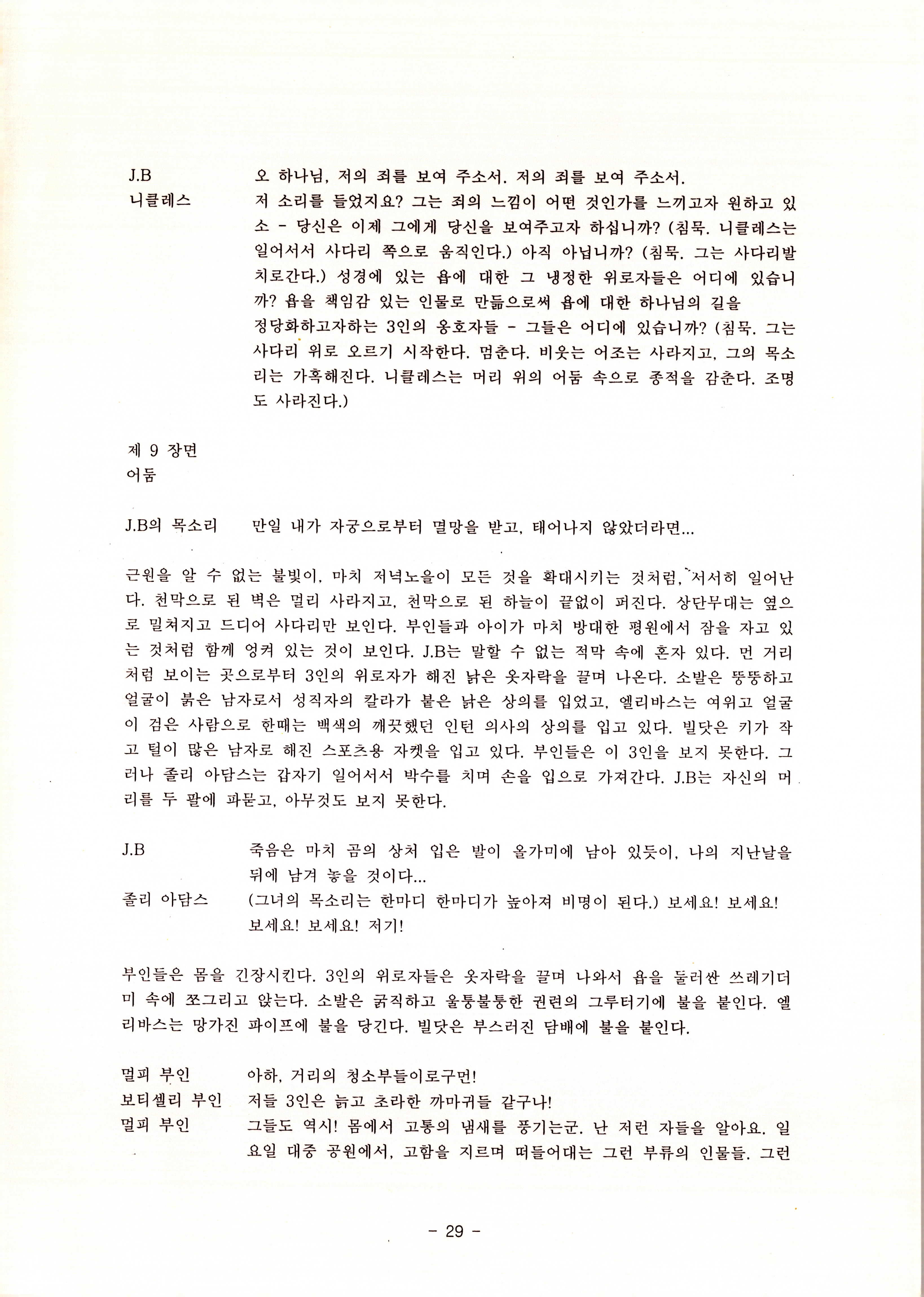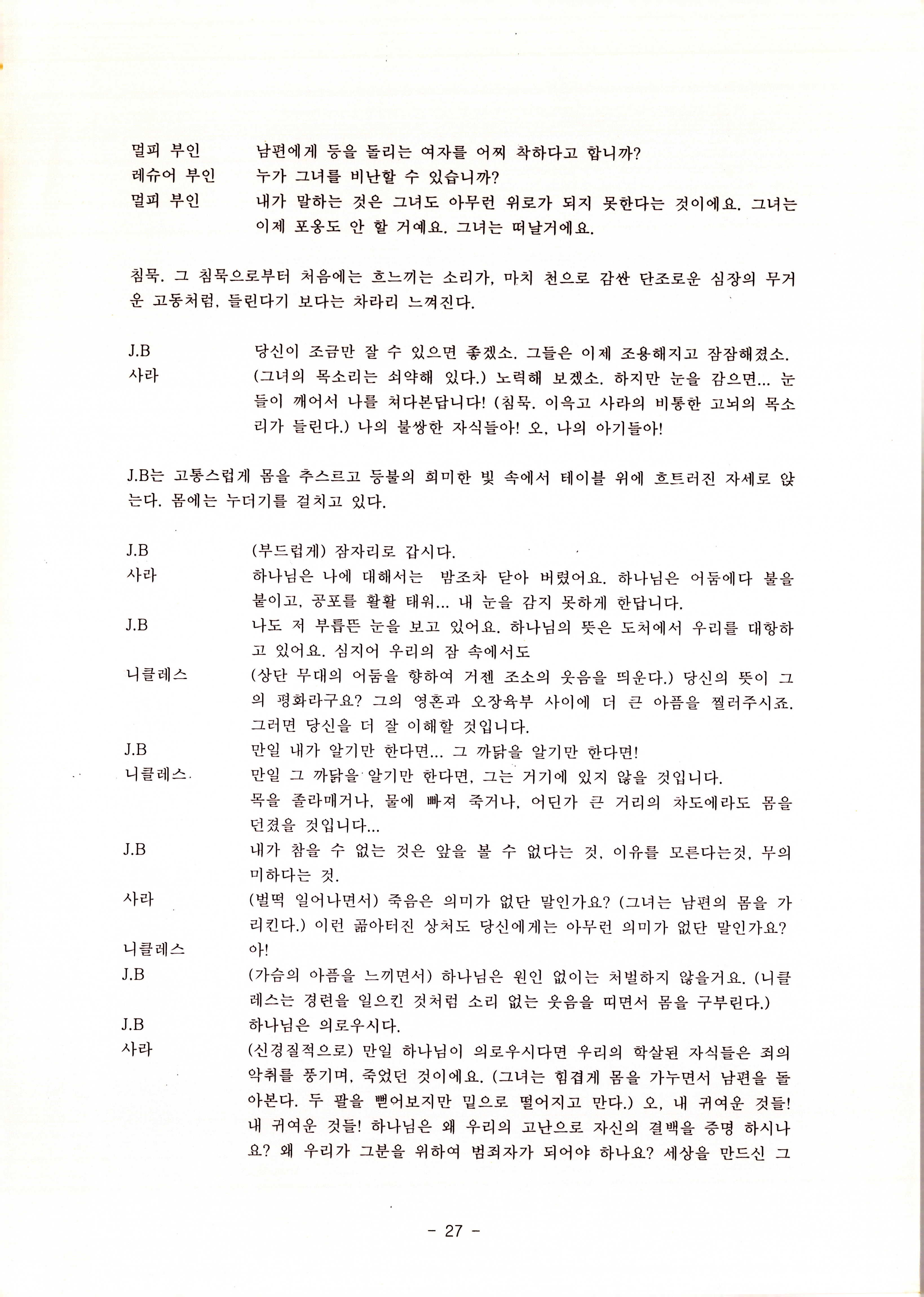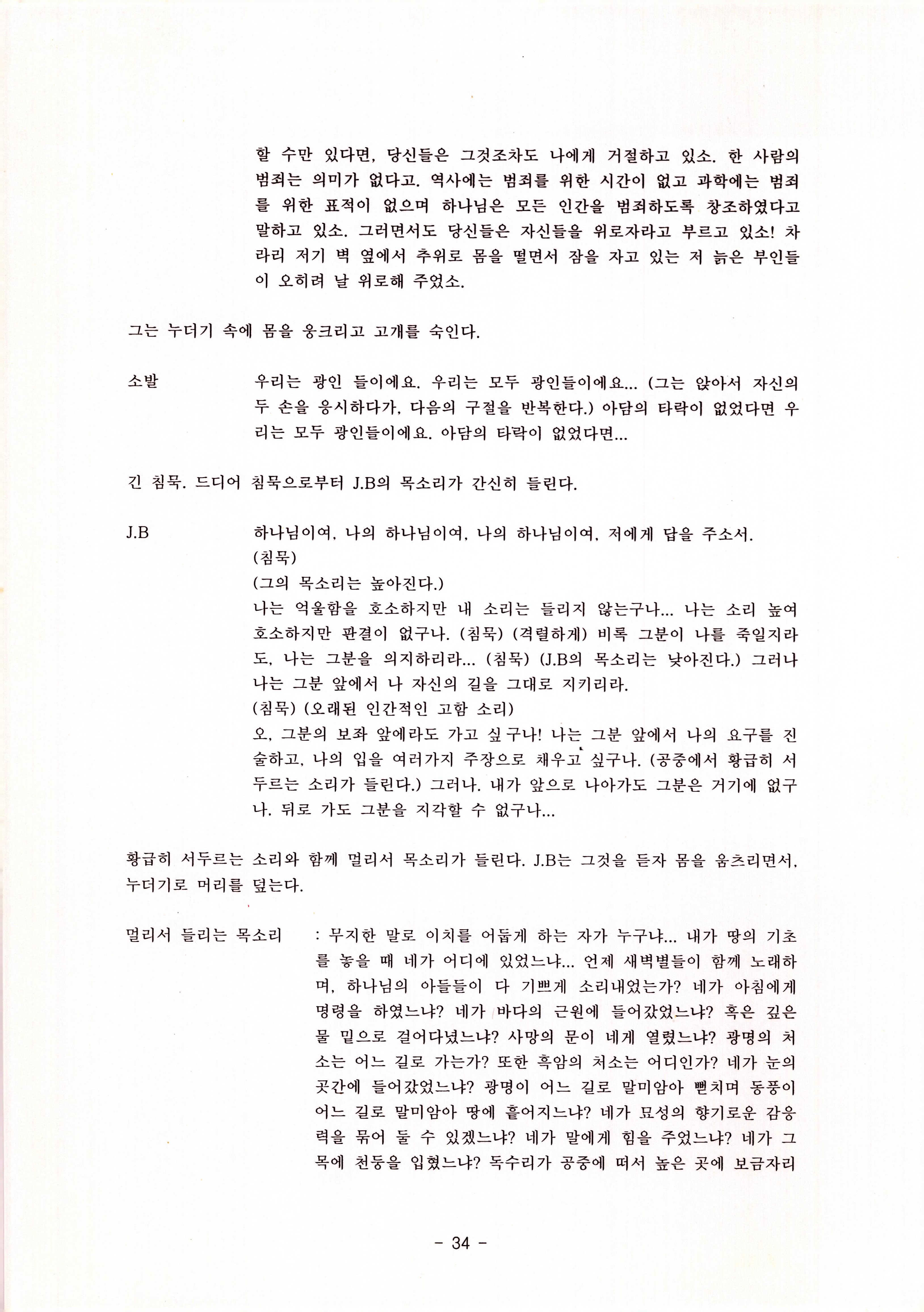 2010년 9월의 '욥記(원작: 제이비(J.B))' 대본집이다. 원작자 아치볼드 머클리시 연극으로 19그리고80, 위트에 이은 부두연극단의 인간의 고난과 복음에 관한 3번째 이야기 욥記 시나리오가 기술되어 있다.