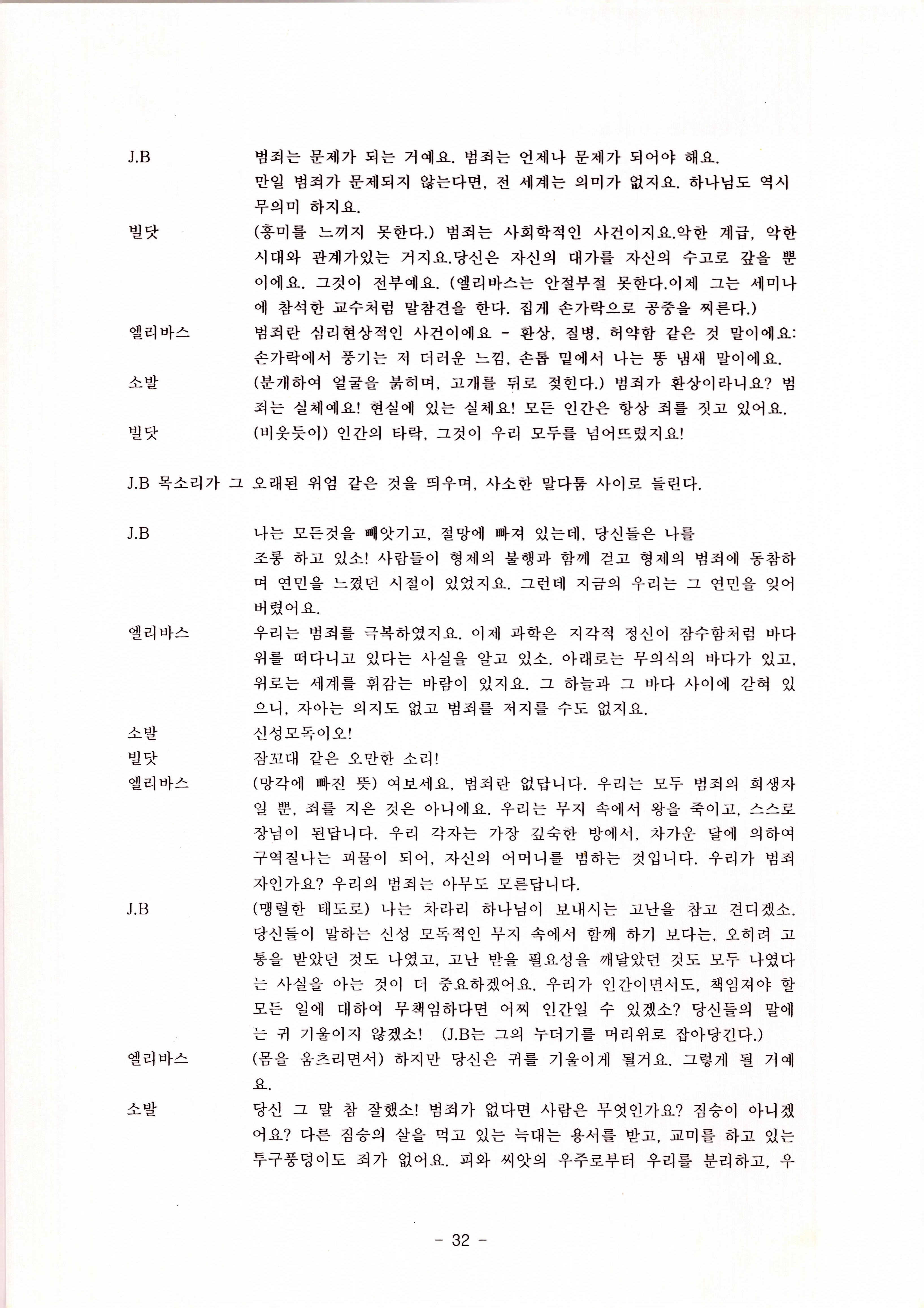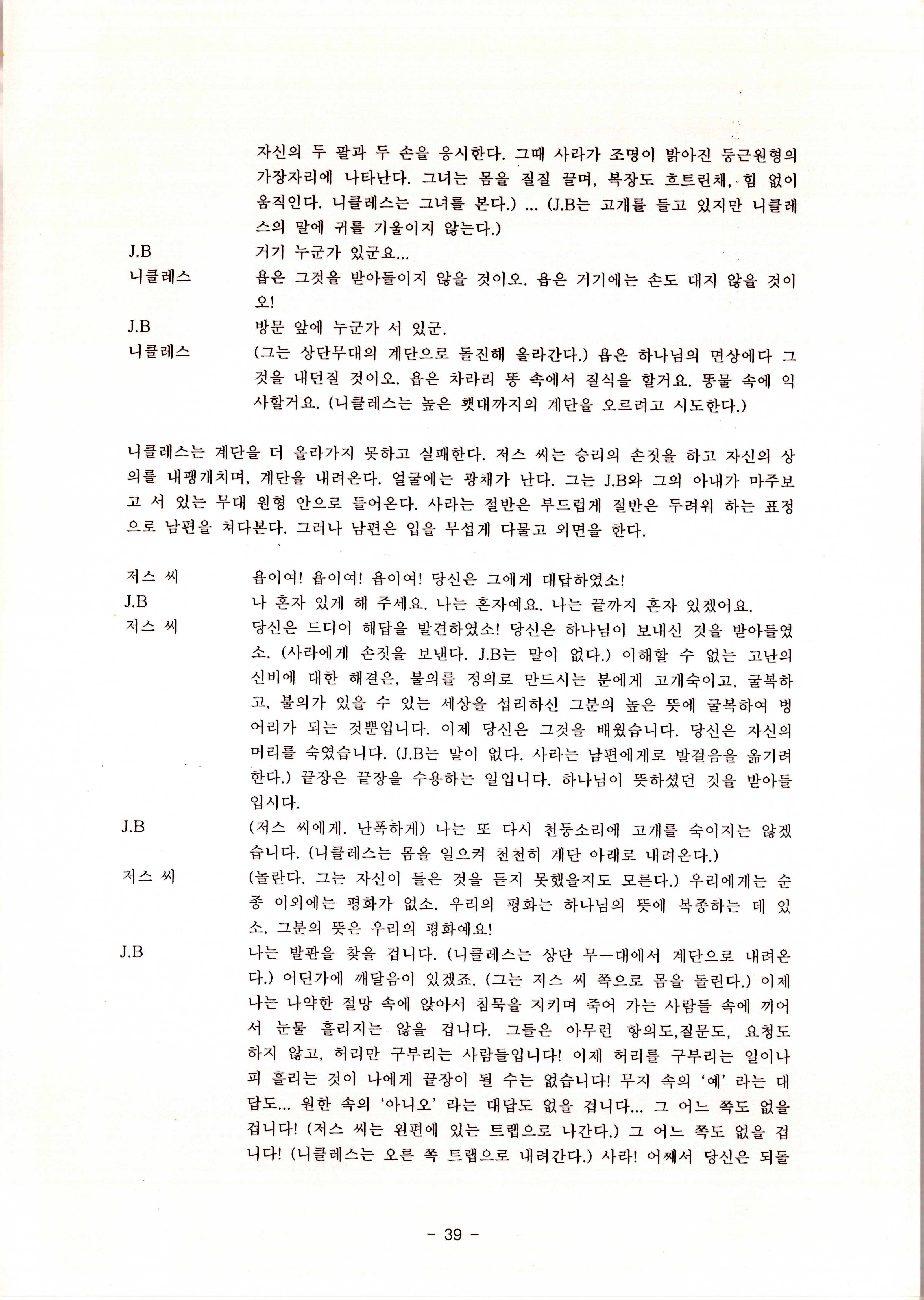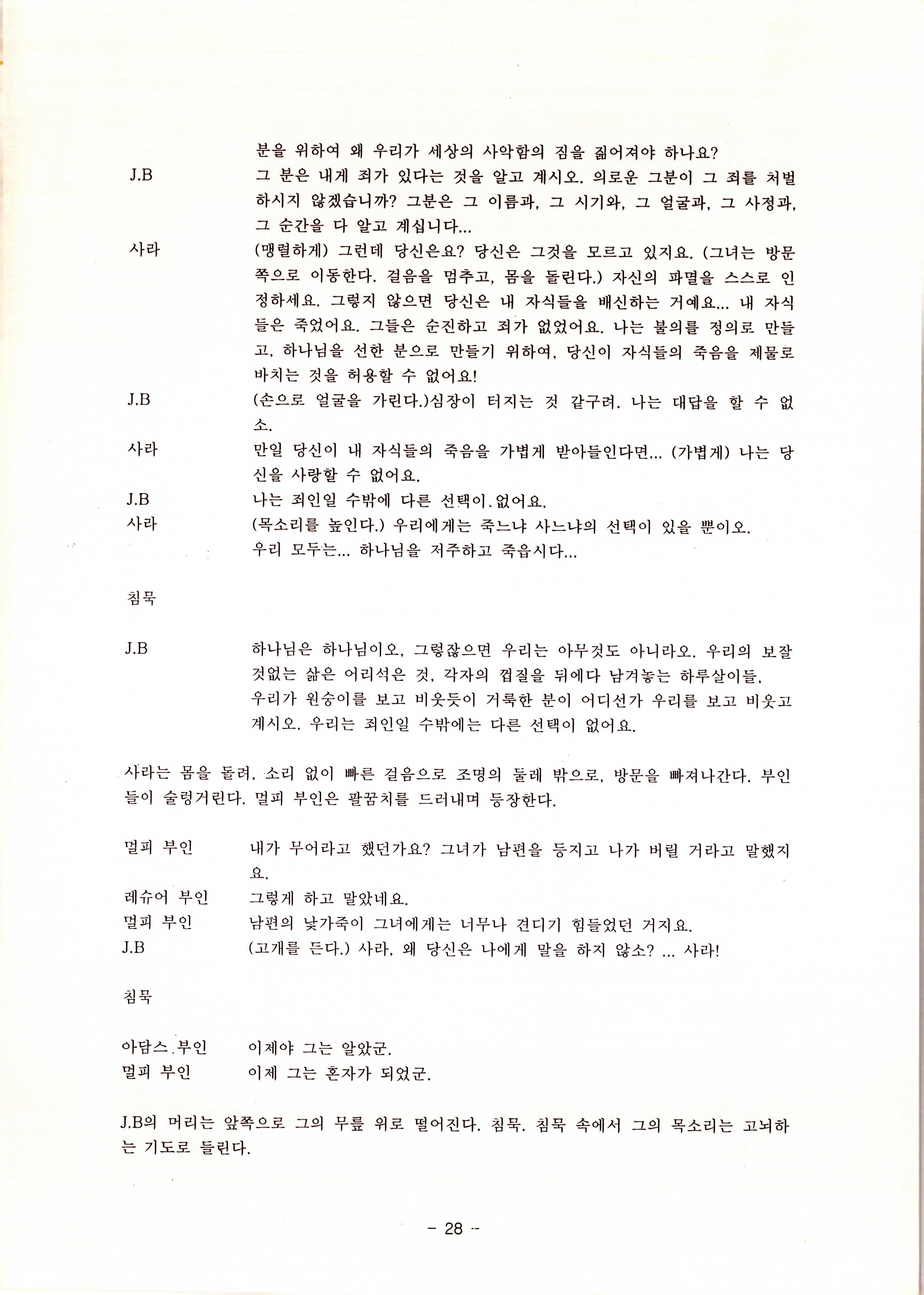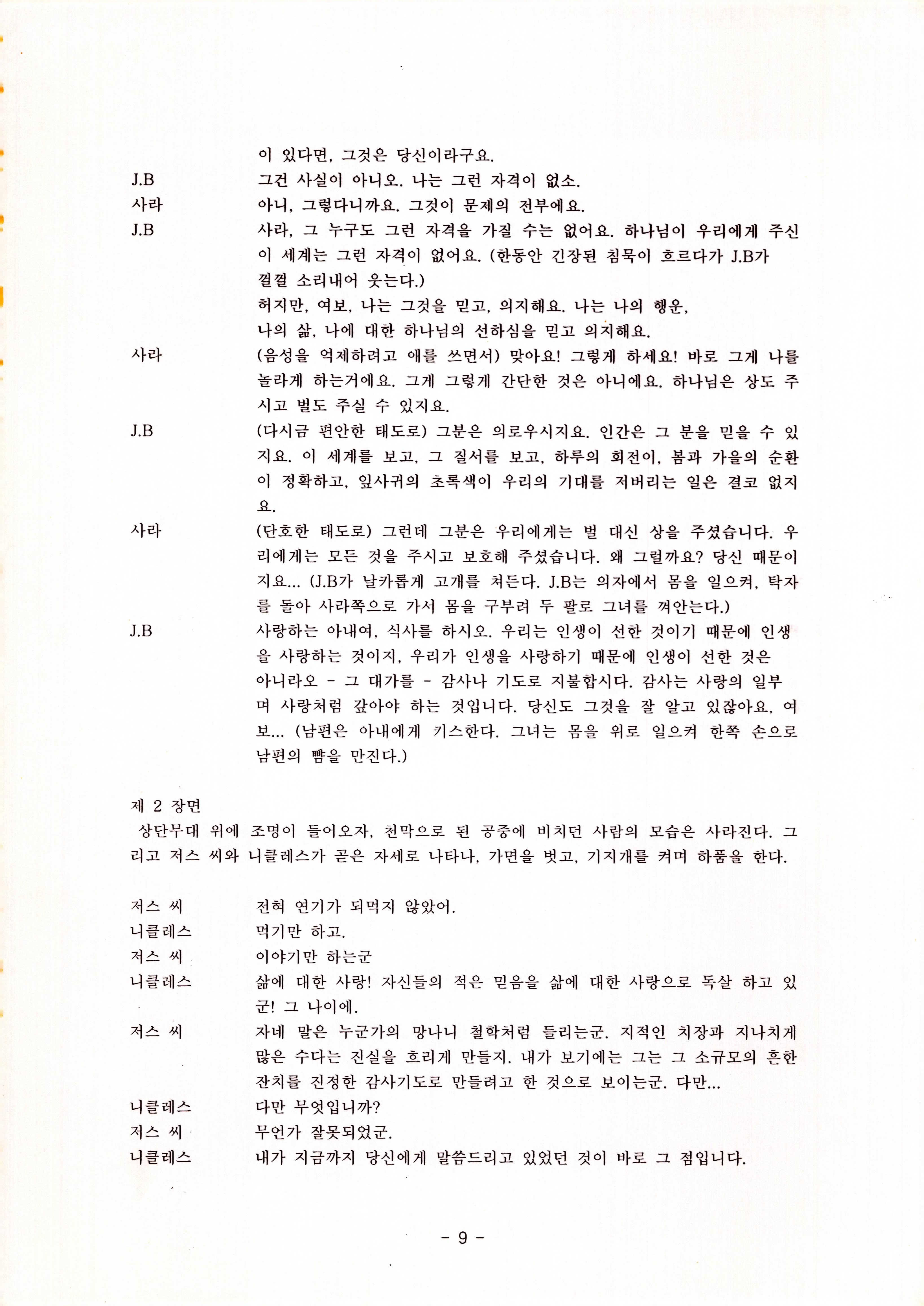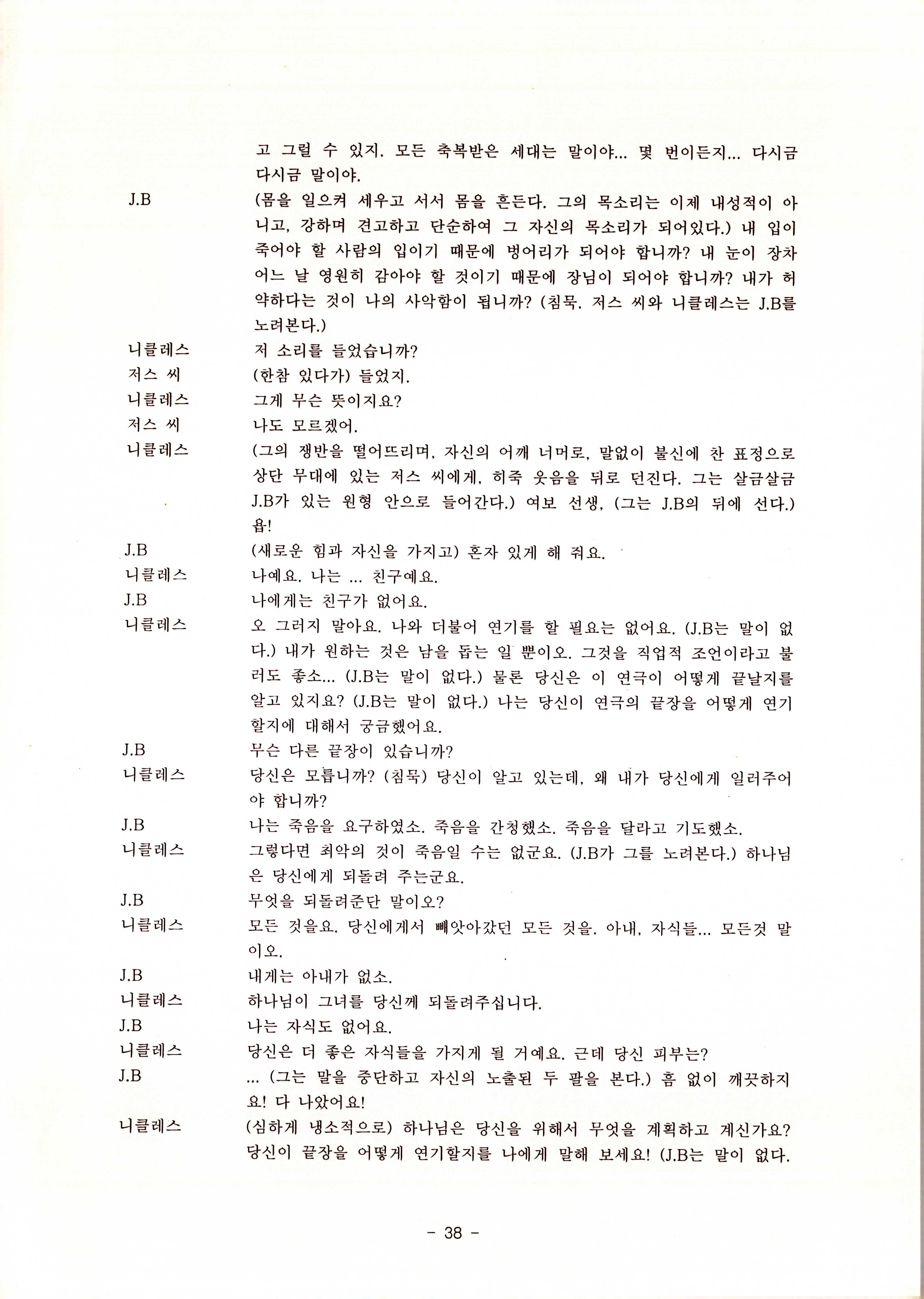 2010년 9월의 '욥記(원작: 제이비(J.B))' 대본집이다. 원작자 아치볼드 머클리시 연극으로 19그리고80, 위트에 이은 부두연극단의 인간의 고난과 복음에 관한 3번째 이야기 욥記 시나리오가 기술되어 있다.